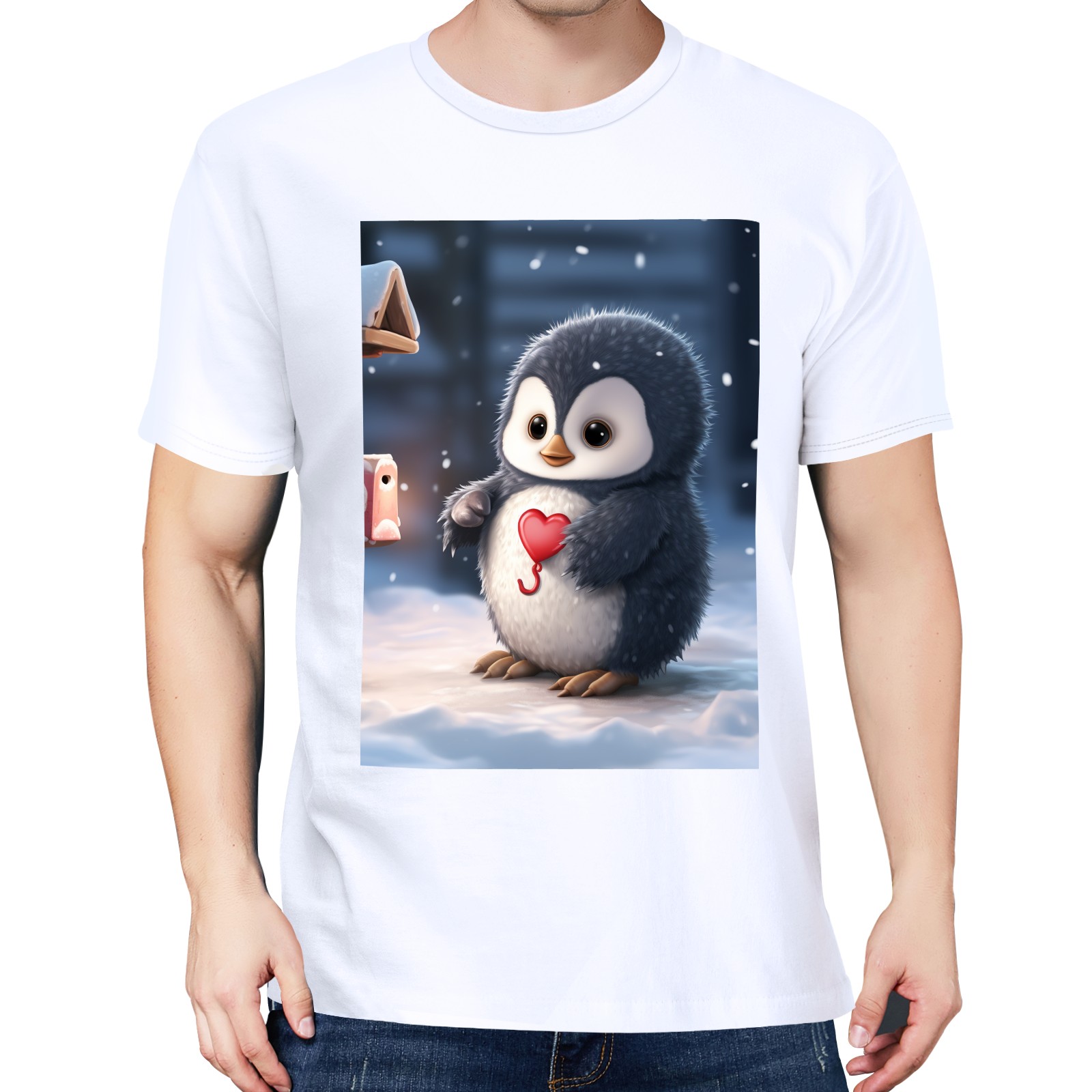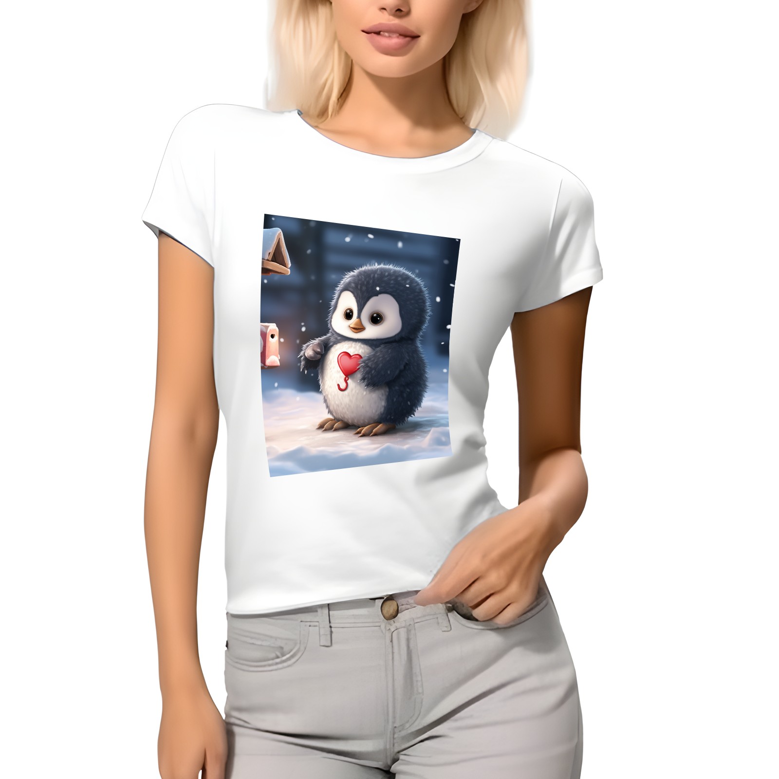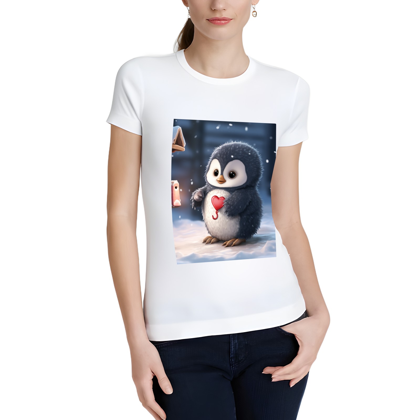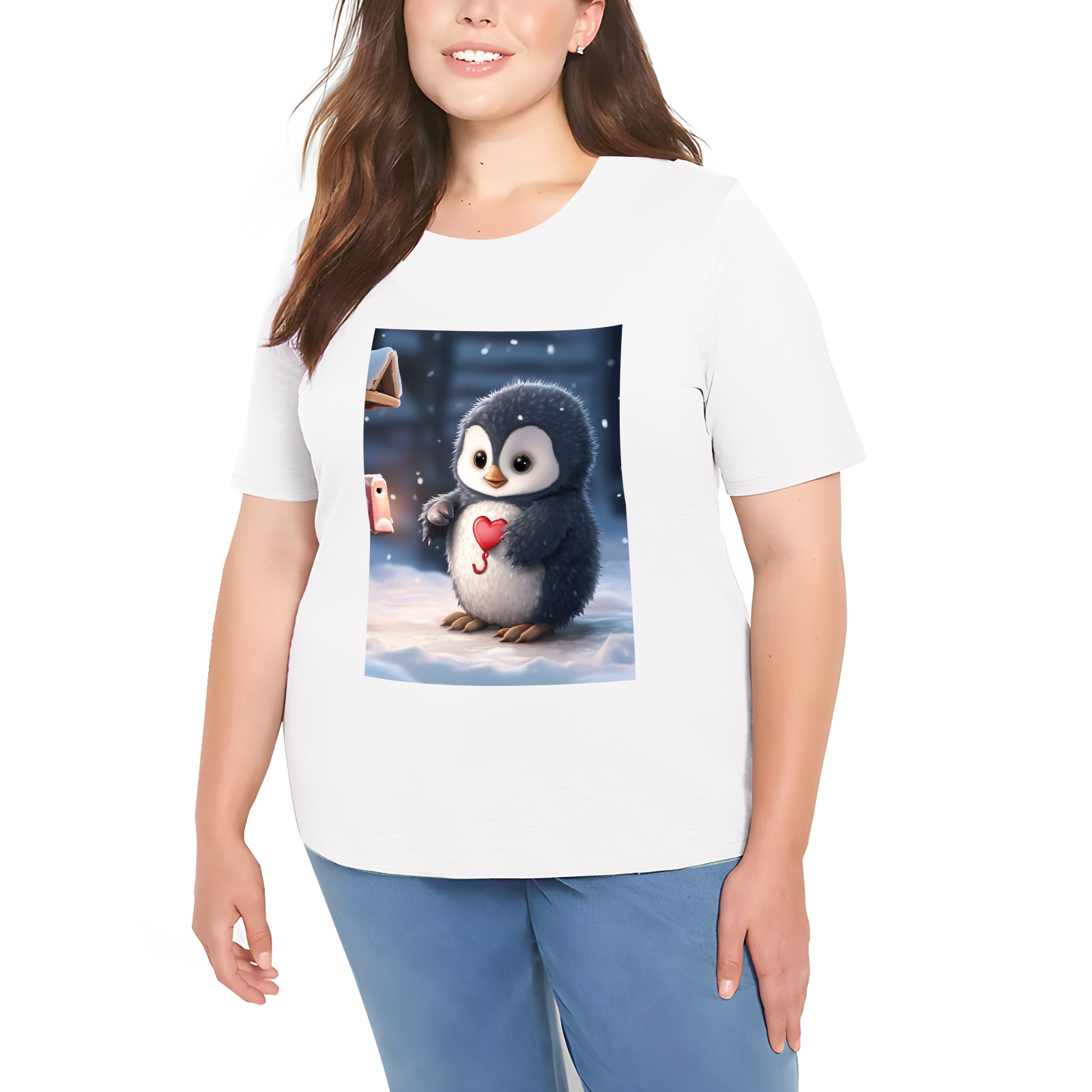 Basic Oversize Tees For WomenCute Penguin (5) Loose Boyfriend Shirts Casual Blouse round neck