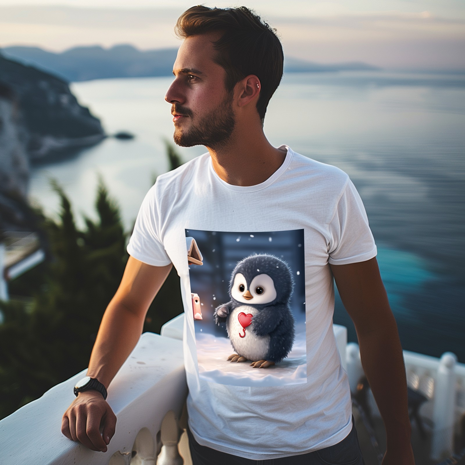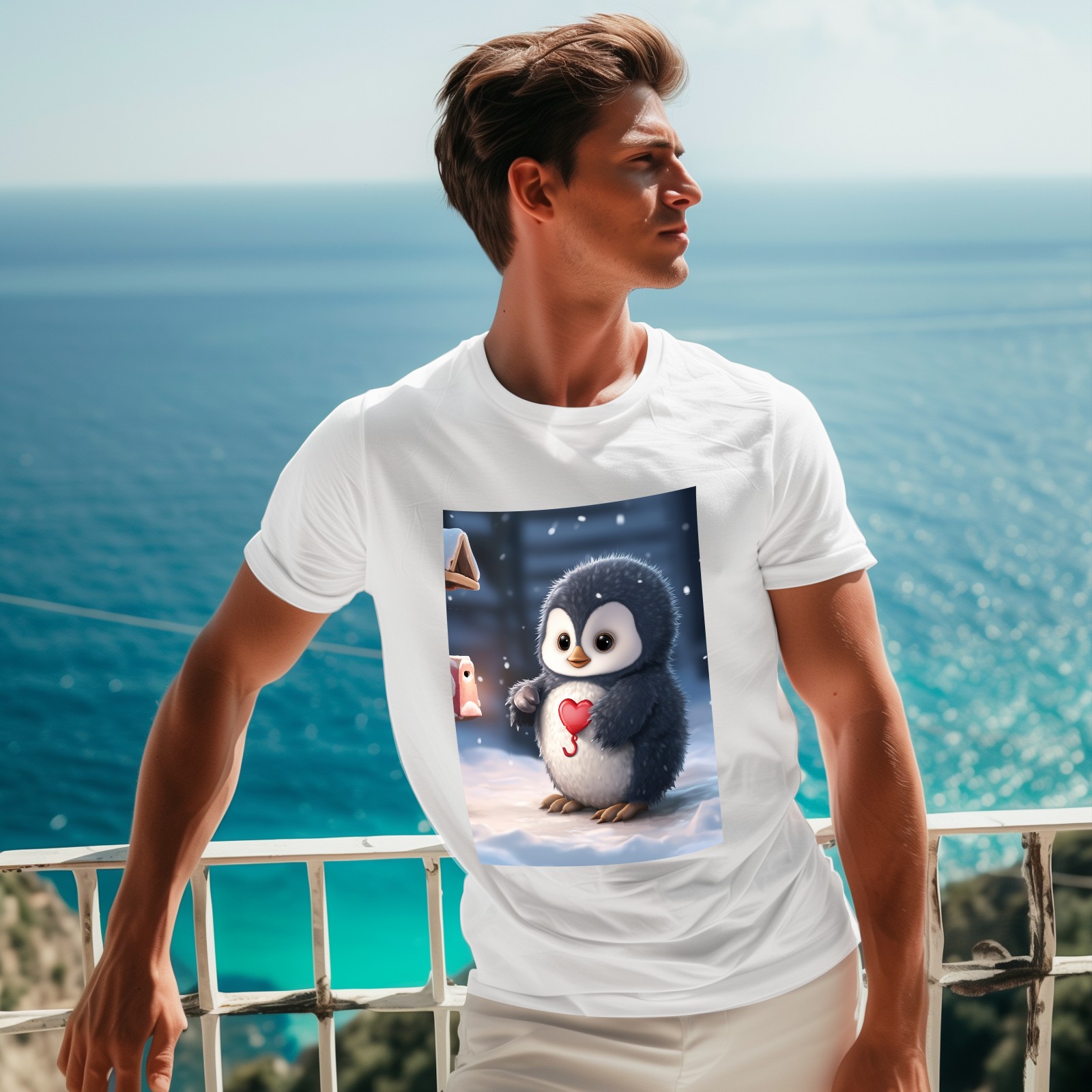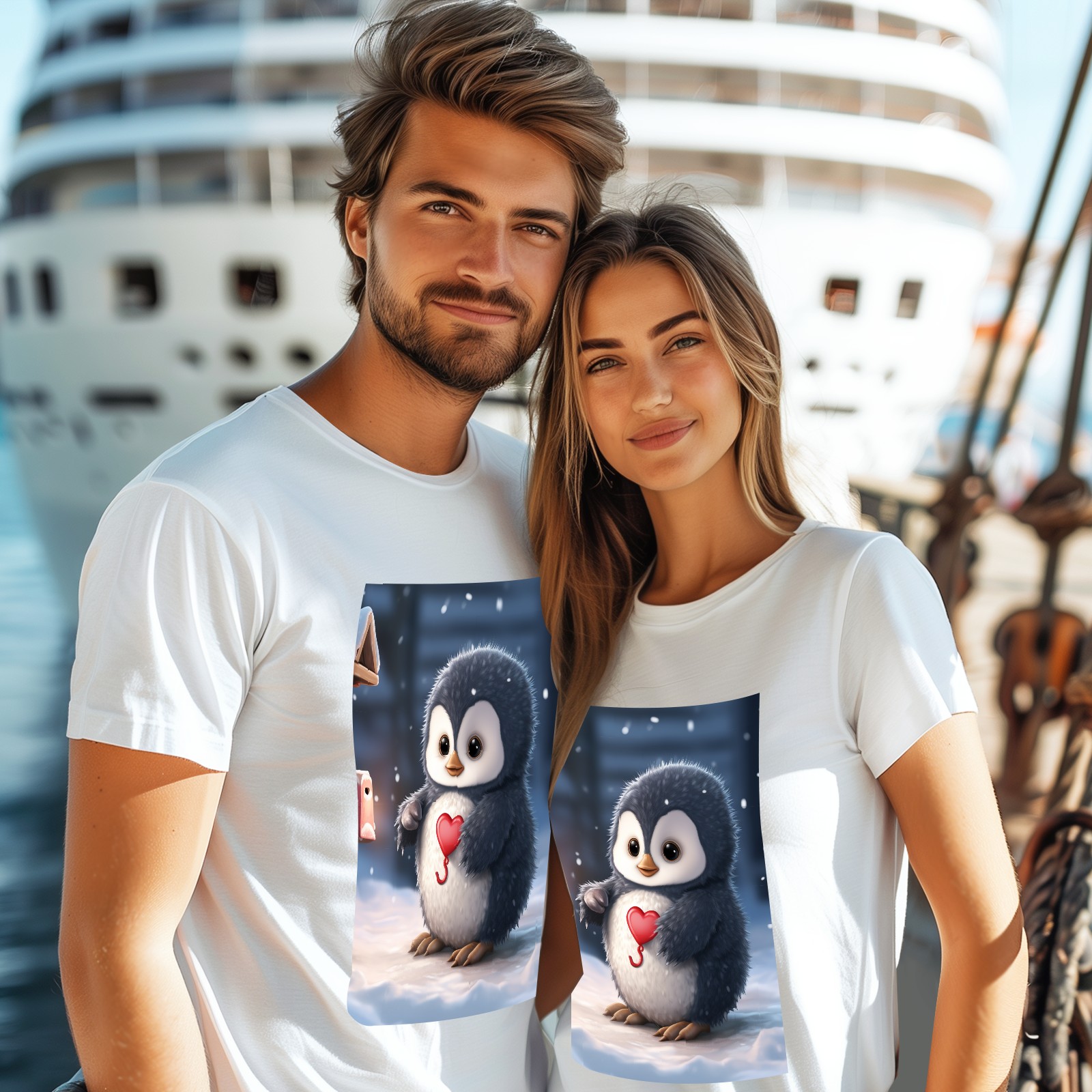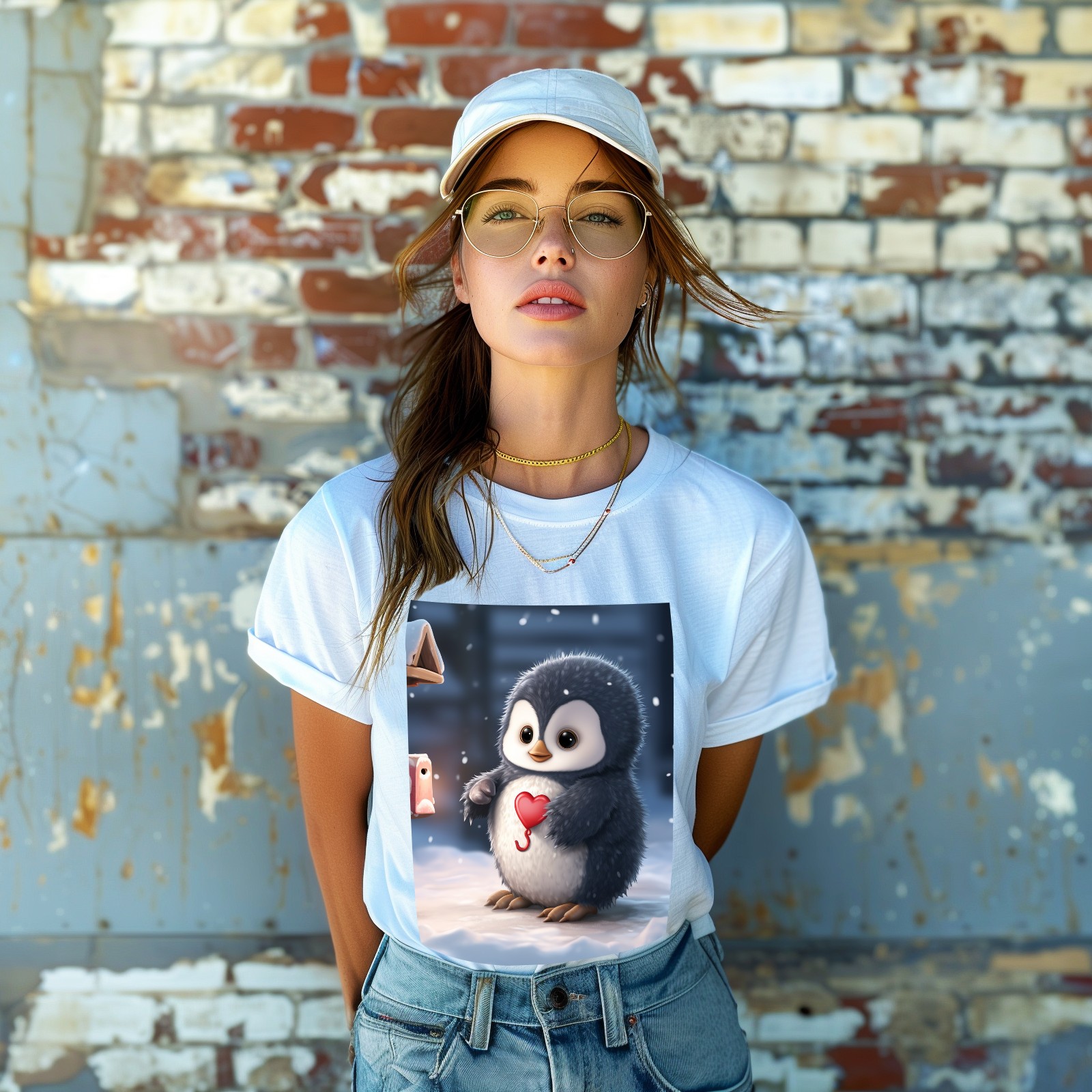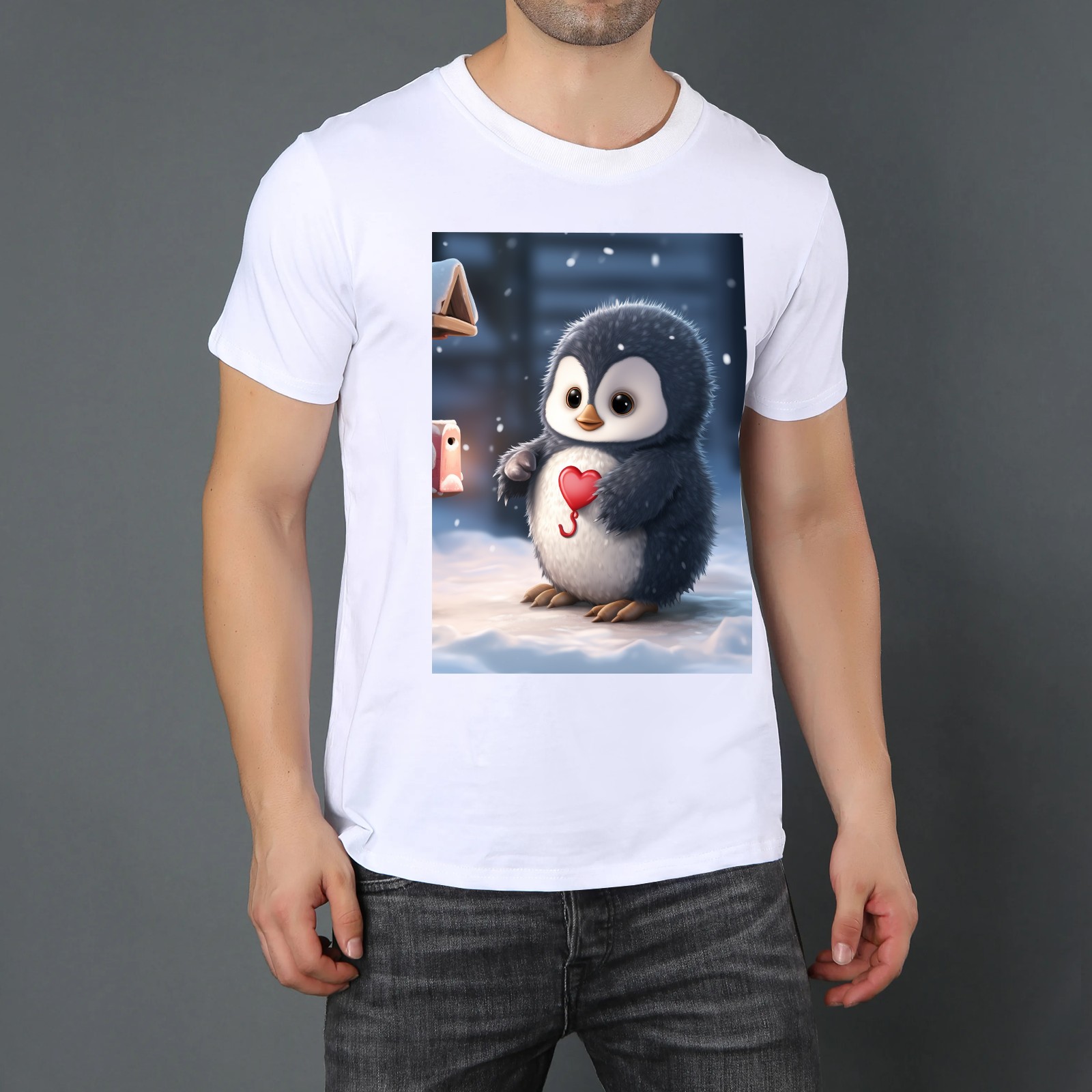 Basic Oversize Tees For WomenCute Penguin (5) Loose Boyfriend Shirts Casual Blouse round neck