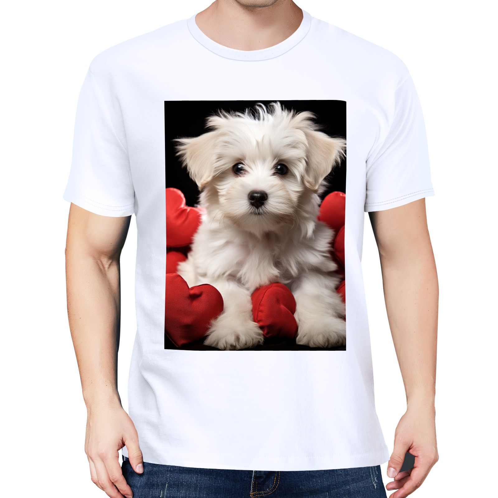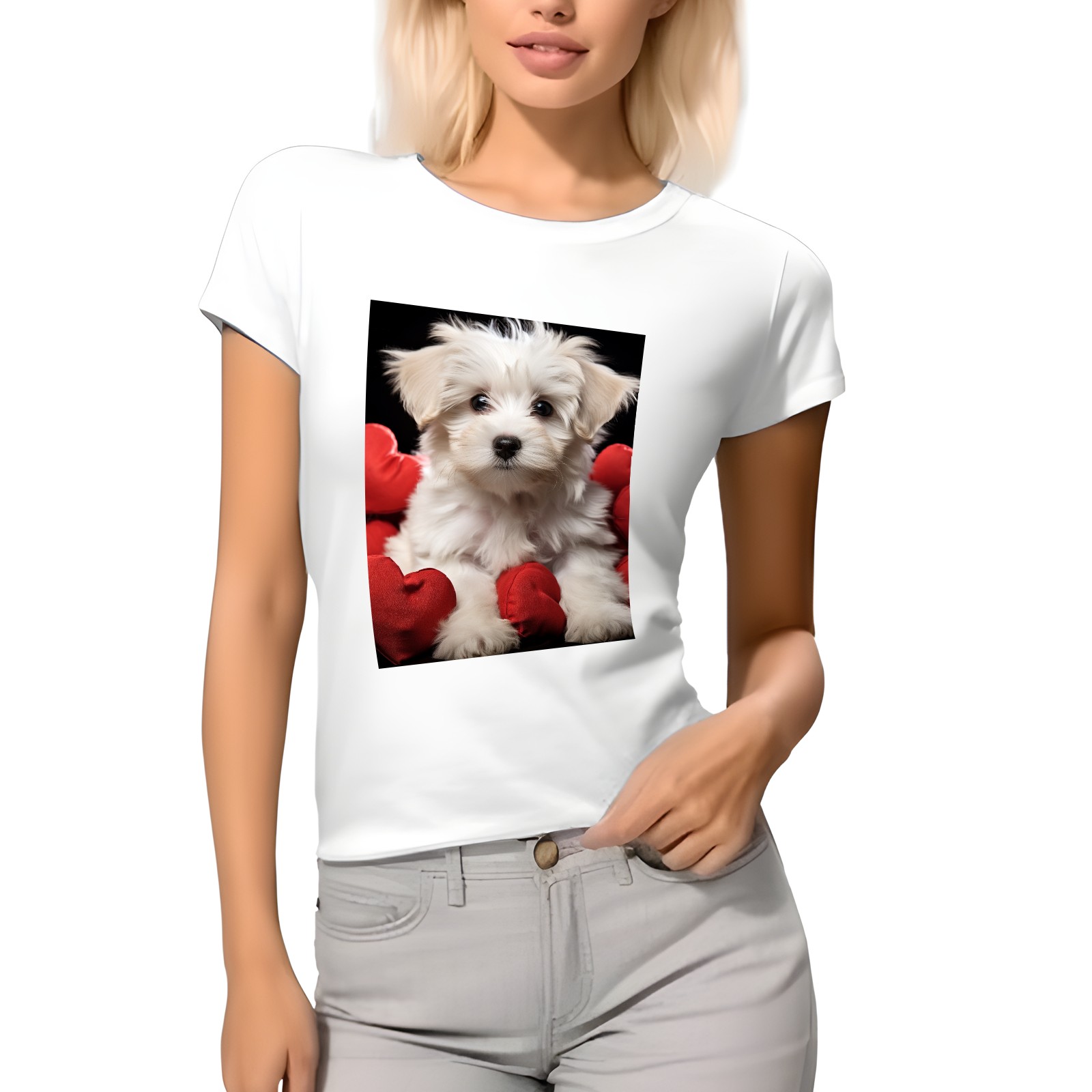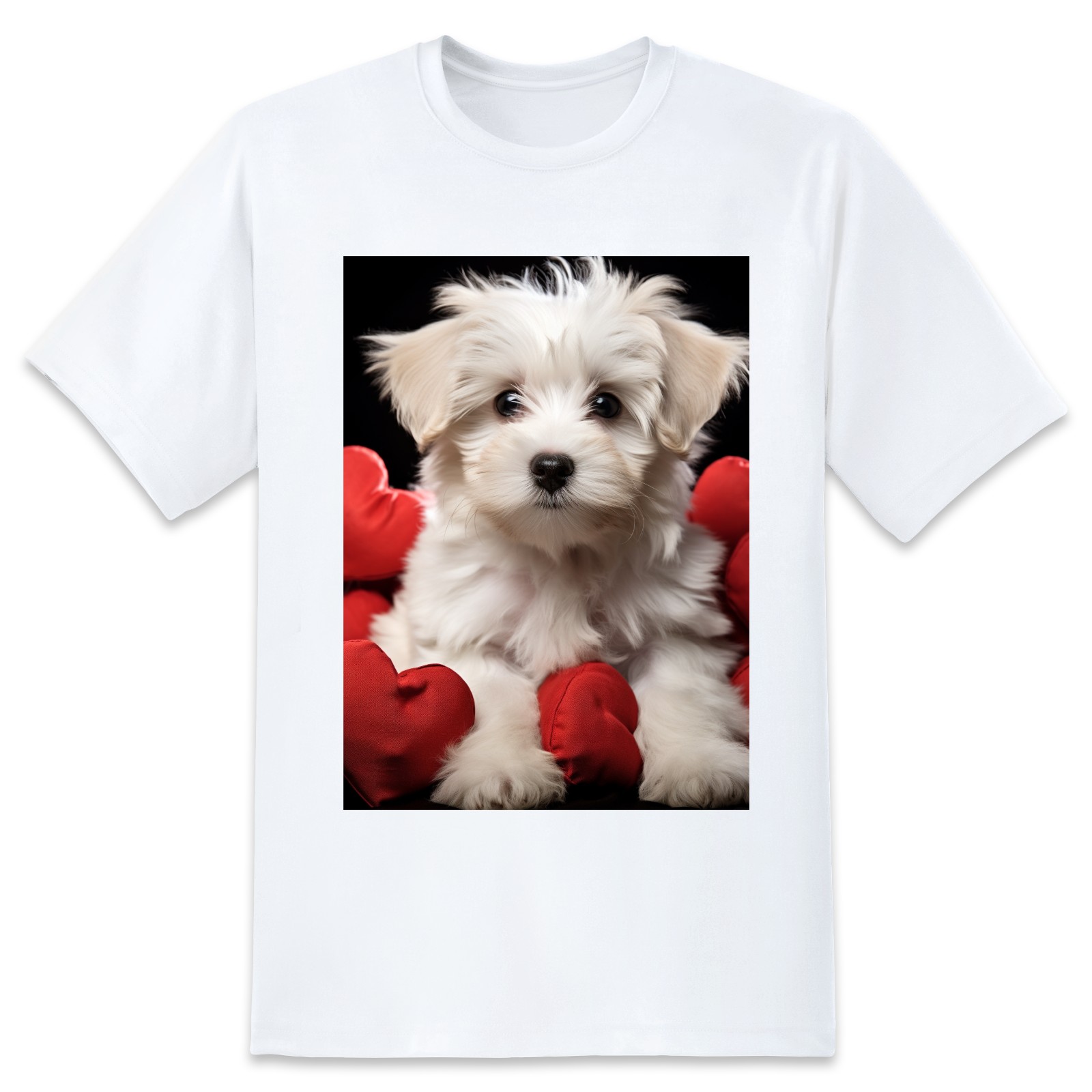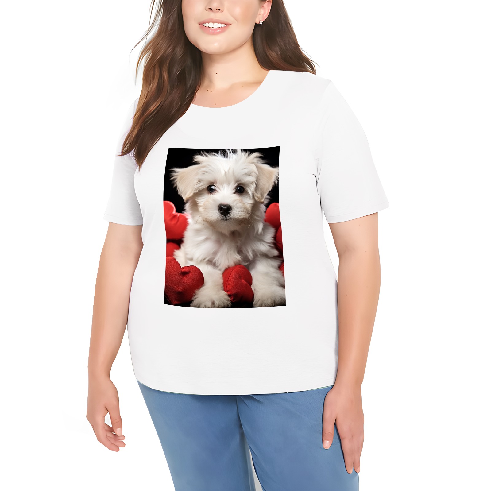 Basic Oversize Tees For WomenCute Puppy With A Red Heart (1) Loose Boyfriend Shirts Casual Blouse round neck