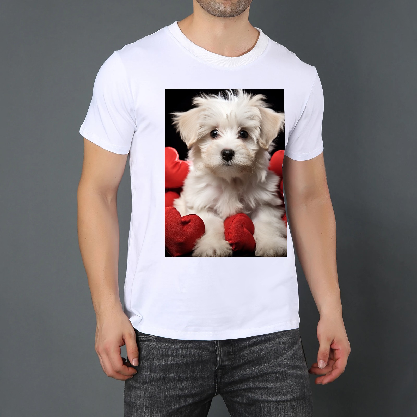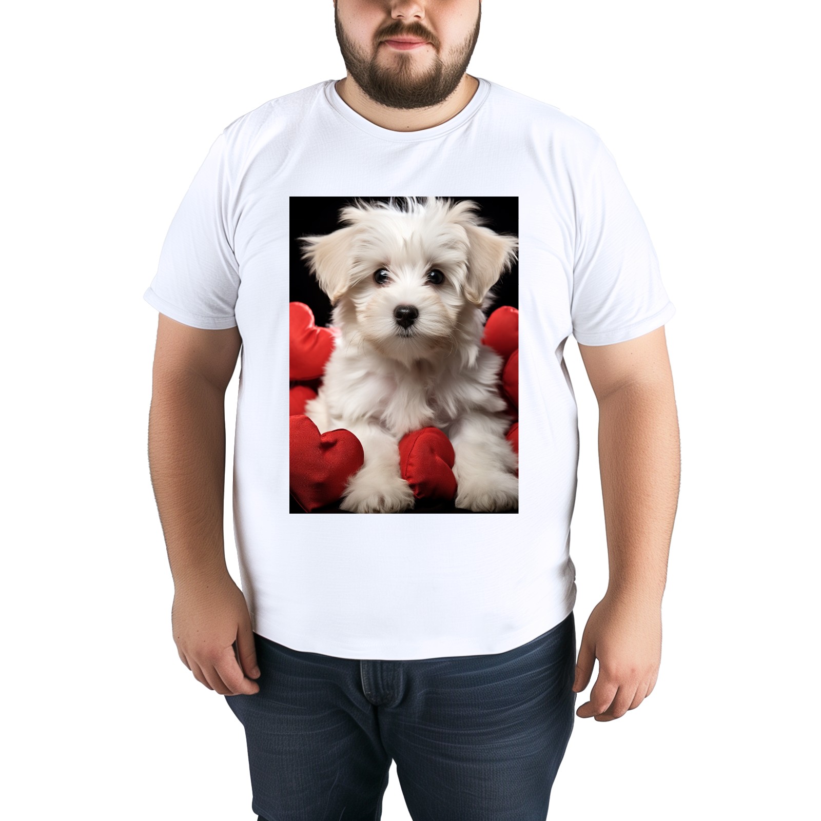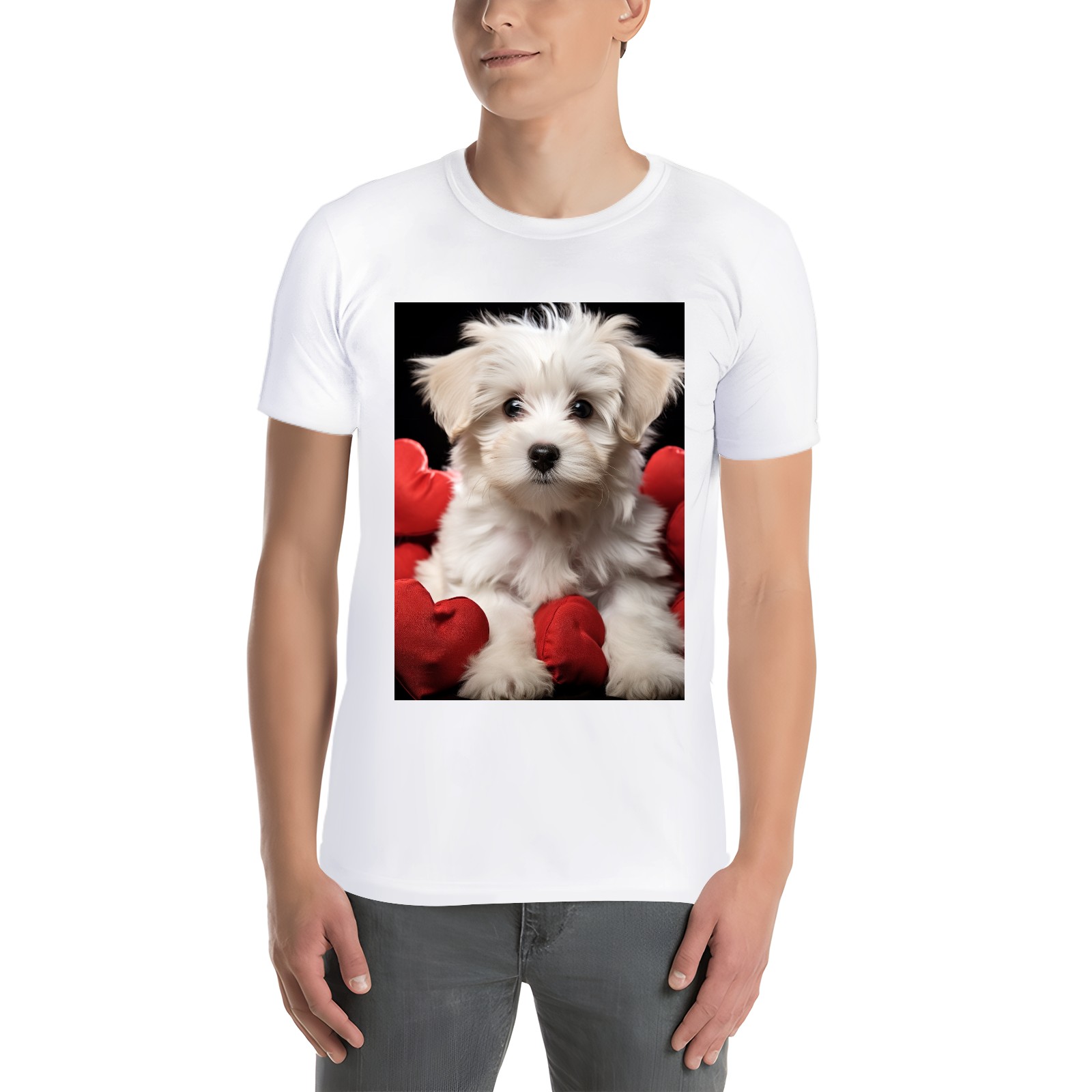 Basic Oversize Tees For WomenCute Puppy With A Red Heart (1) Loose Boyfriend Shirts Casual Blouse round neck