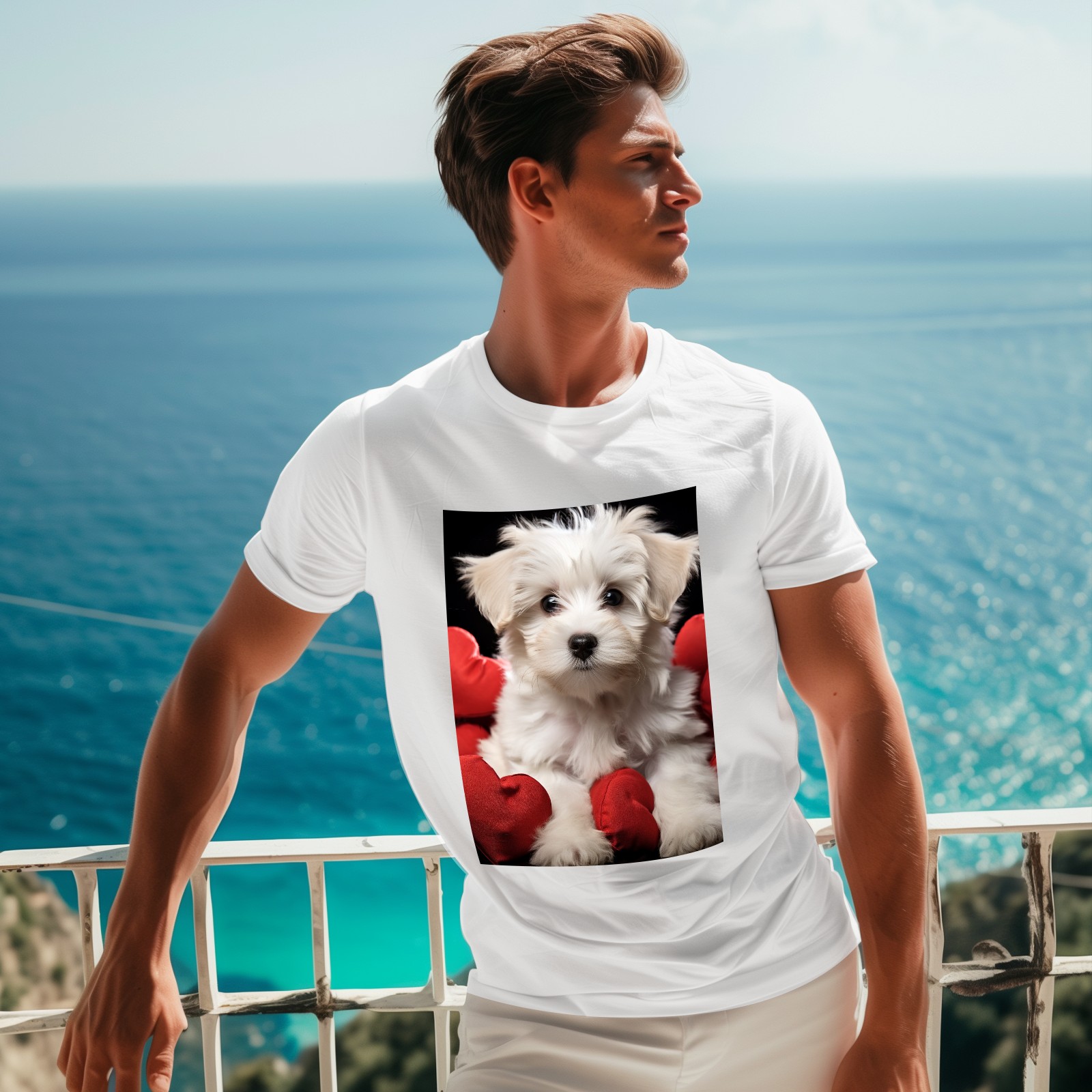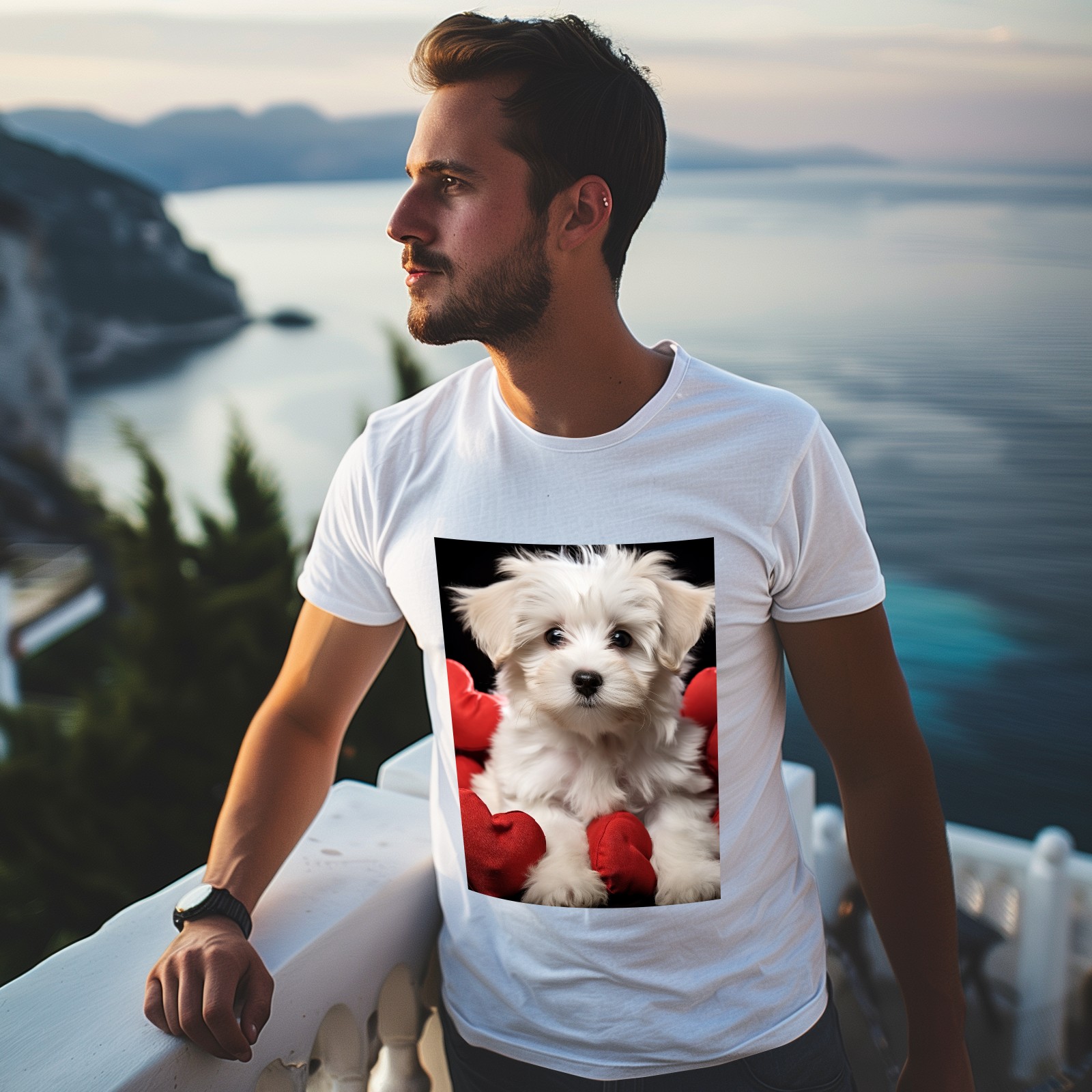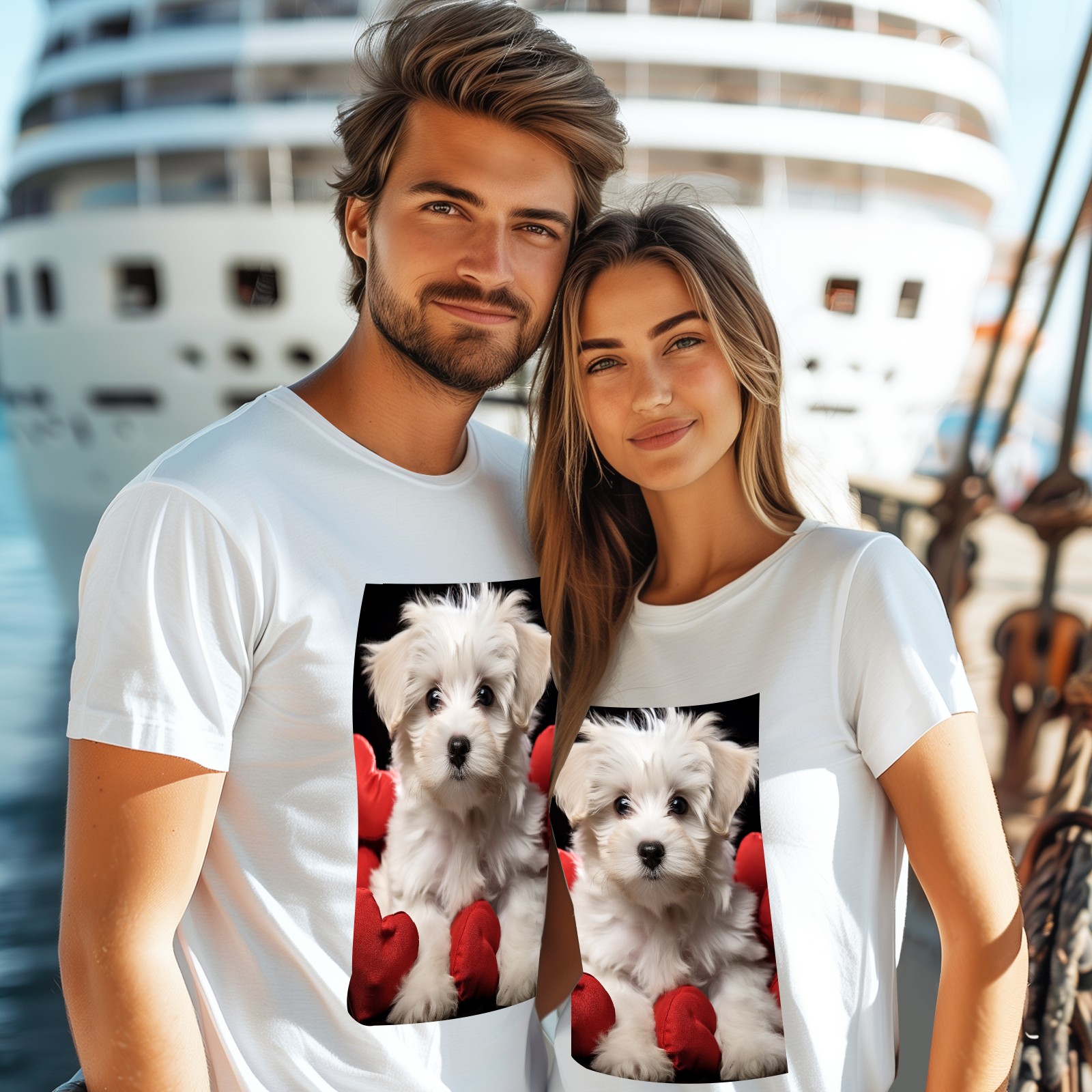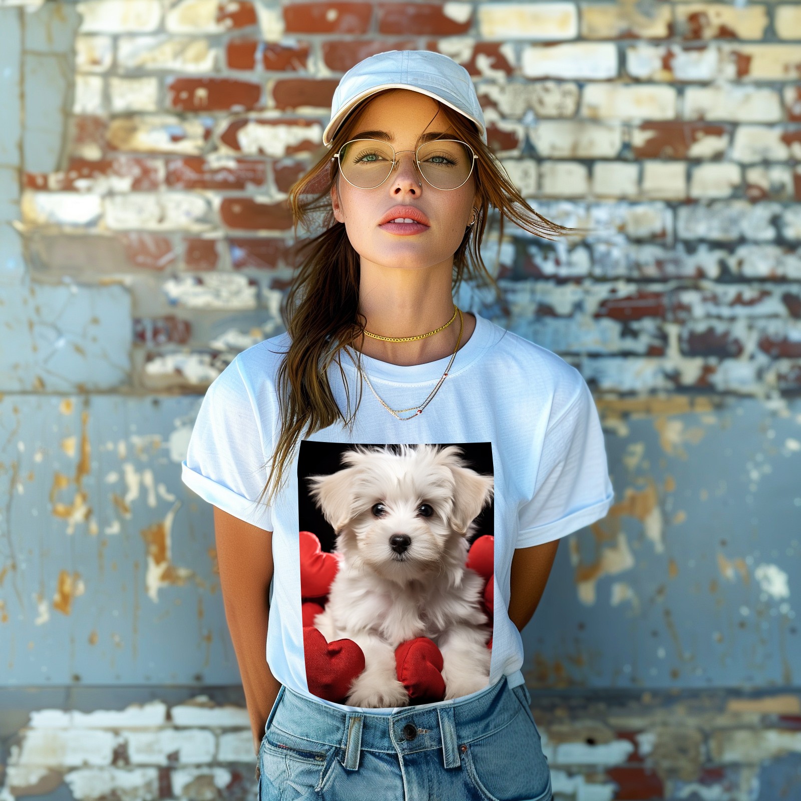 Basic Oversize Tees For WomenCute Puppy With A Red Heart (1) Loose Boyfriend Shirts Casual Blouse round neck