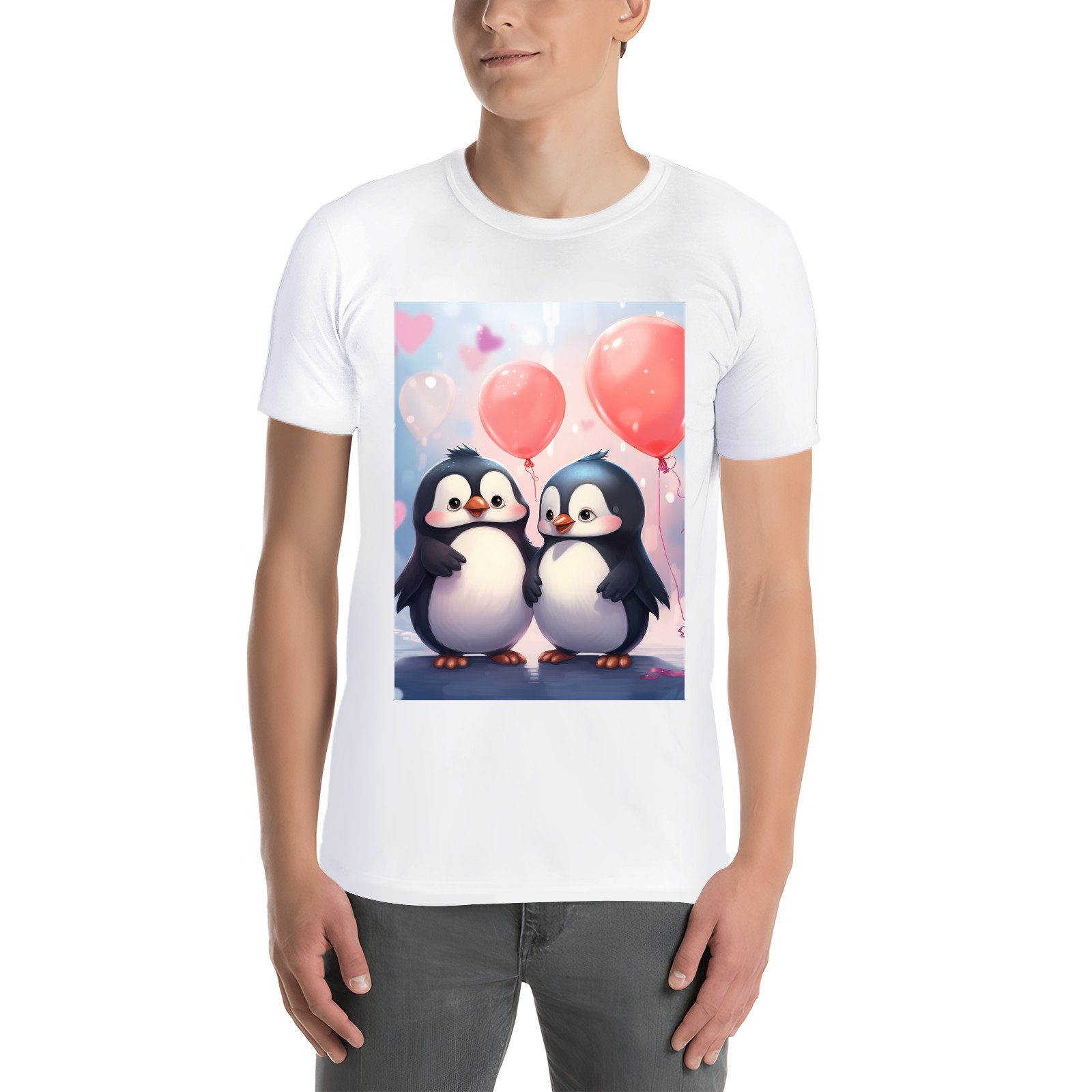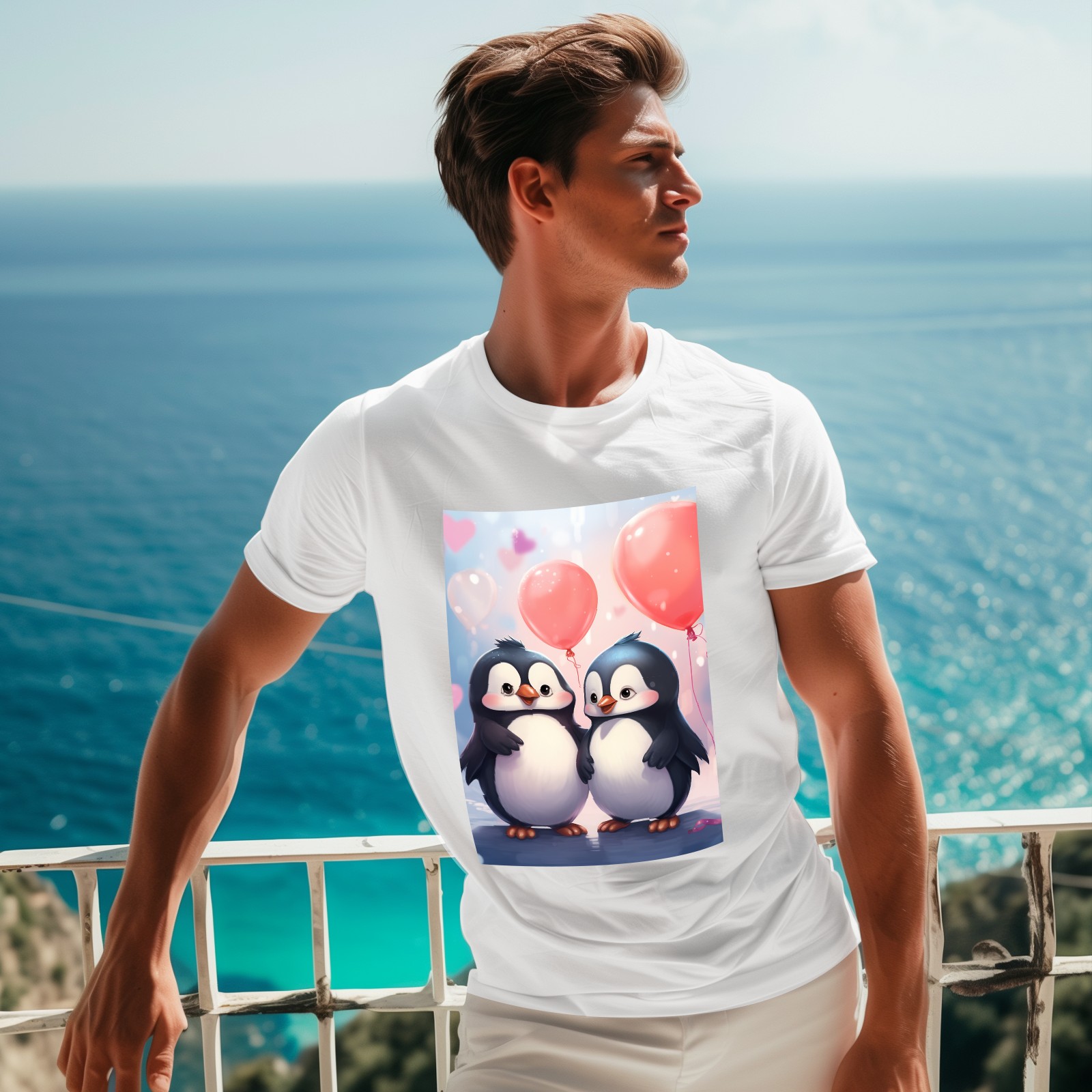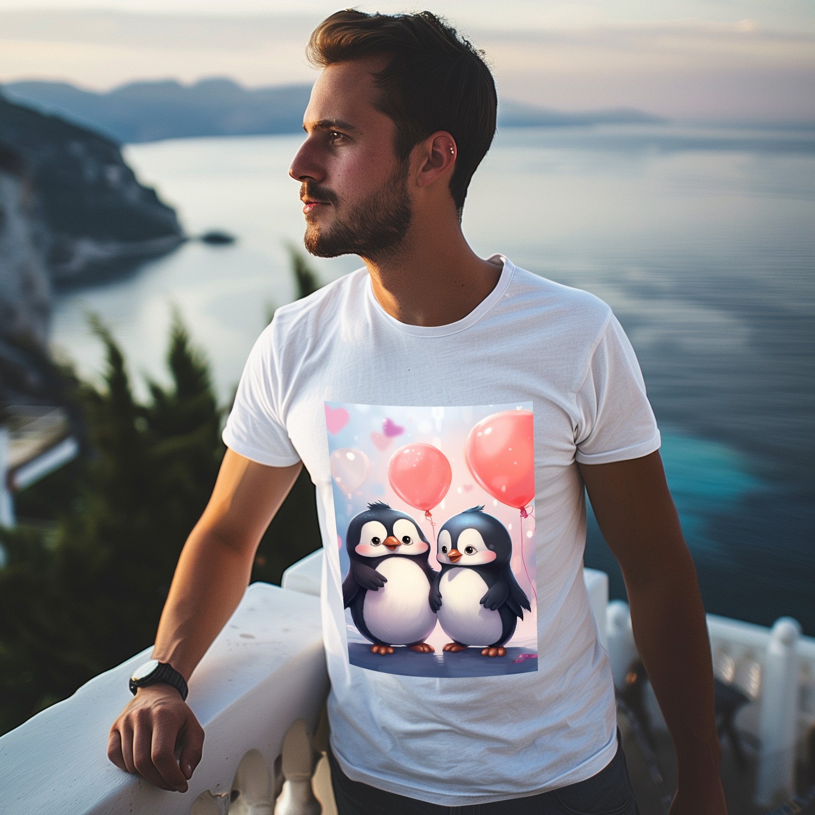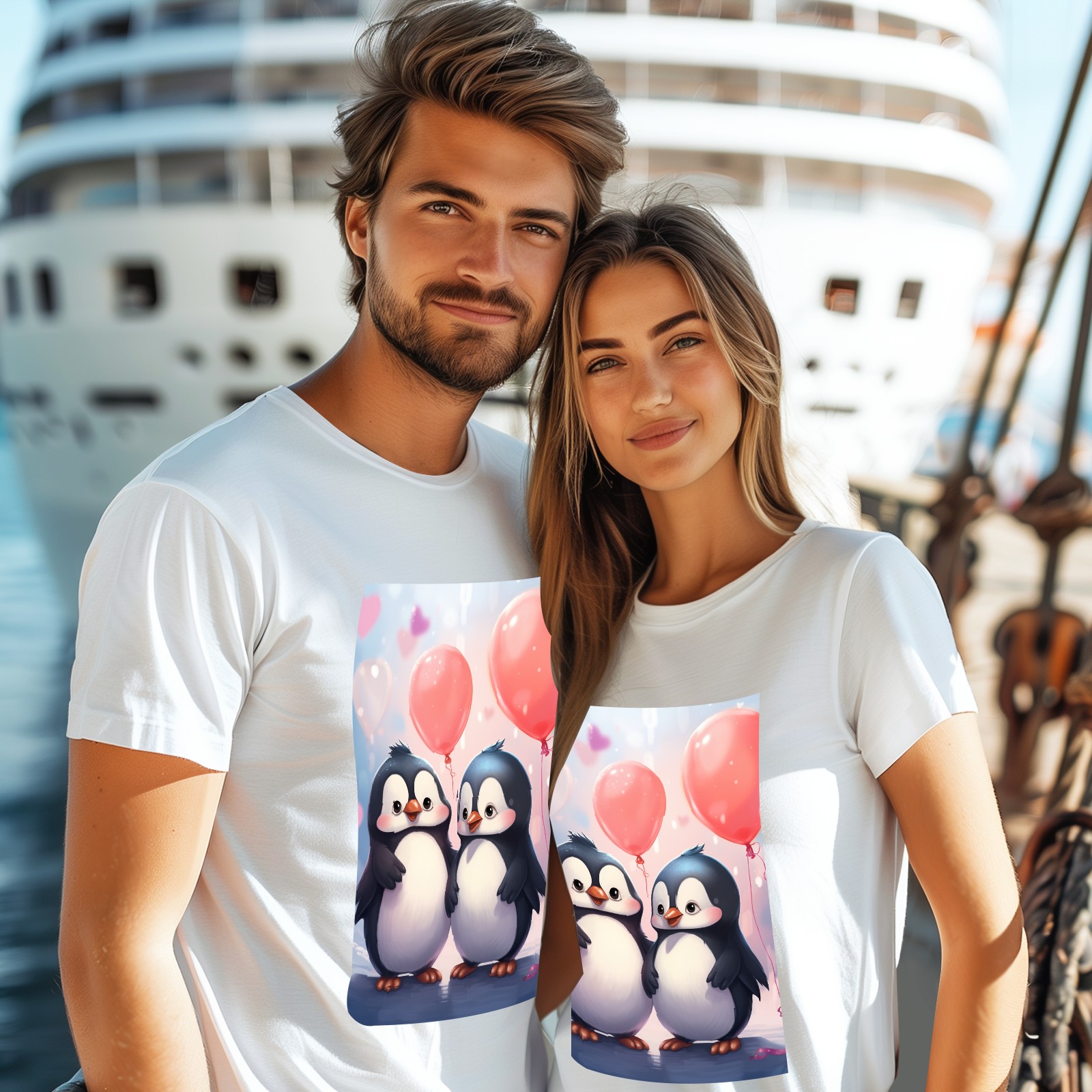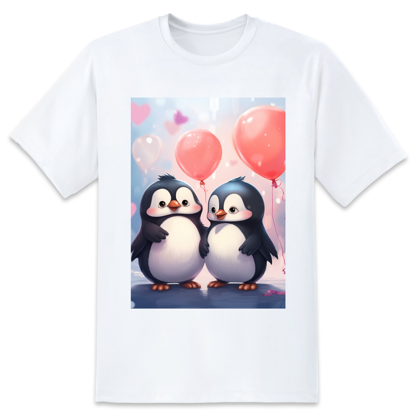 Basic Oversize Tees For WomenCouple Penguins Holding Hearts Balloons (16) Loose Boyfriend Shirts Casual Blouse round neck