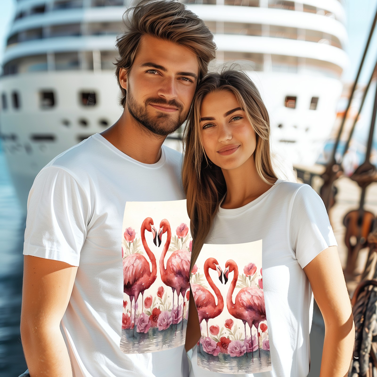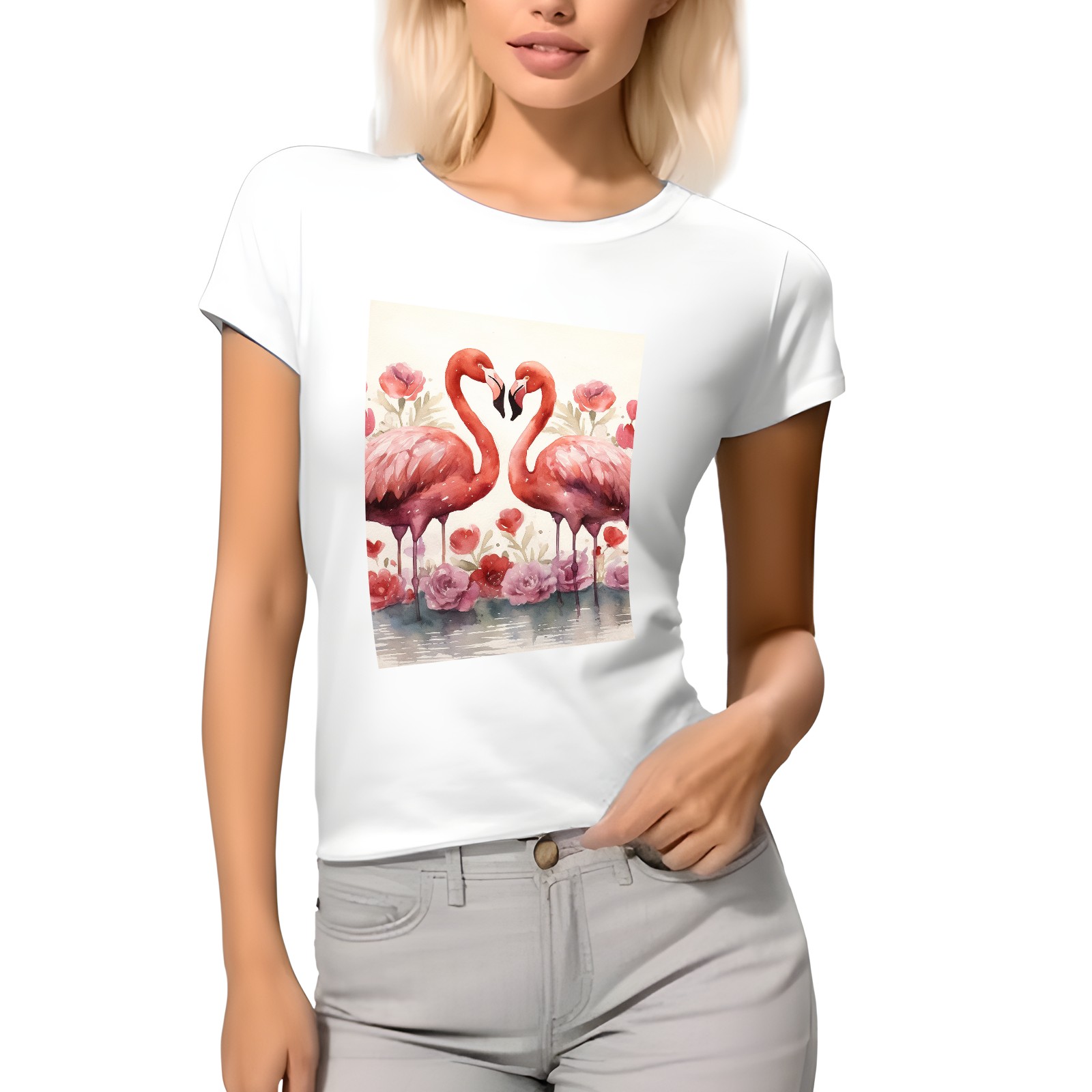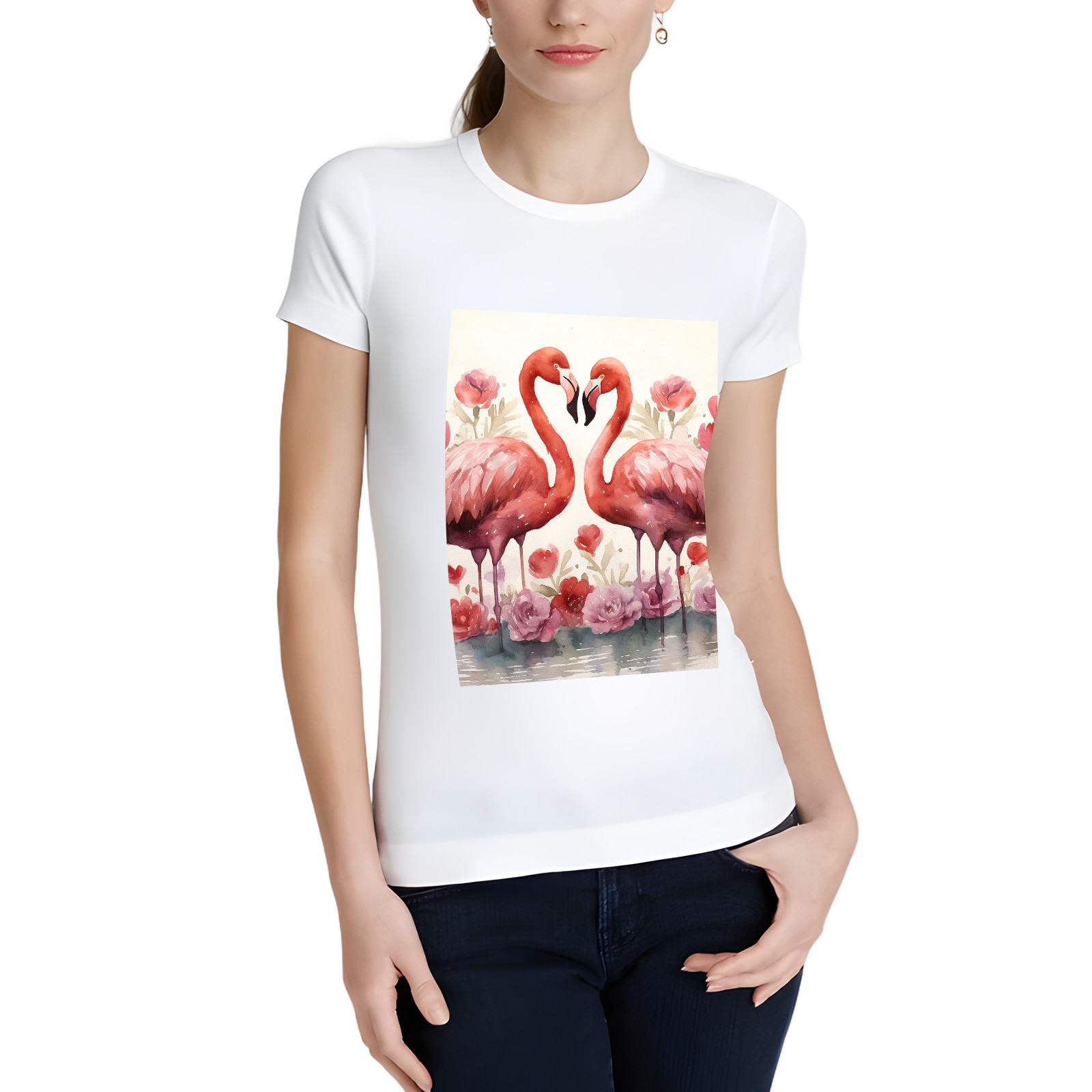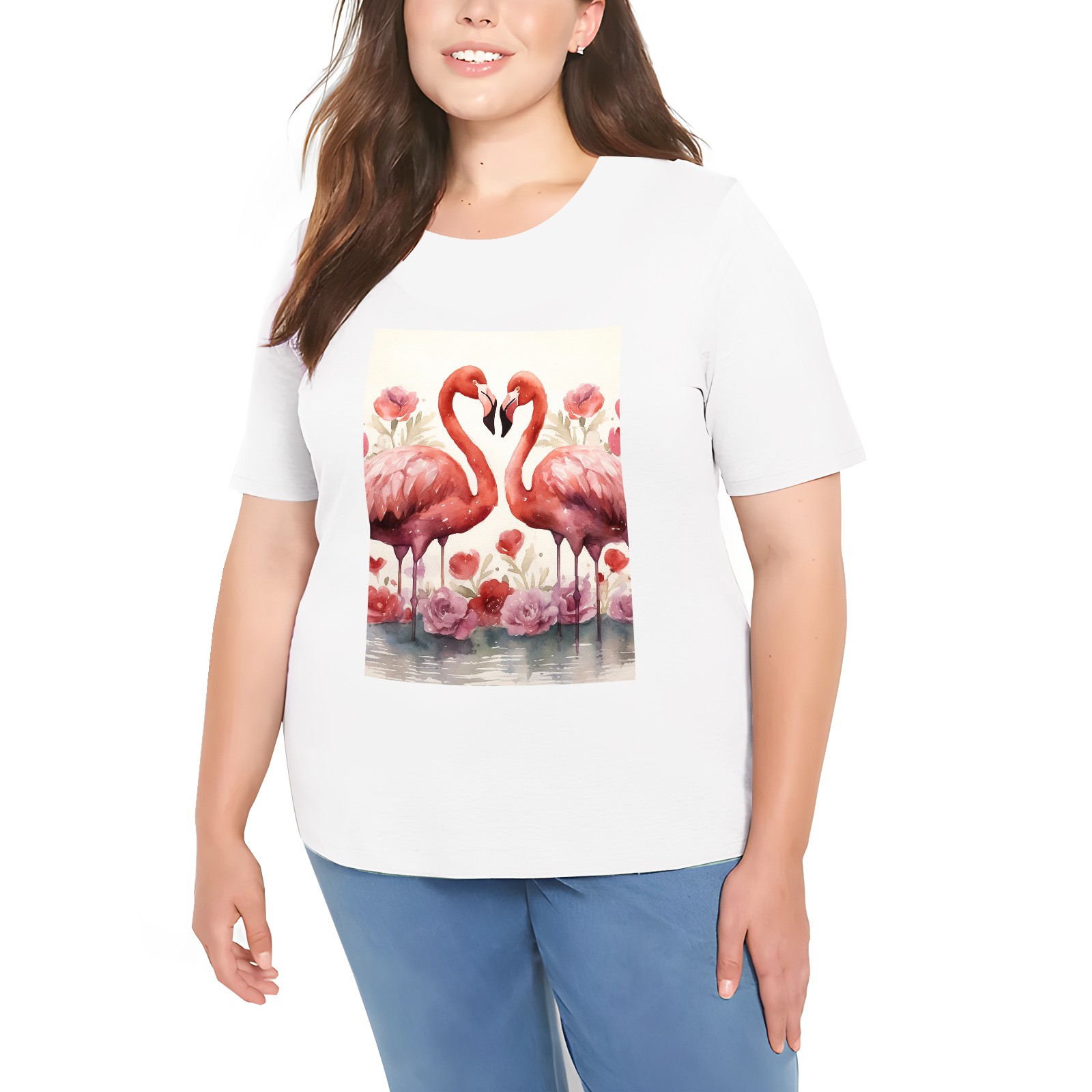 Basic Oversize Tees For WomenFlamingos (2) Loose Boyfriend Shirts Casual Blouse round neck