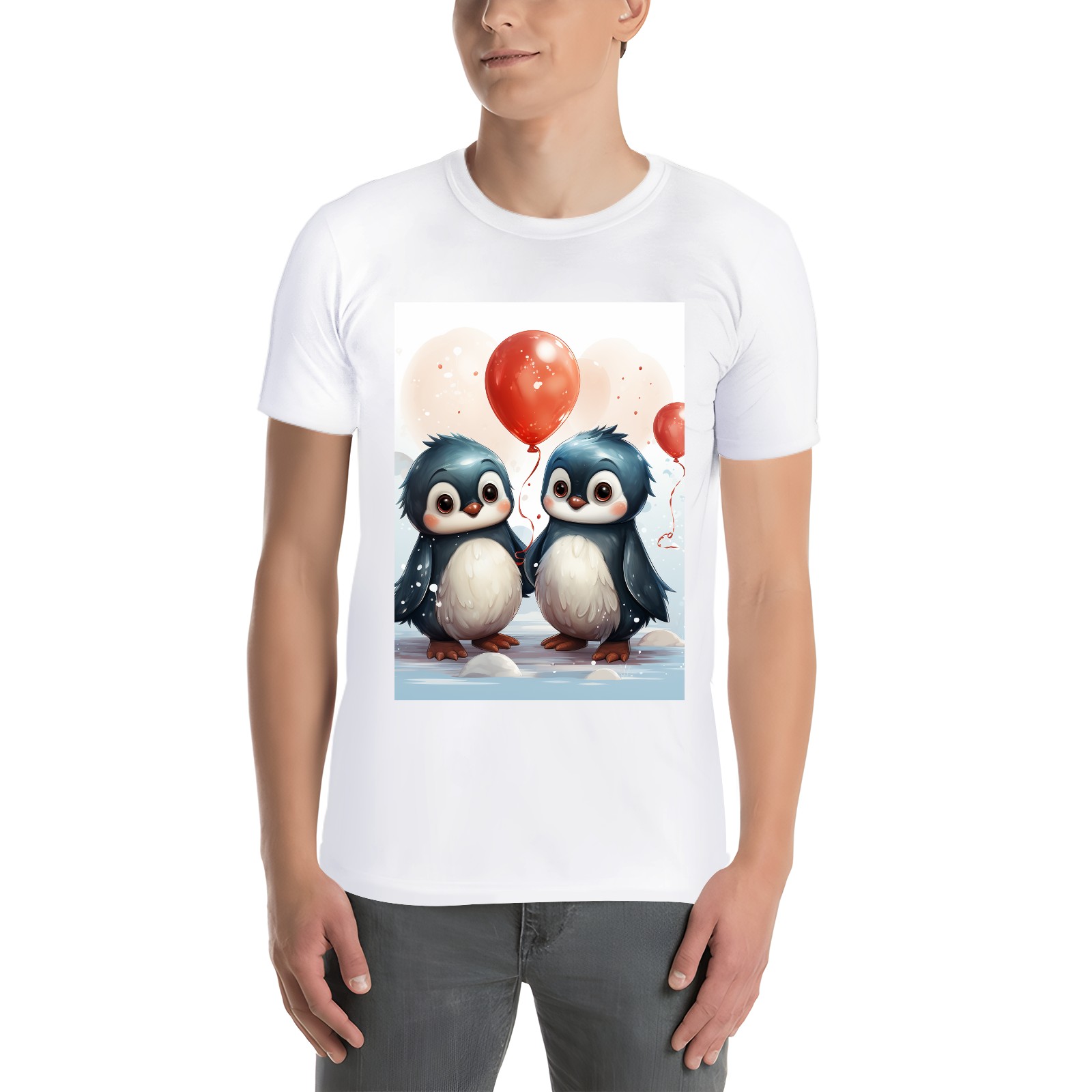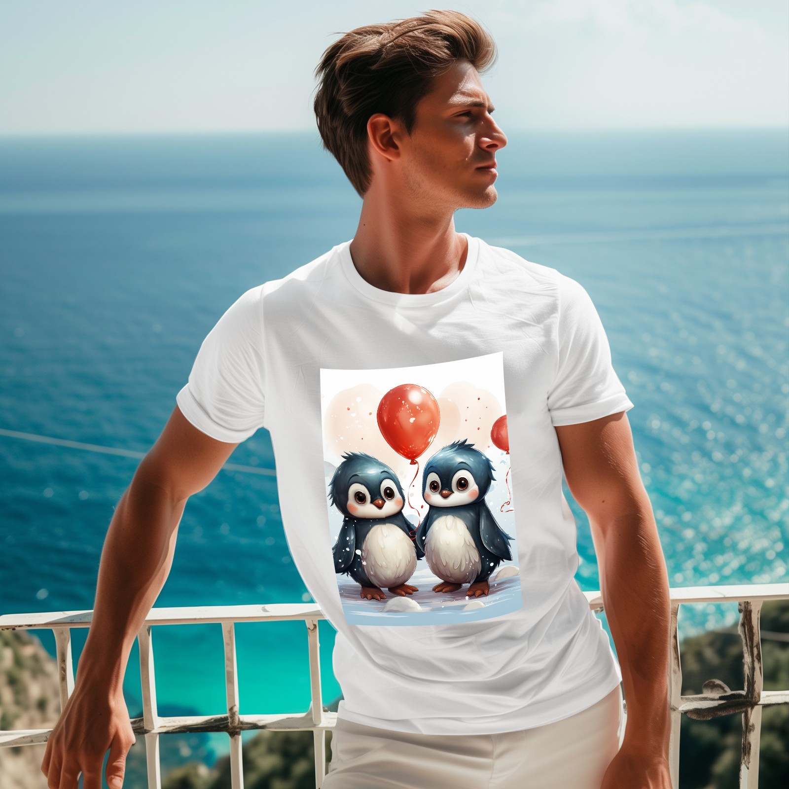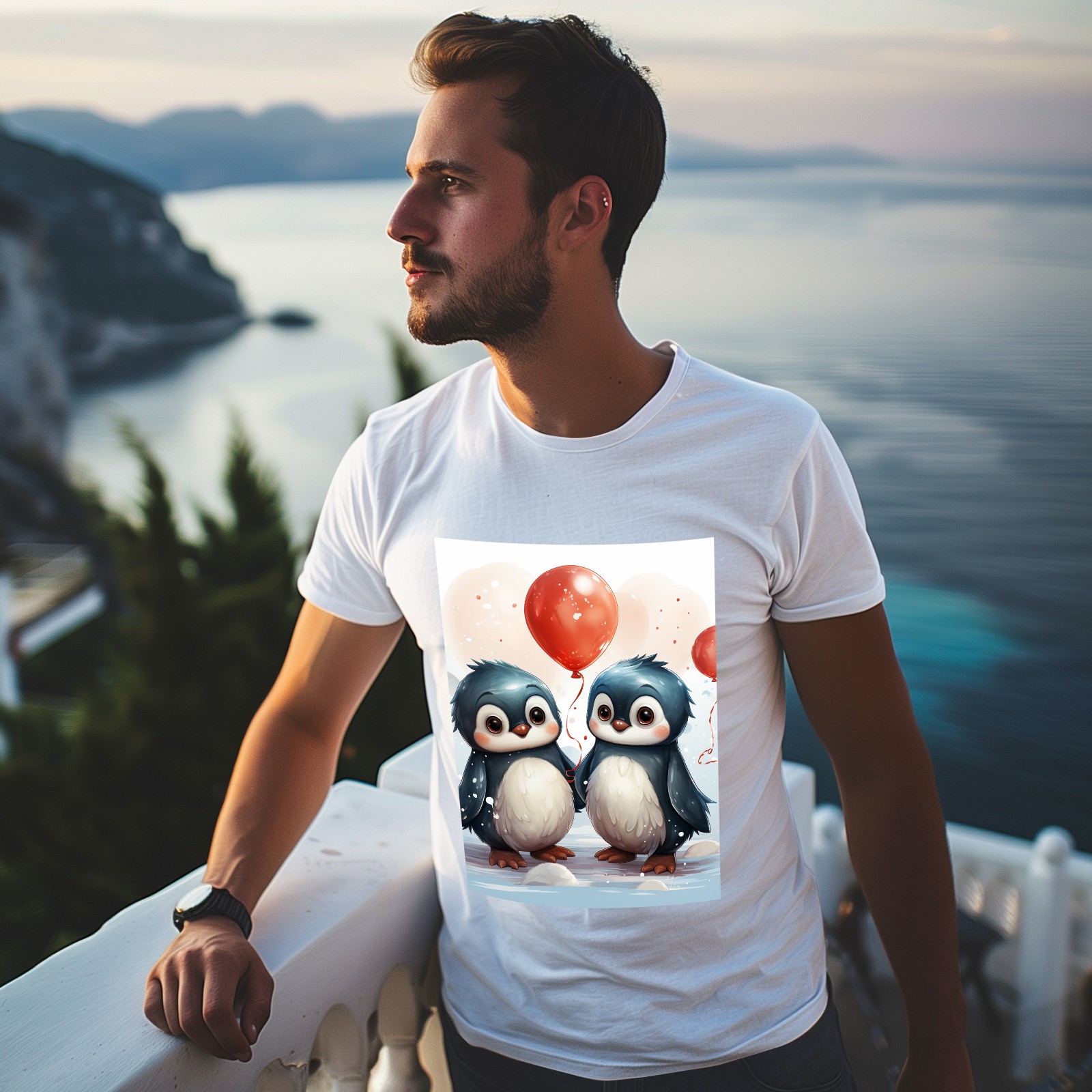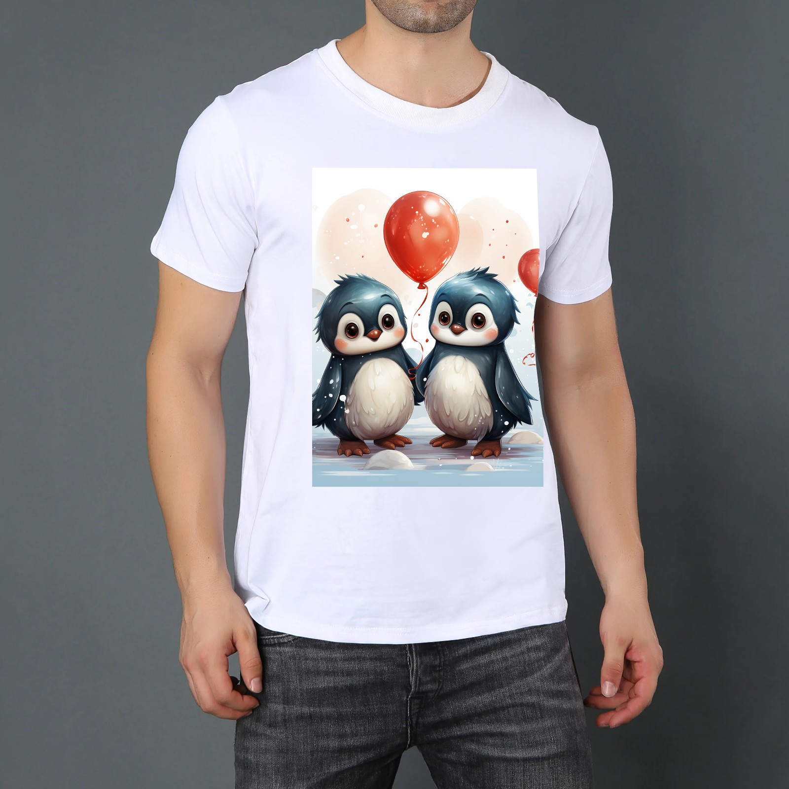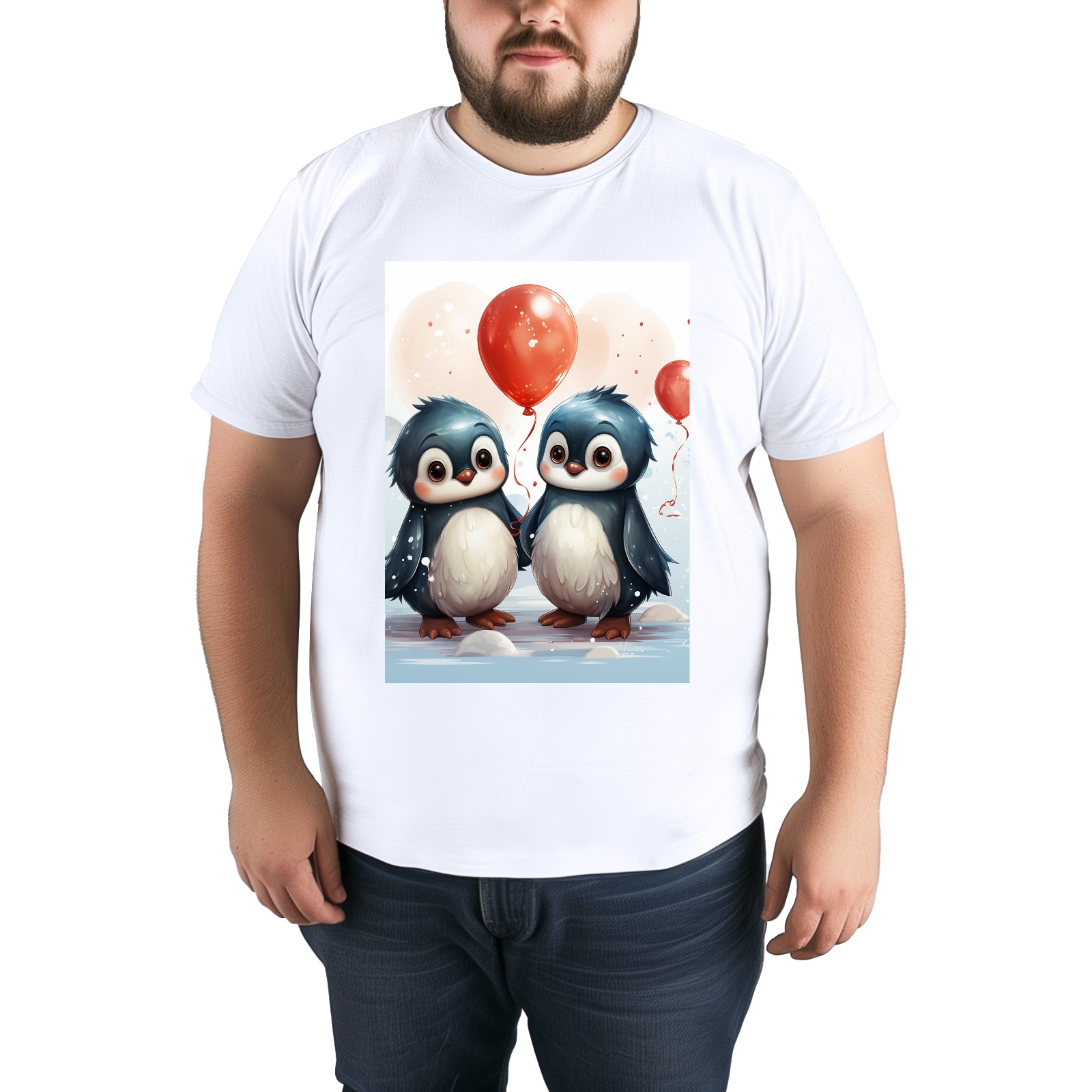 Basic Oversize Tees For WomenCouple Penguins Holding Hearts Balloons (13) Loose Boyfriend Shirts Casual Blouse round neck