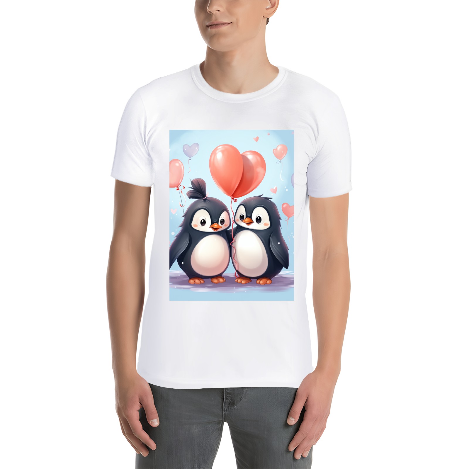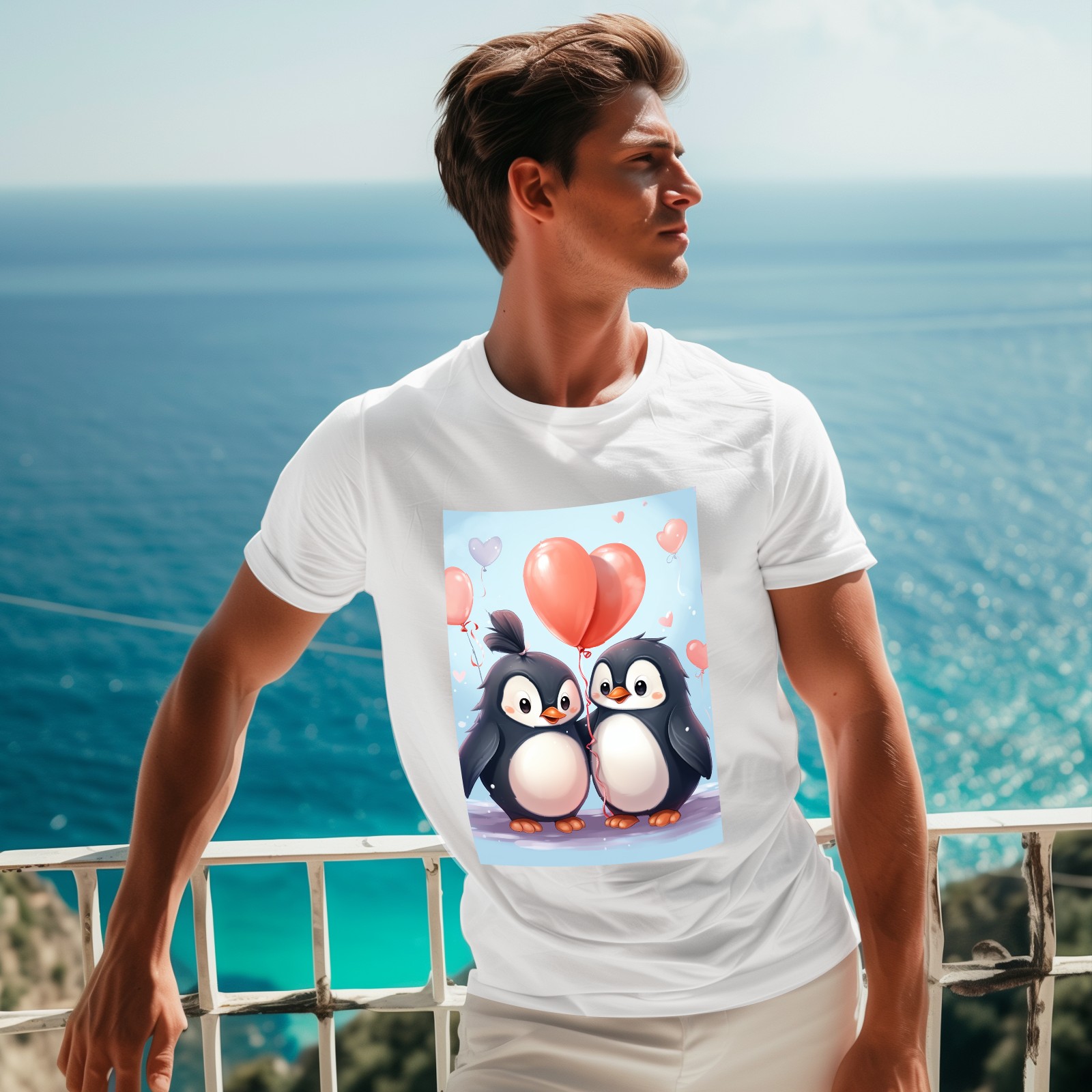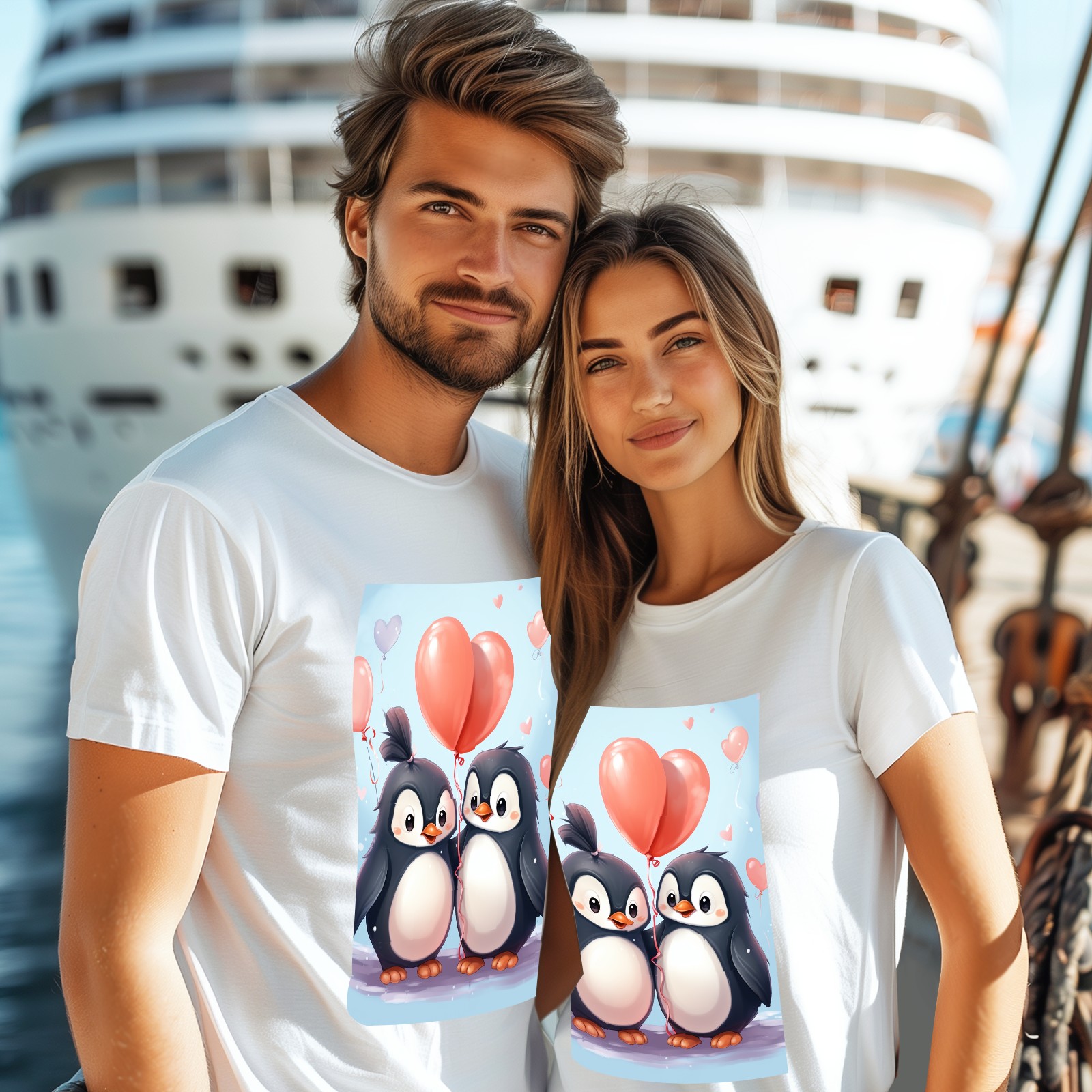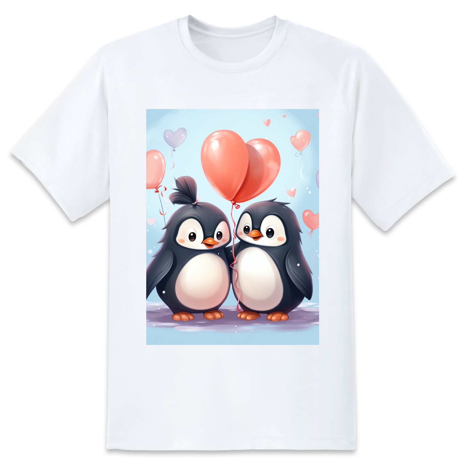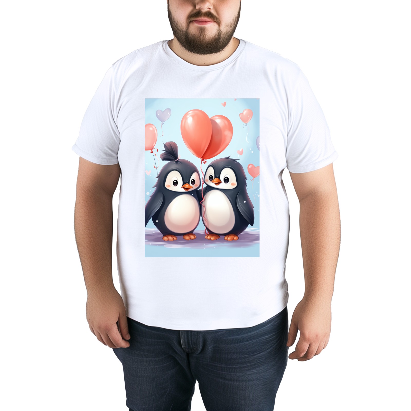 Basic Oversize Tees For WomenCouple Penguins Holding Hearts Balloons (9) Loose Boyfriend Shirts Casual Blouse round neck