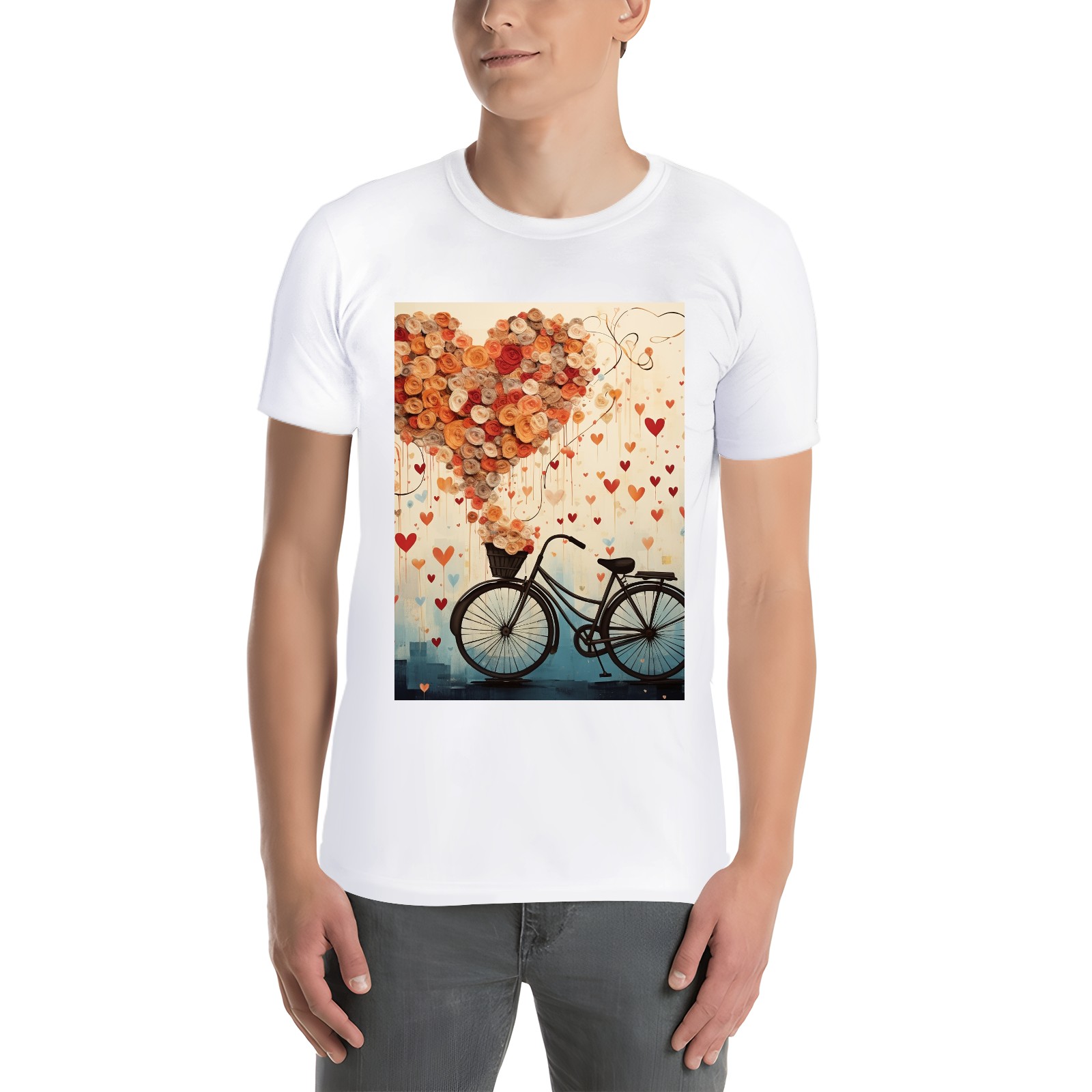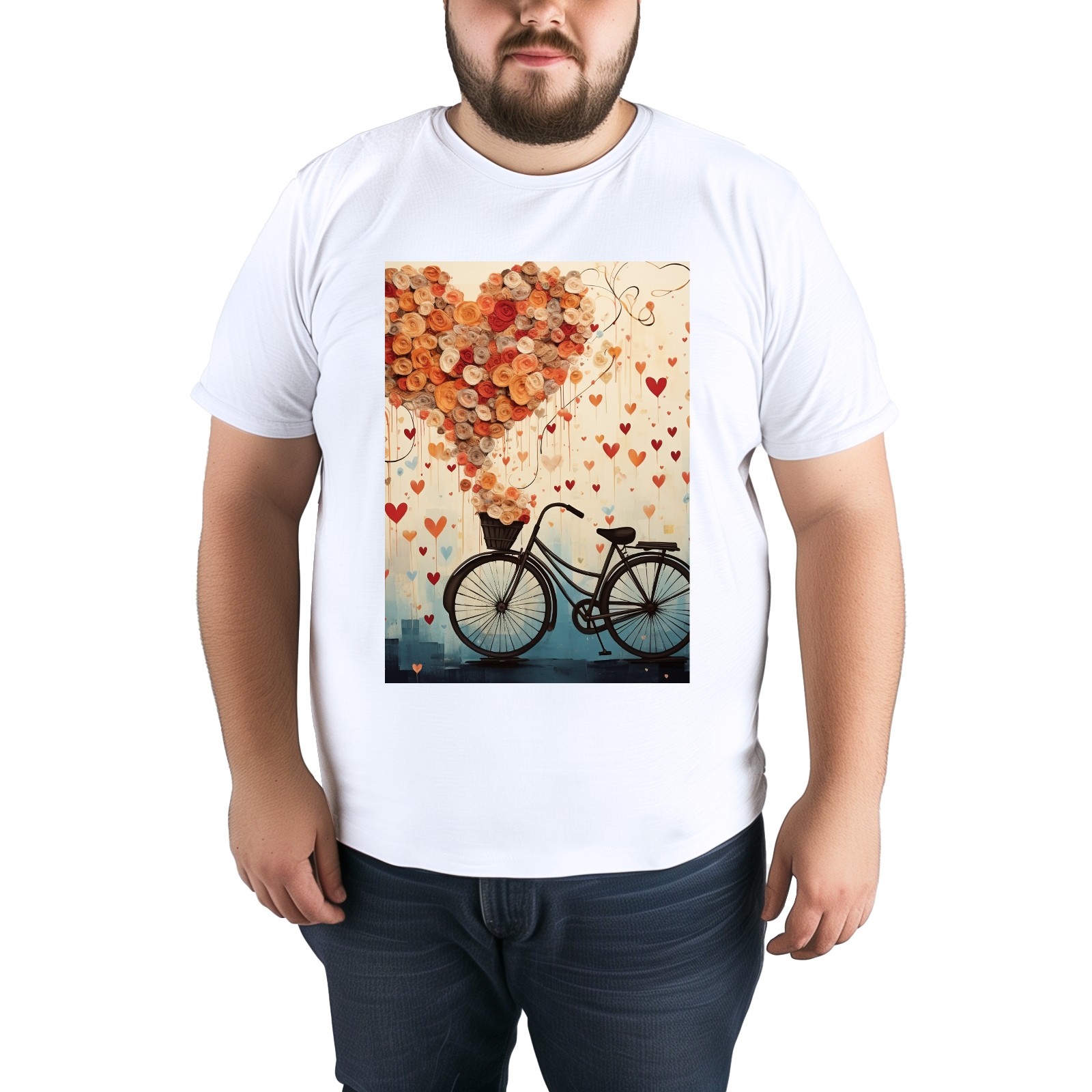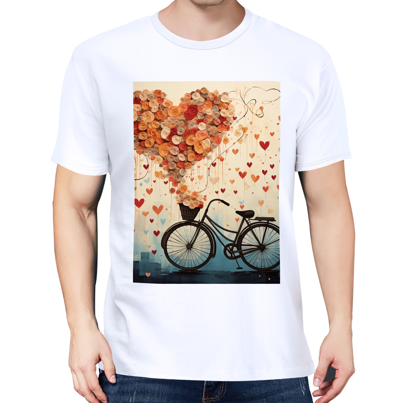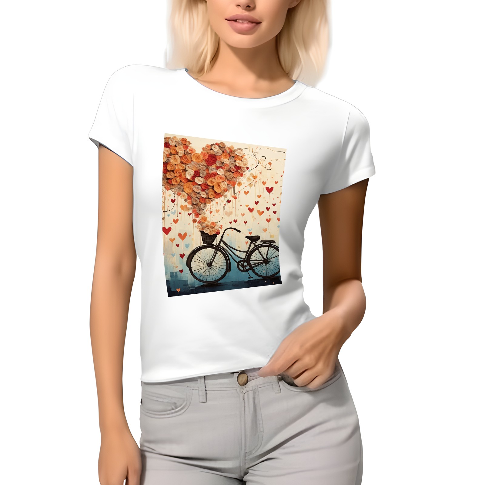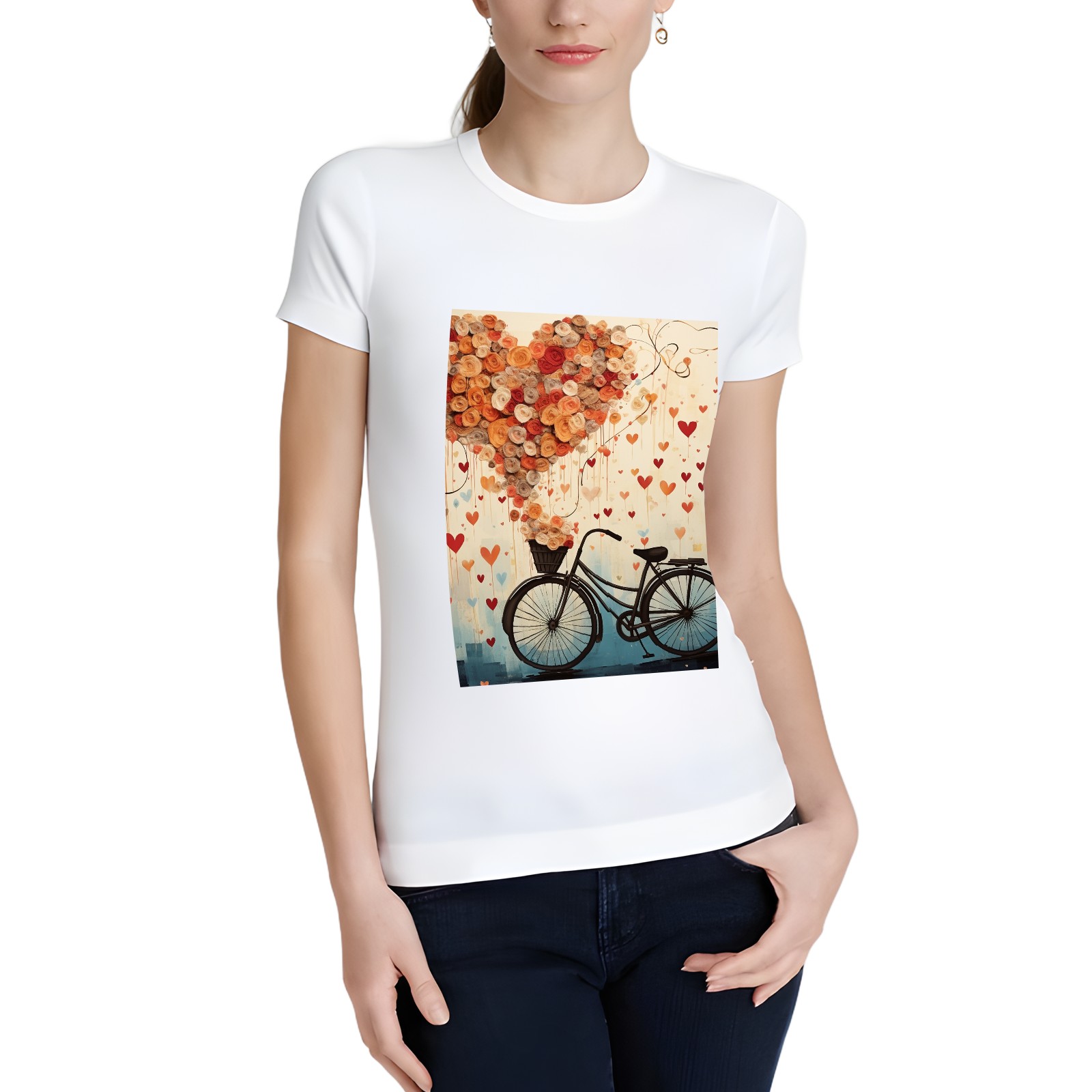Basic Oversize Tees For WomenBicycle With Flying Hearts (3) Loose Boyfriend Shirts Casual Blouse round neck