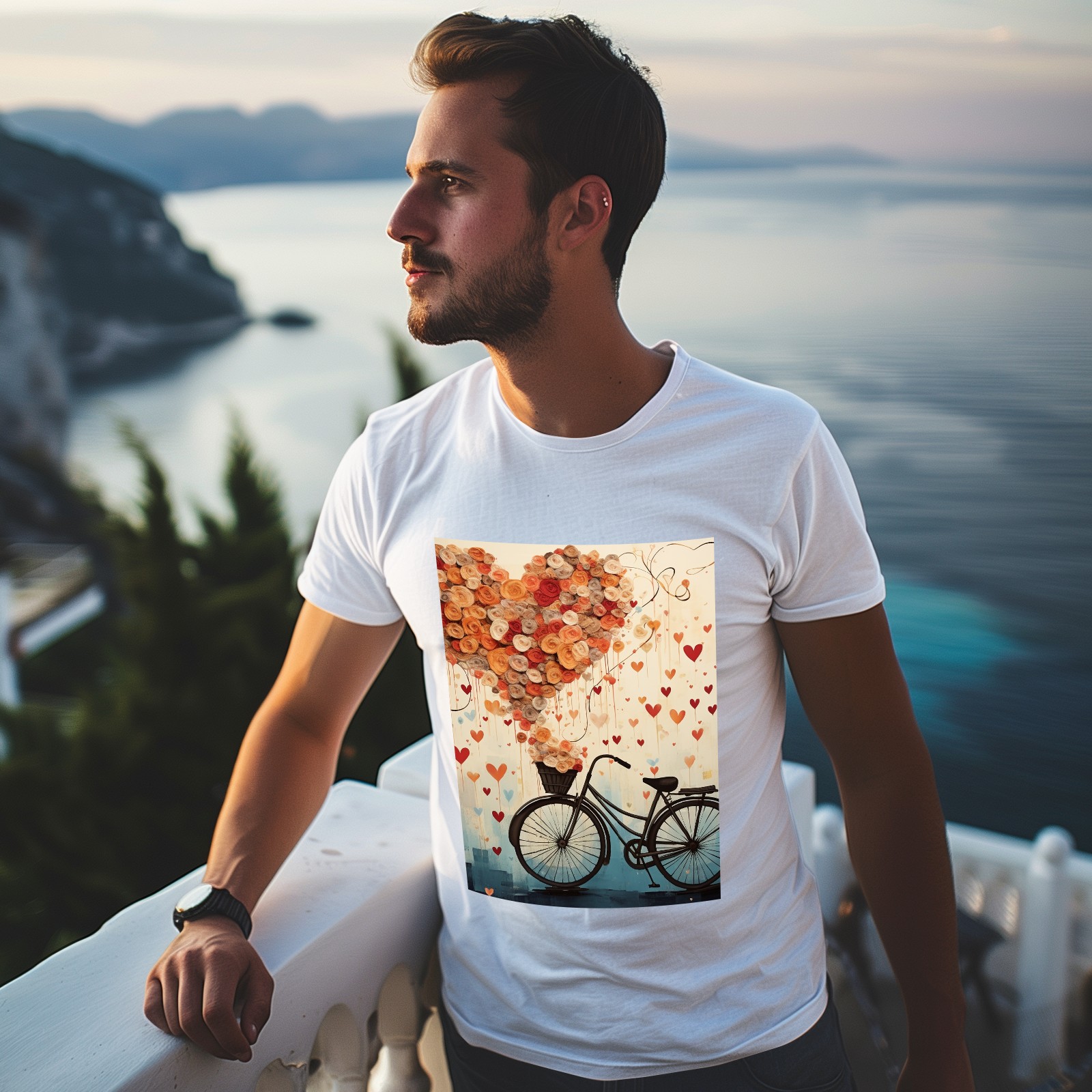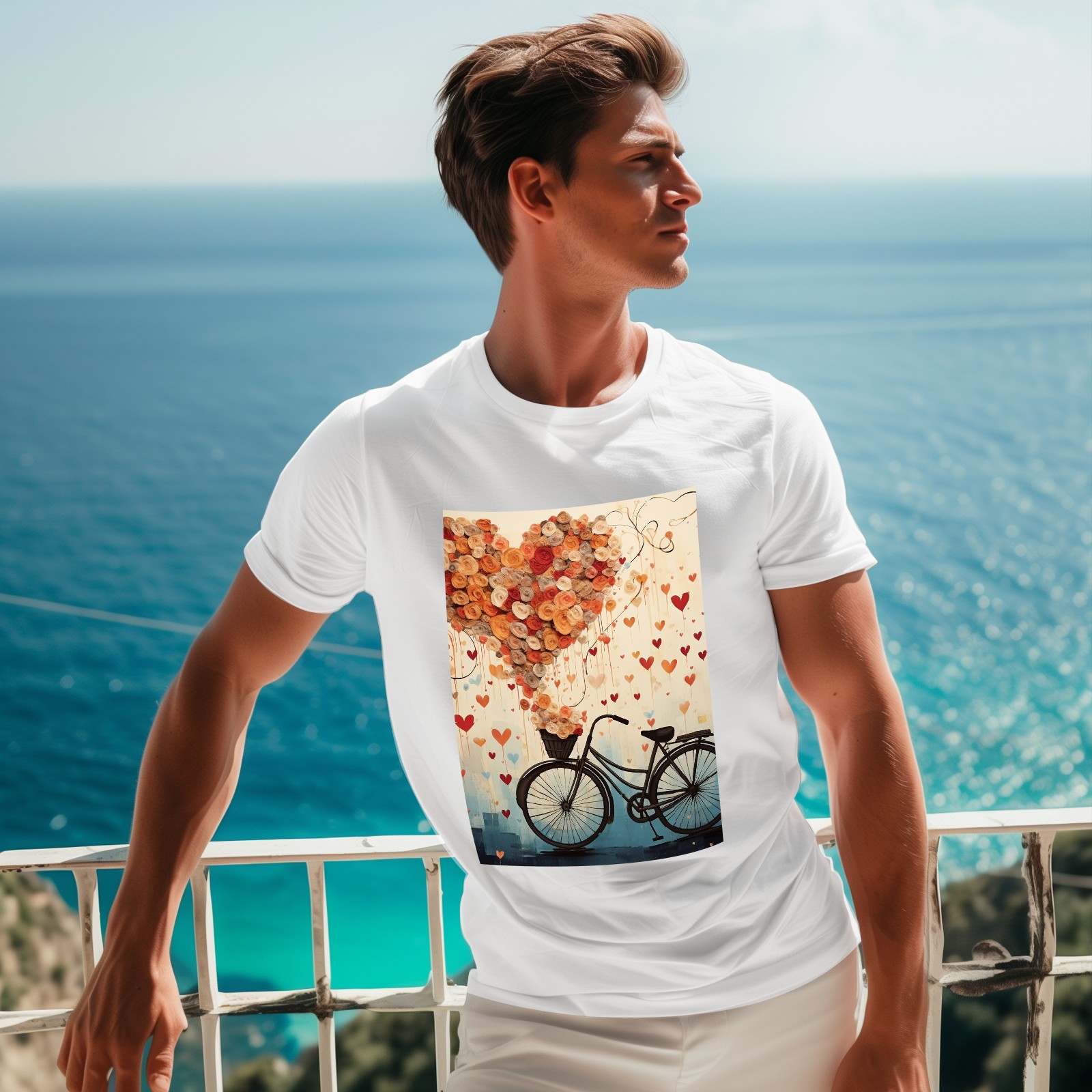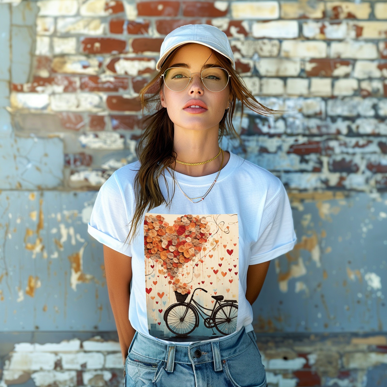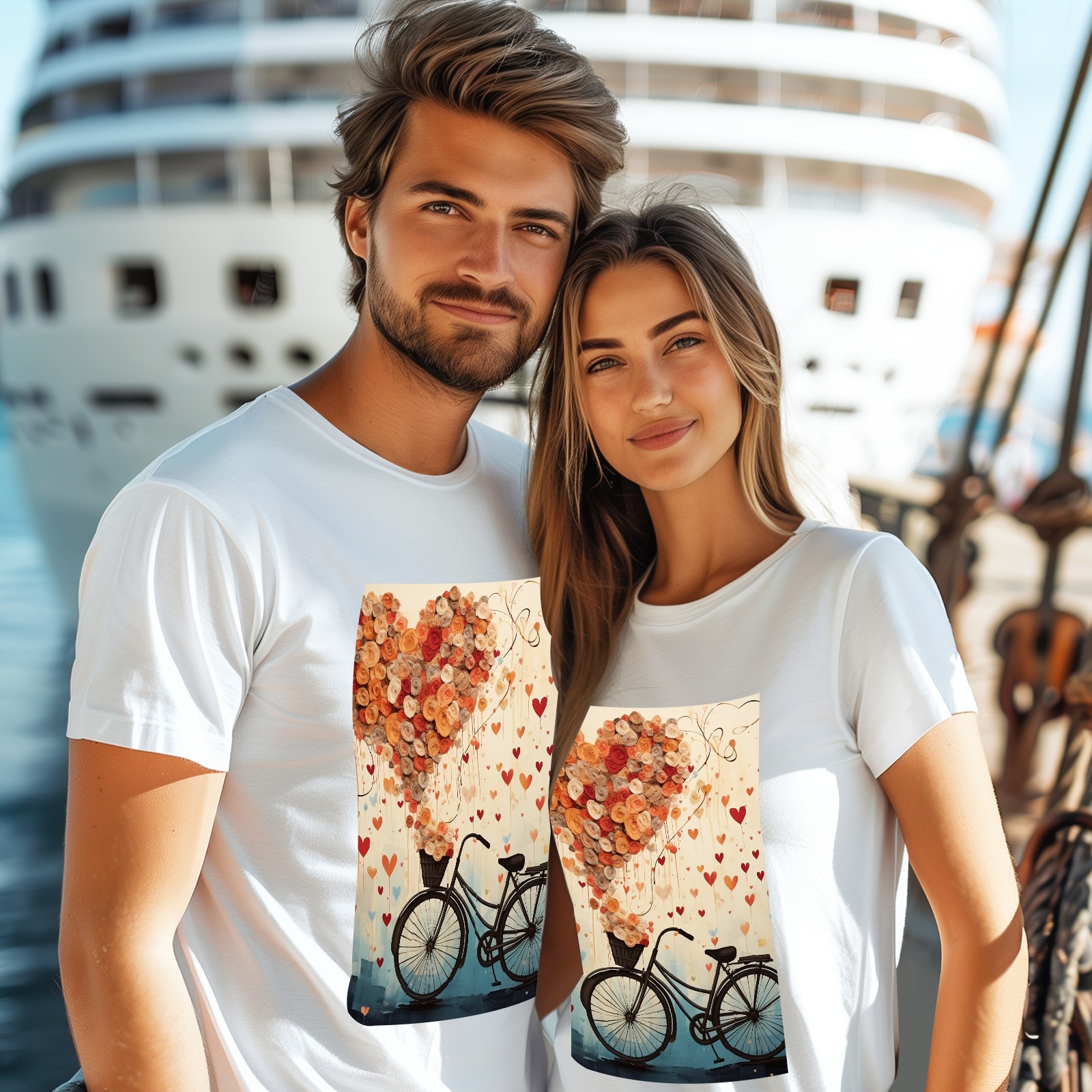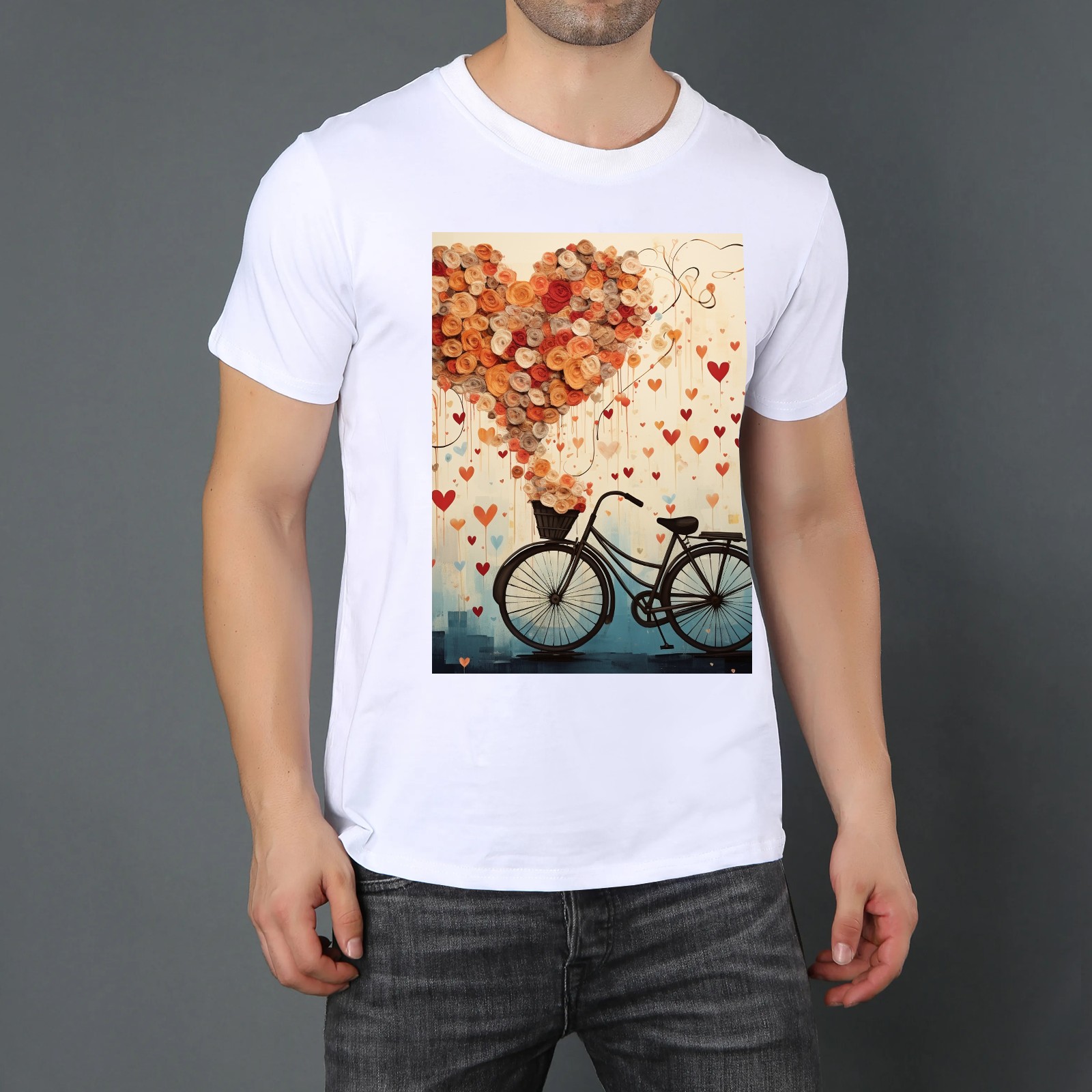 Basic Oversize Tees For WomenBicycle With Flying Hearts (3) Loose Boyfriend Shirts Casual Blouse round neck