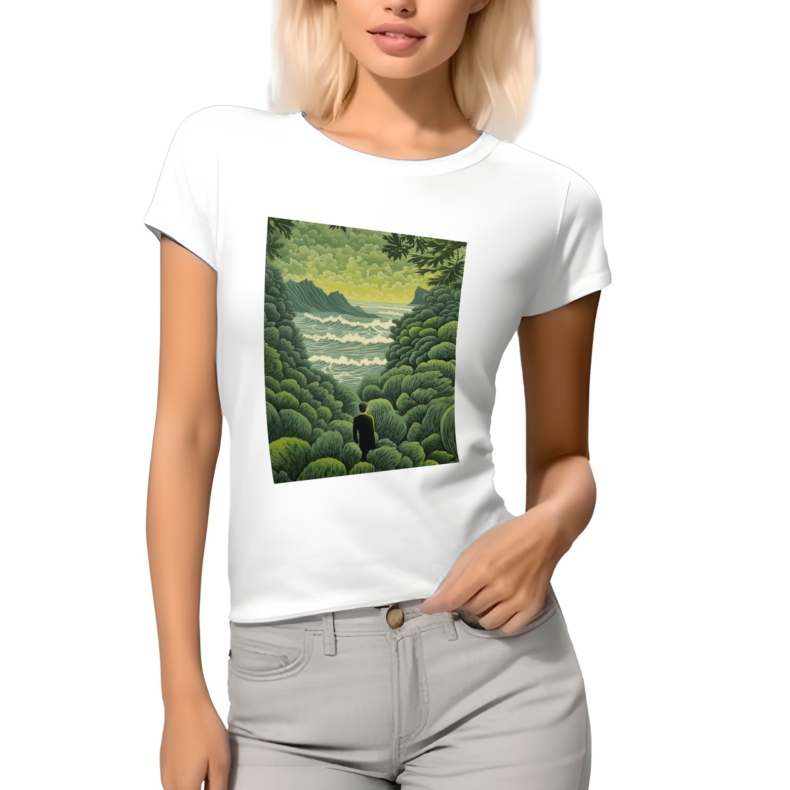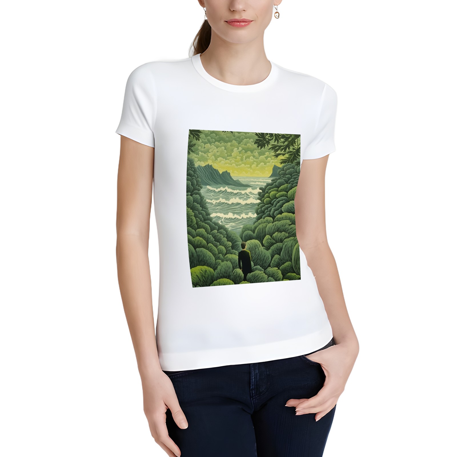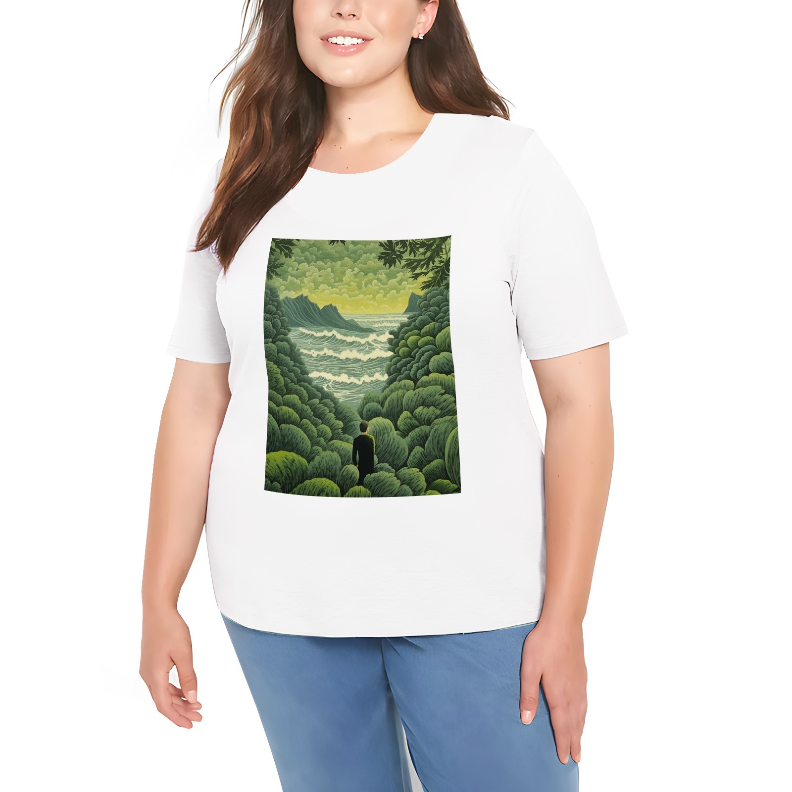 Basic Oversize Tees For WomenSea Waves (4) Loose Boyfriend Shirts Casual Blouse round neck