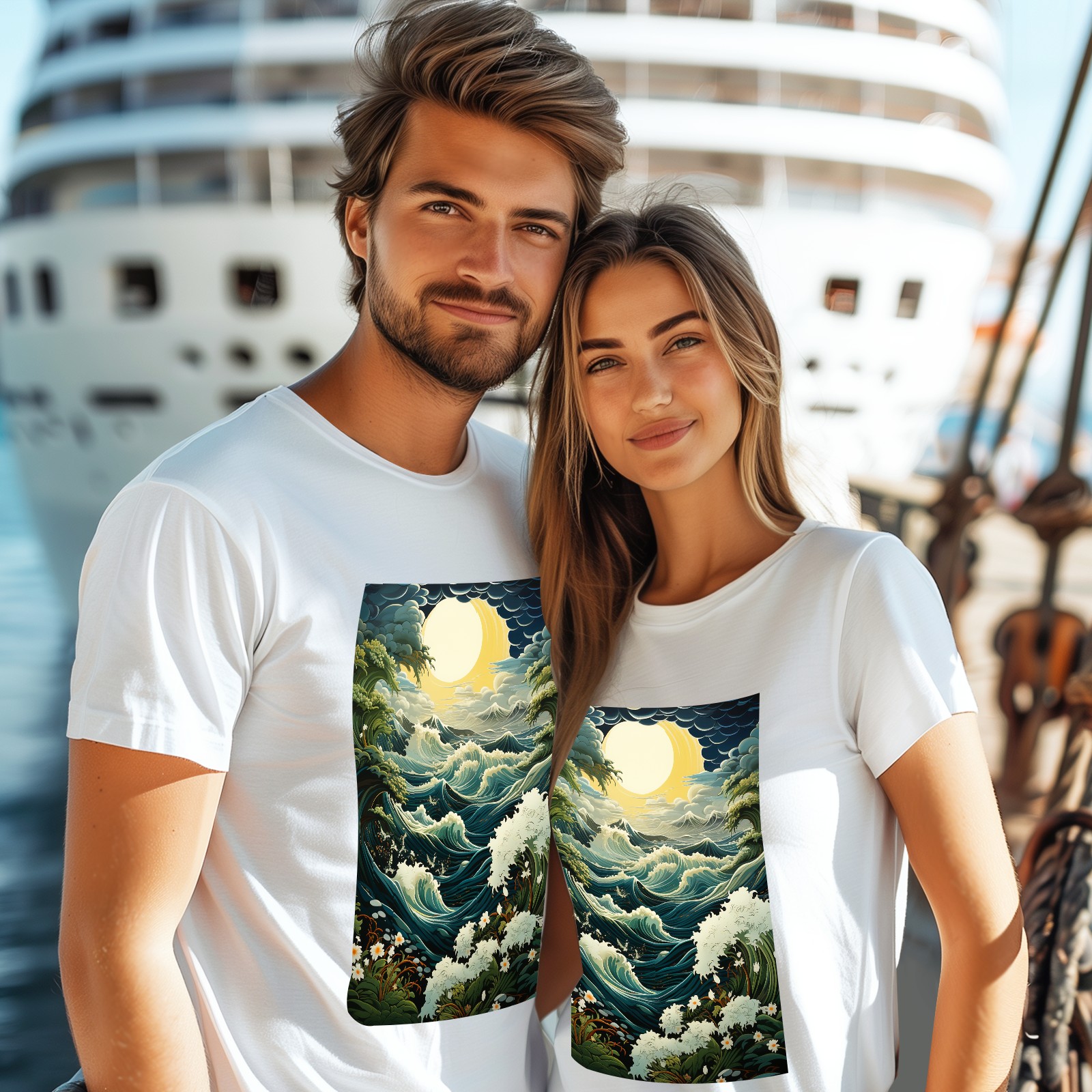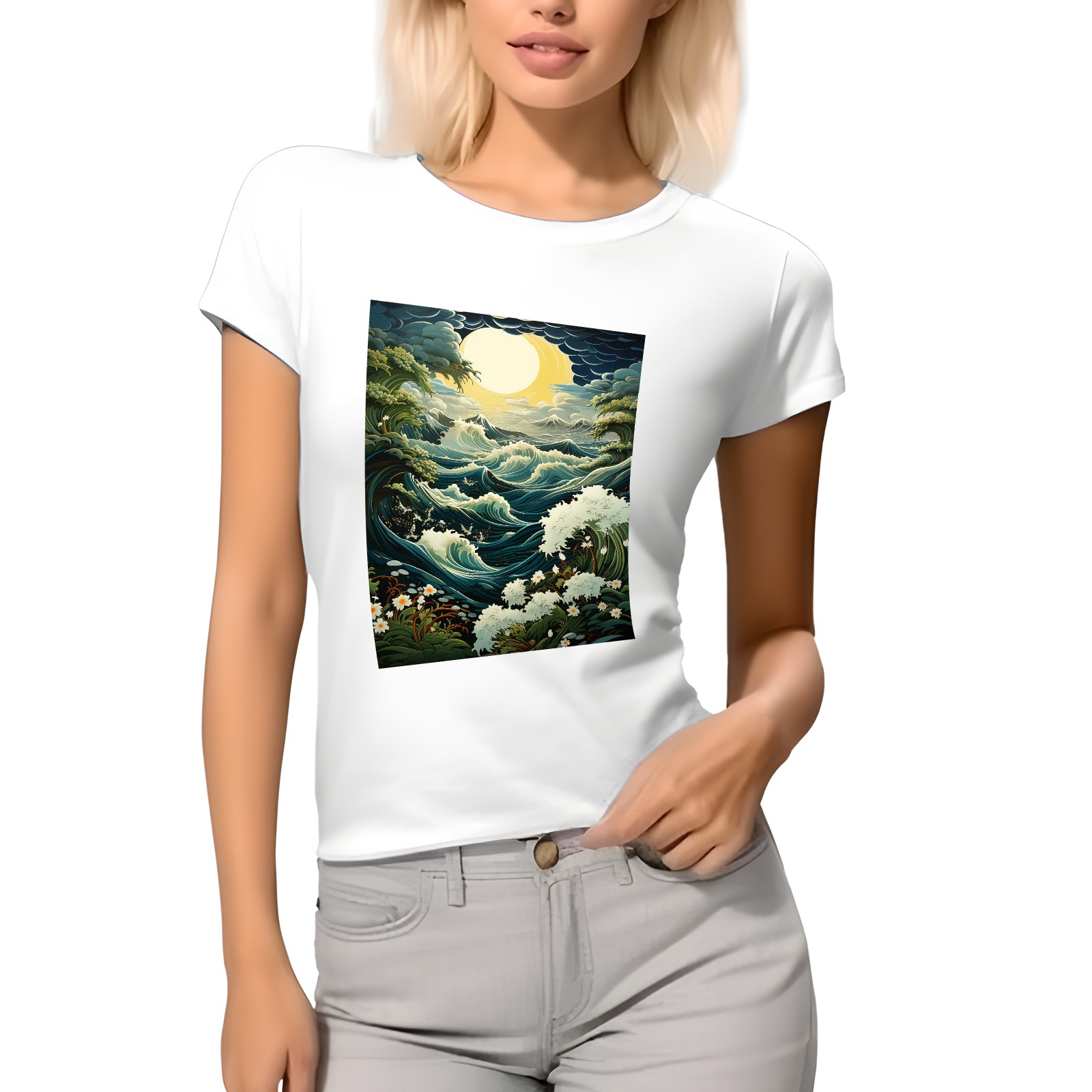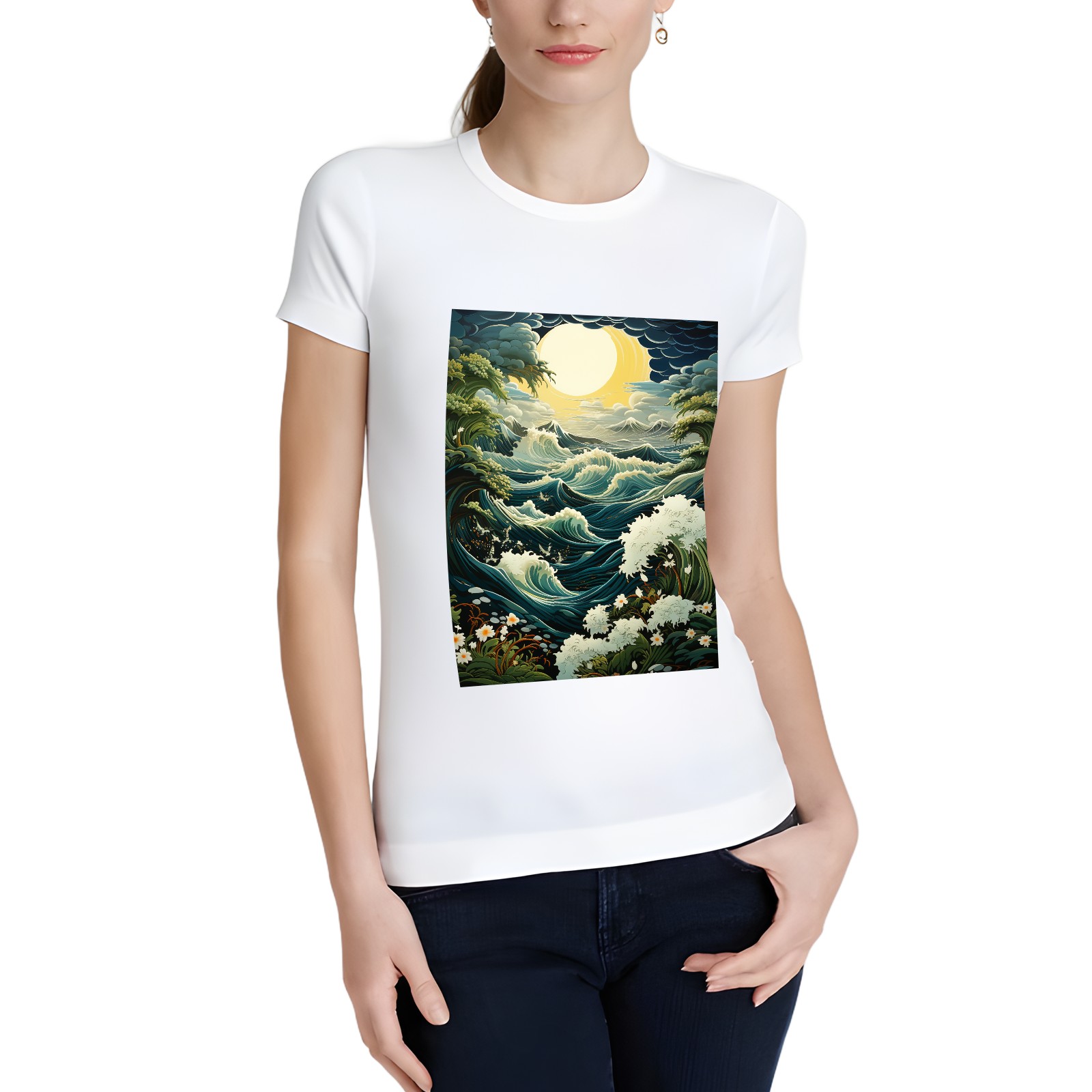Basic Oversize Tees For WomenSea And Wave (3) Loose Boyfriend Shirts Casual Blouse round neck