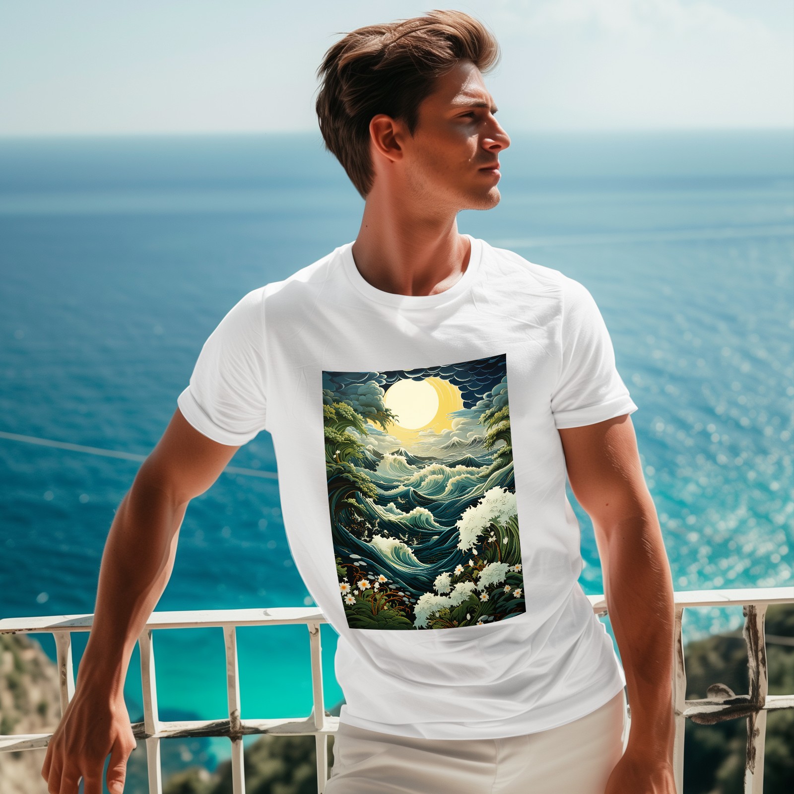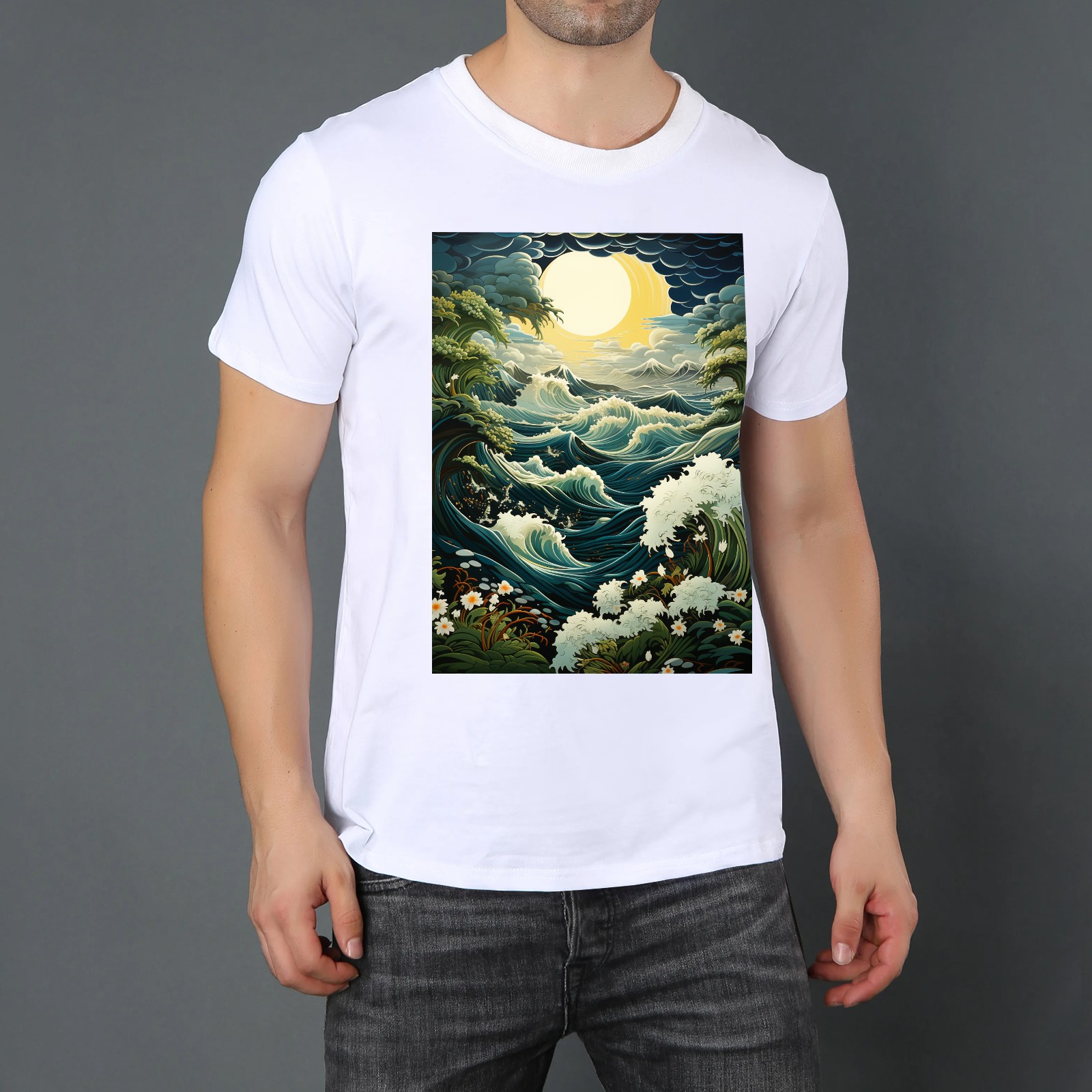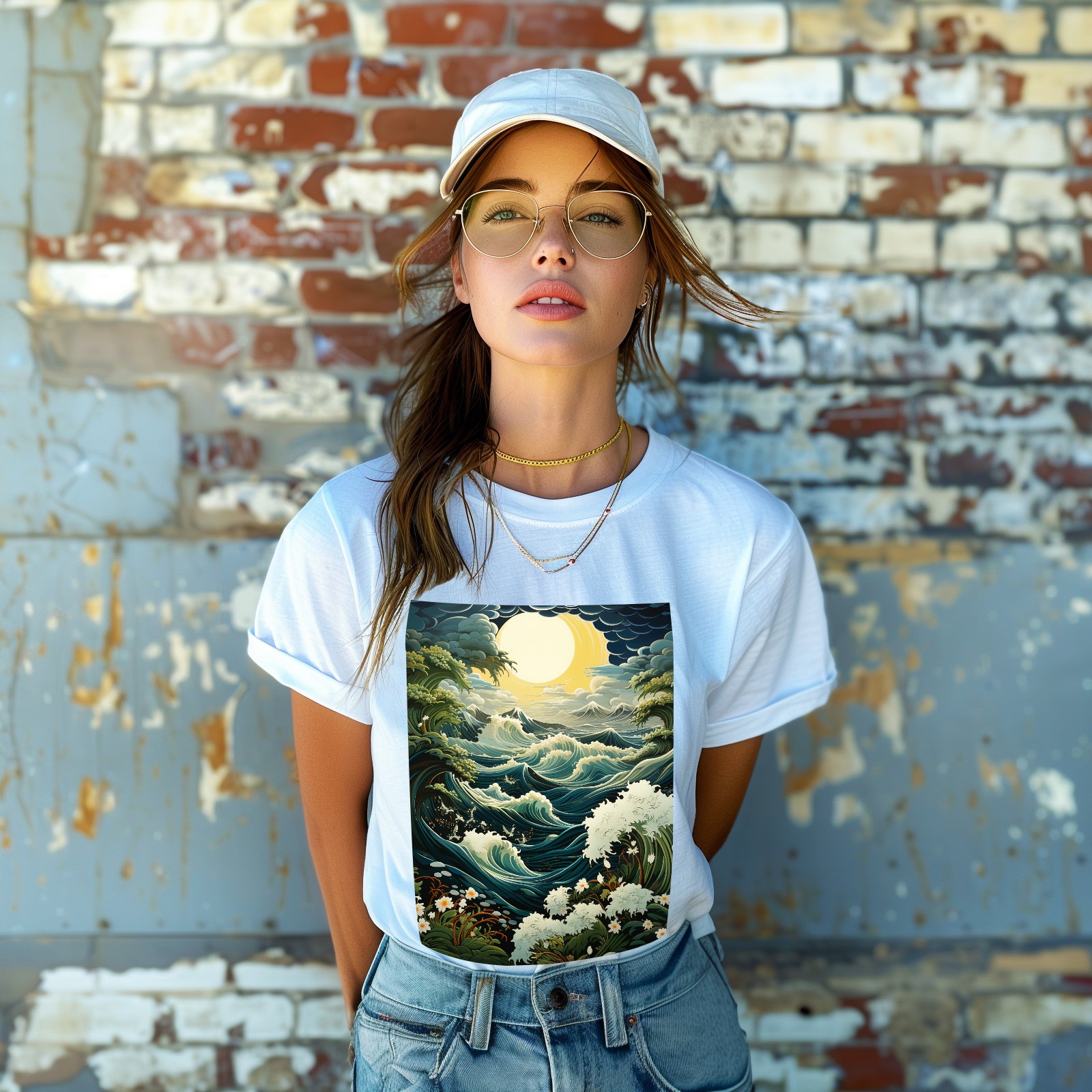 Basic Oversize Tees For WomenSea And Wave (3) Loose Boyfriend Shirts Casual Blouse round neck