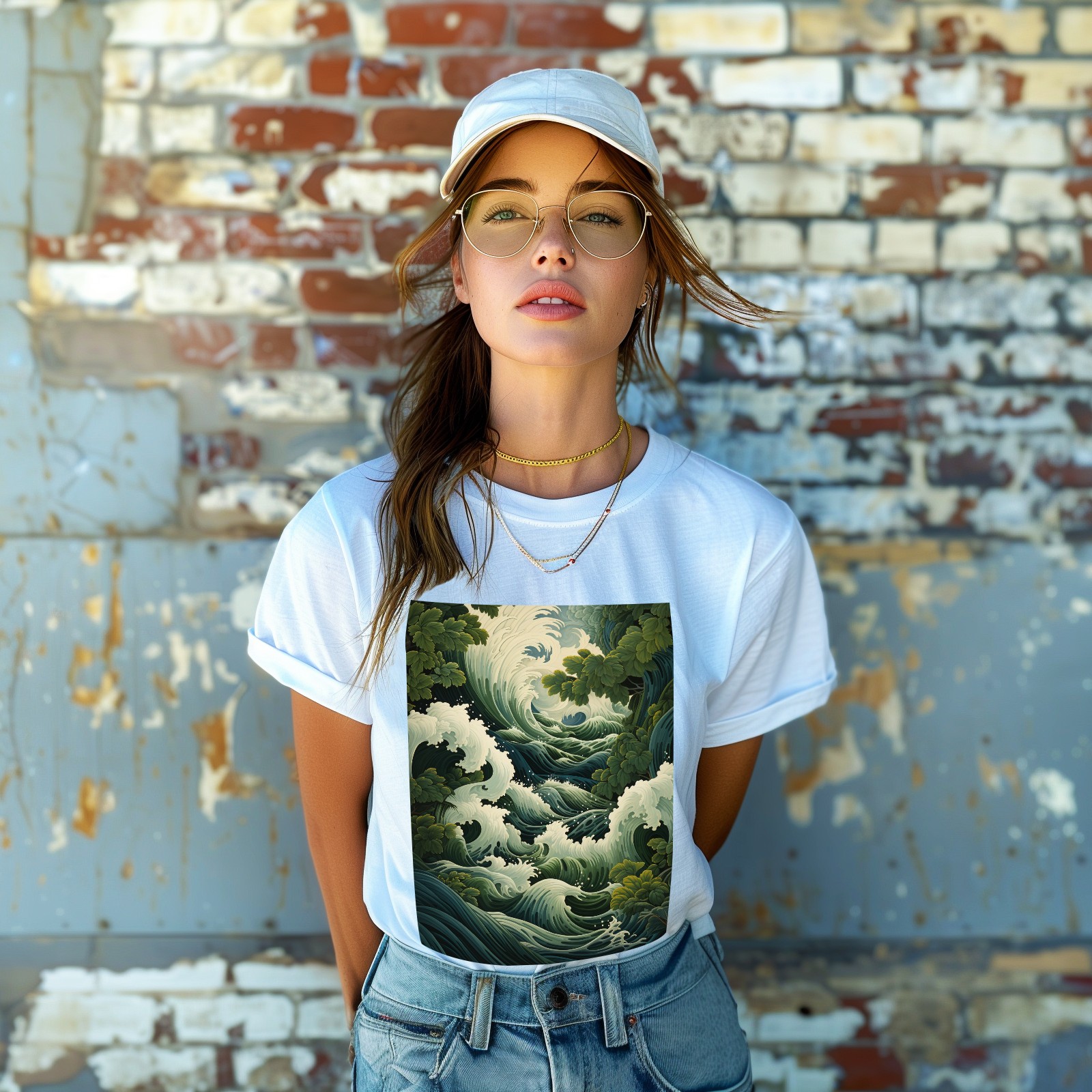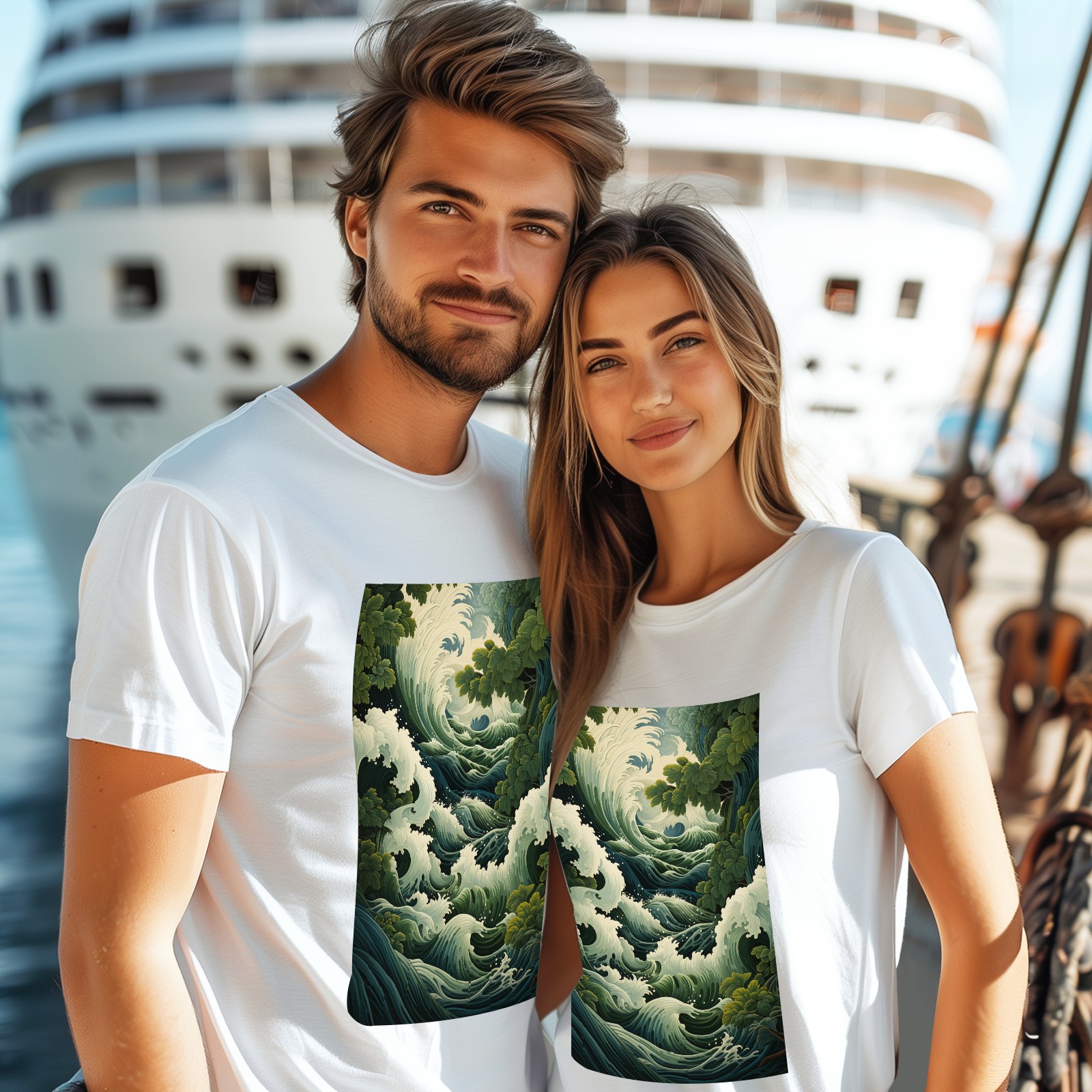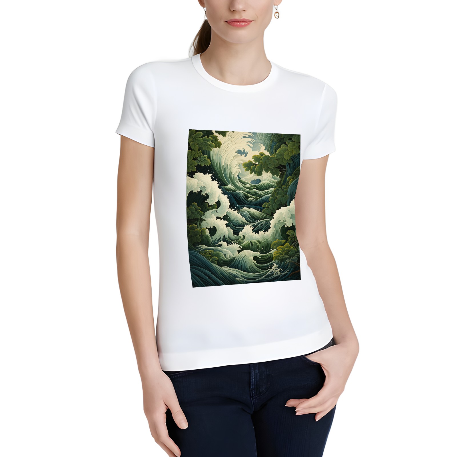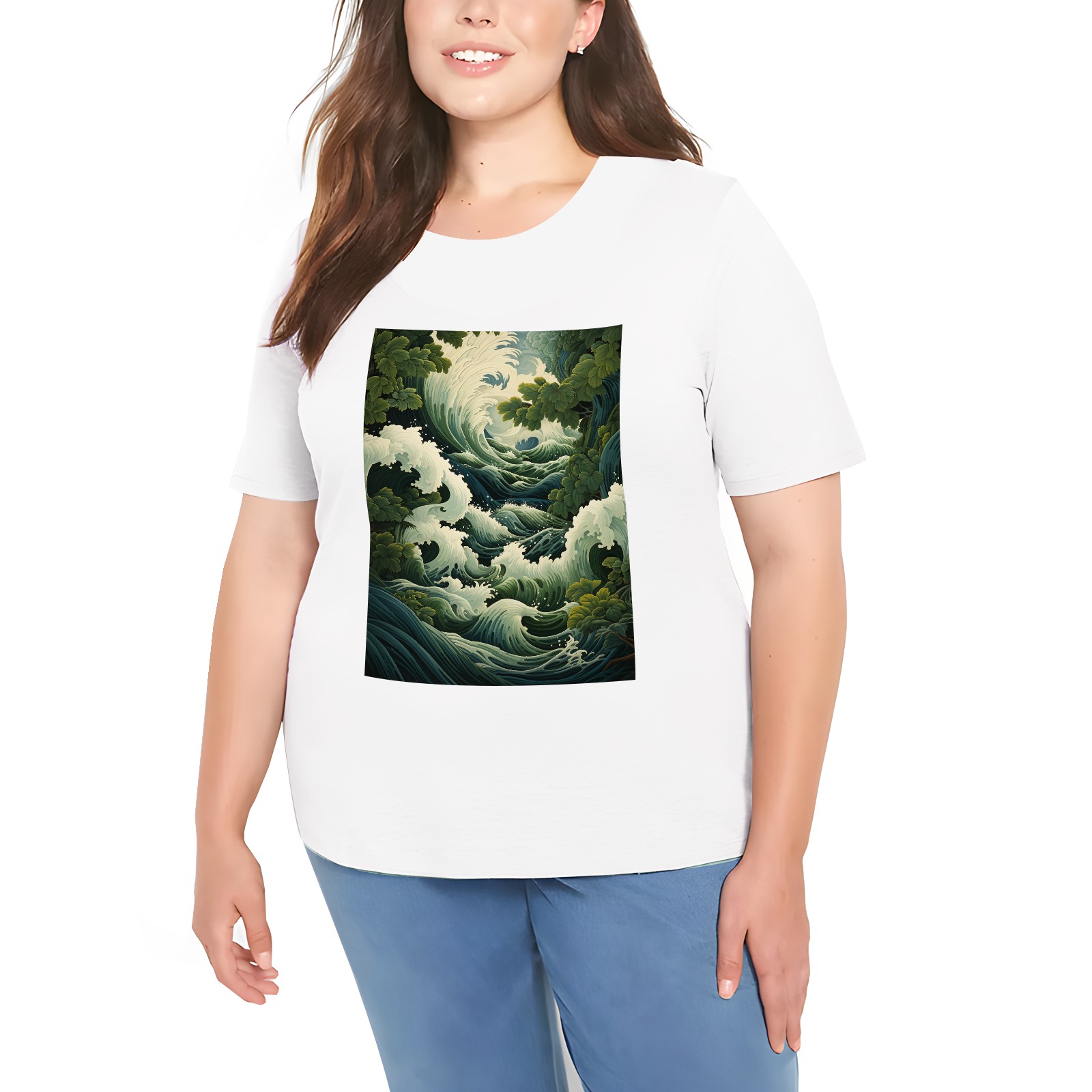 Basic Oversize Tees For WomenSea And Wave (2) Loose Boyfriend Shirts Casual Blouse round neck