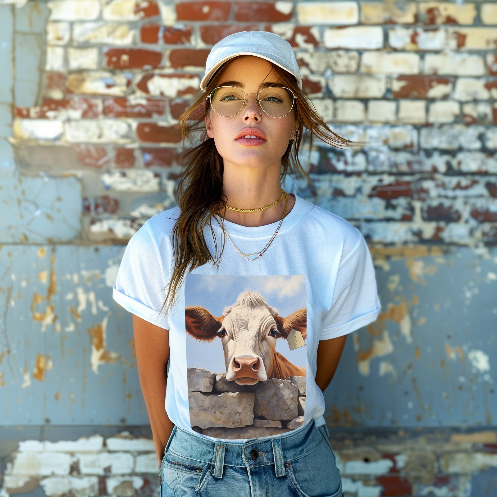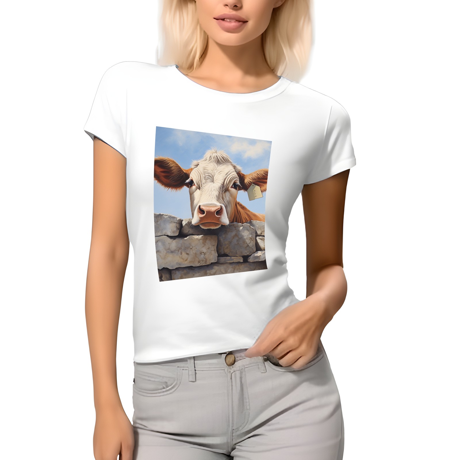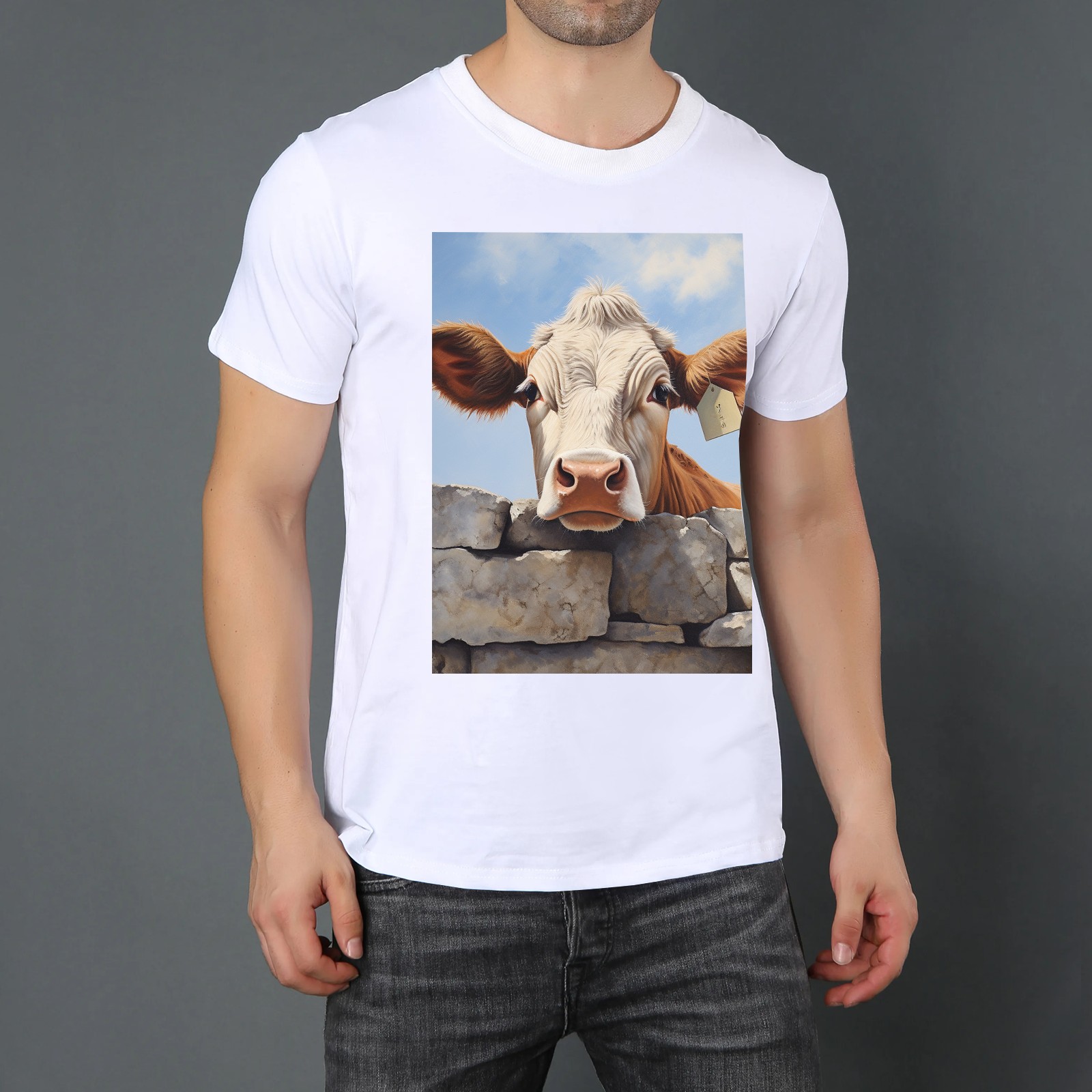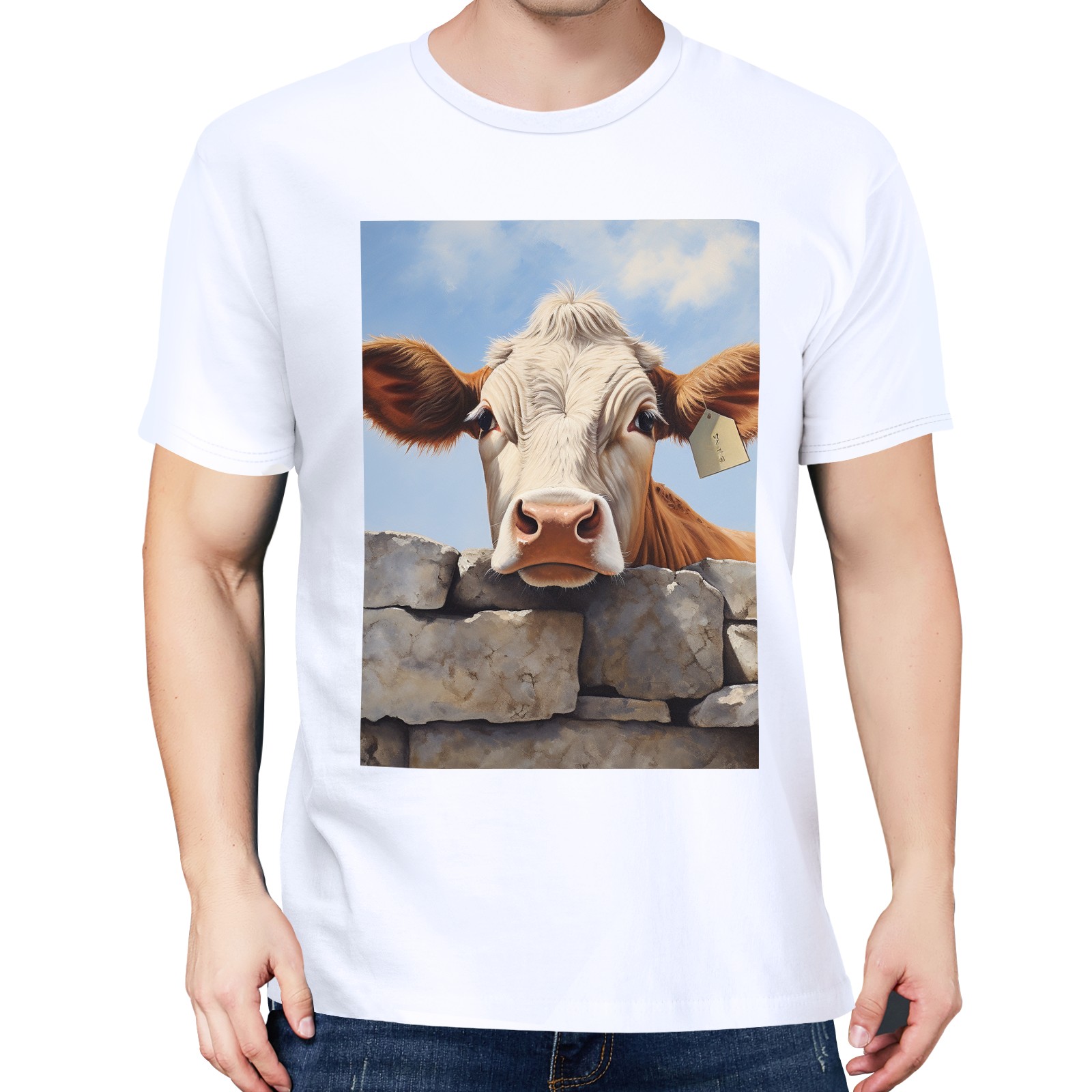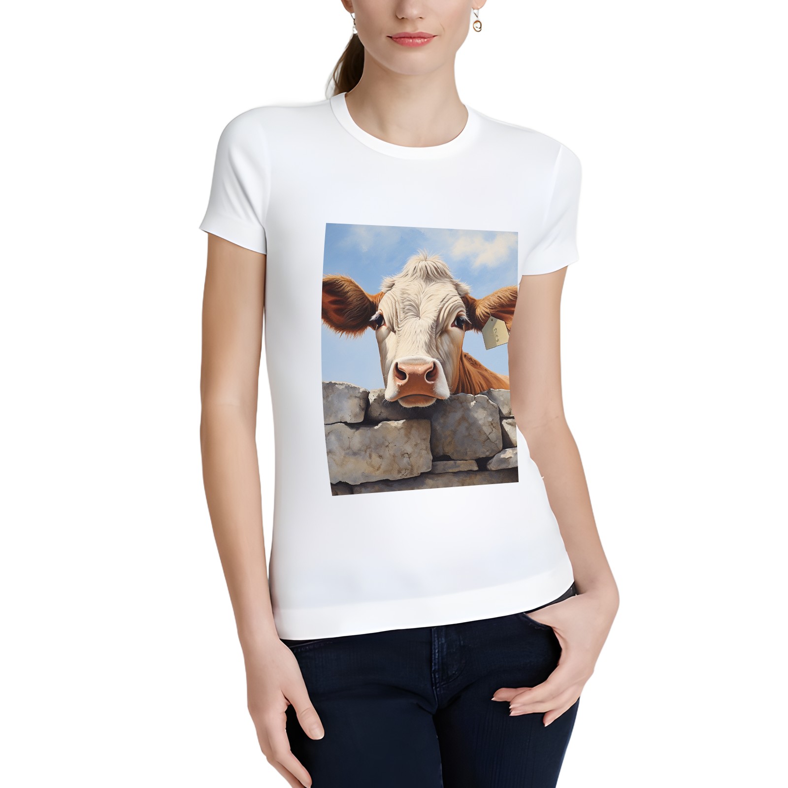 Basic Oversize Tees For WomenCow Loose Boyfriend Shirts Casual Blouse round neck