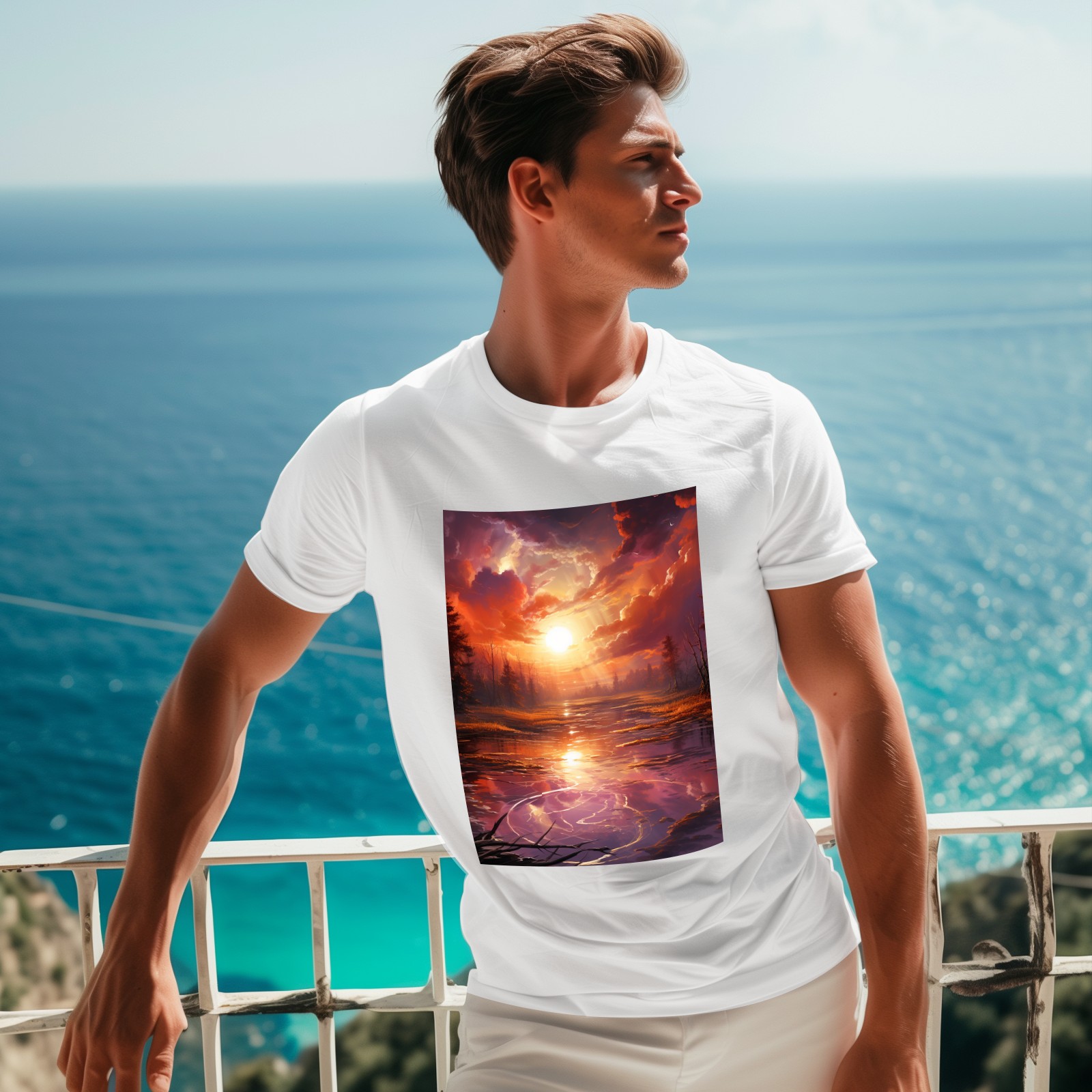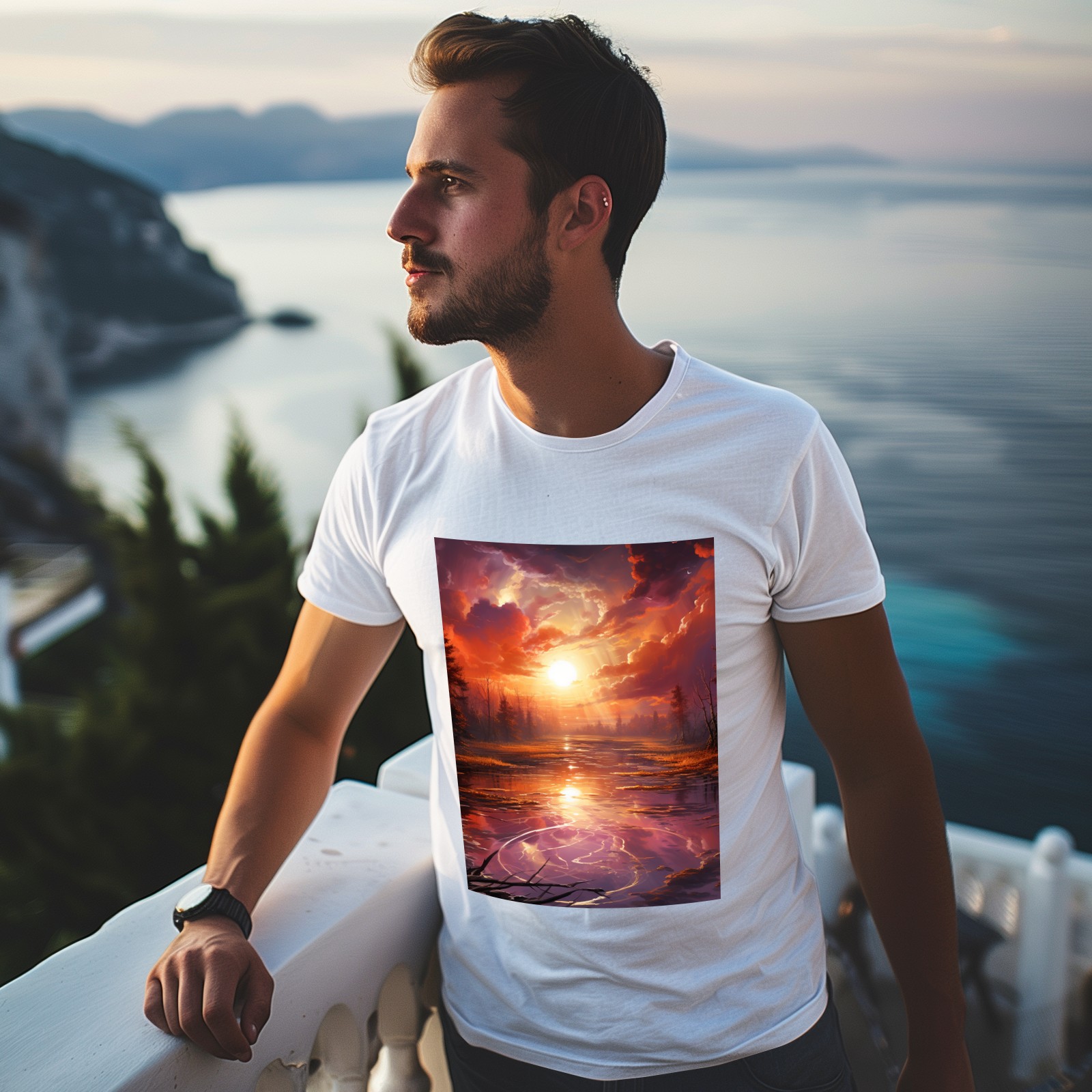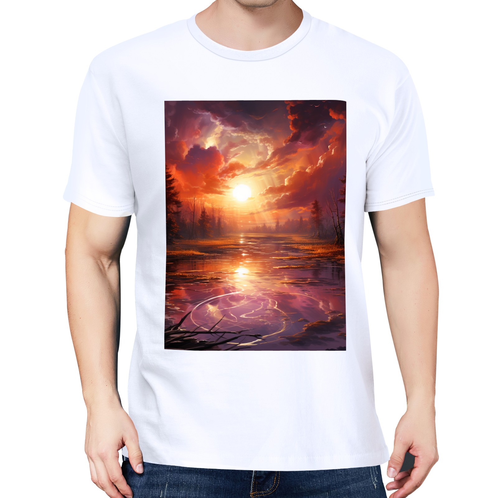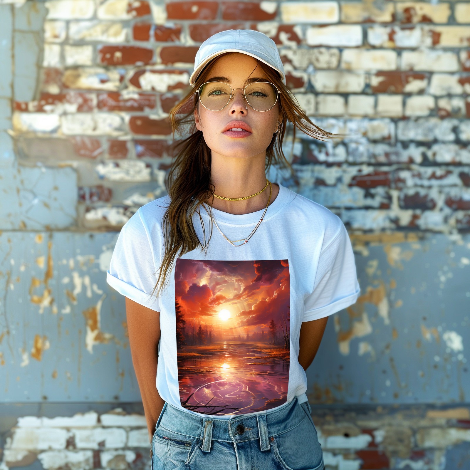 Basic Oversize Tees For WomenBjkj_the_sun_is_shining_in_the_sky_and_clouds_reflect_in_the_s_ebda31cf-0f14-4b2f-ac7e-b61f34b871ba Loose Boyfriend Shirts Casual Blouse round neck