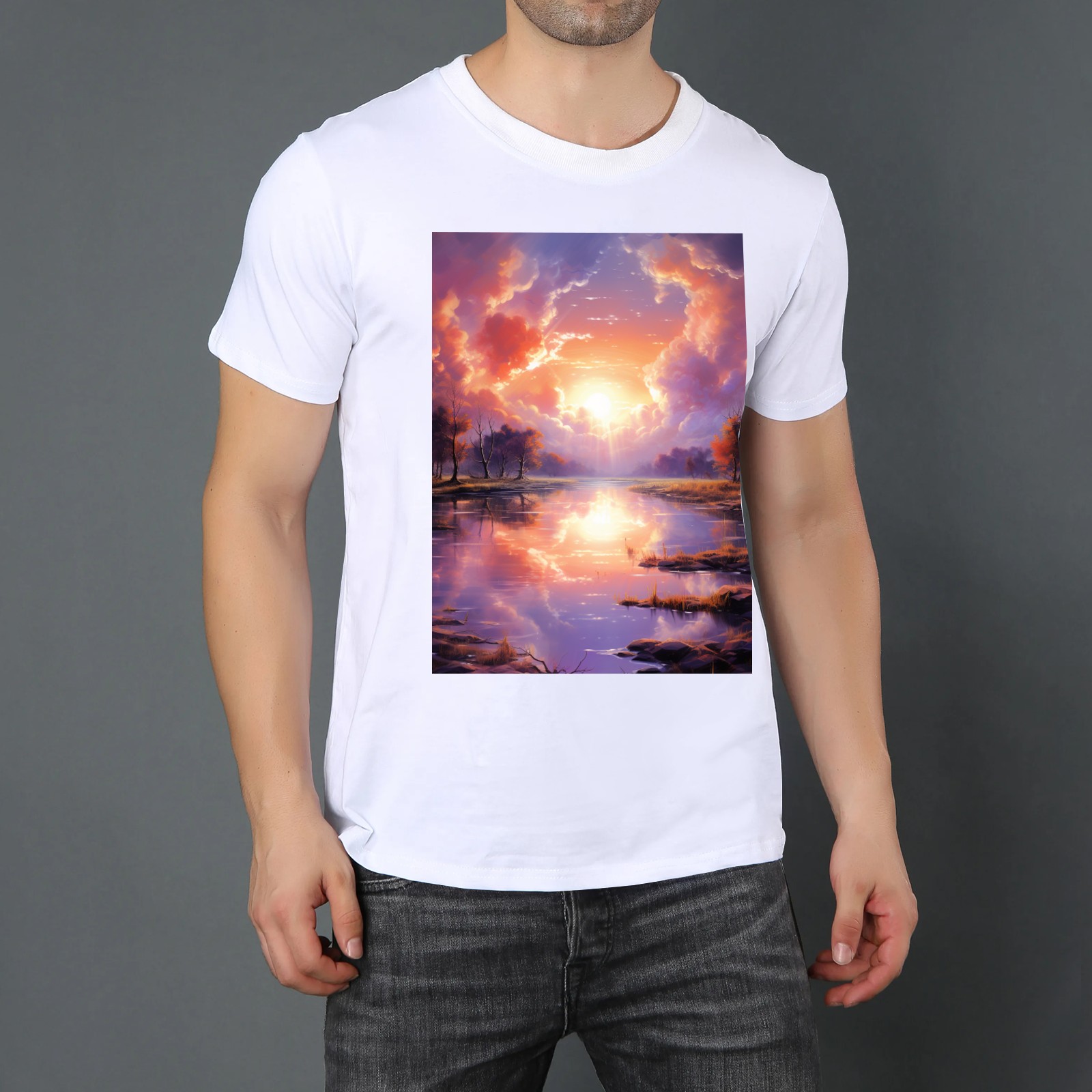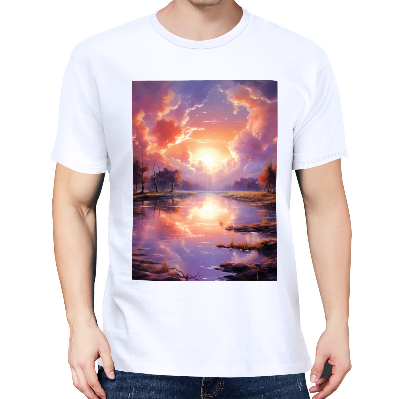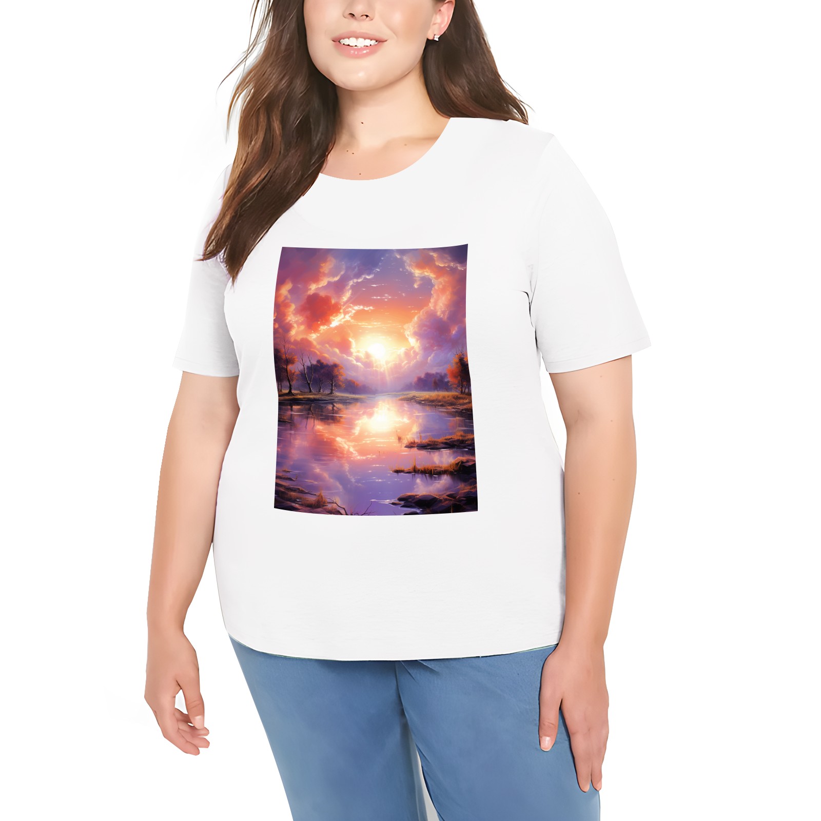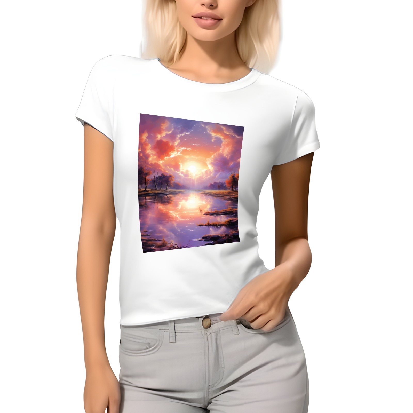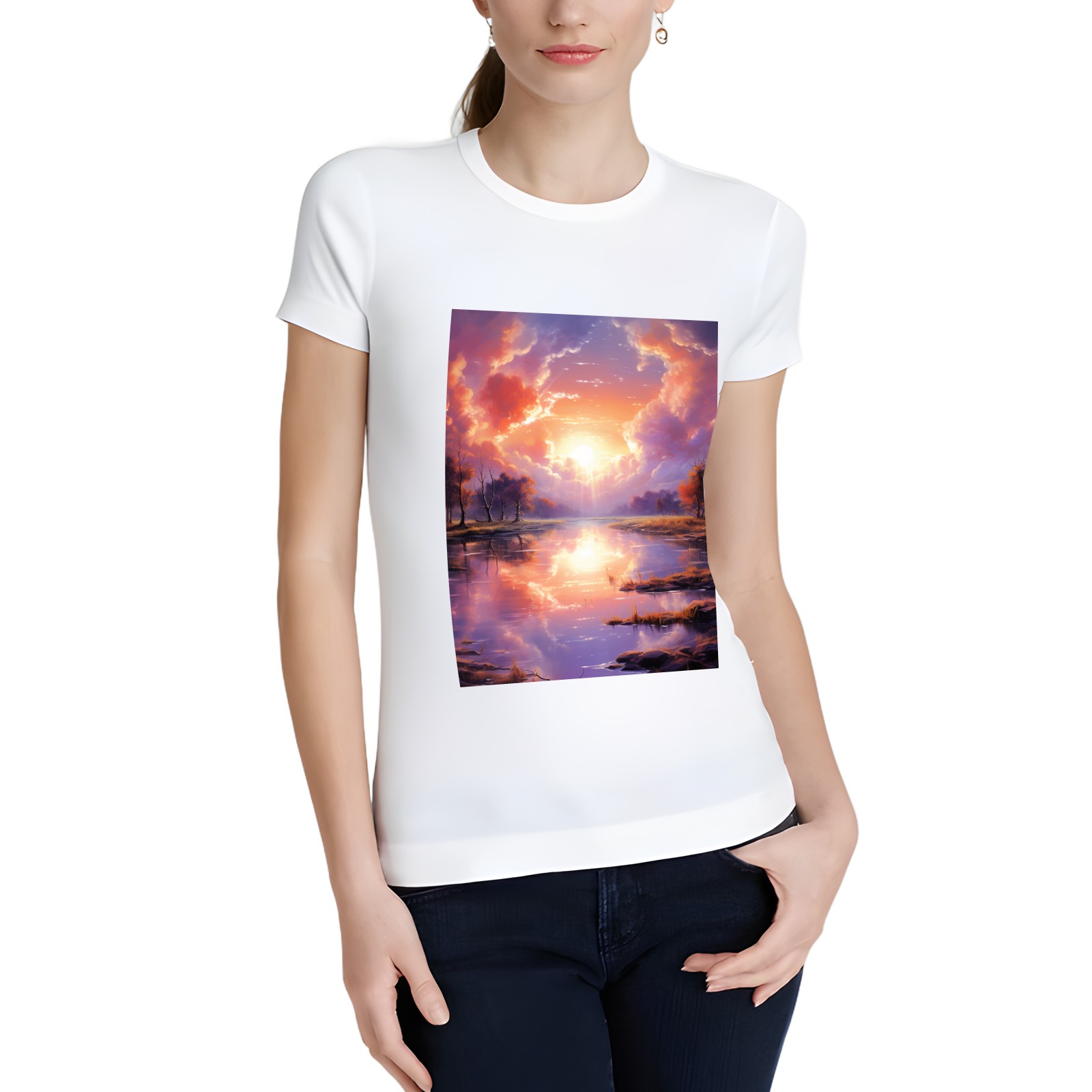 Basic Oversize Tees For WomenBjkj_the_sun_is_shining_in_the_sky_and_clouds_reflect_in_the_s_1c8b8f55-d973-4a02-be72-37d53789524c Loose Boyfriend Shirts Casual Blouse round neck