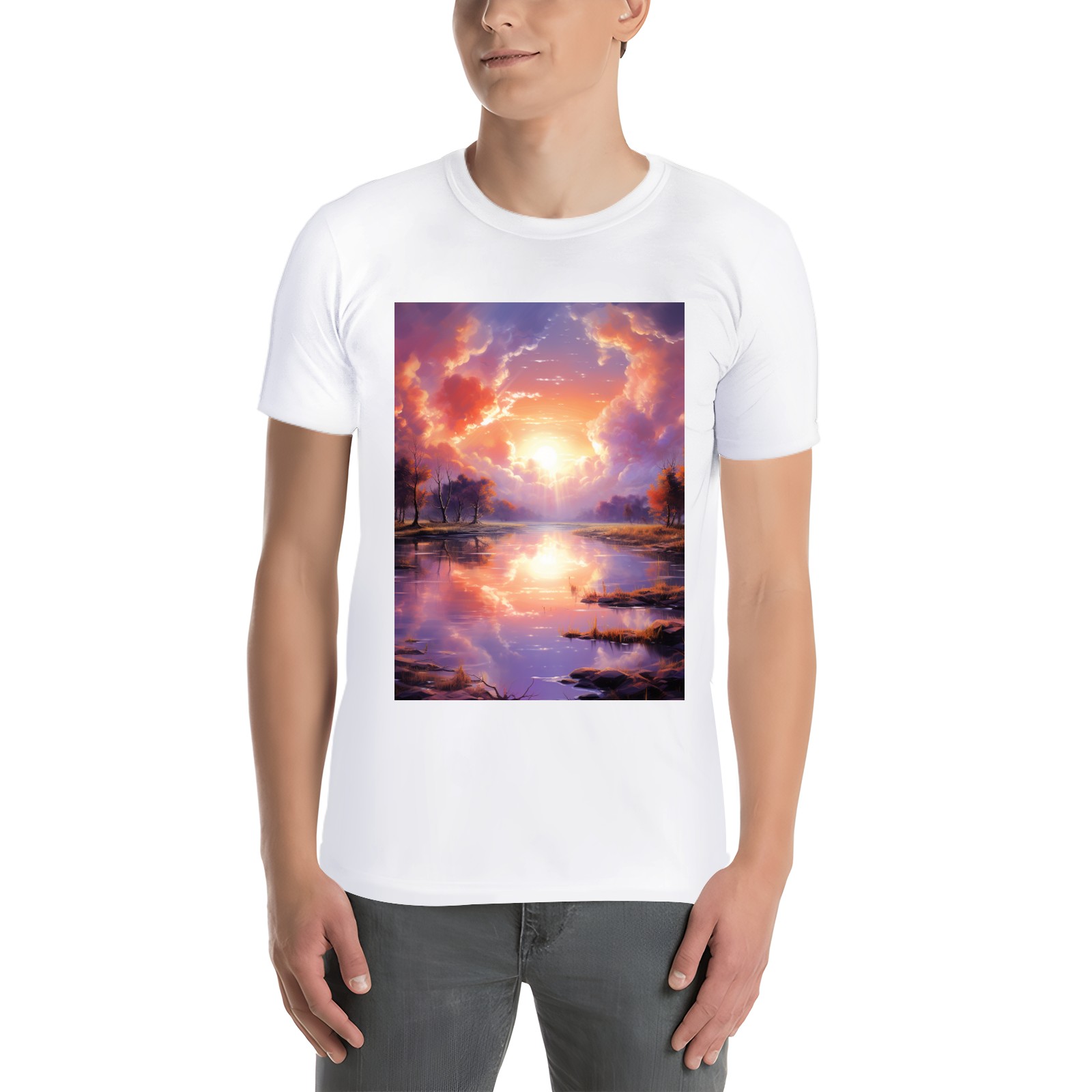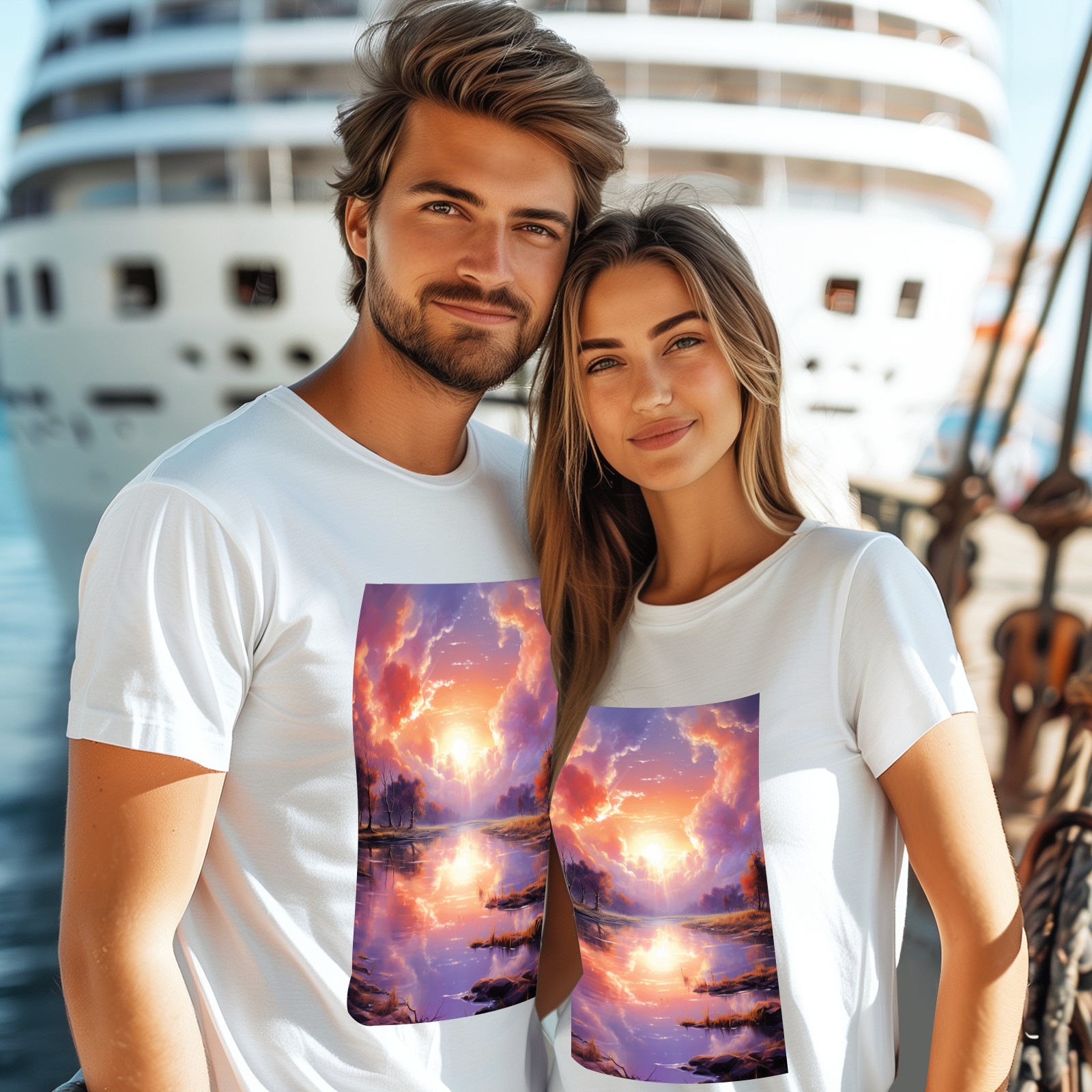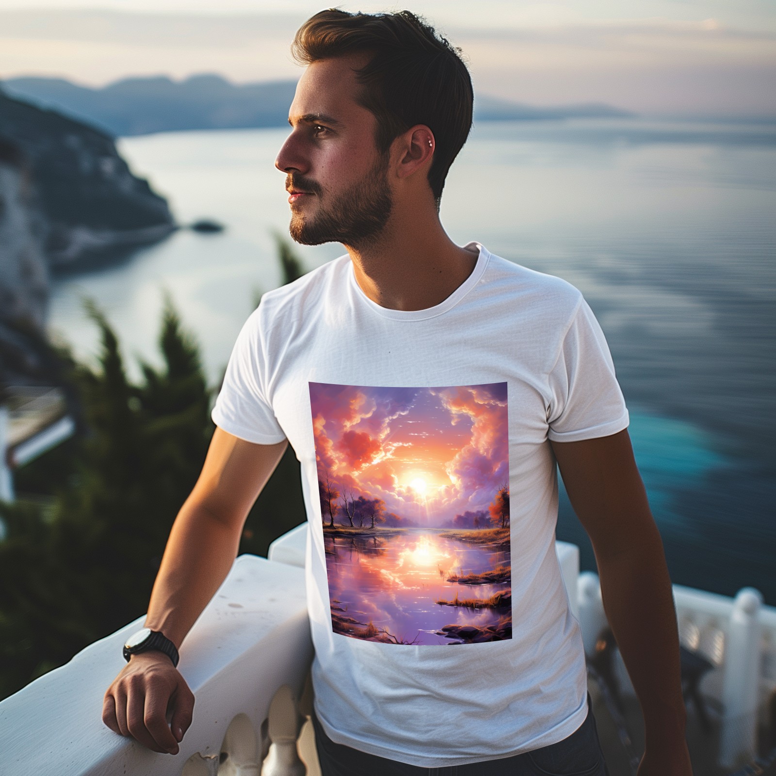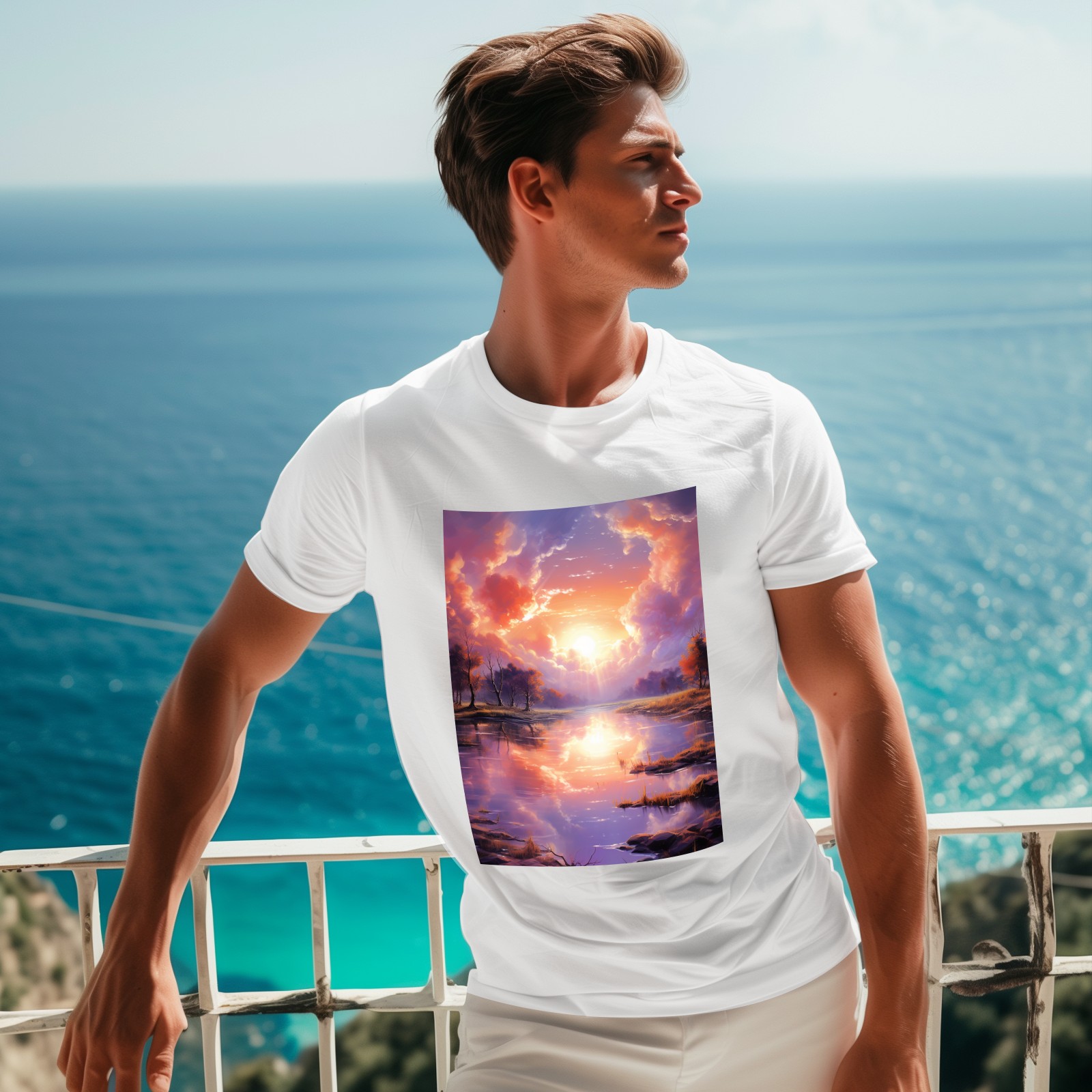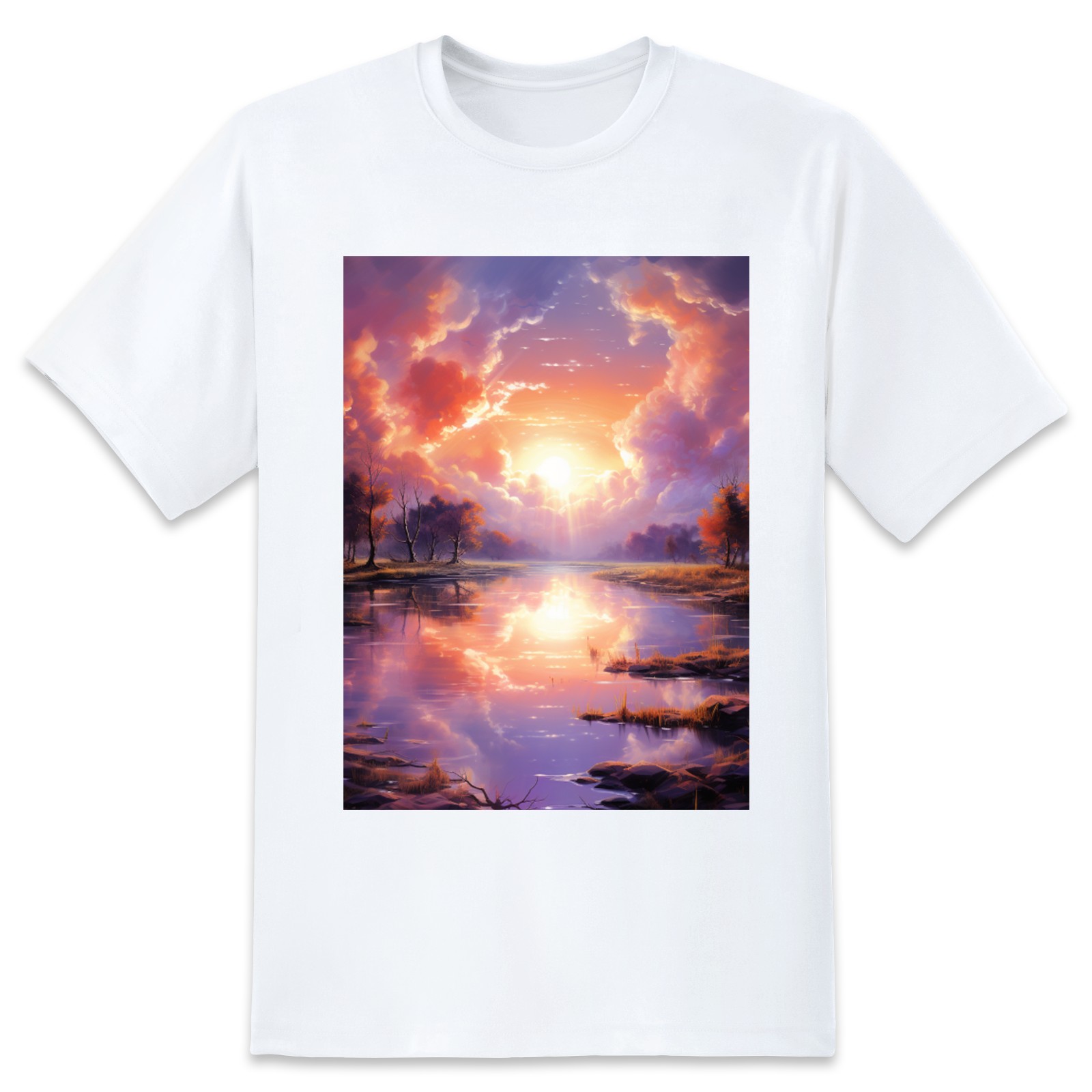 Basic Oversize Tees For WomenBjkj_the_sun_is_shining_in_the_sky_and_clouds_reflect_in_the_s_1c8b8f55-d973-4a02-be72-37d53789524c Loose Boyfriend Shirts Casual Blouse round neck