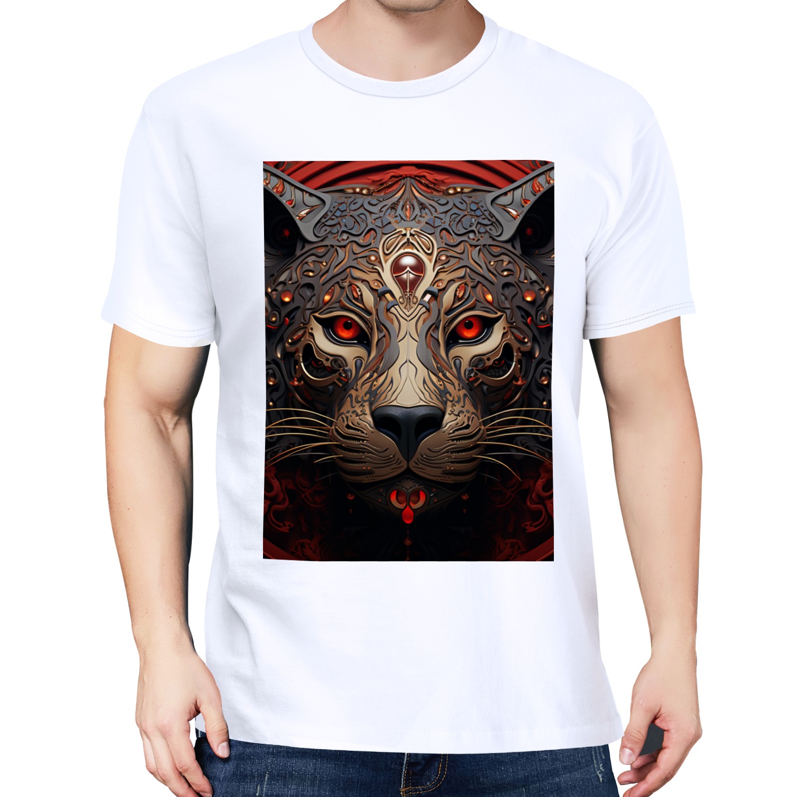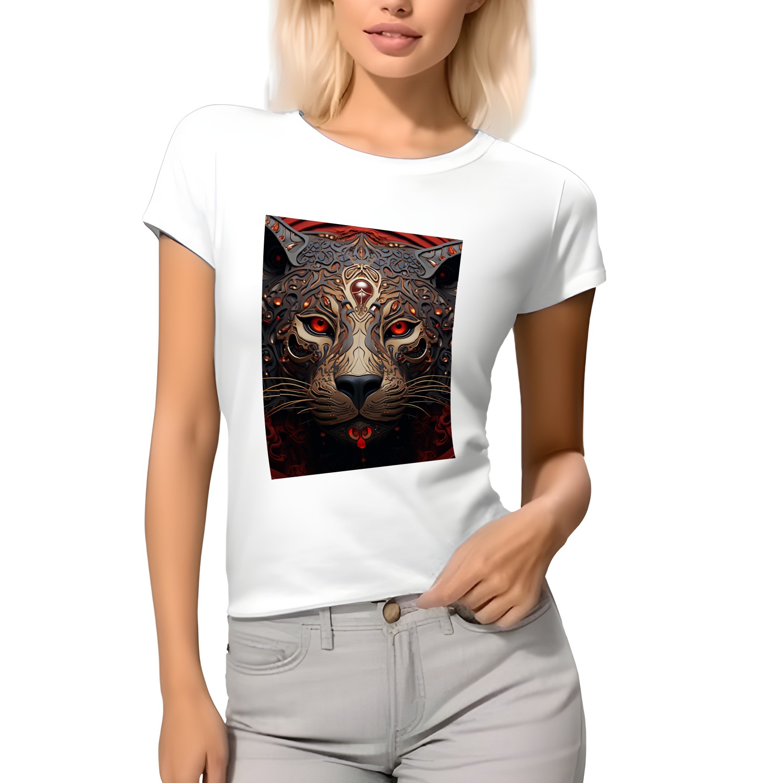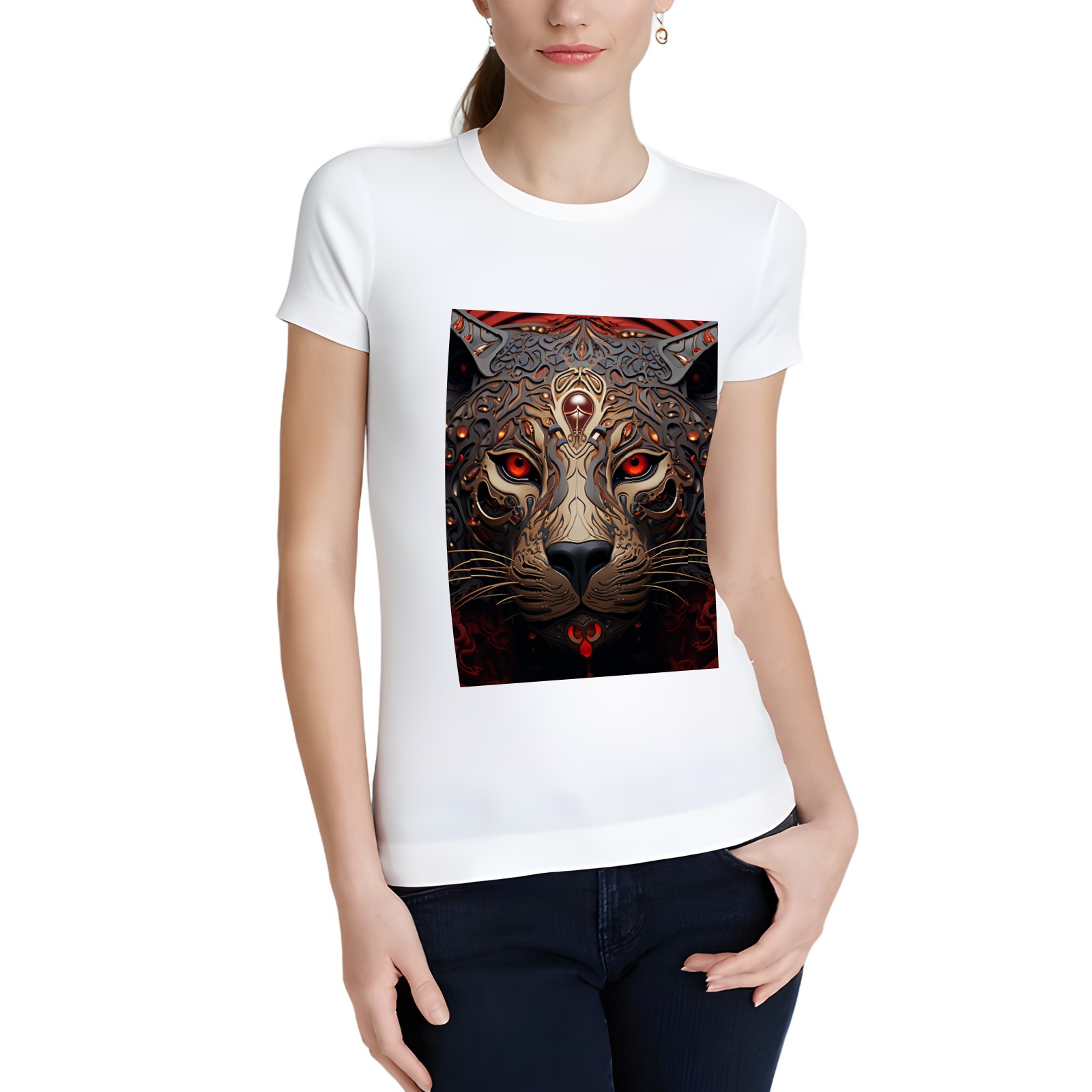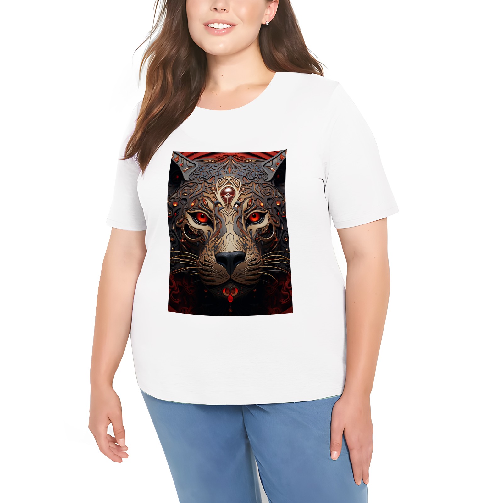 Basic Oversize Tees For WomenBjkj_the_face_of_a_jaguar_depicted_in_a_design_with_a_red_back_4d3bd959-837a-4b8b-830b-331080a9d577 Loose Boyfriend Shirts Casual Blouse round neck
