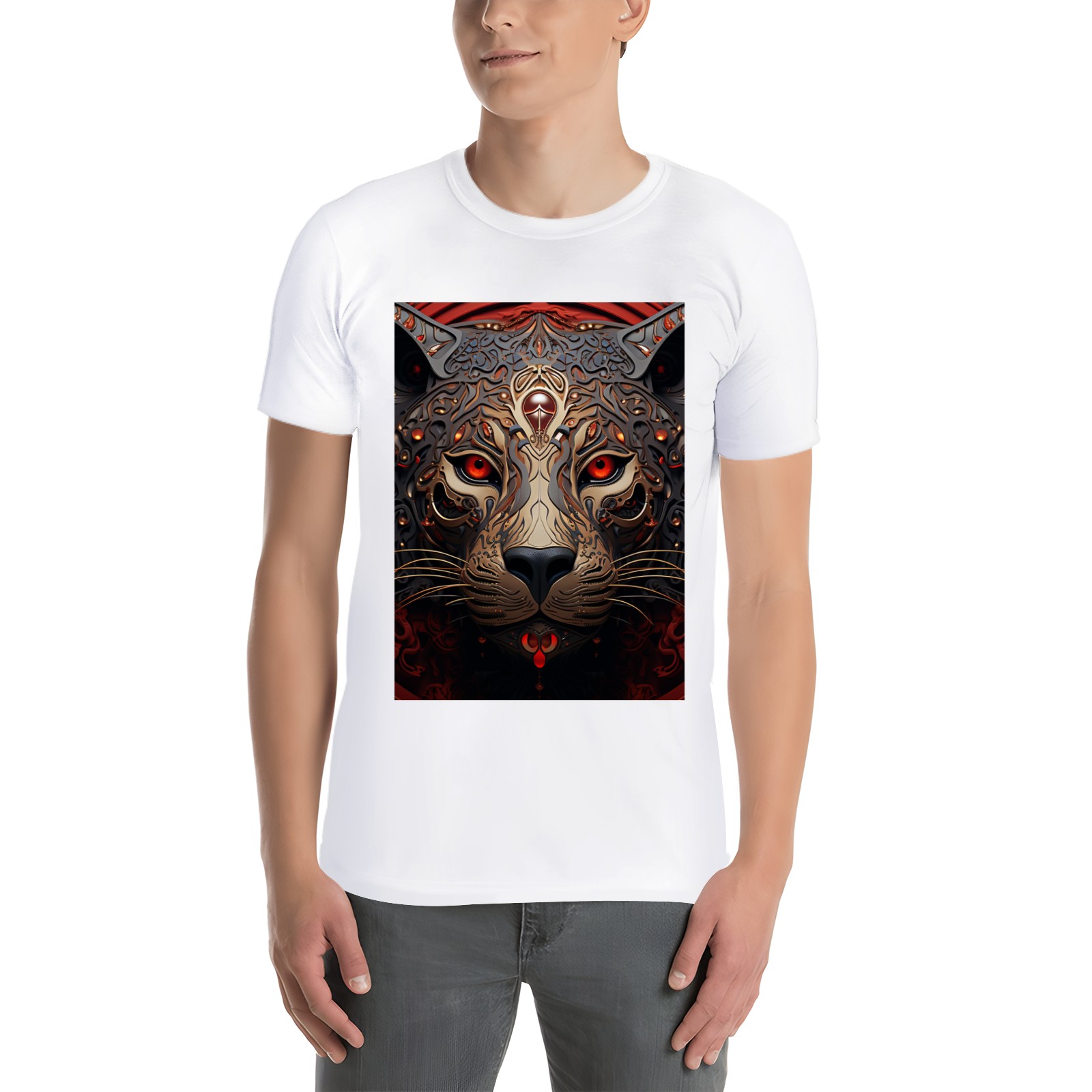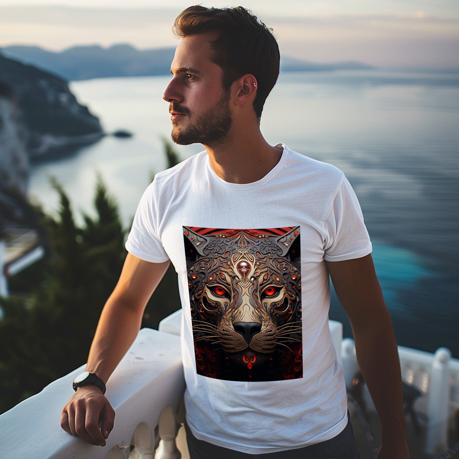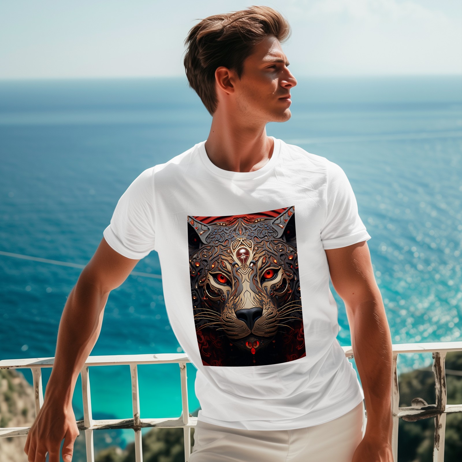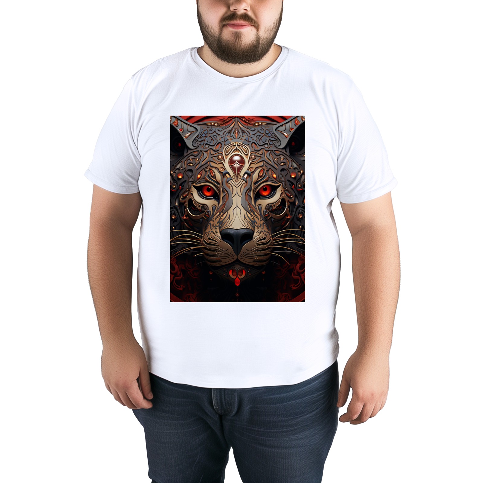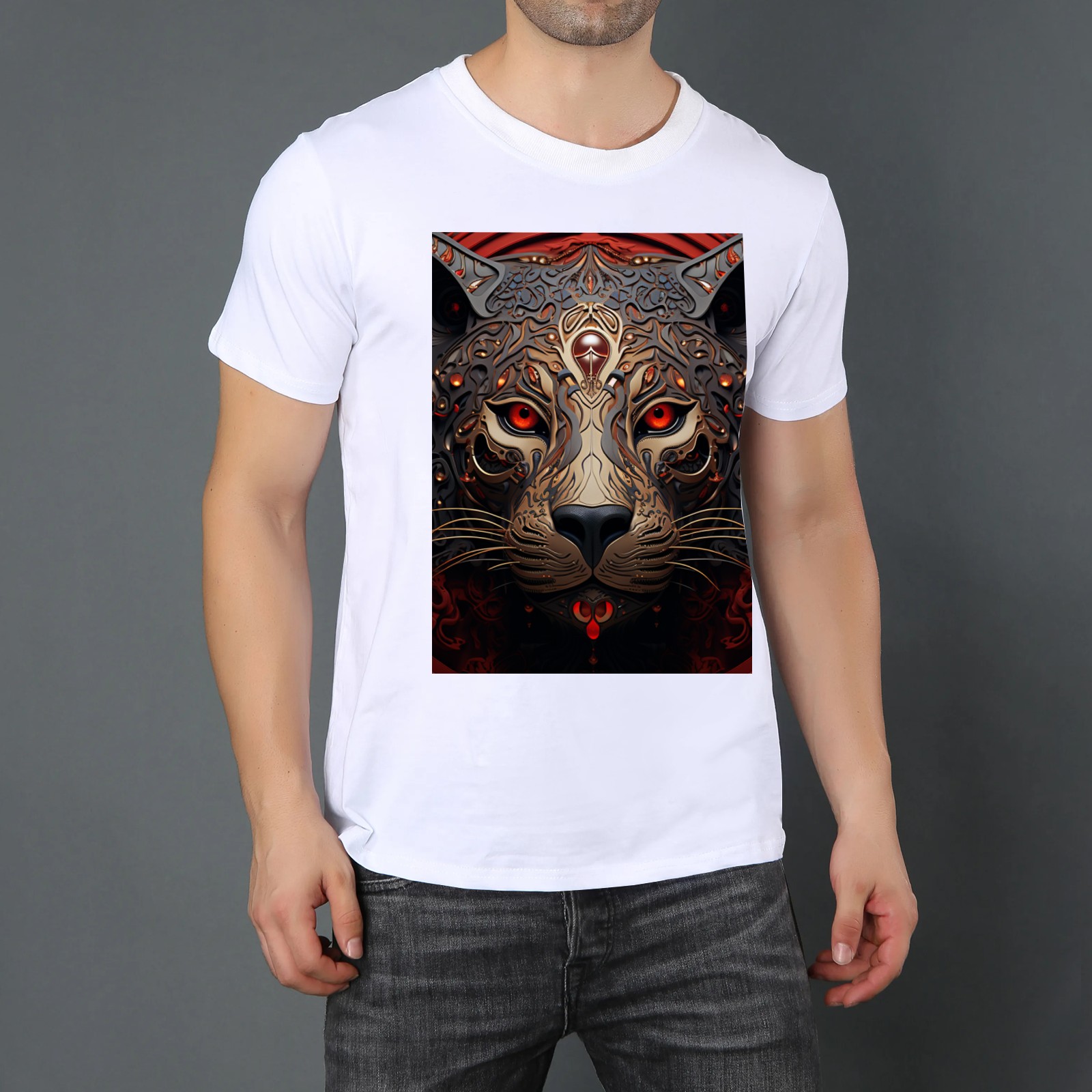 Basic Oversize Tees For WomenBjkj_the_face_of_a_jaguar_depicted_in_a_design_with_a_red_back_4d3bd959-837a-4b8b-830b-331080a9d577 Loose Boyfriend Shirts Casual Blouse round neck