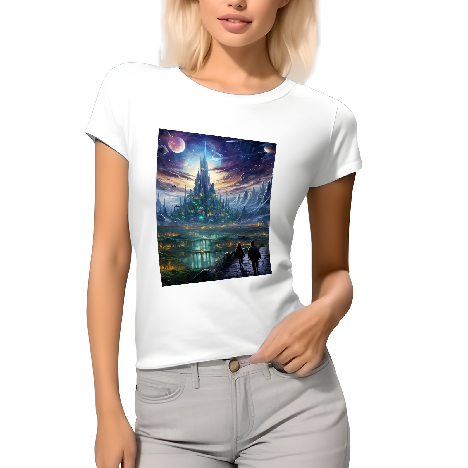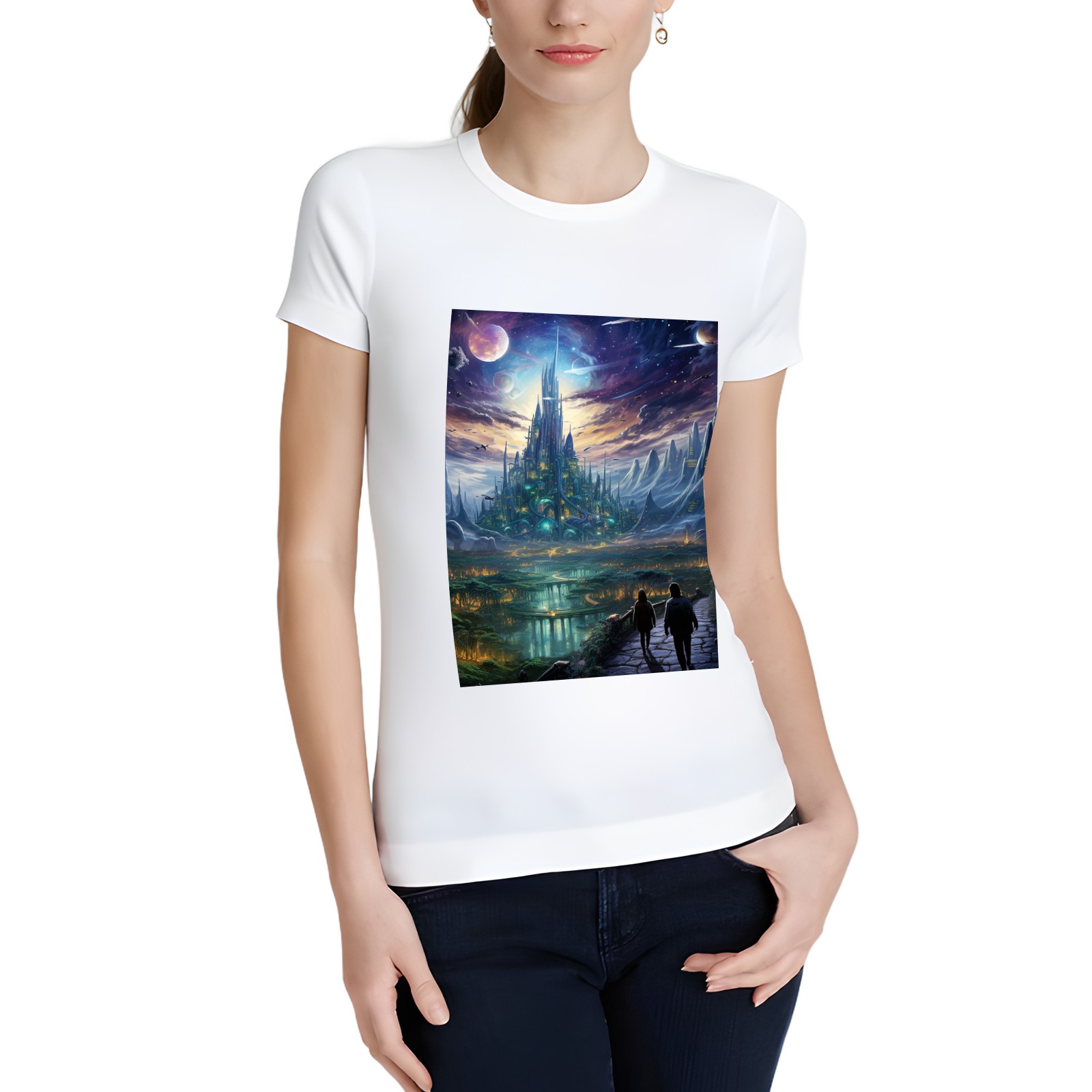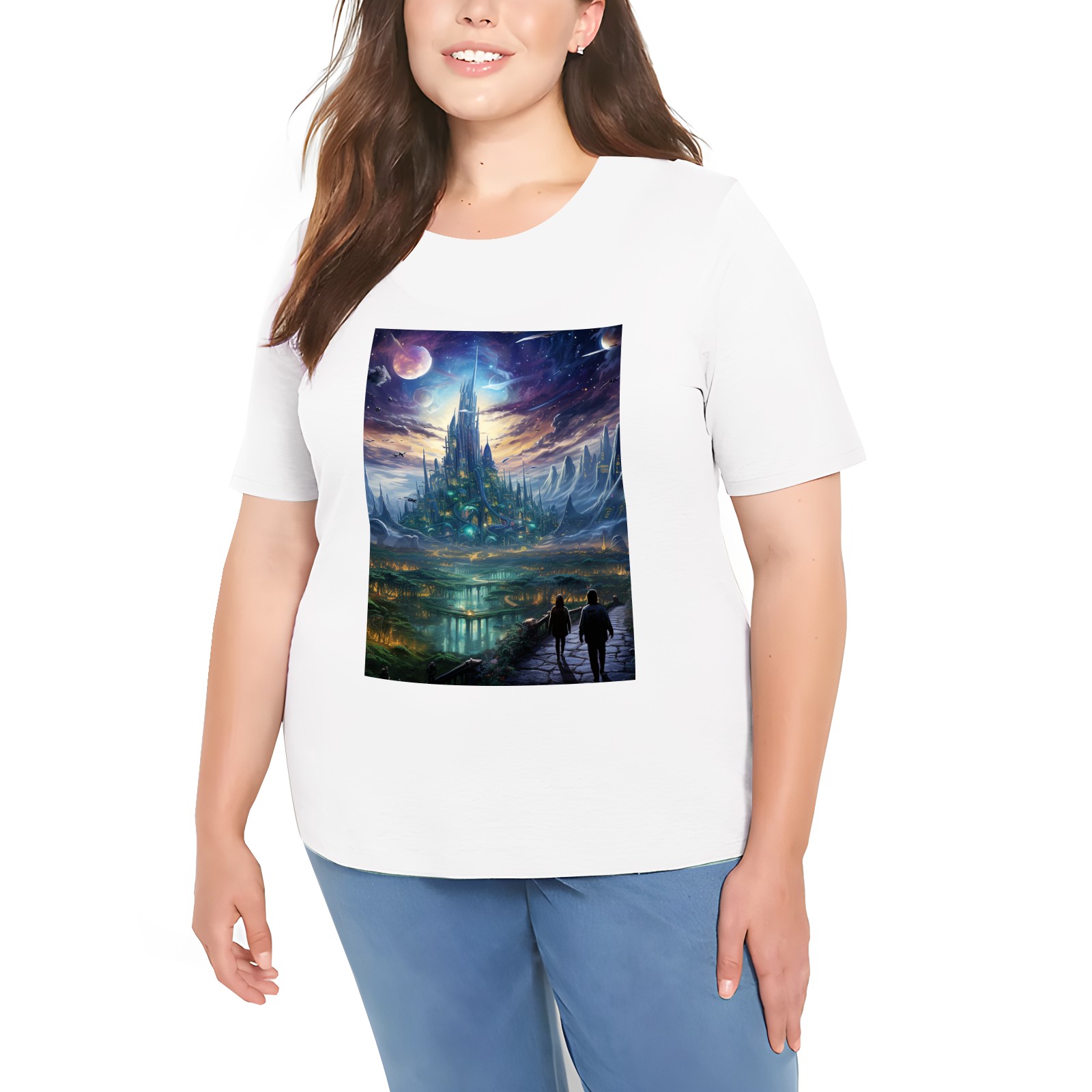 Basic Oversize Tees For WomenBjkj_the_city_people_walk_through_a_futuristic_city_of_venus_i_eda26797-9fd2-428e-8387-eb1e2aa95a6b Loose Boyfriend Shirts Casual Blouse round neck