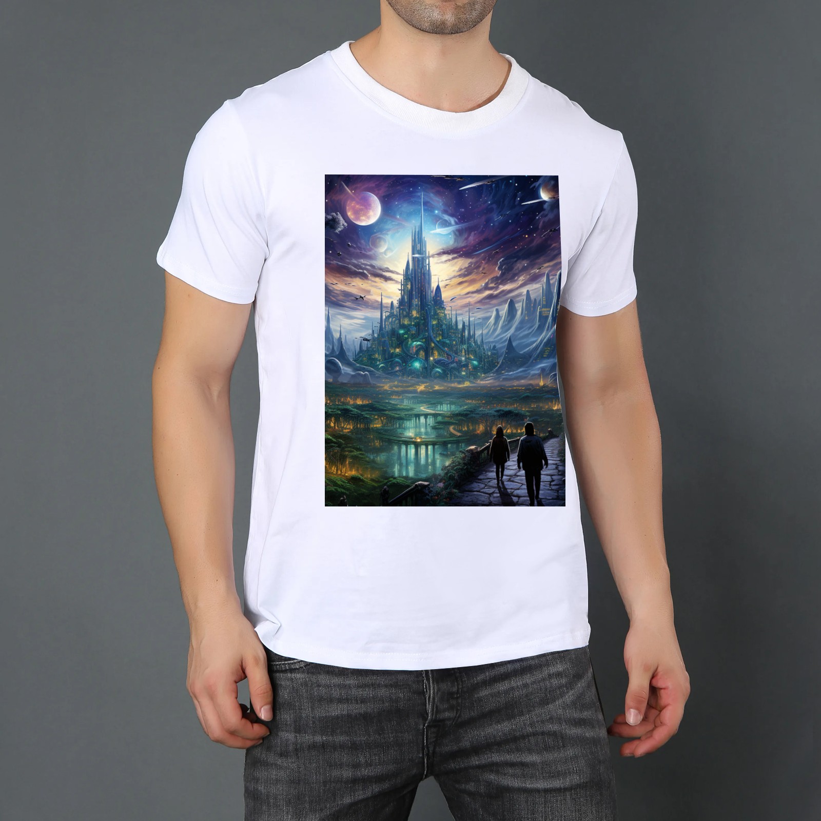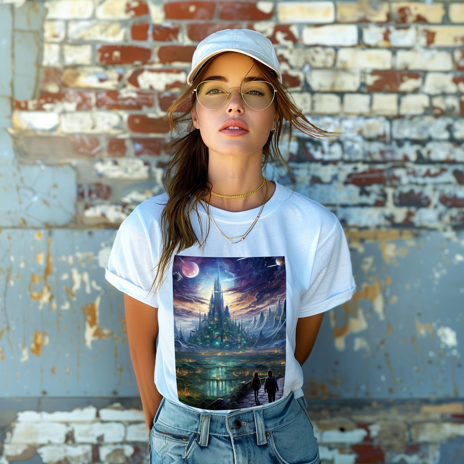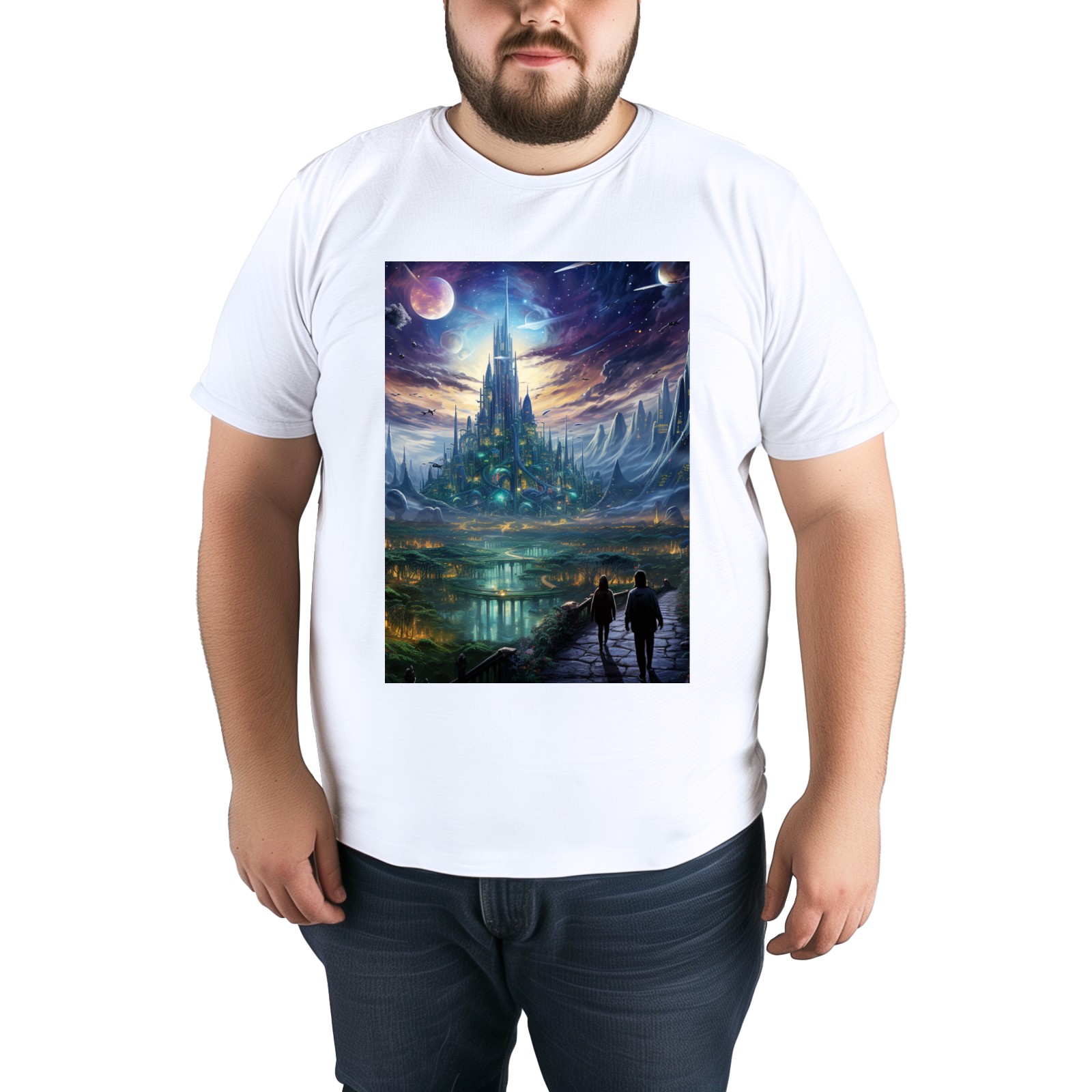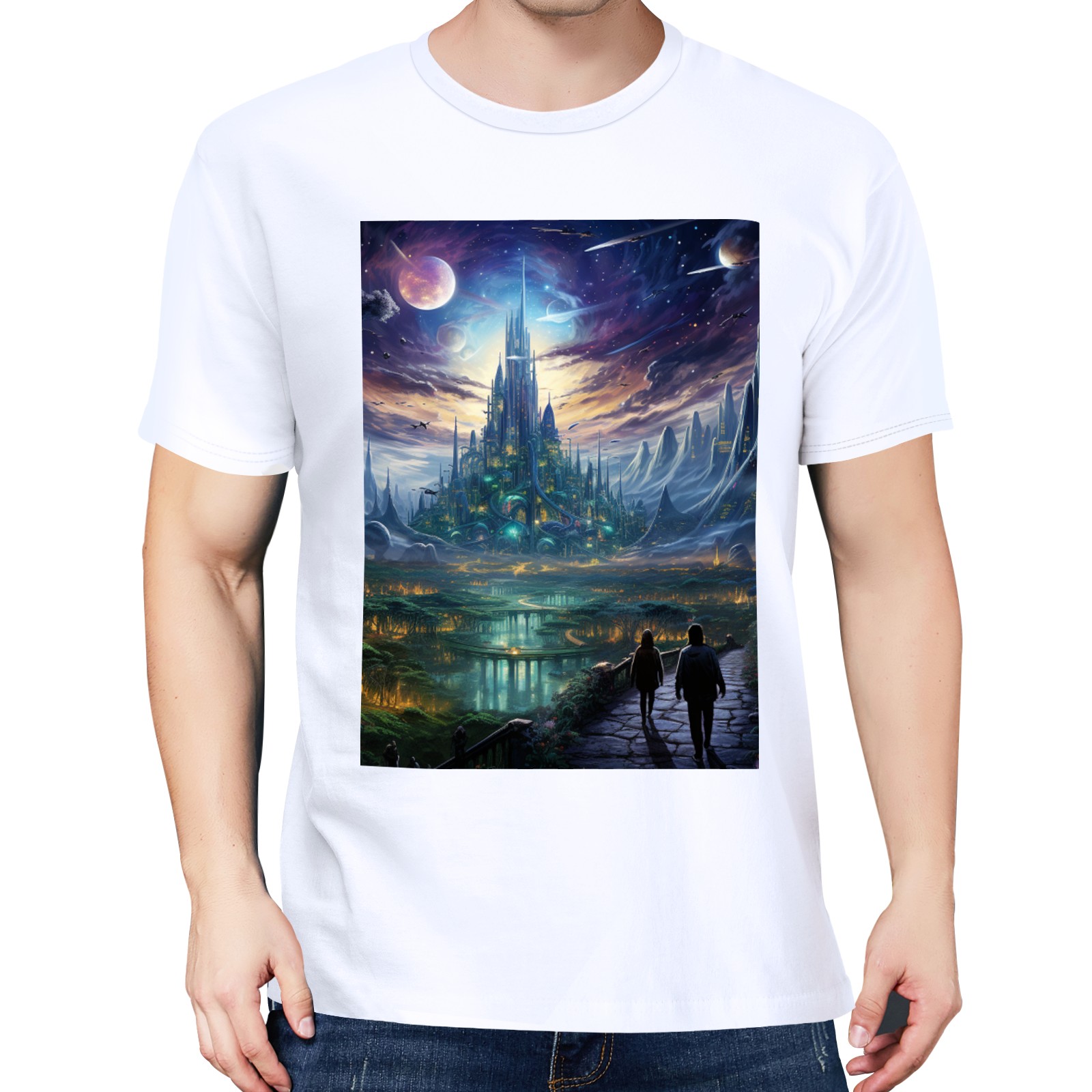 Basic Oversize Tees For WomenBjkj_the_city_people_walk_through_a_futuristic_city_of_venus_i_eda26797-9fd2-428e-8387-eb1e2aa95a6b Loose Boyfriend Shirts Casual Blouse round neck