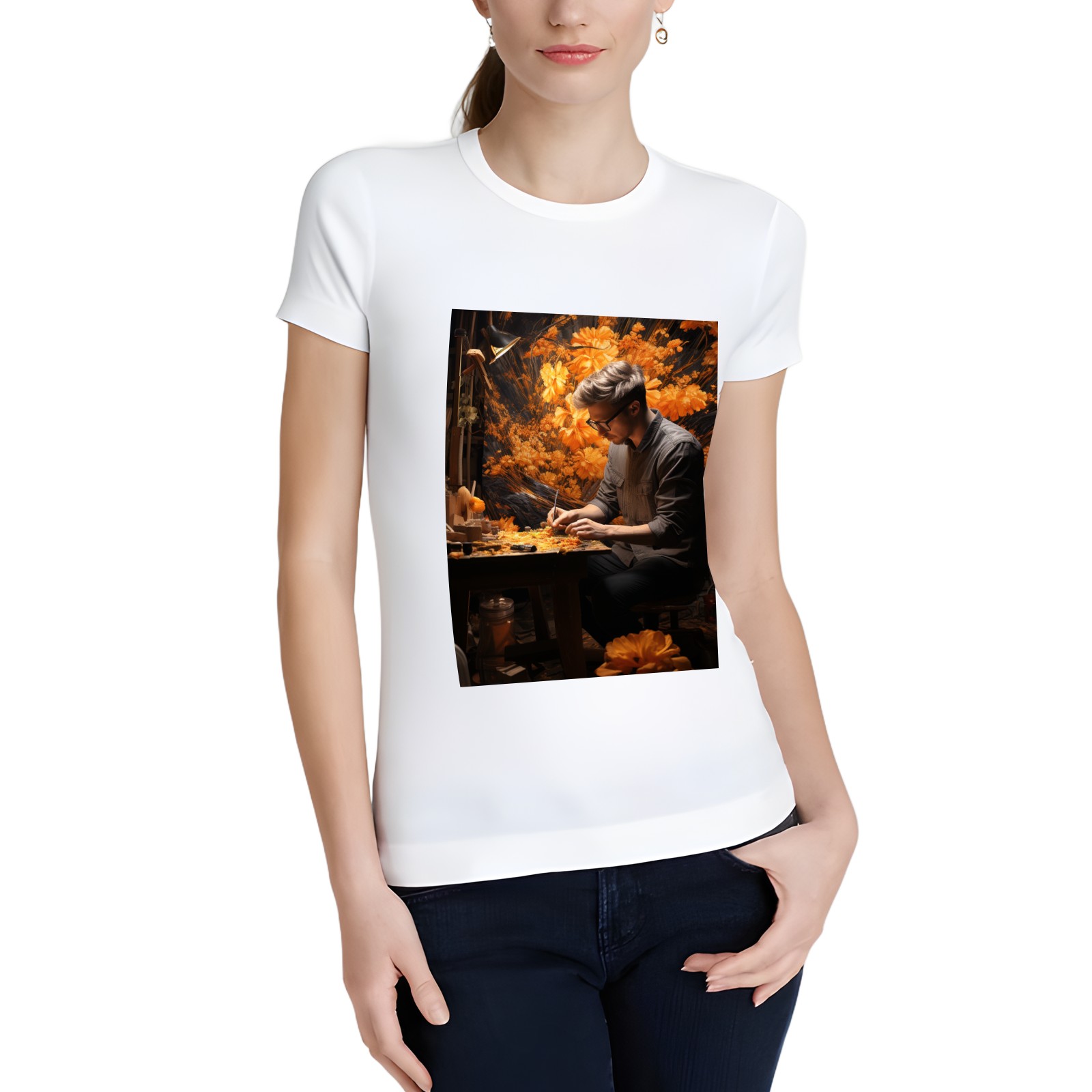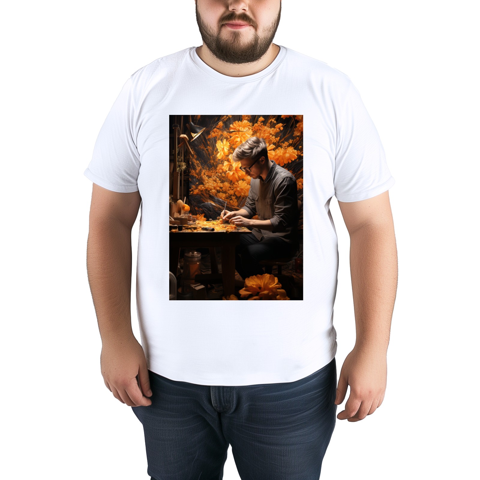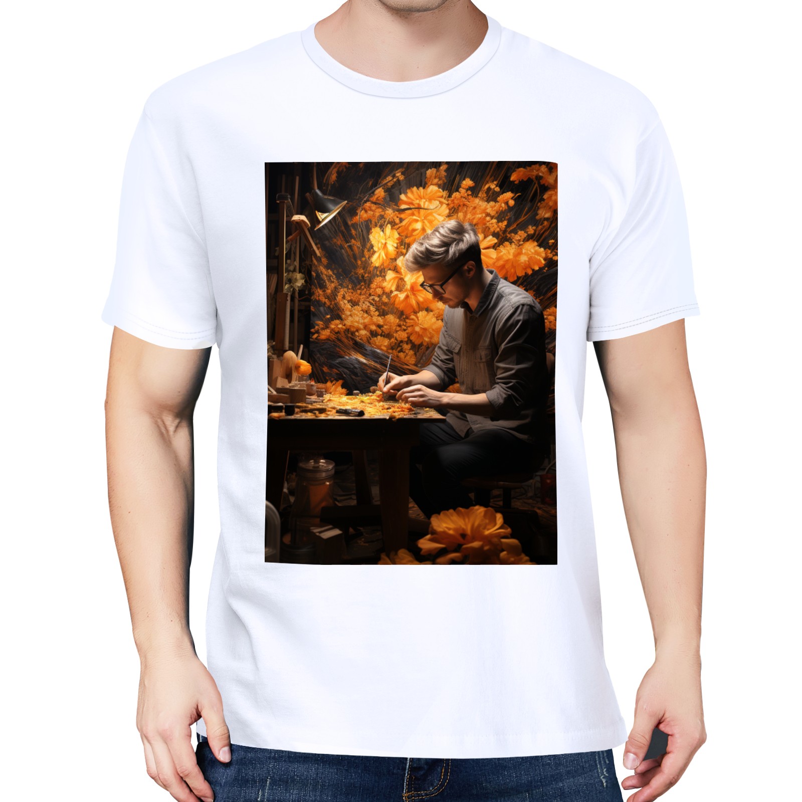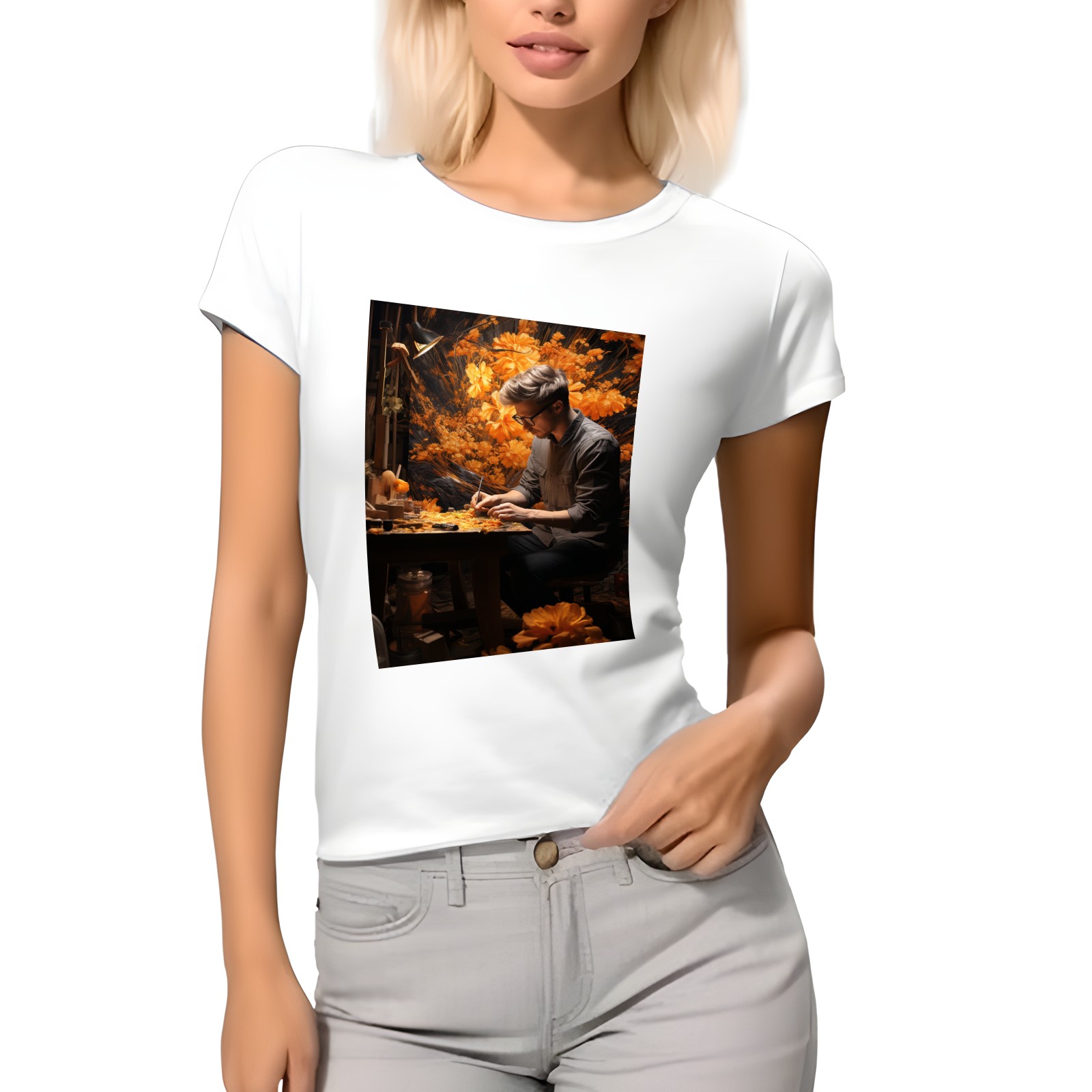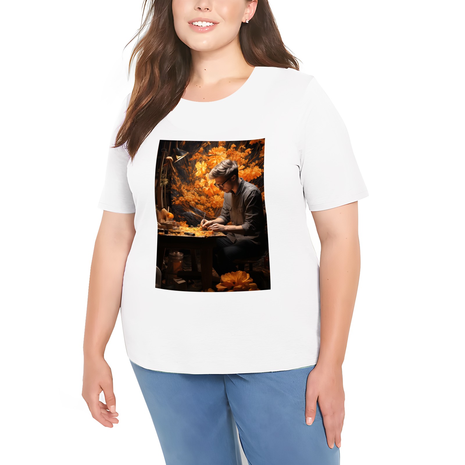 Basic Oversize Tees For WomenBjkj_man_painting_a_painting_of_flowers_in_woodland_in_the_sty_c22f76e4-2be0-4696-81e6-d8df3fe8a96f Loose Boyfriend Shirts Casual Blouse round neck