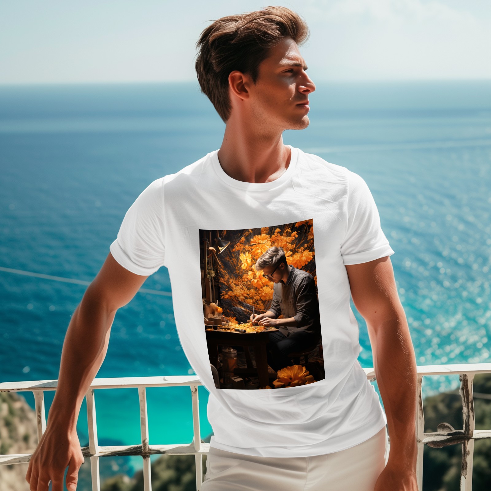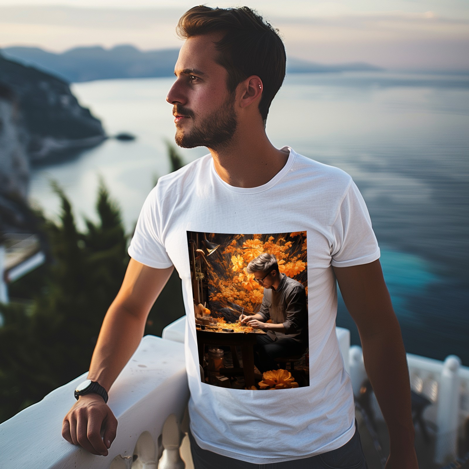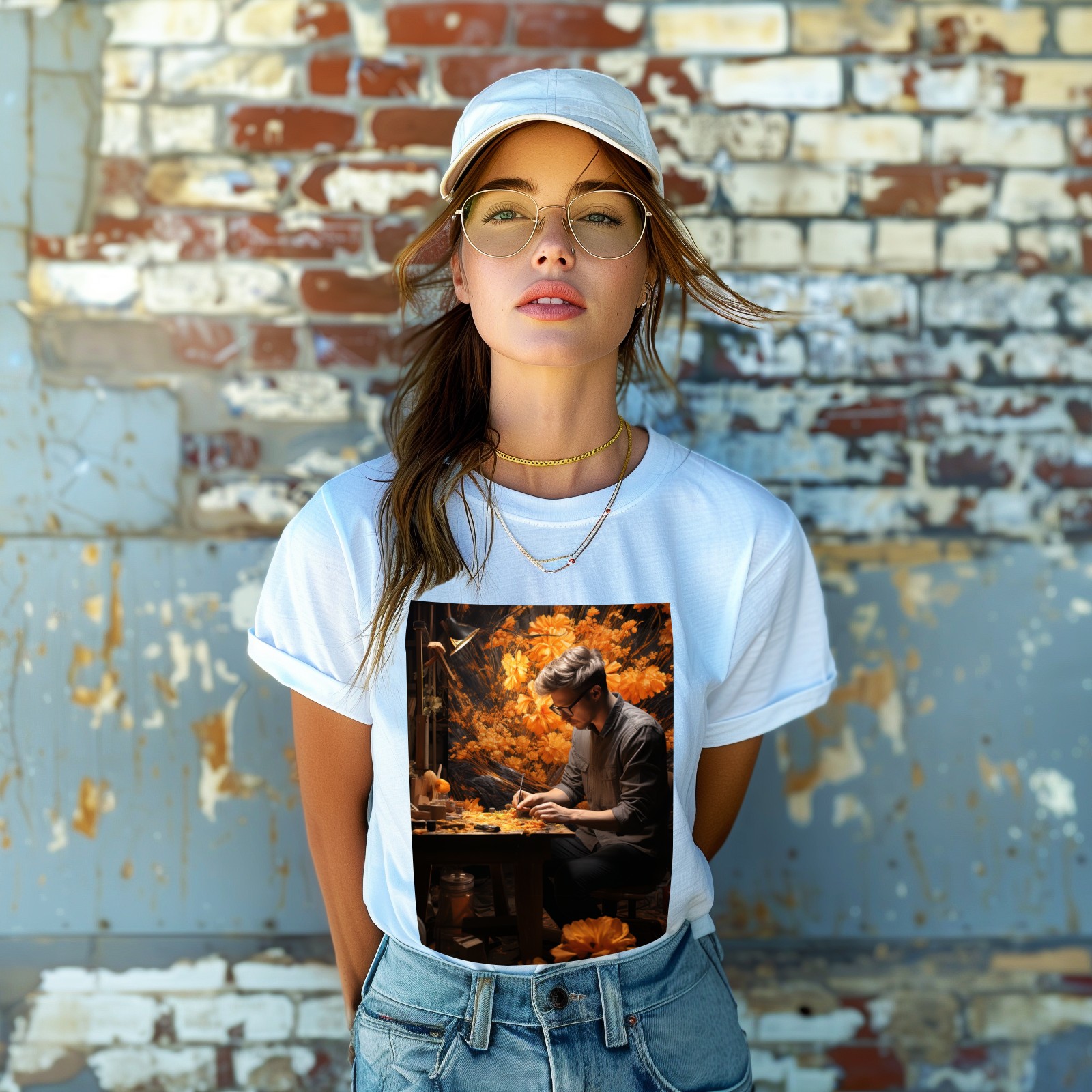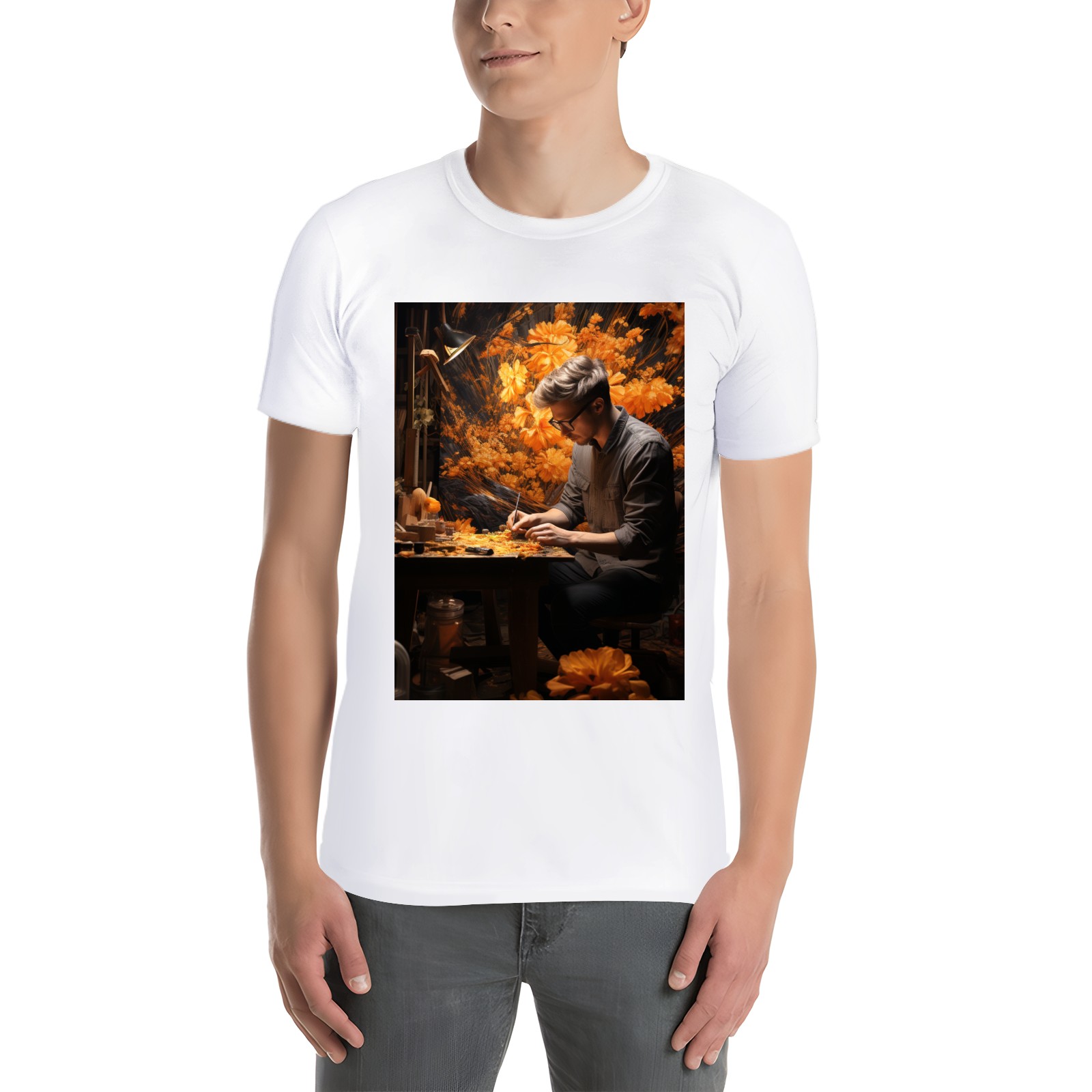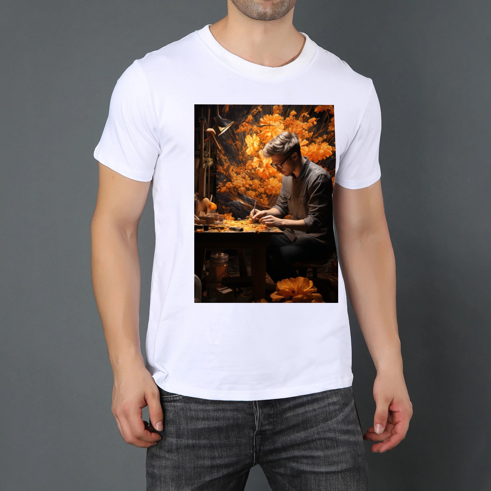 Basic Oversize Tees For WomenBjkj_man_painting_a_painting_of_flowers_in_woodland_in_the_sty_c22f76e4-2be0-4696-81e6-d8df3fe8a96f Loose Boyfriend Shirts Casual Blouse round neck