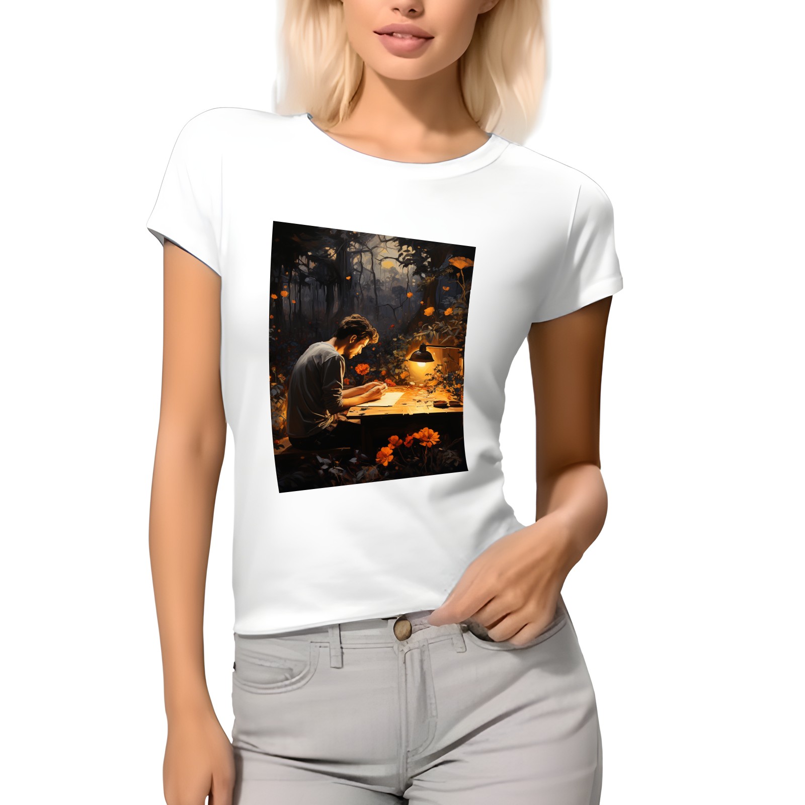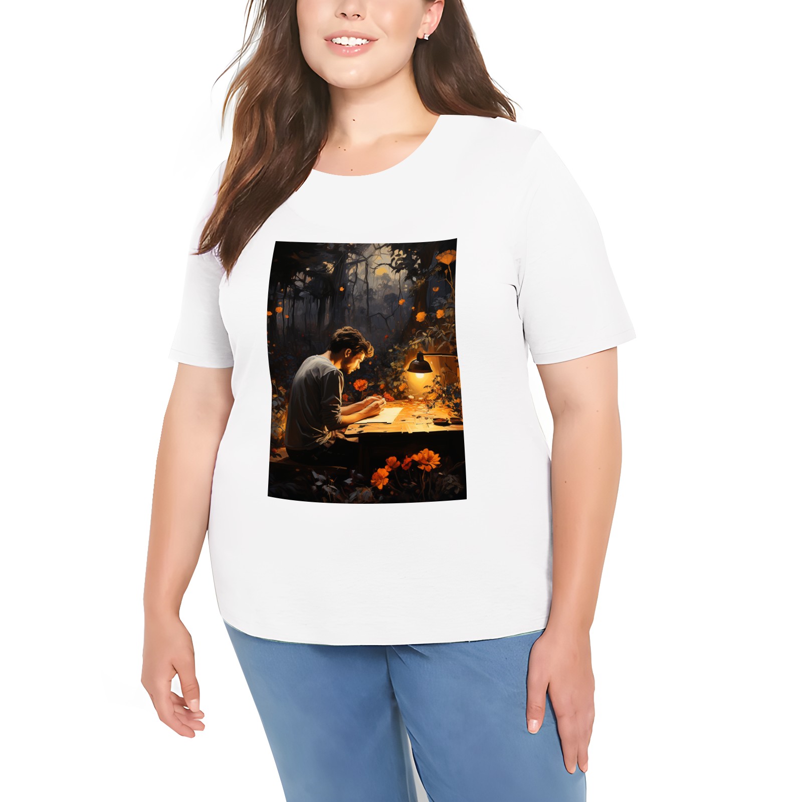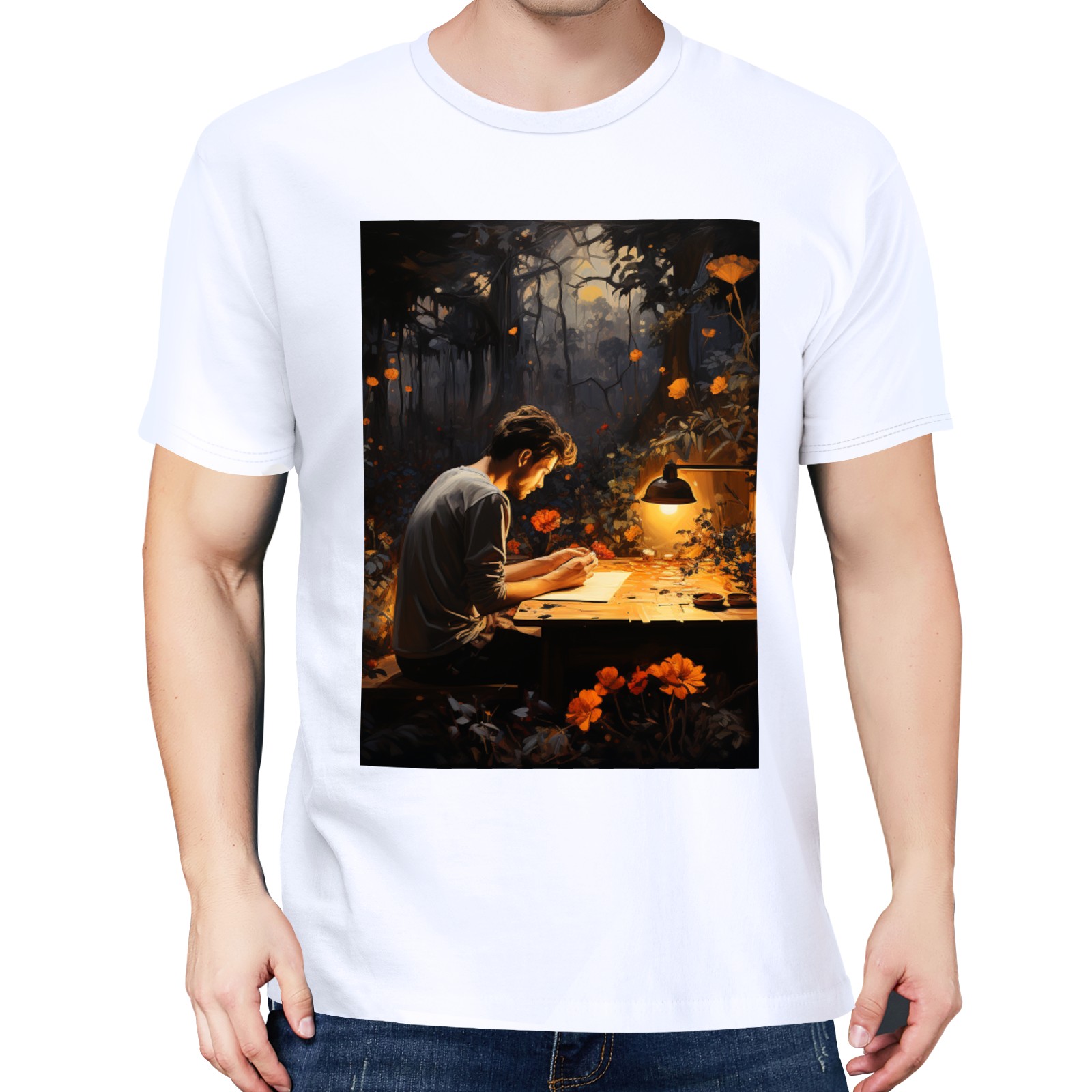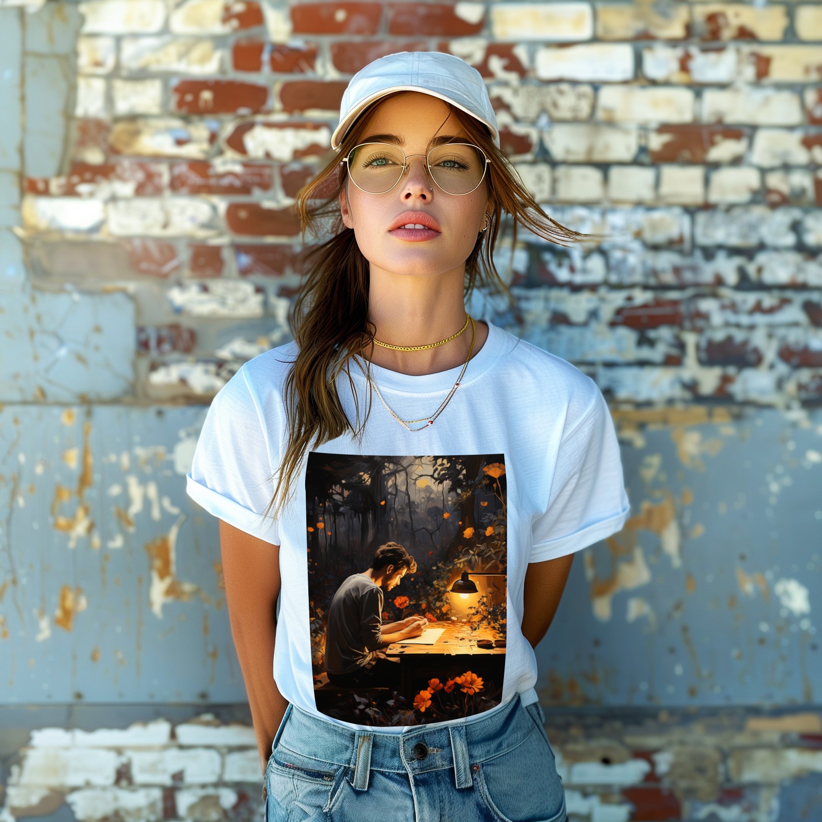 Basic Oversize Tees For WomenBjkj_man_painting_a_painting_of_flowers_in_woodland_in_the_sty_b69a21c3-cceb-40e9-9a18-847a442104ce Loose Boyfriend Shirts Casual Blouse round neck
