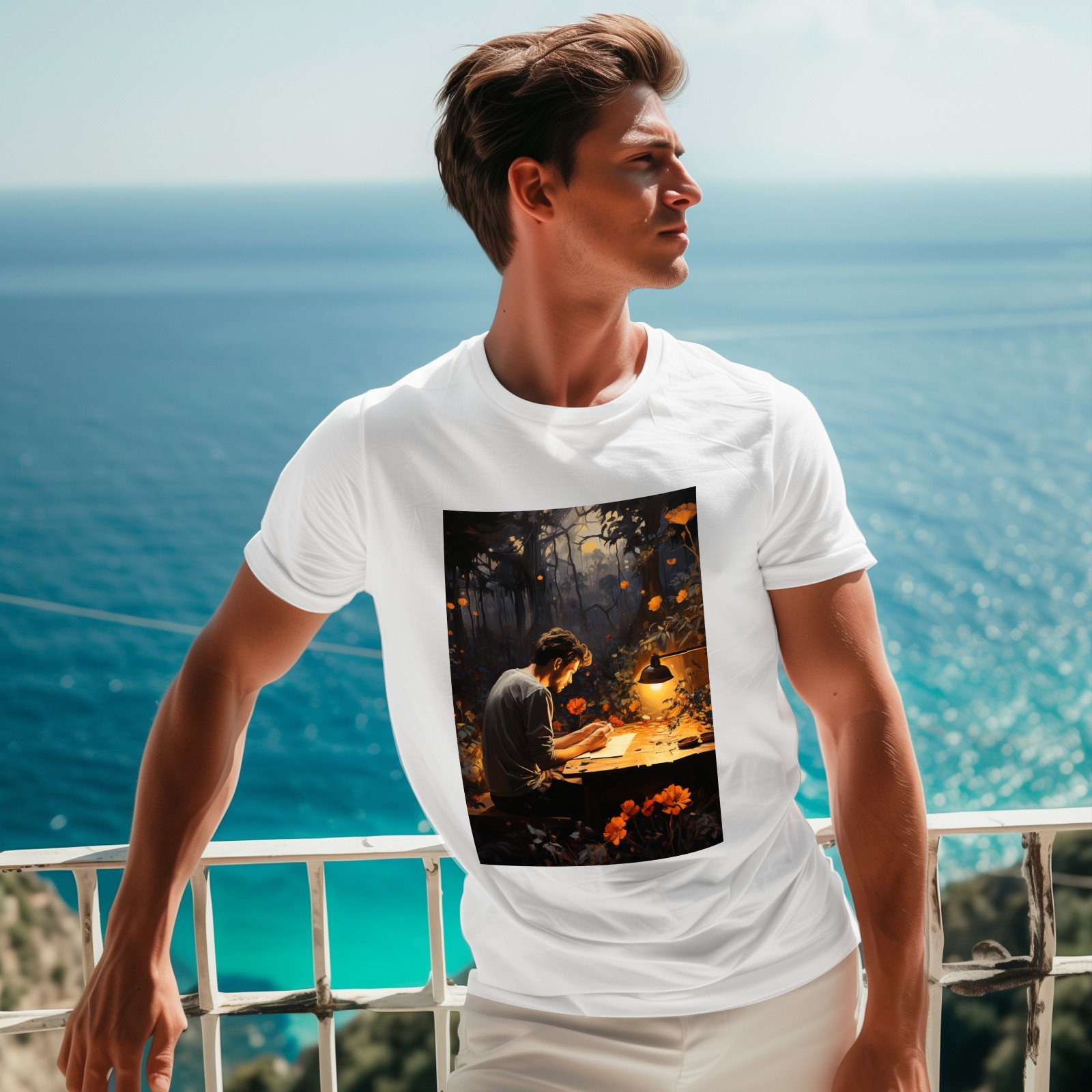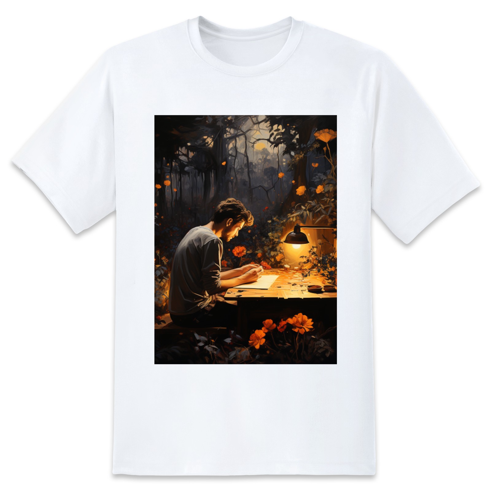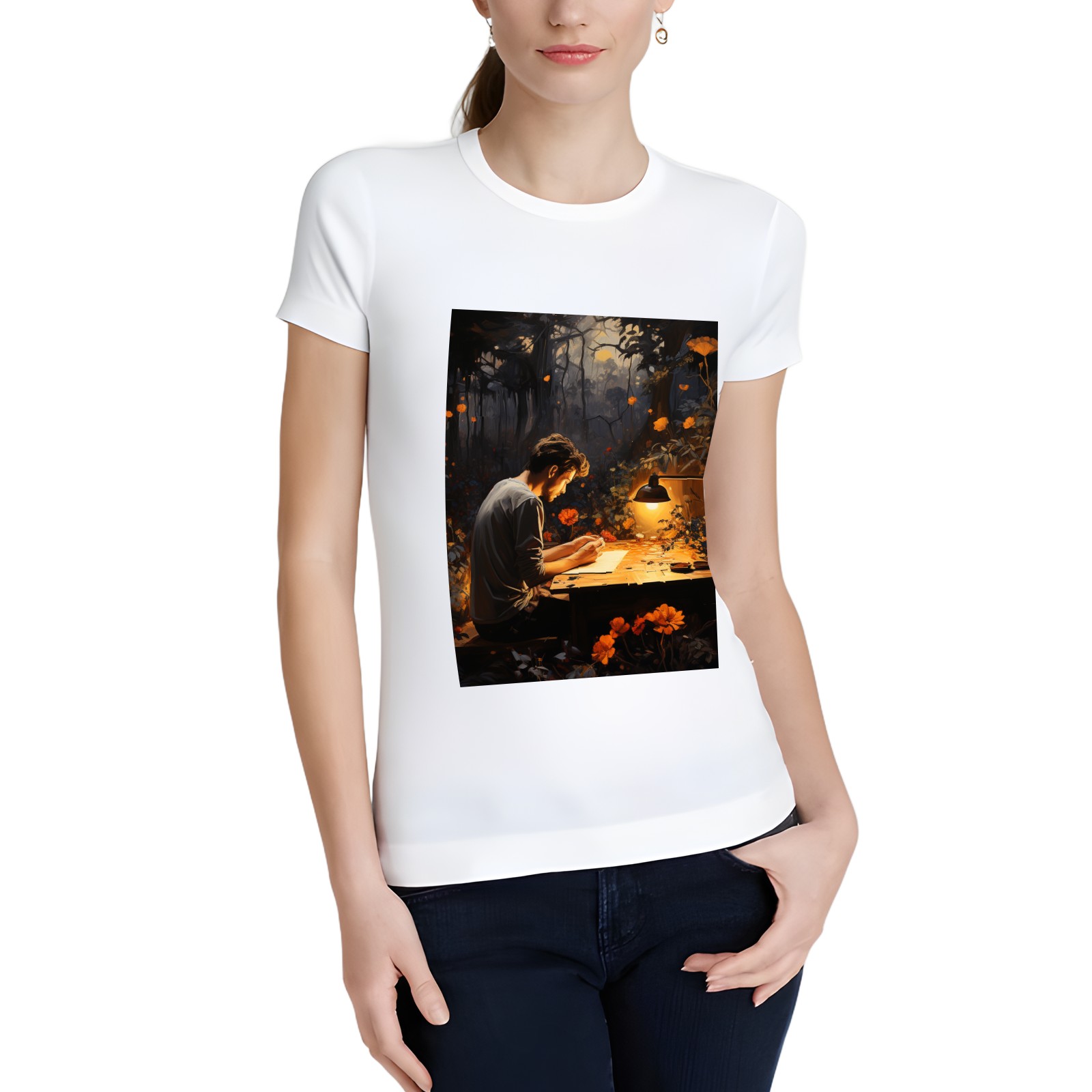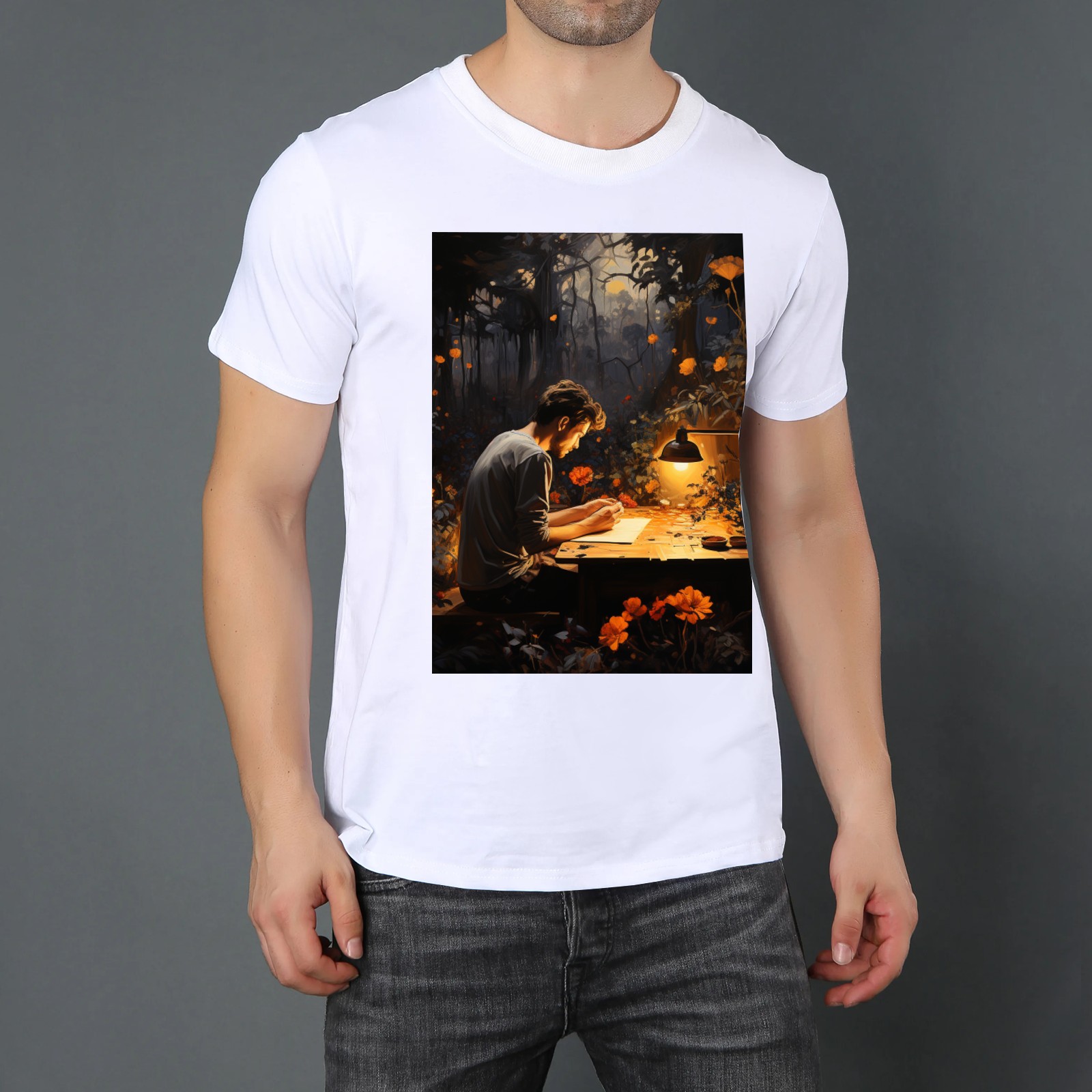 Basic Oversize Tees For WomenBjkj_man_painting_a_painting_of_flowers_in_woodland_in_the_sty_b69a21c3-cceb-40e9-9a18-847a442104ce Loose Boyfriend Shirts Casual Blouse round neck
