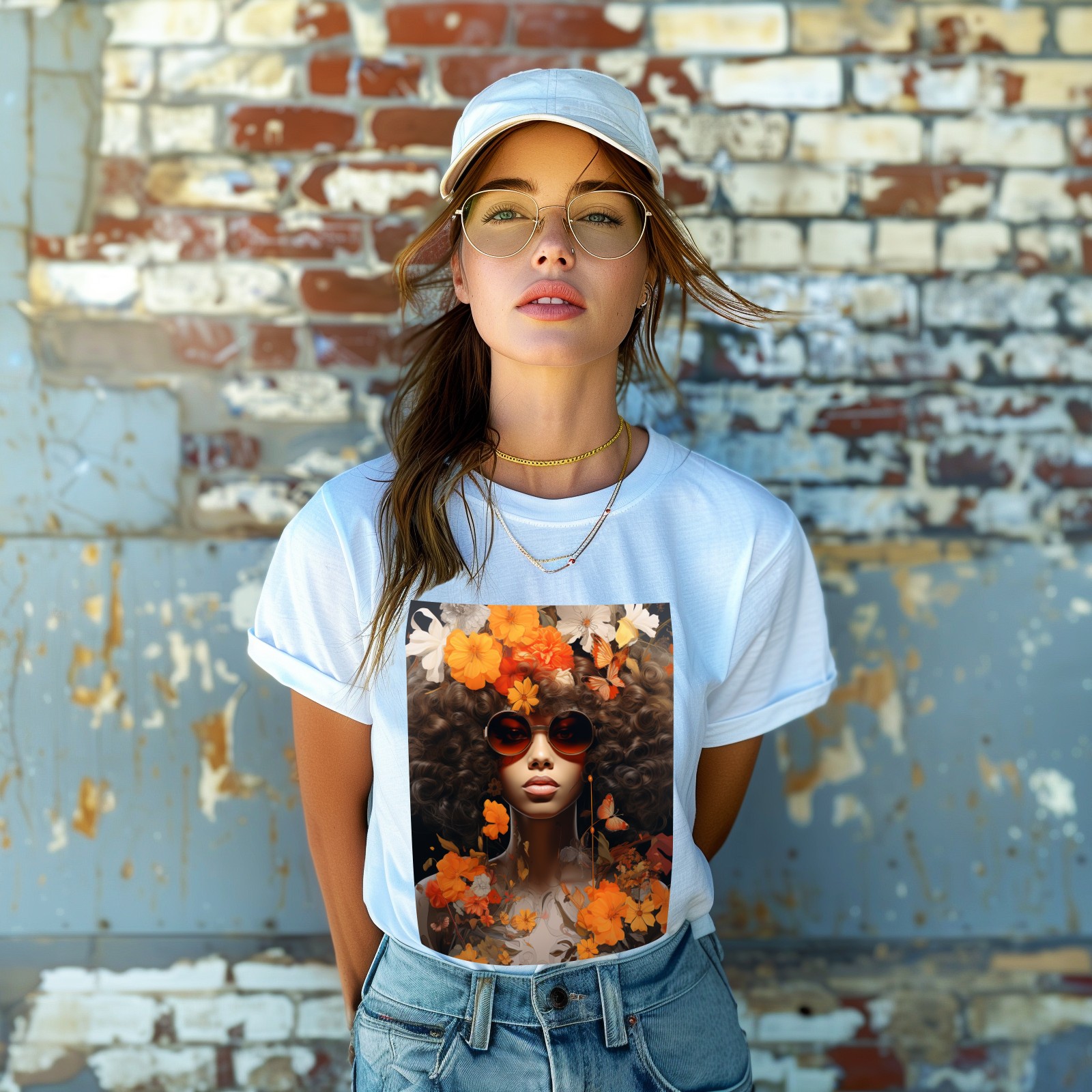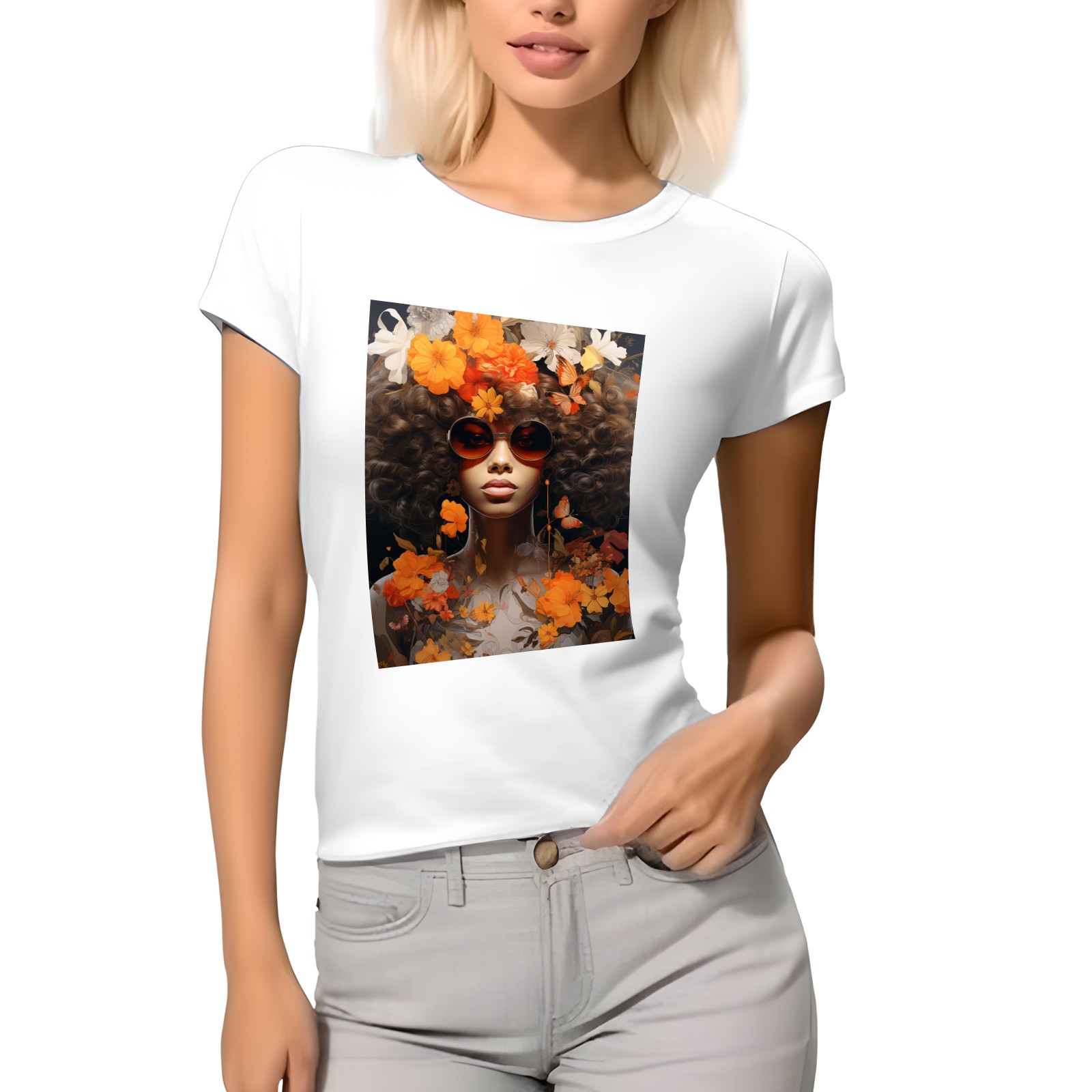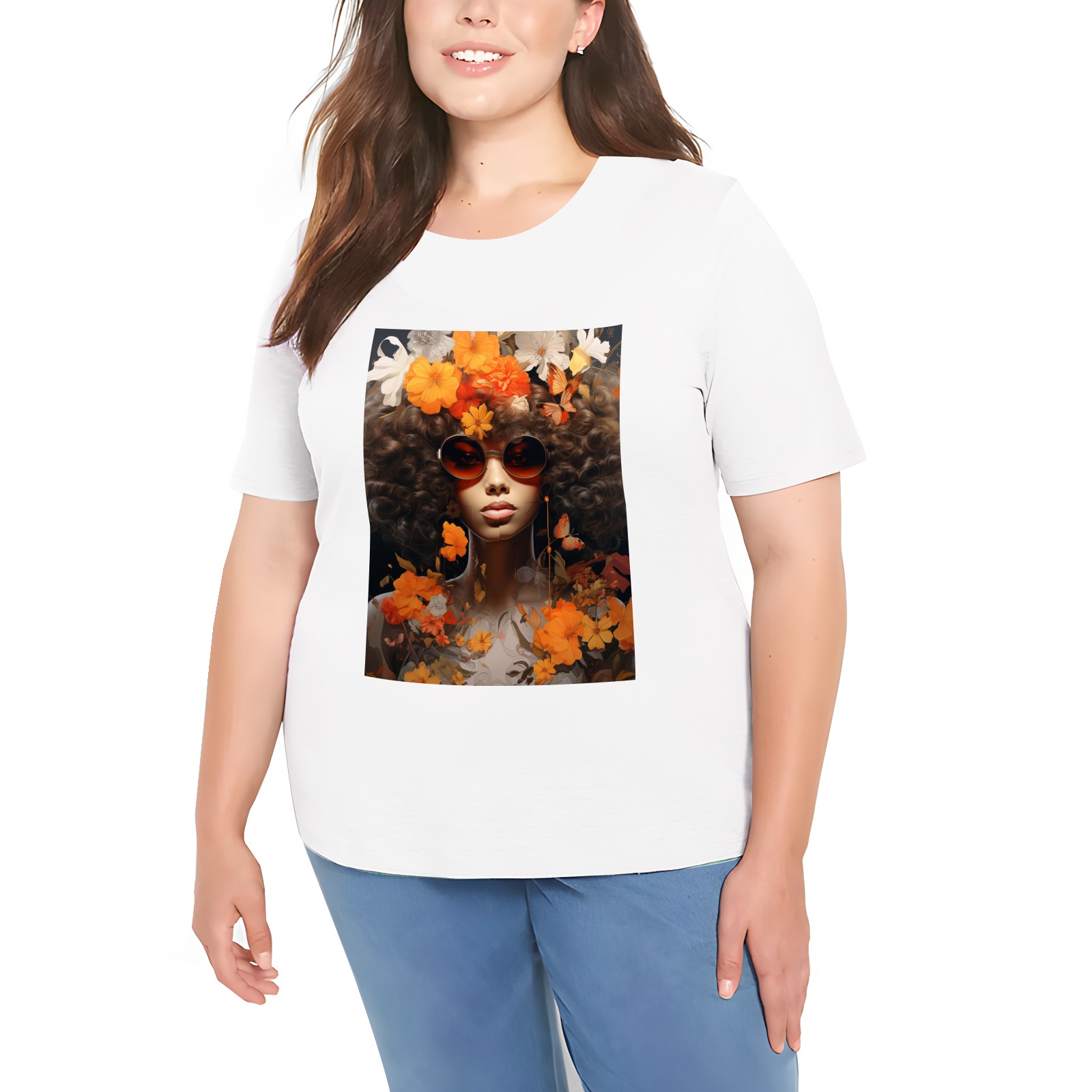 Basic Oversize Tees For WomenBjkj_girl_in_flowers_in_the_style_of_afro-caribbean_influence__c7c1f847-8f22-4d5c-a1a2-522bbebf7cd8 Loose Boyfriend Shirts Casual Blouse round neck