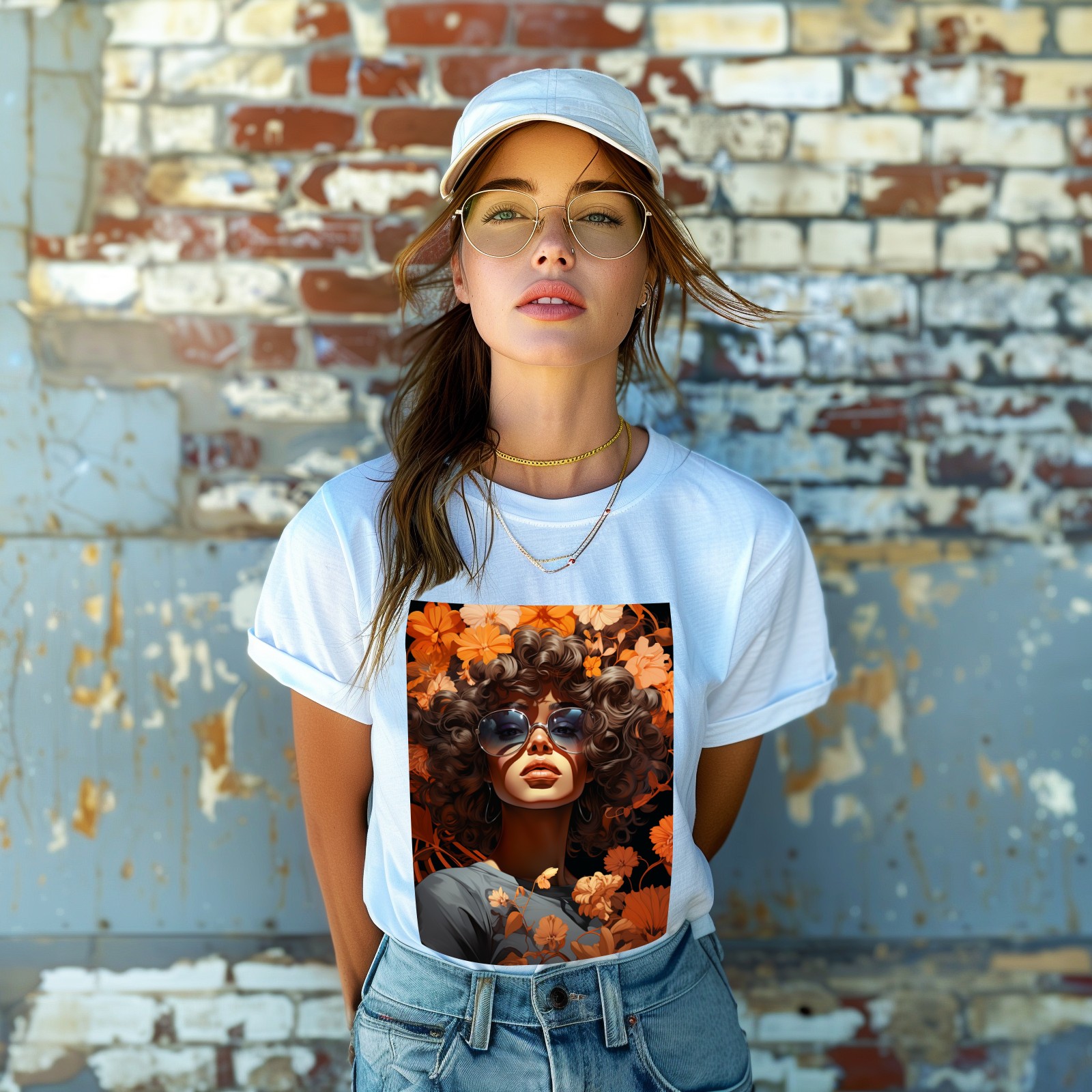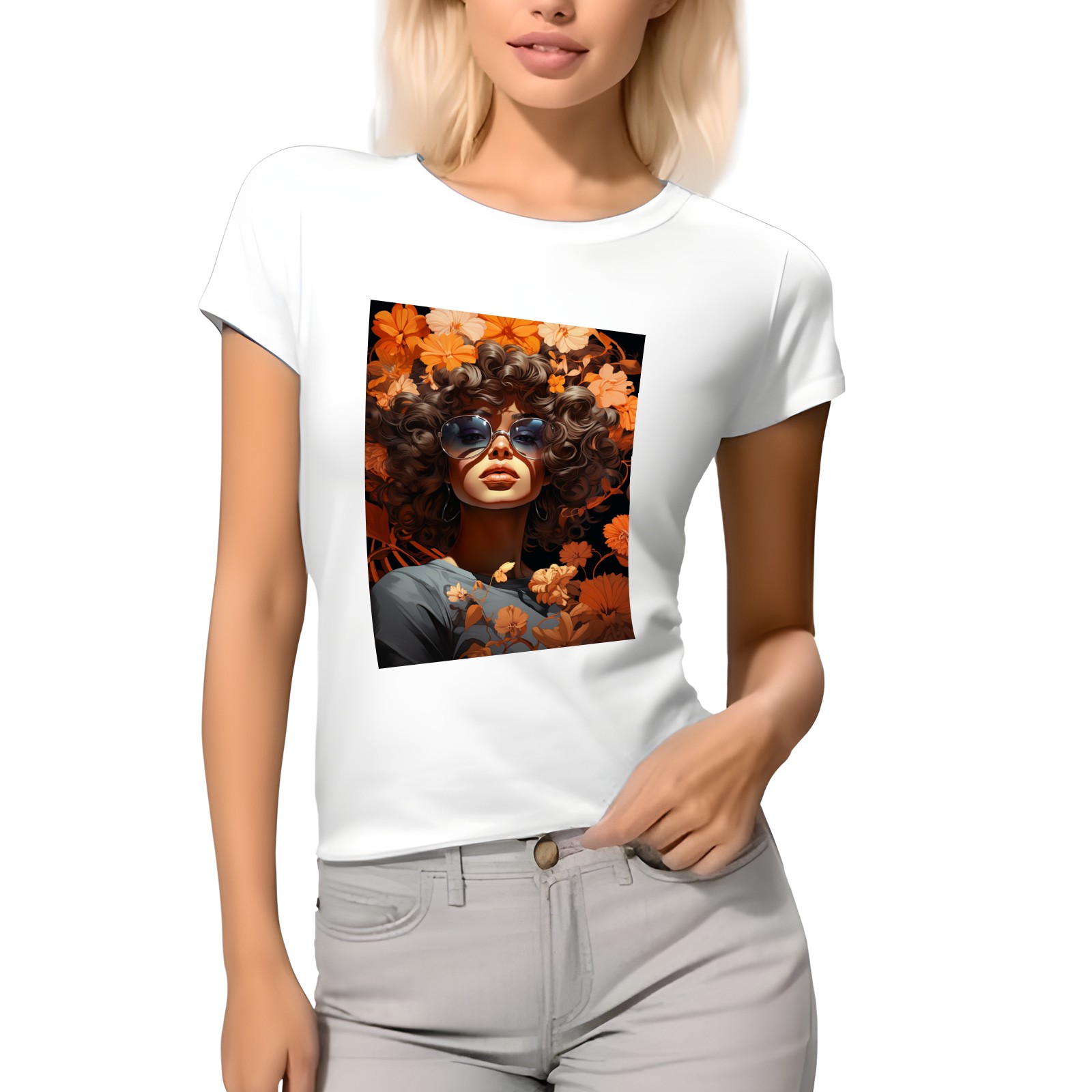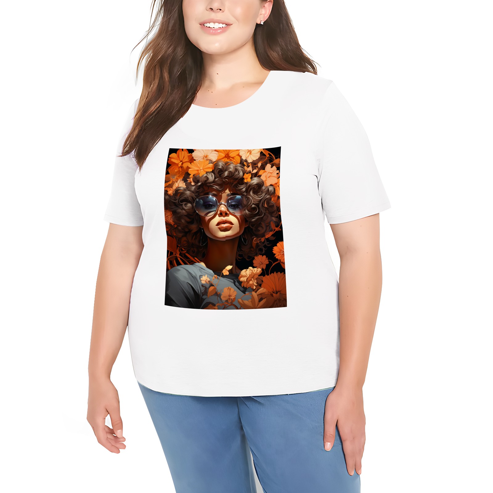 Basic Oversize Tees For WomenBjkj_girl_in_flowers_in_the_style_of_afro-caribbean_influence__3e005006-463b-4826-8f17-3ea23a1ec464 Loose Boyfriend Shirts Casual Blouse round neck