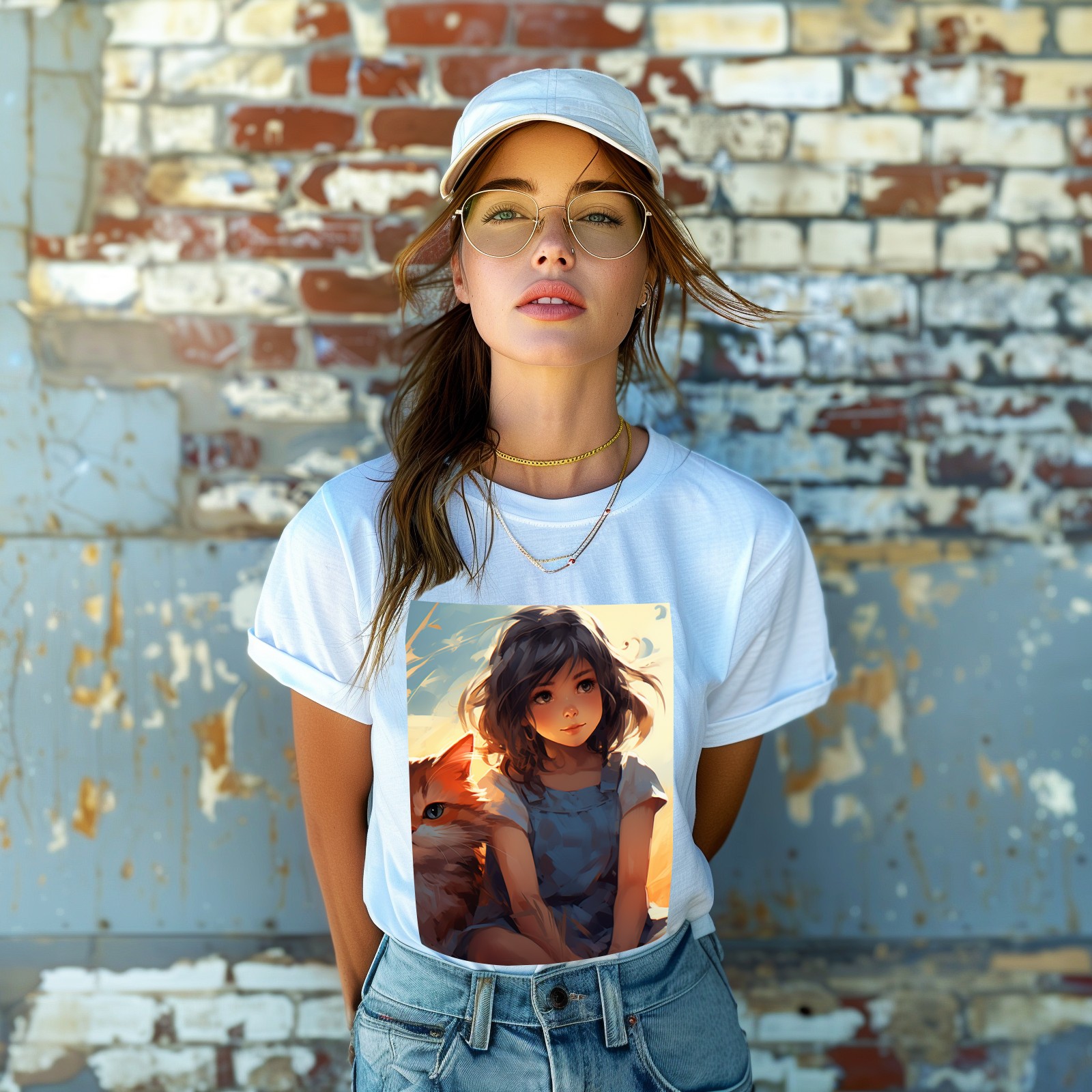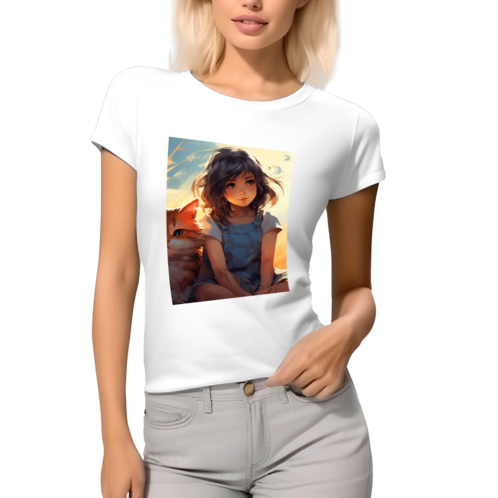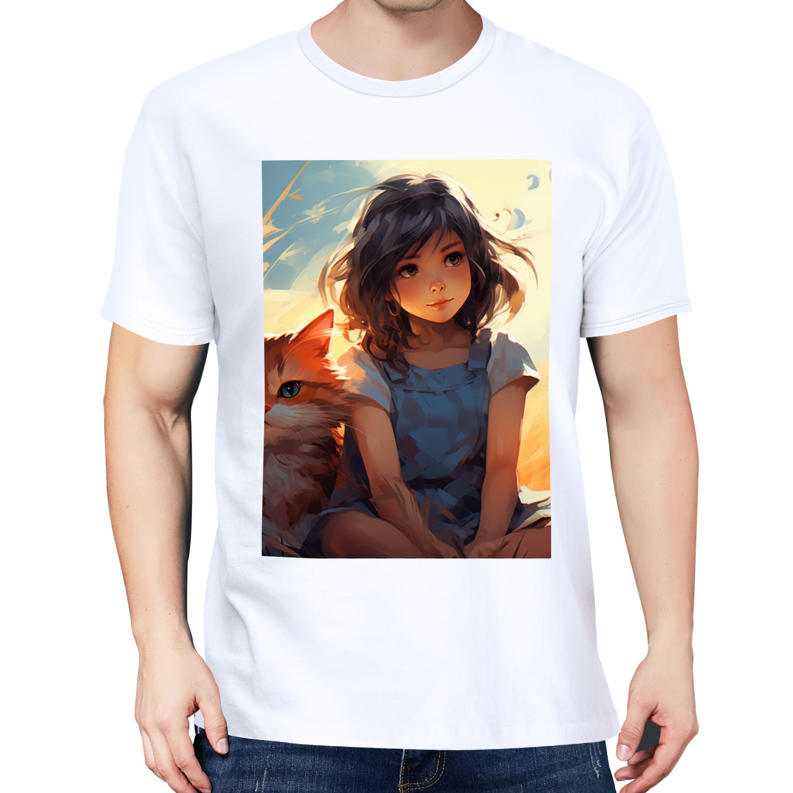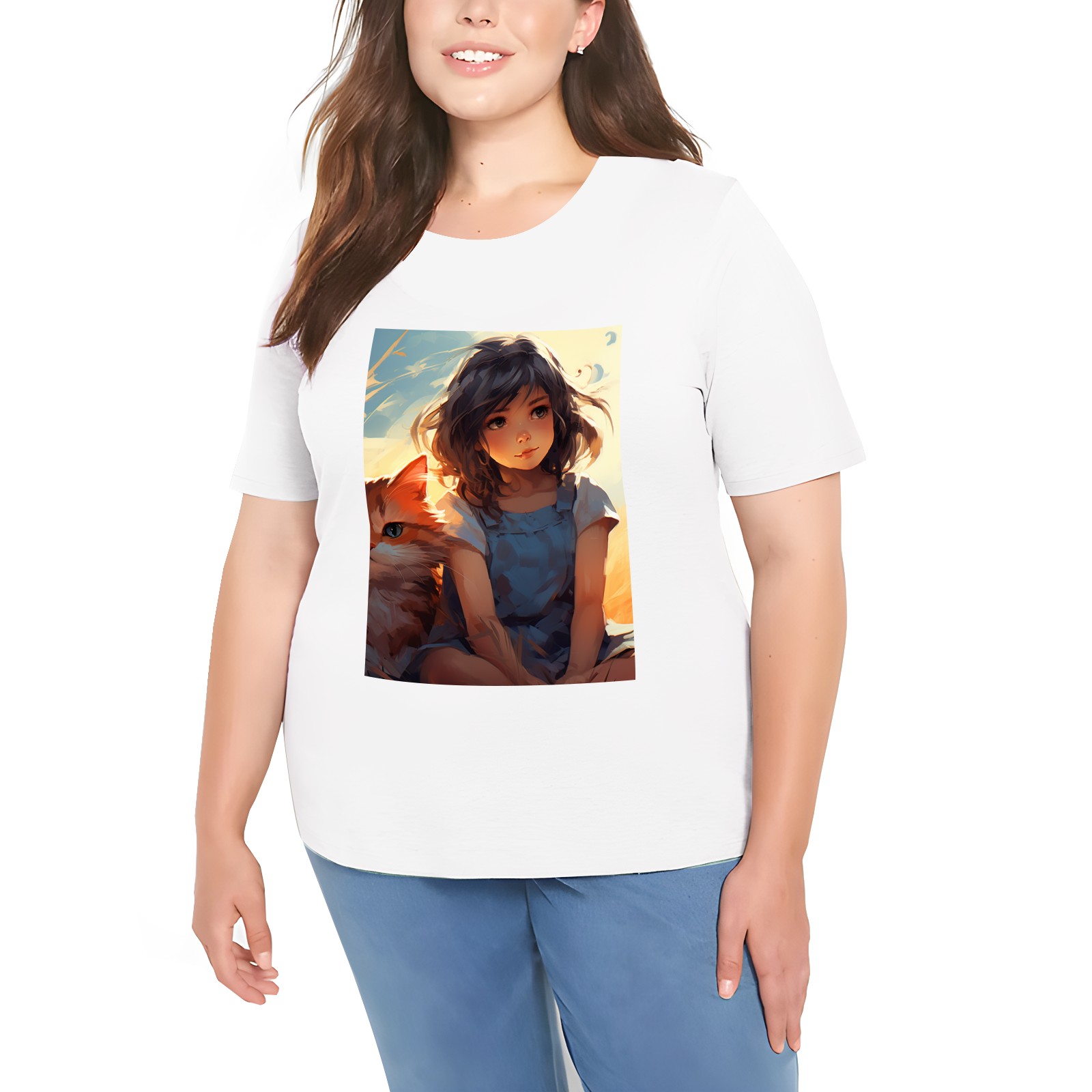 Basic Oversize Tees For WomenBjkj_cartoon_girl_holding_a_cat_while_sitting_in_field_in_the__d2358f28-b021-43c9-8cf9-86eef914c812 Loose Boyfriend Shirts Casual Blouse round neck