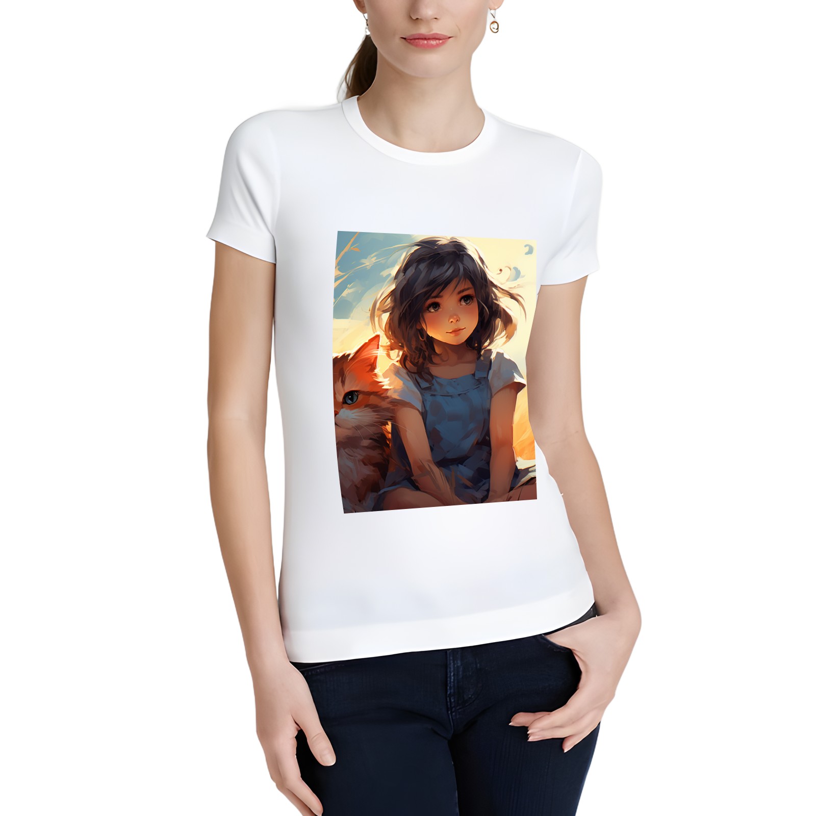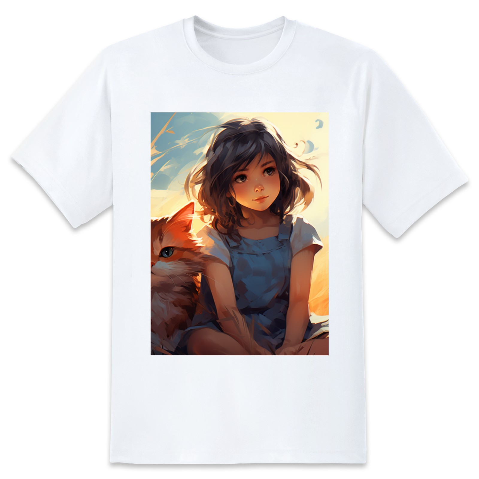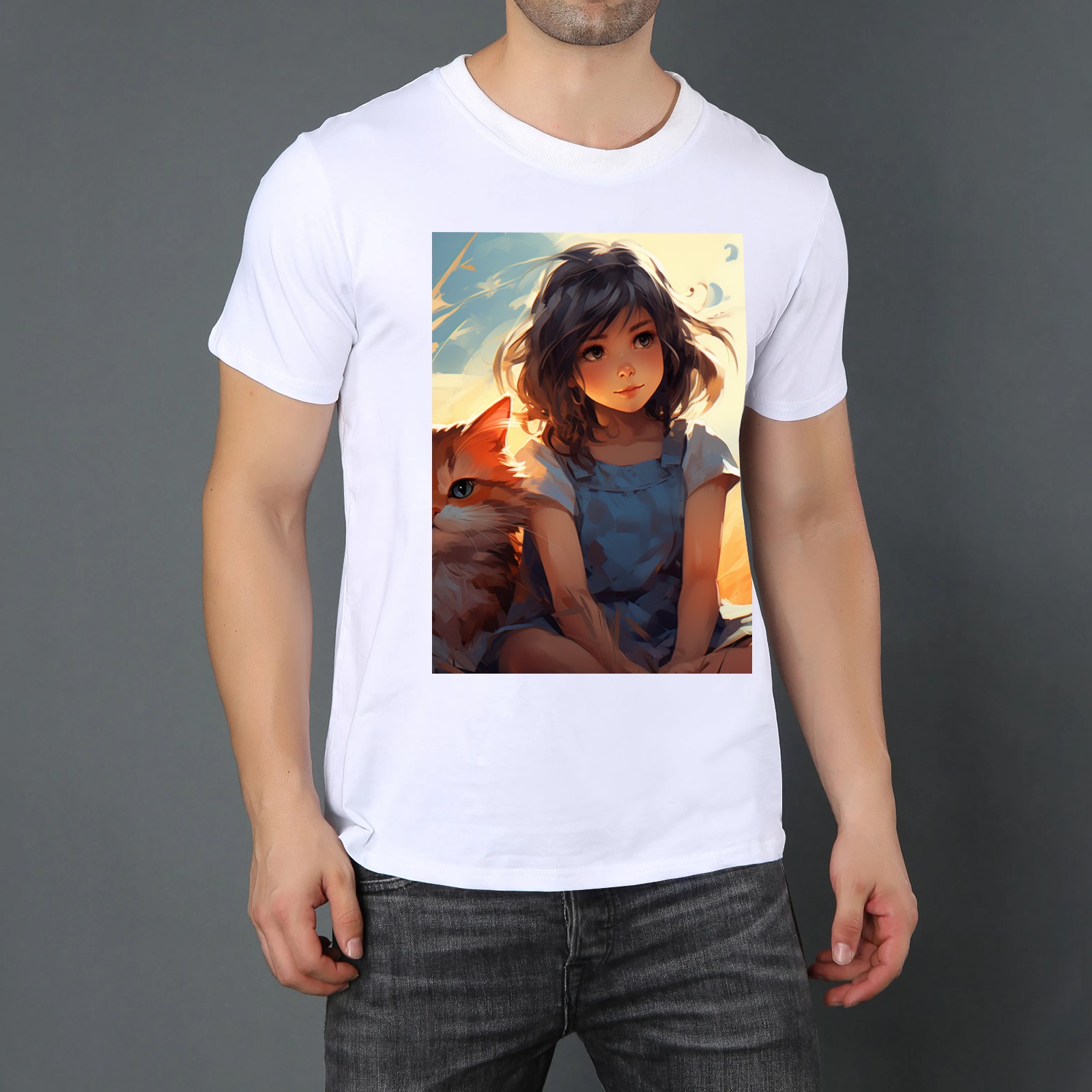 Basic Oversize Tees For WomenBjkj_cartoon_girl_holding_a_cat_while_sitting_in_field_in_the__d2358f28-b021-43c9-8cf9-86eef914c812 Loose Boyfriend Shirts Casual Blouse round neck