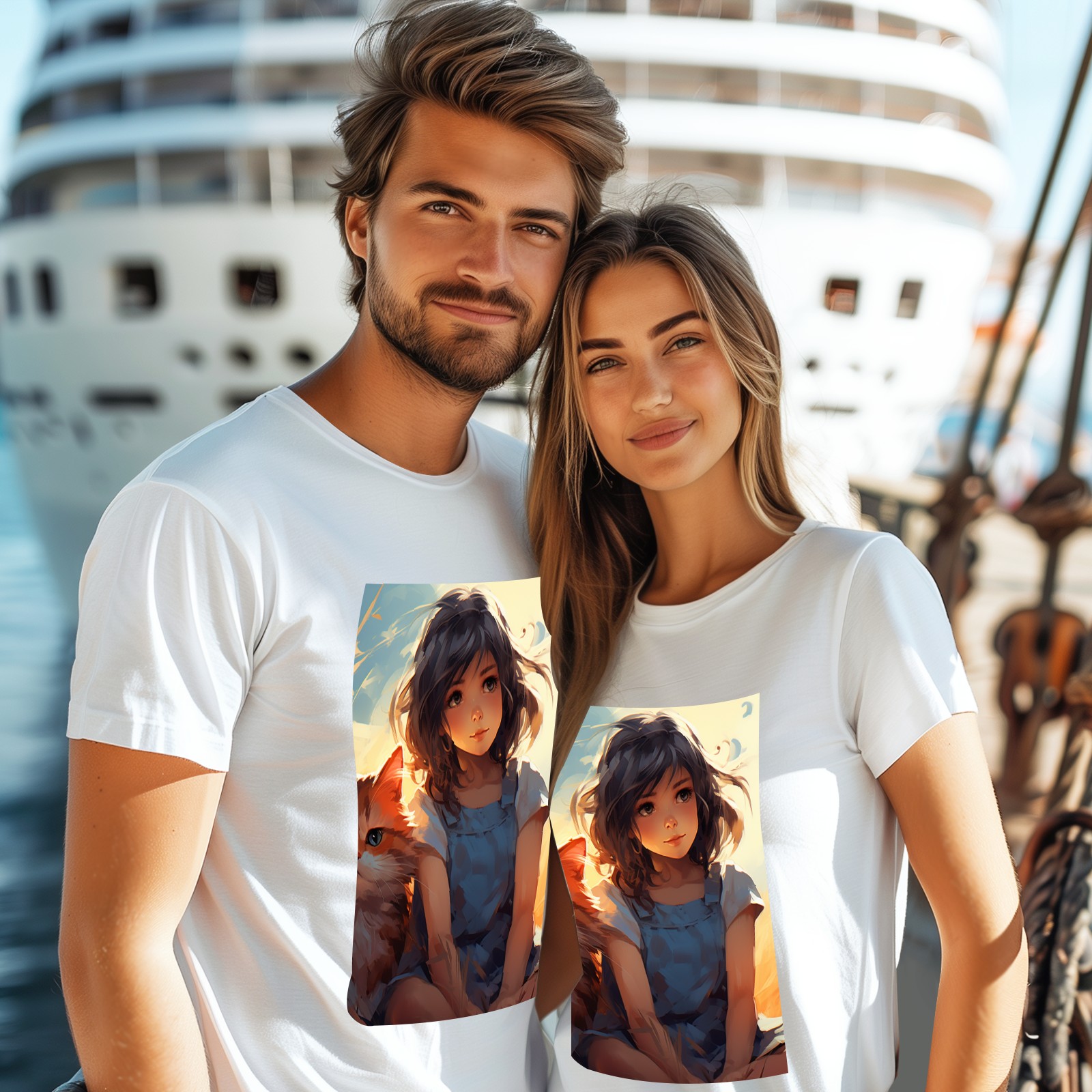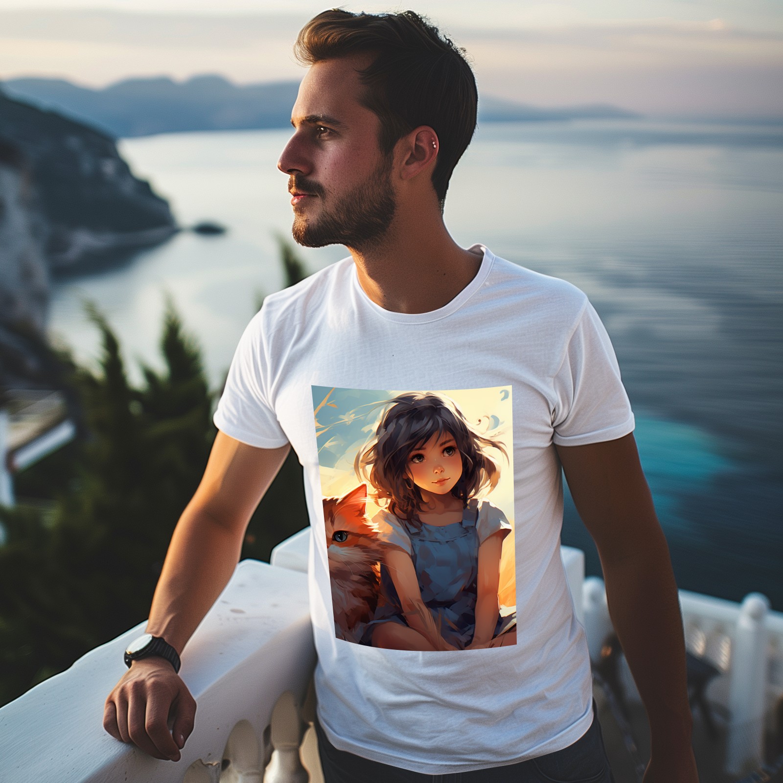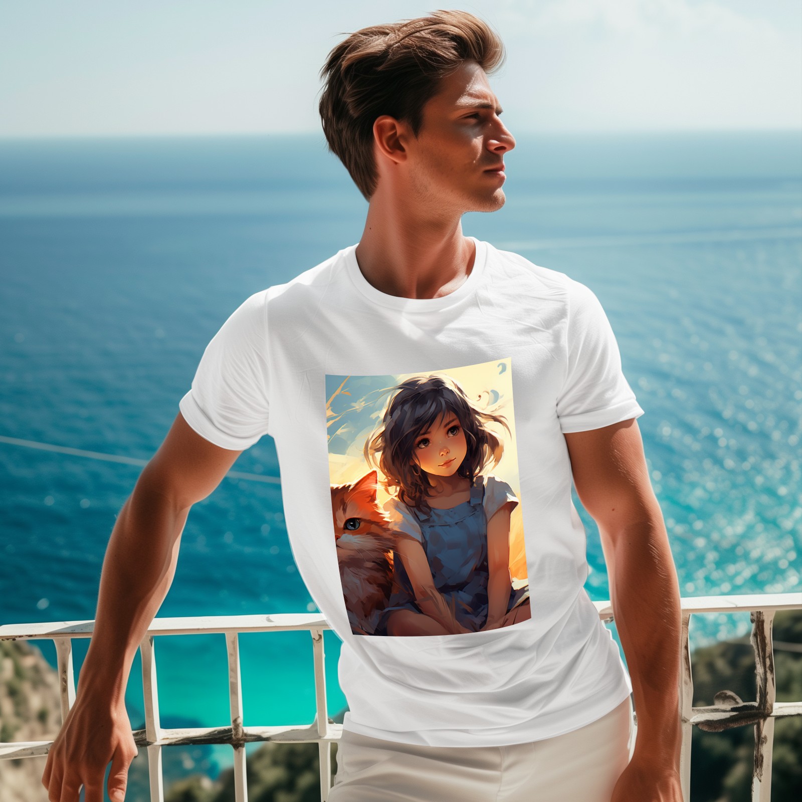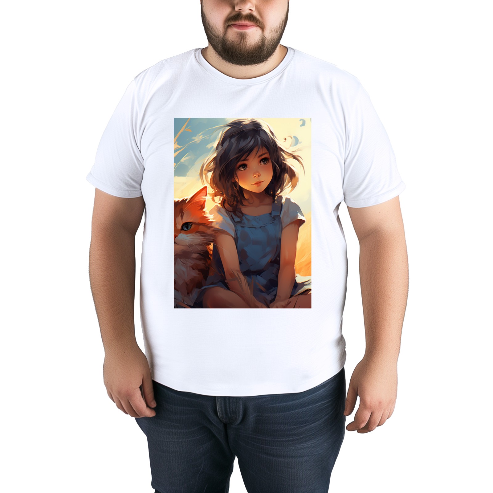 Basic Oversize Tees For WomenBjkj_cartoon_girl_holding_a_cat_while_sitting_in_field_in_the__d2358f28-b021-43c9-8cf9-86eef914c812 Loose Boyfriend Shirts Casual Blouse round neck
