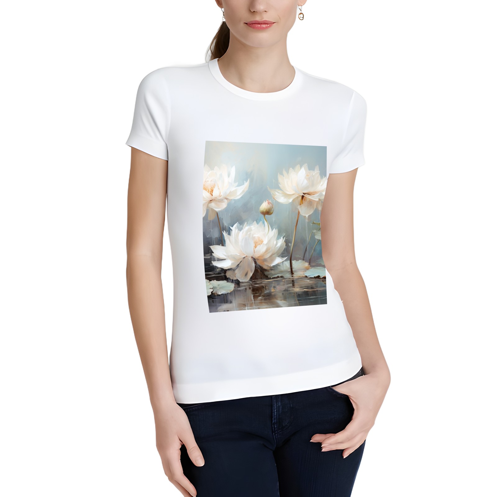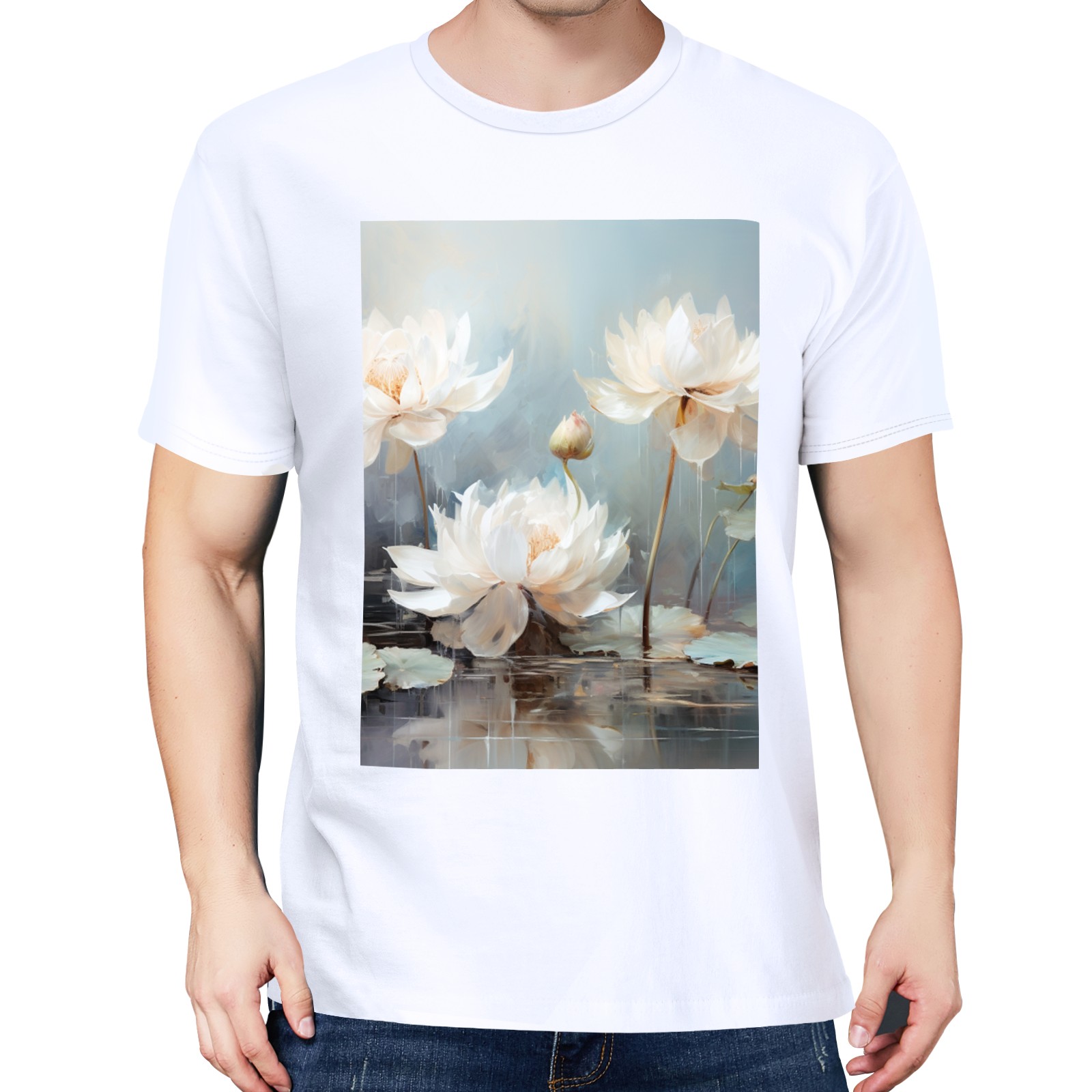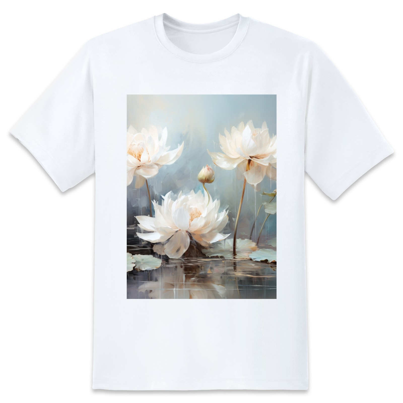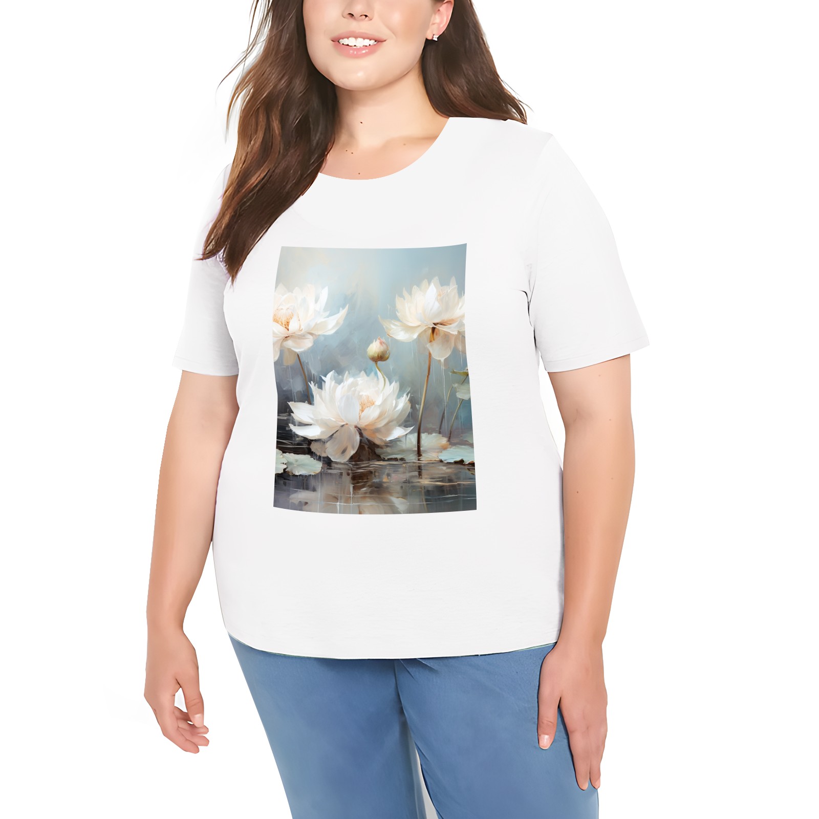 Basic Oversize Tees For WomenBjkj_blue_lotus_flower_floral_art_print_large_oil_painting_abs_fc5aa6b4-611c-4e61-b55d-a4a523cfec13 Loose Boyfriend Shirts Casual Blouse round neck