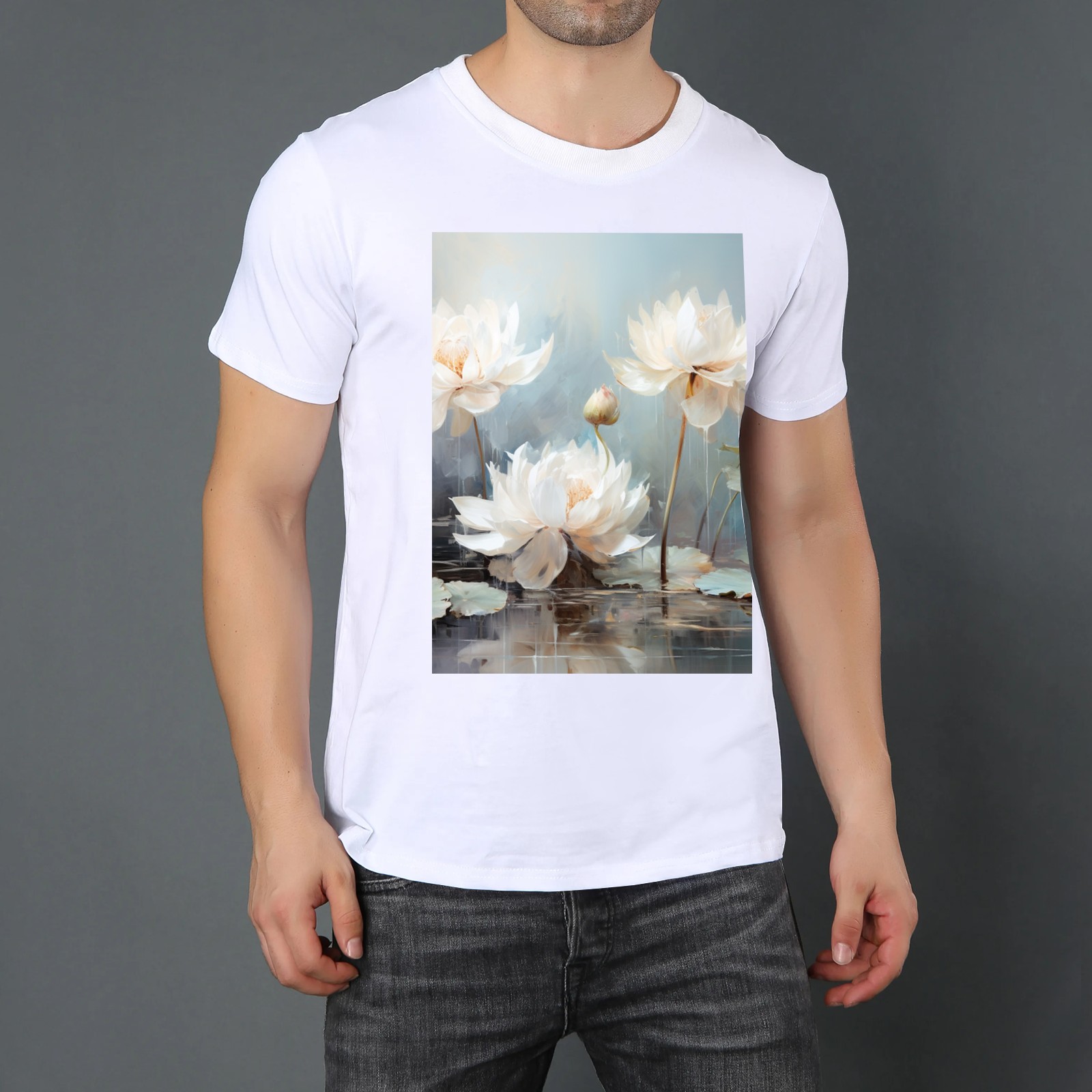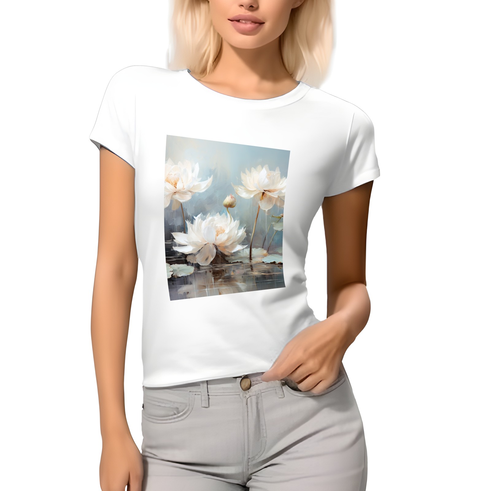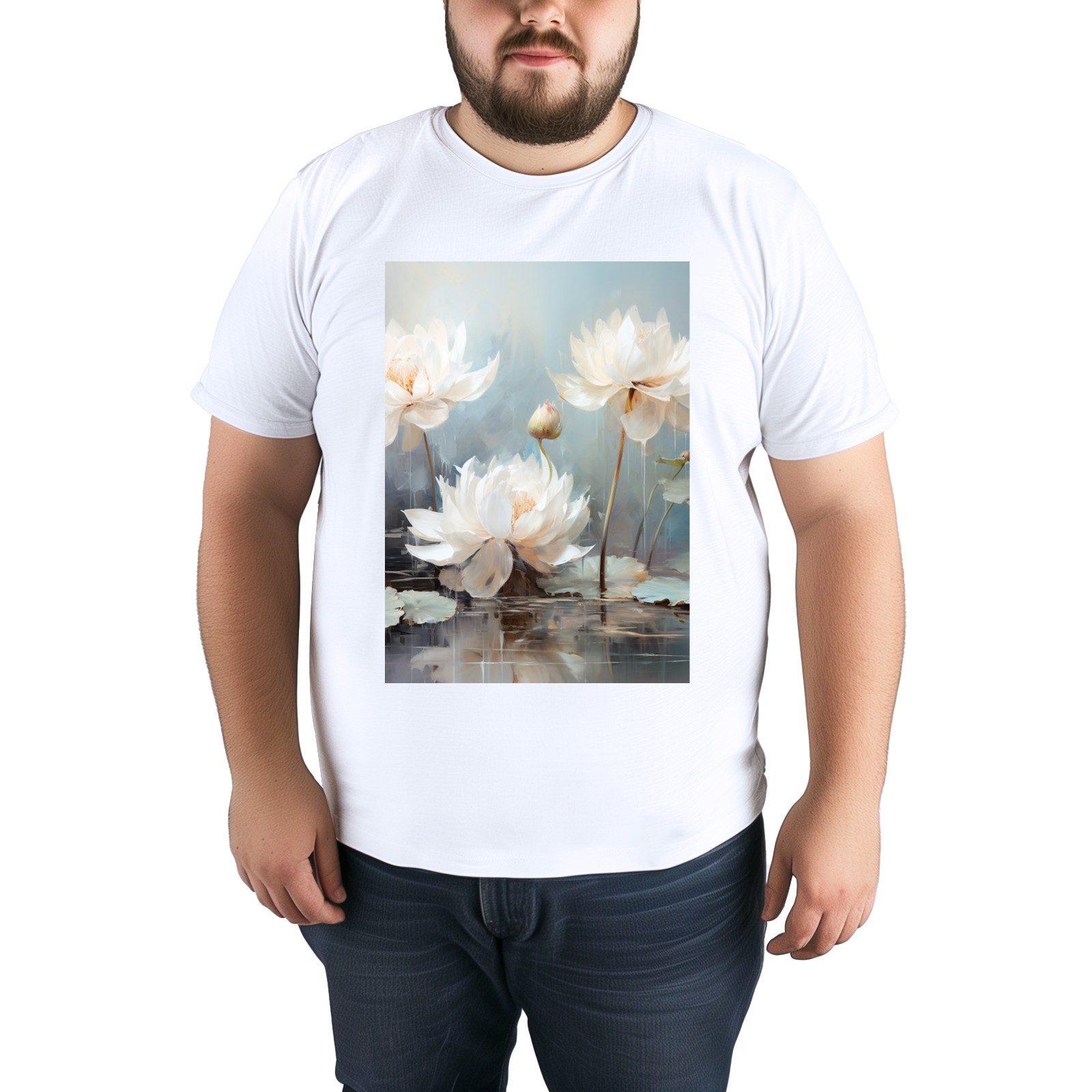 Basic Oversize Tees For WomenBjkj_blue_lotus_flower_floral_art_print_large_oil_painting_abs_fc5aa6b4-611c-4e61-b55d-a4a523cfec13 Loose Boyfriend Shirts Casual Blouse round neck
