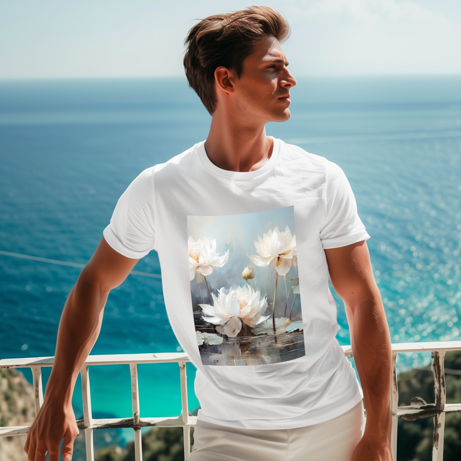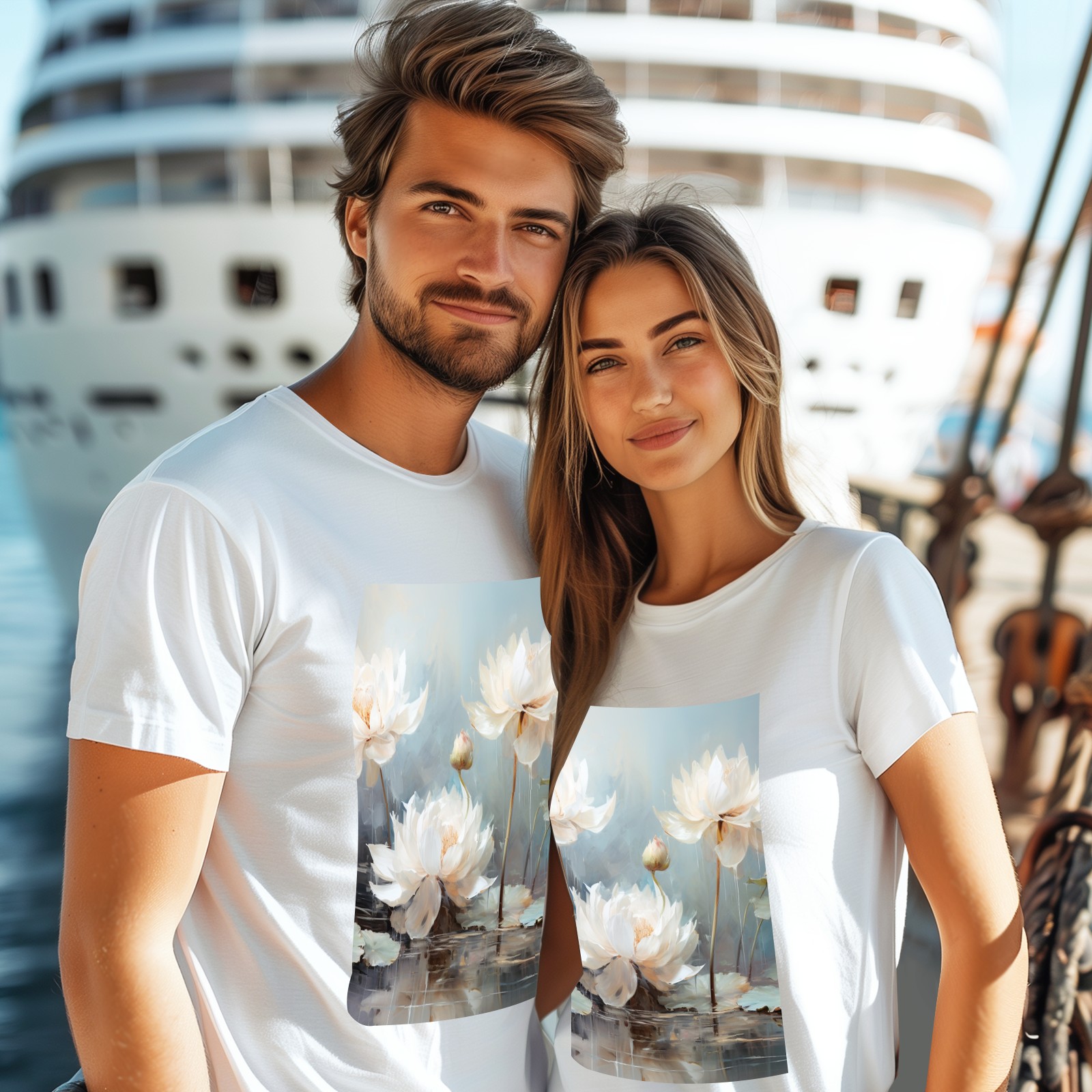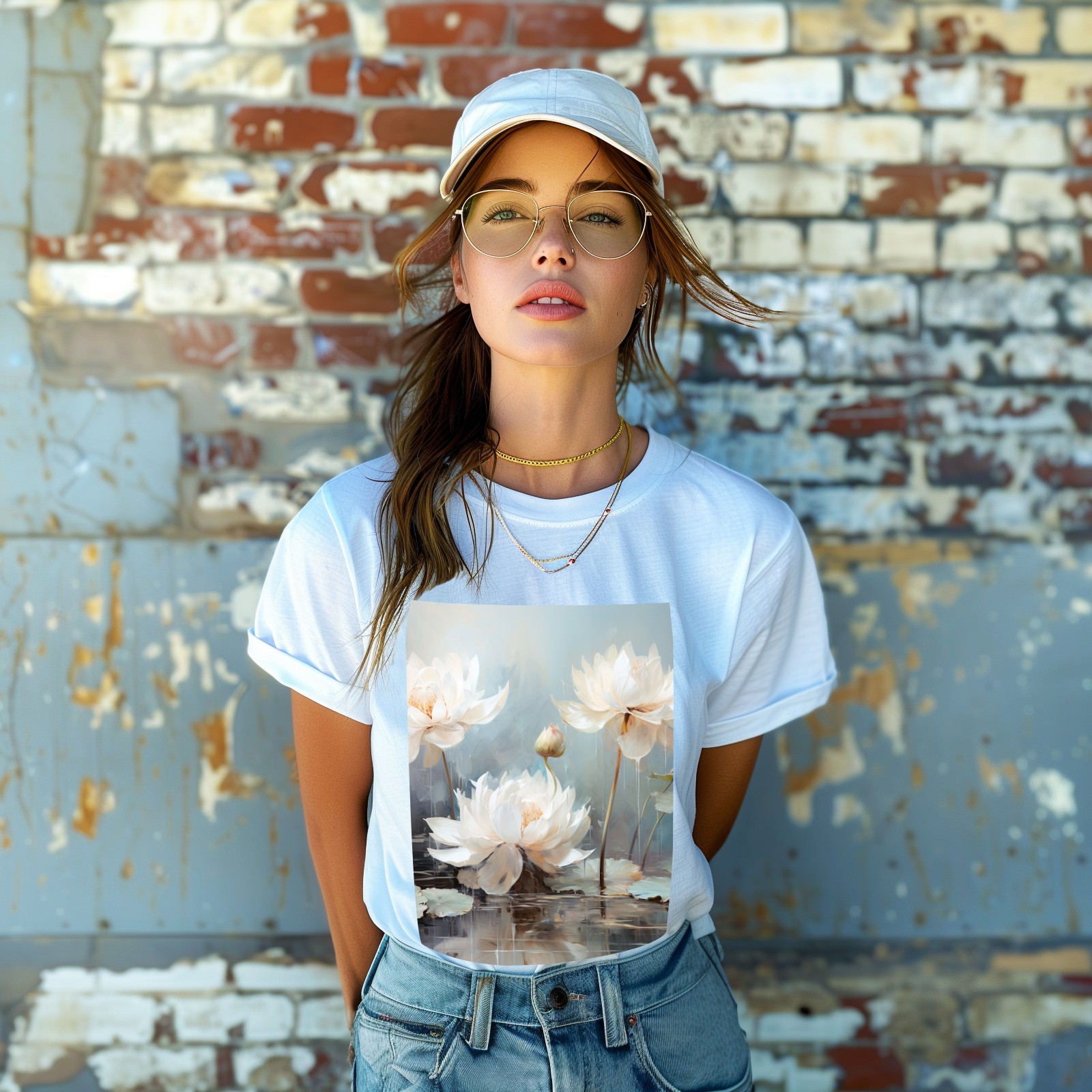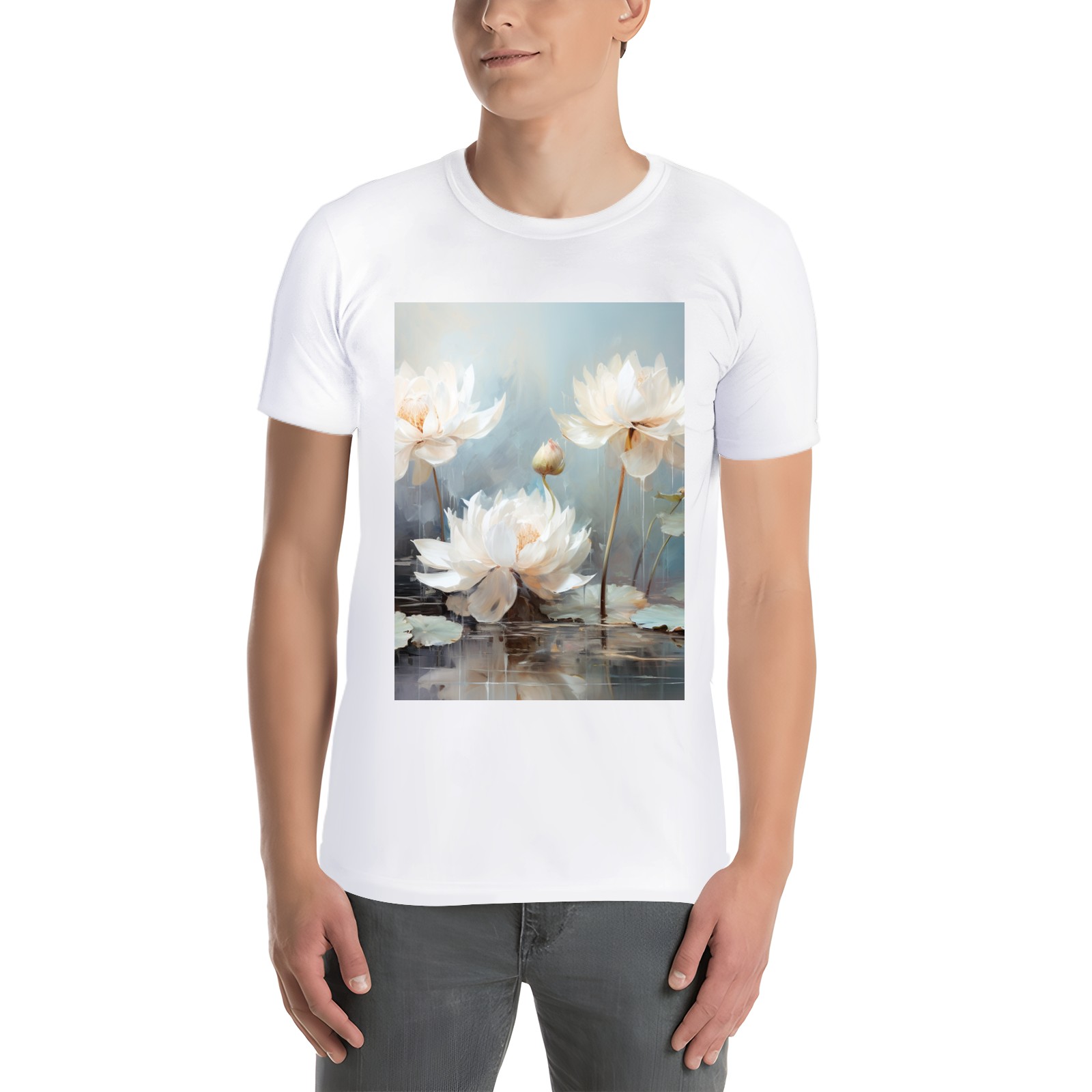 Basic Oversize Tees For WomenBjkj_blue_lotus_flower_floral_art_print_large_oil_painting_abs_fc5aa6b4-611c-4e61-b55d-a4a523cfec13 Loose Boyfriend Shirts Casual Blouse round neck