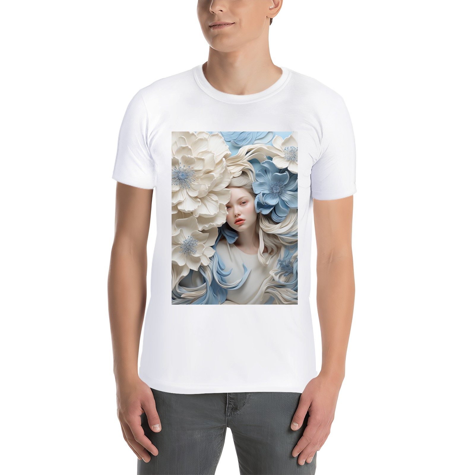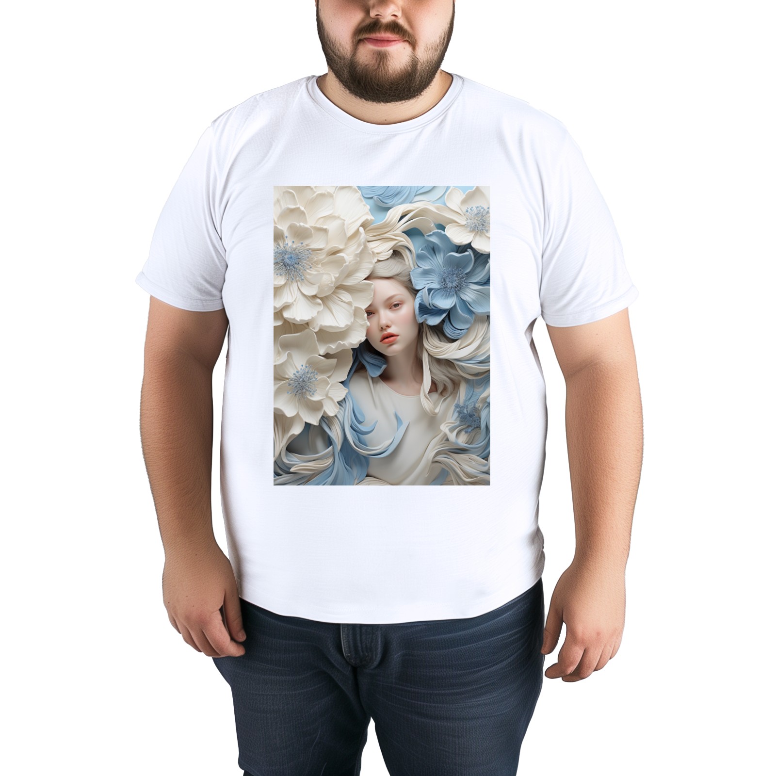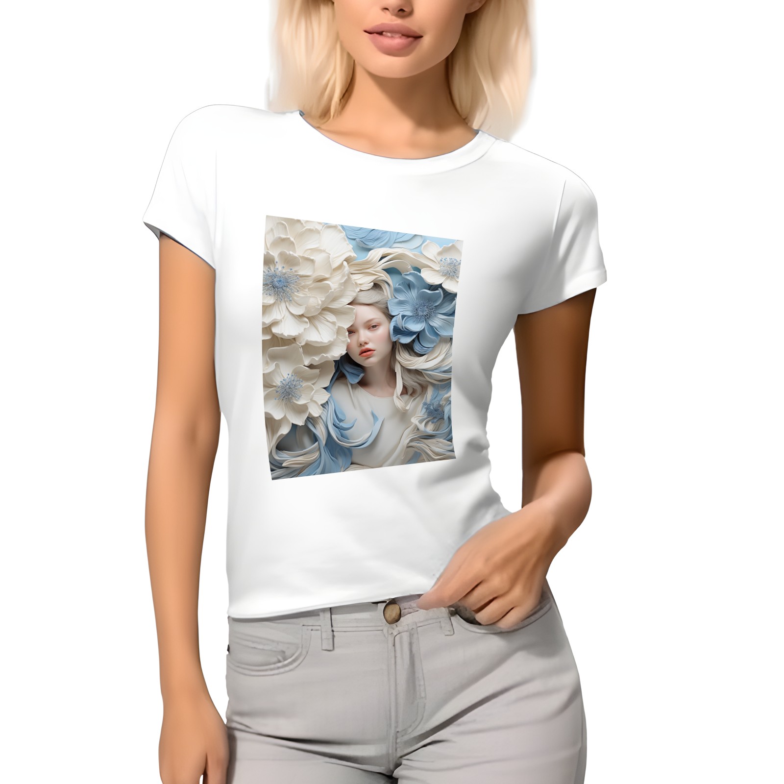 Basic Oversize Tees For WomenBjkj_blue_flower_painting_in_the_style_of_white_and_beige_high_941803d0-59cb-4733-a276-4ecce2d3b0c6 Loose Boyfriend Shirts Casual Blouse round neck