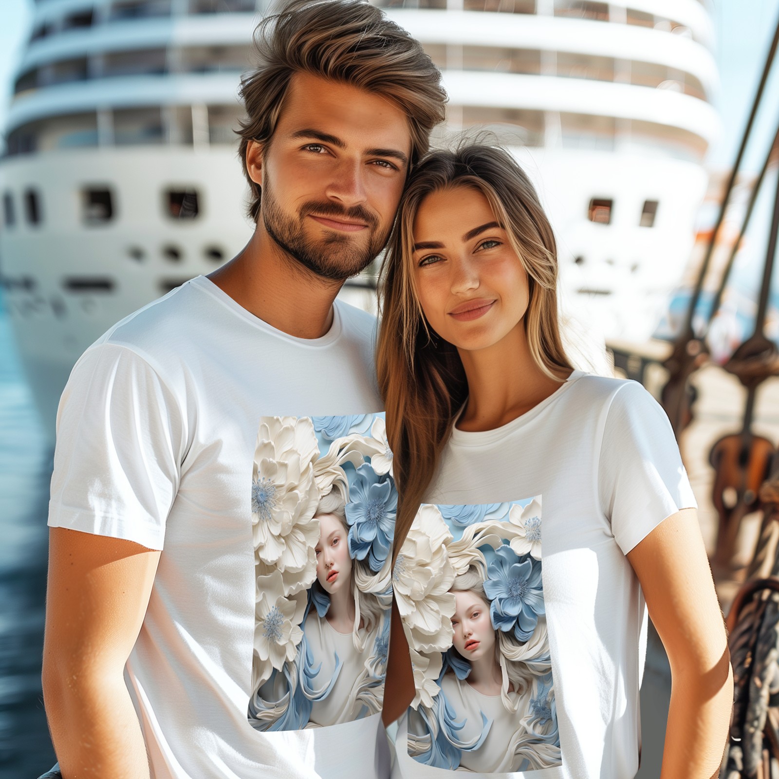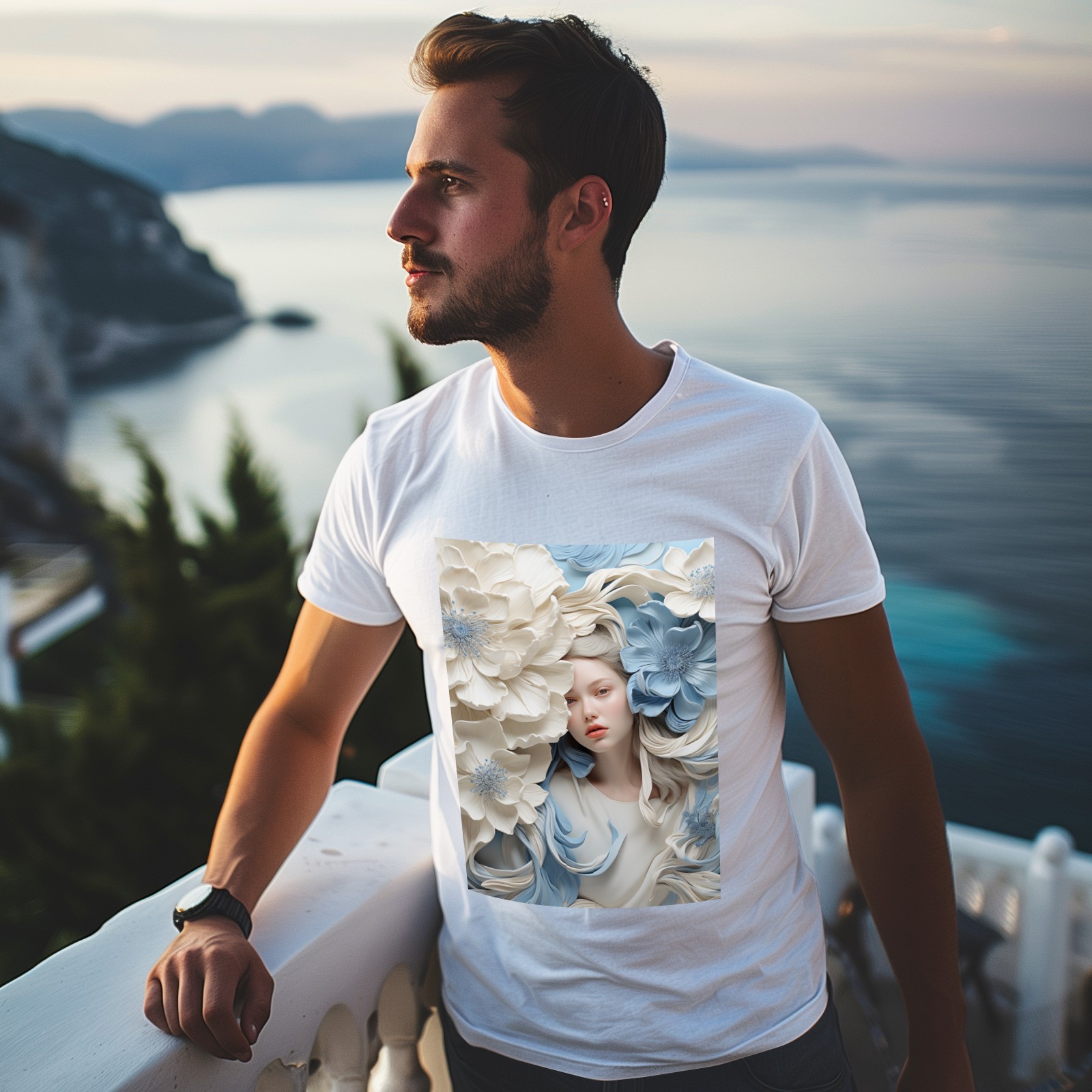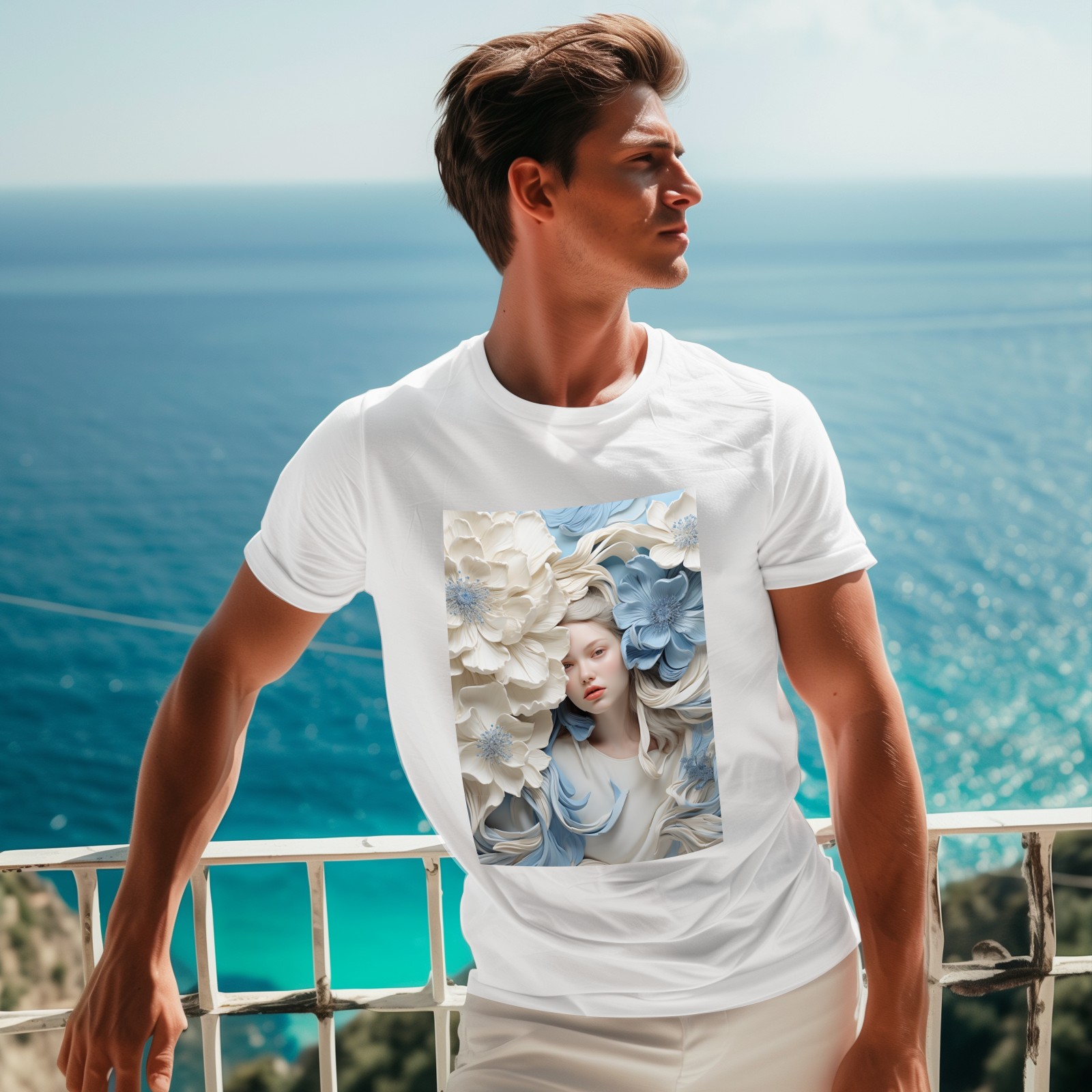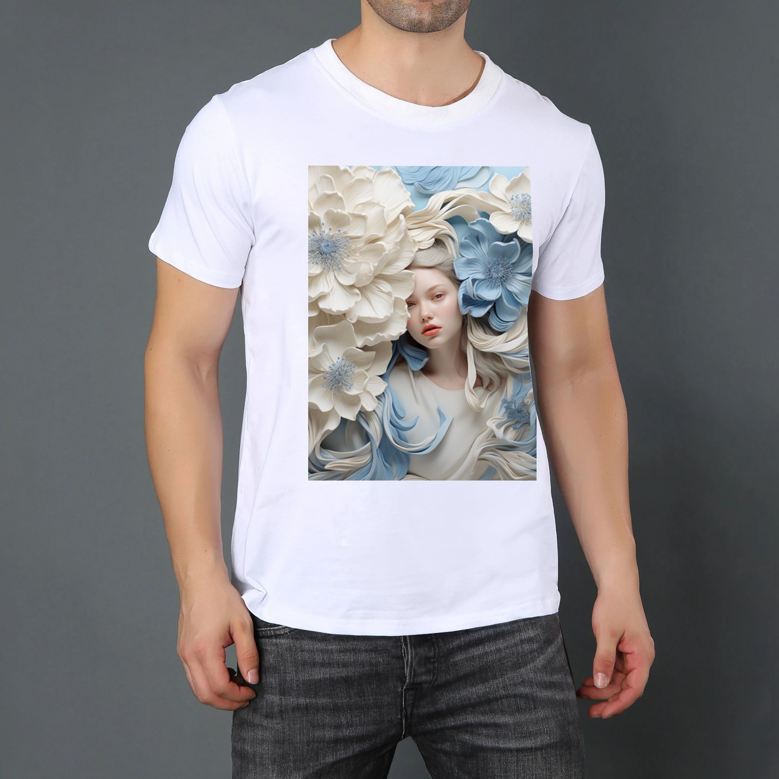 Basic Oversize Tees For WomenBjkj_blue_flower_painting_in_the_style_of_white_and_beige_high_941803d0-59cb-4733-a276-4ecce2d3b0c6 Loose Boyfriend Shirts Casual Blouse round neck