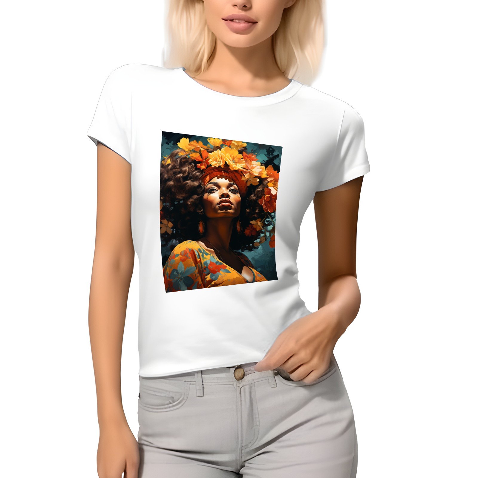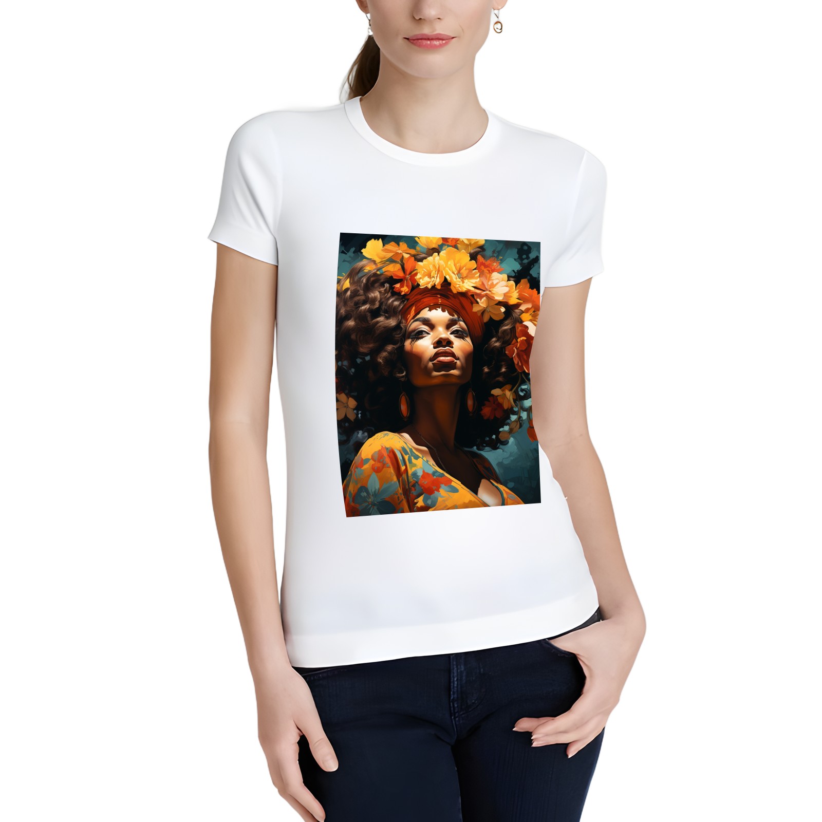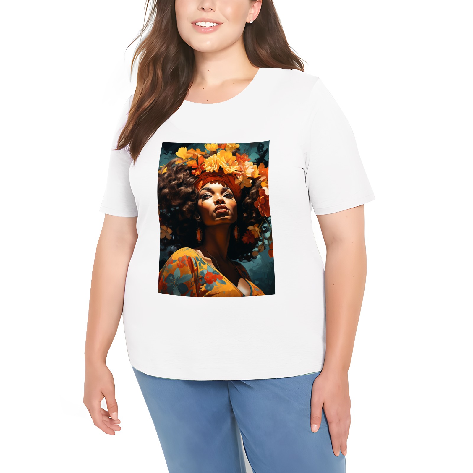Basic Oversize Tees For WomenBjkj_an_older_woman_with_flowers_in_her_hair_in_the_style_of_m_2946f51d-f8b9-4afc-9165-71b45dbd84b3 Loose Boyfriend Shirts Casual Blouse round neck