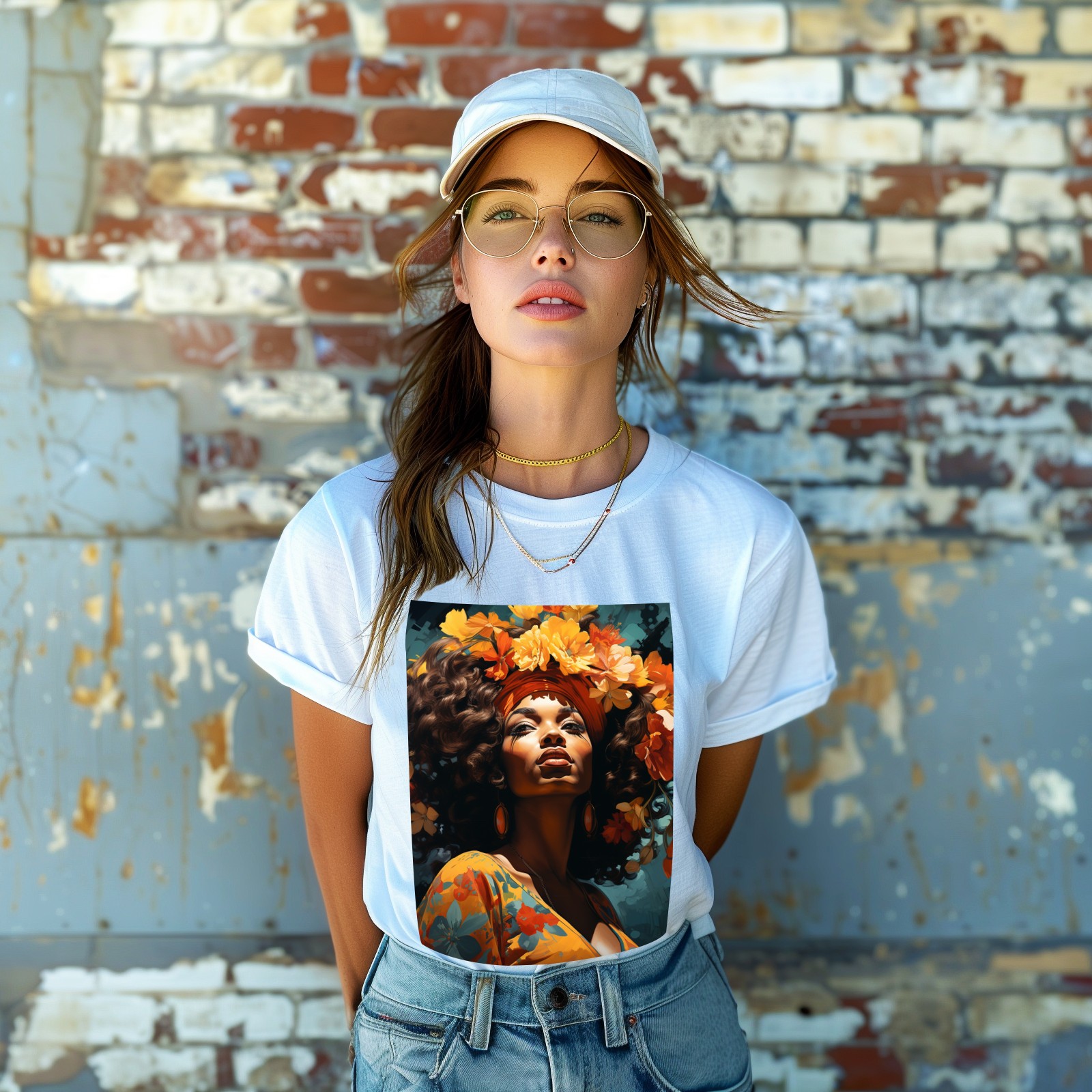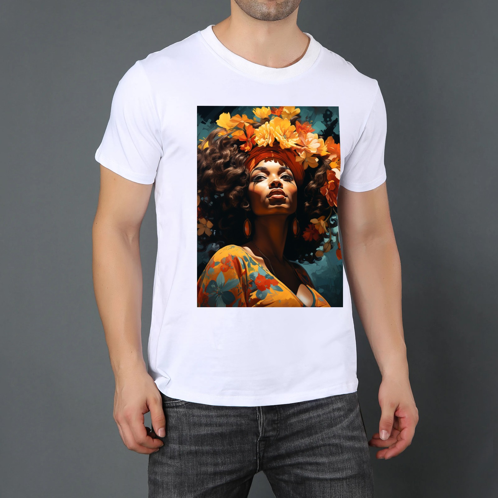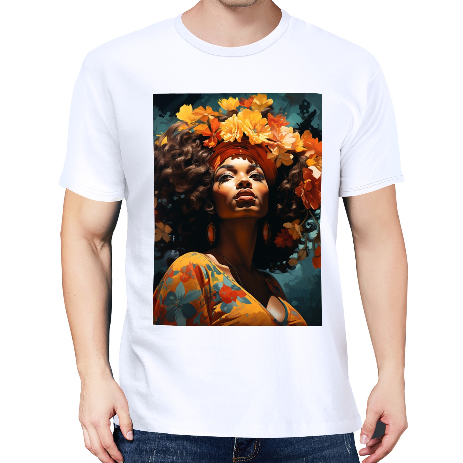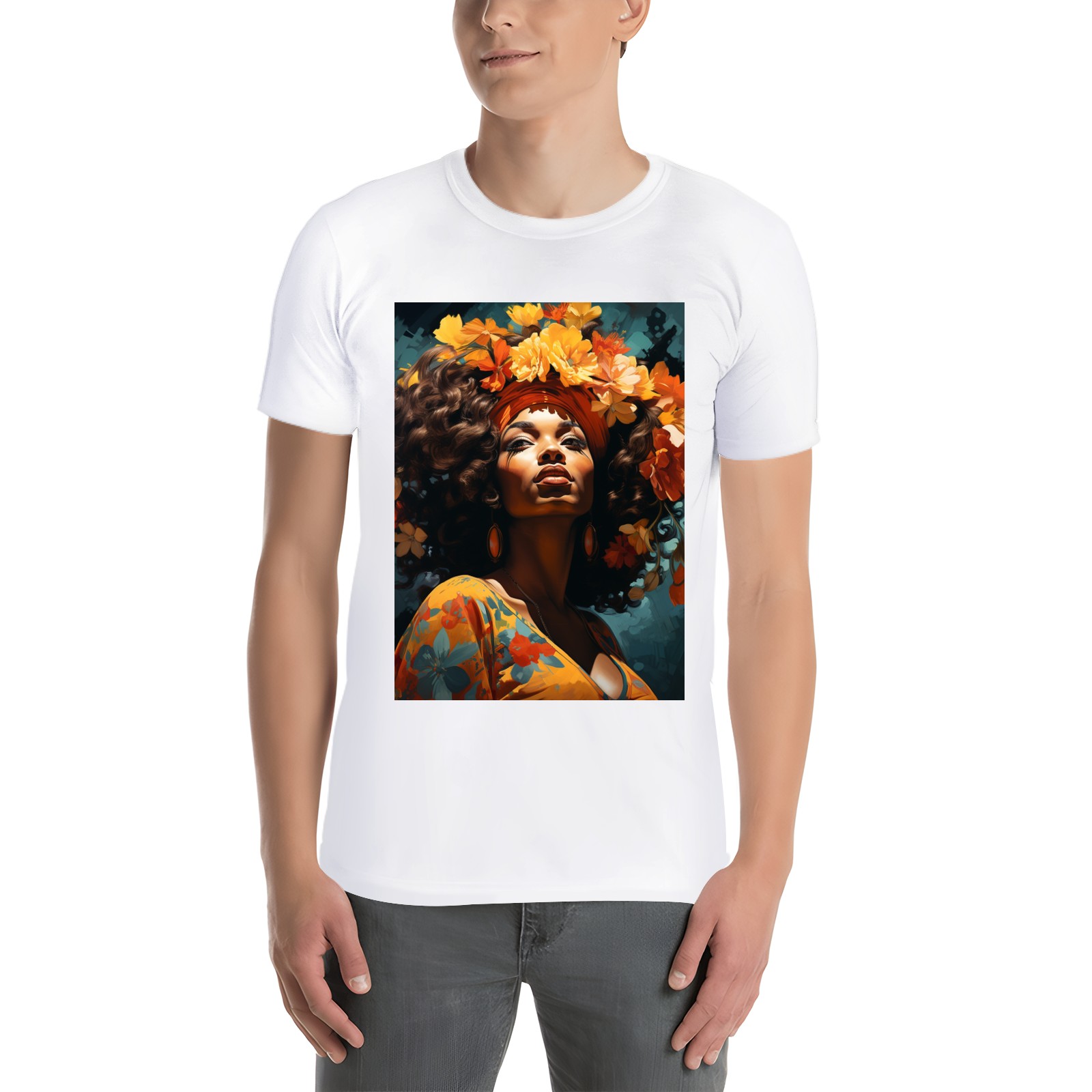 Basic Oversize Tees For WomenBjkj_an_older_woman_with_flowers_in_her_hair_in_the_style_of_m_2946f51d-f8b9-4afc-9165-71b45dbd84b3 Loose Boyfriend Shirts Casual Blouse round neck