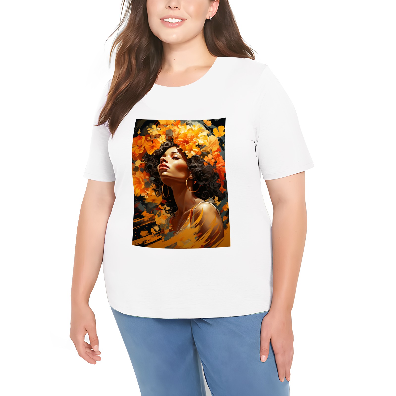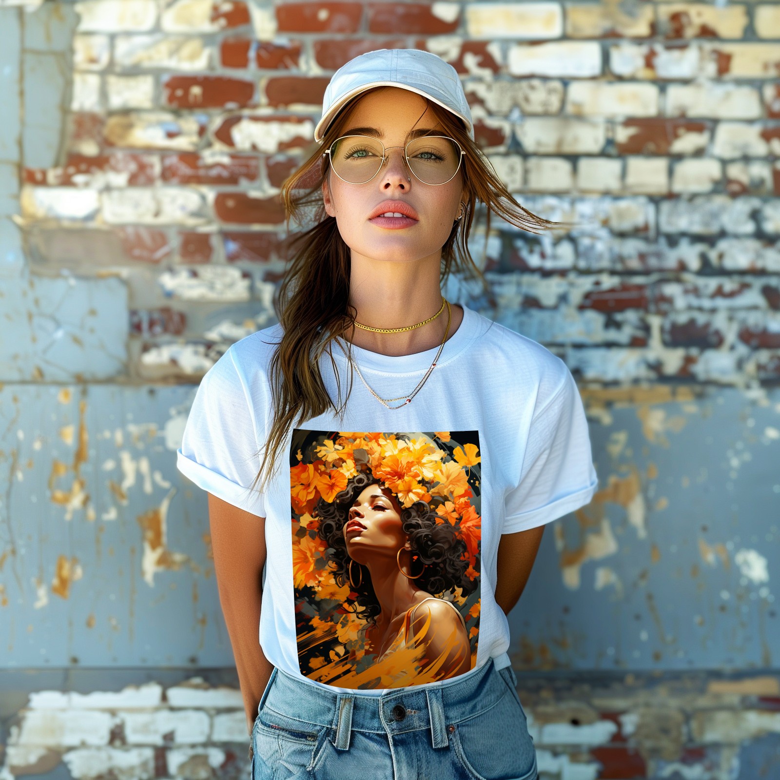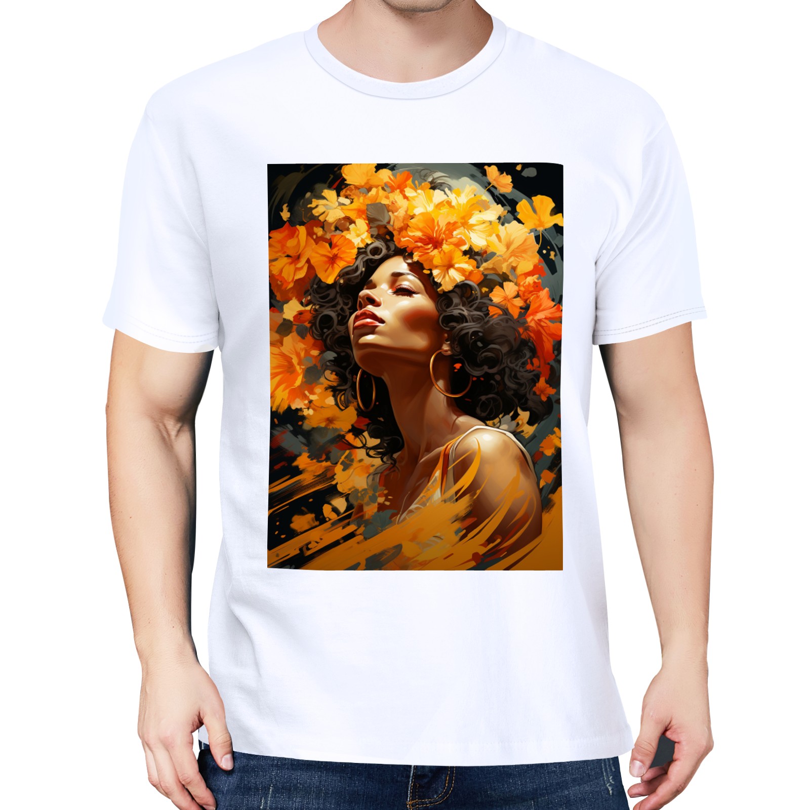 Basic Oversize Tees For WomenBjkj_an_older_woman_with_flowers_in_her_hair_in_the_style_of_m_967ac4d8-e0dc-4759-b8fd-b2db477329b4 Loose Boyfriend Shirts Casual Blouse round neck