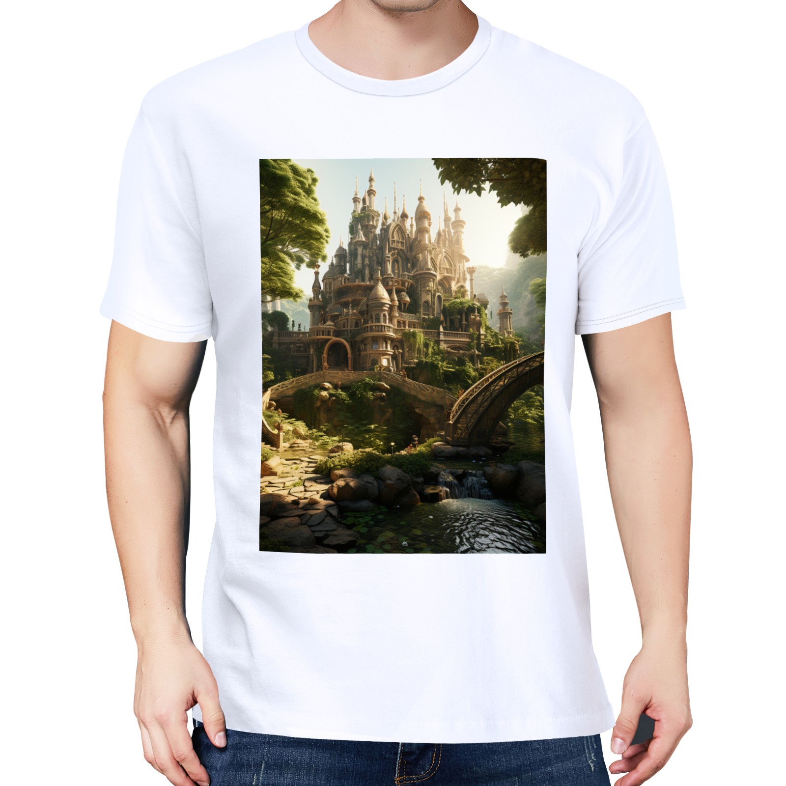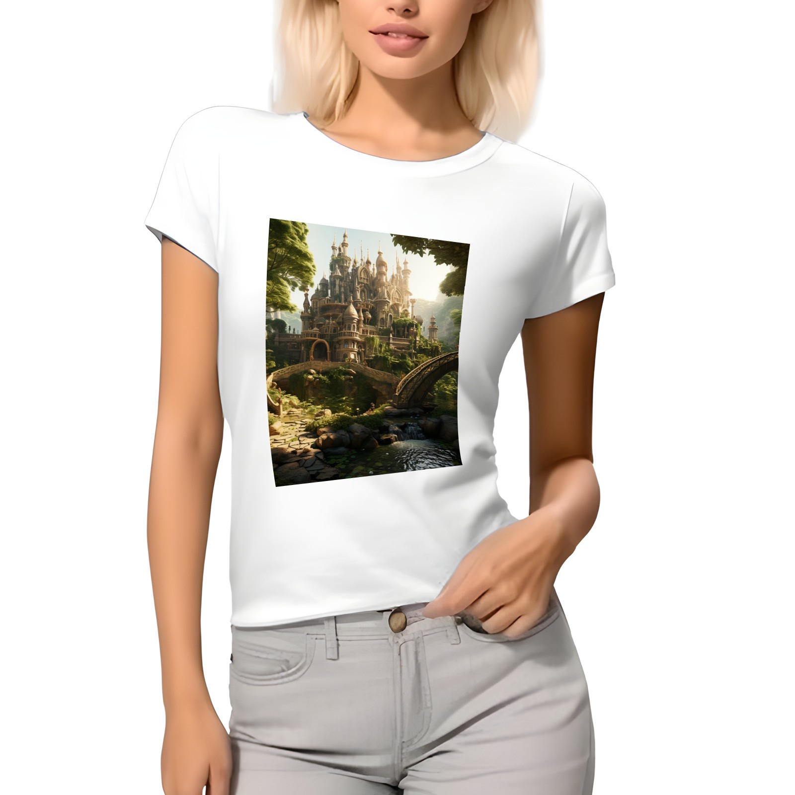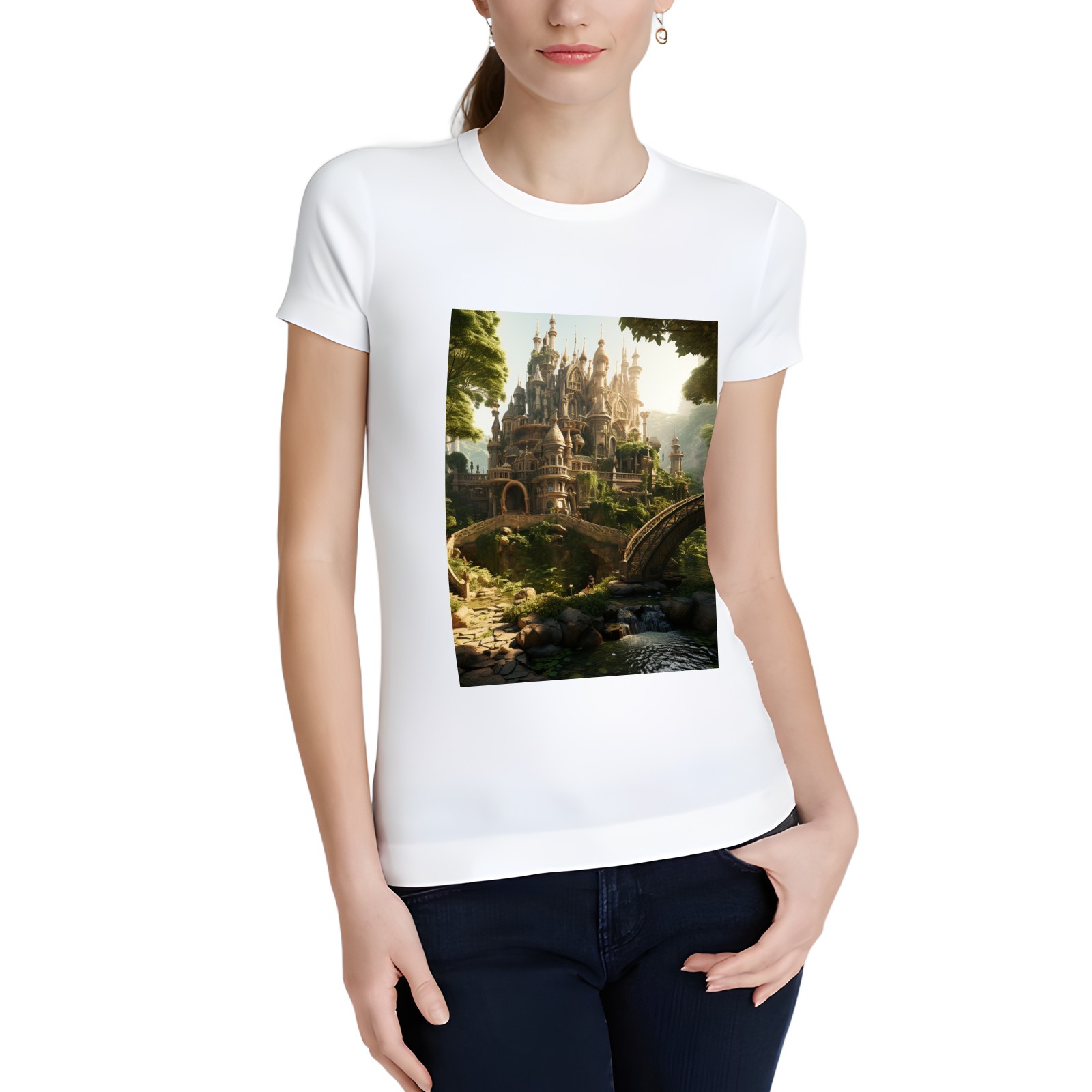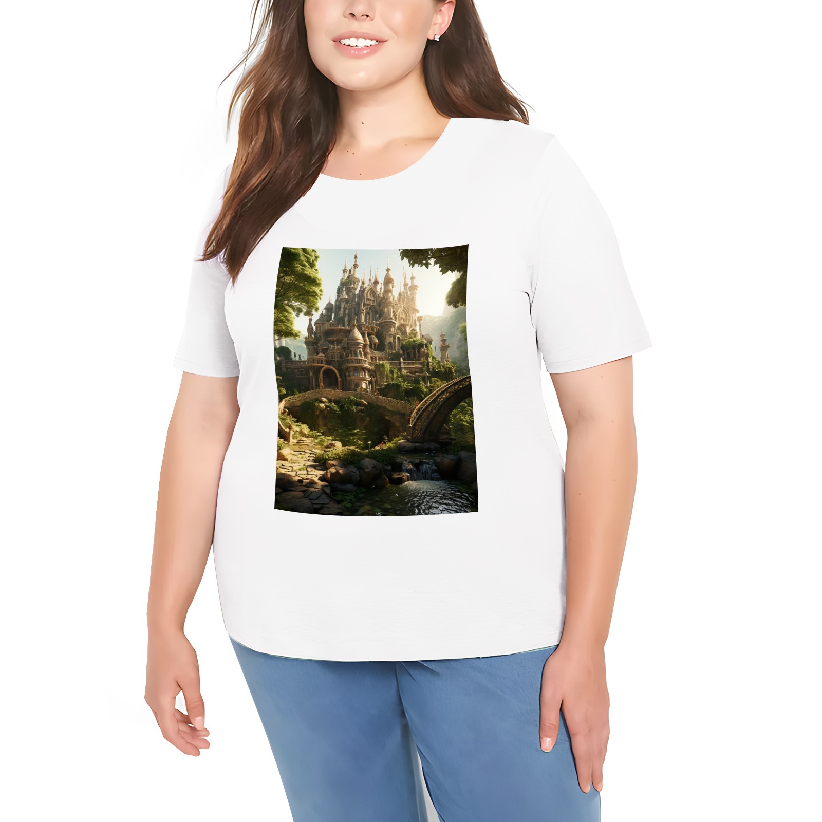 Basic Oversize Tees For WomenBjkj_an_old_castle_in_the_middle_of_the_forest_in_the_style_of_f7973160-ee0c-4b31-a6f3-cf657d30c975 Loose Boyfriend Shirts Casual Blouse round neck