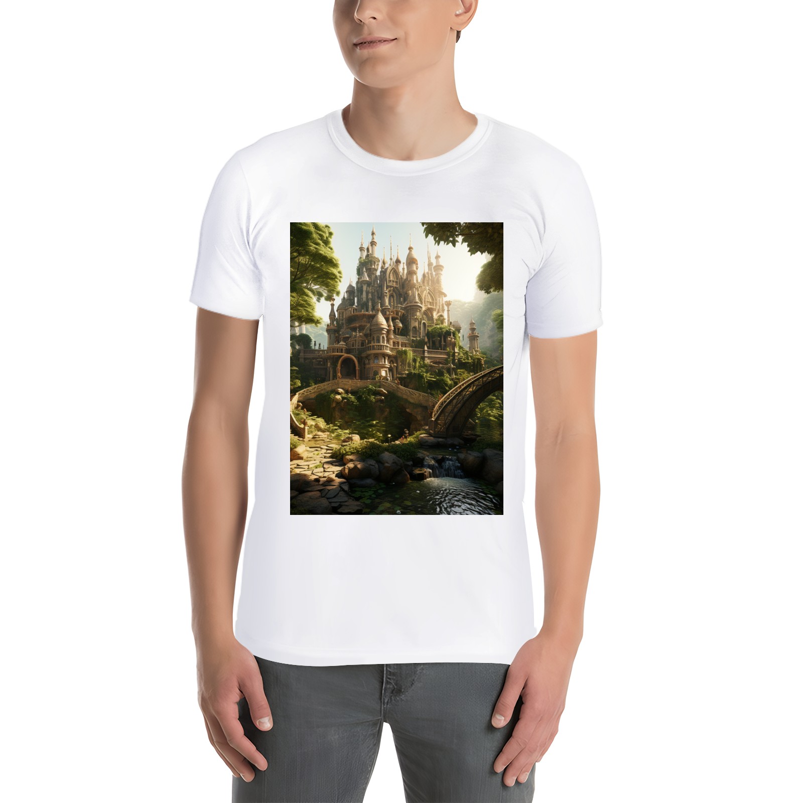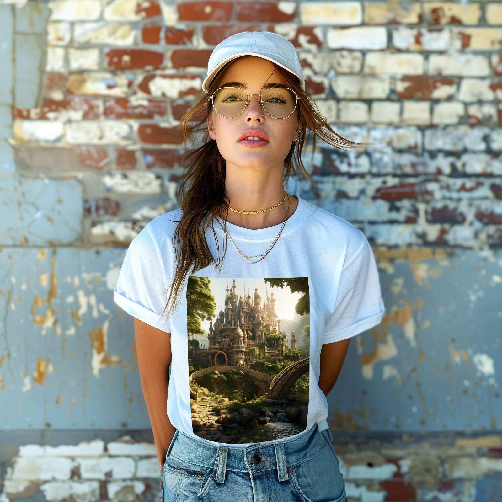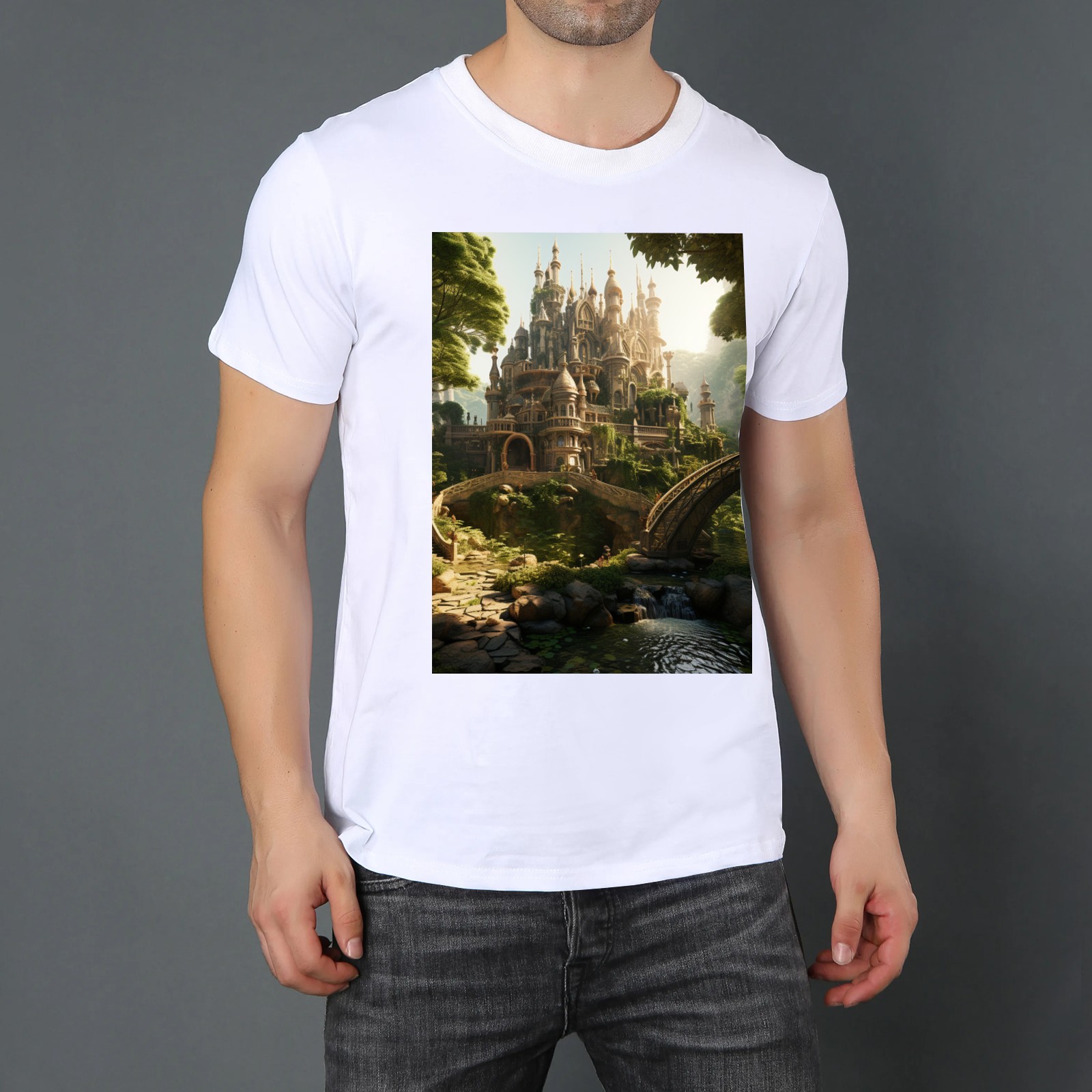 Basic Oversize Tees For WomenBjkj_an_old_castle_in_the_middle_of_the_forest_in_the_style_of_f7973160-ee0c-4b31-a6f3-cf657d30c975 Loose Boyfriend Shirts Casual Blouse round neck