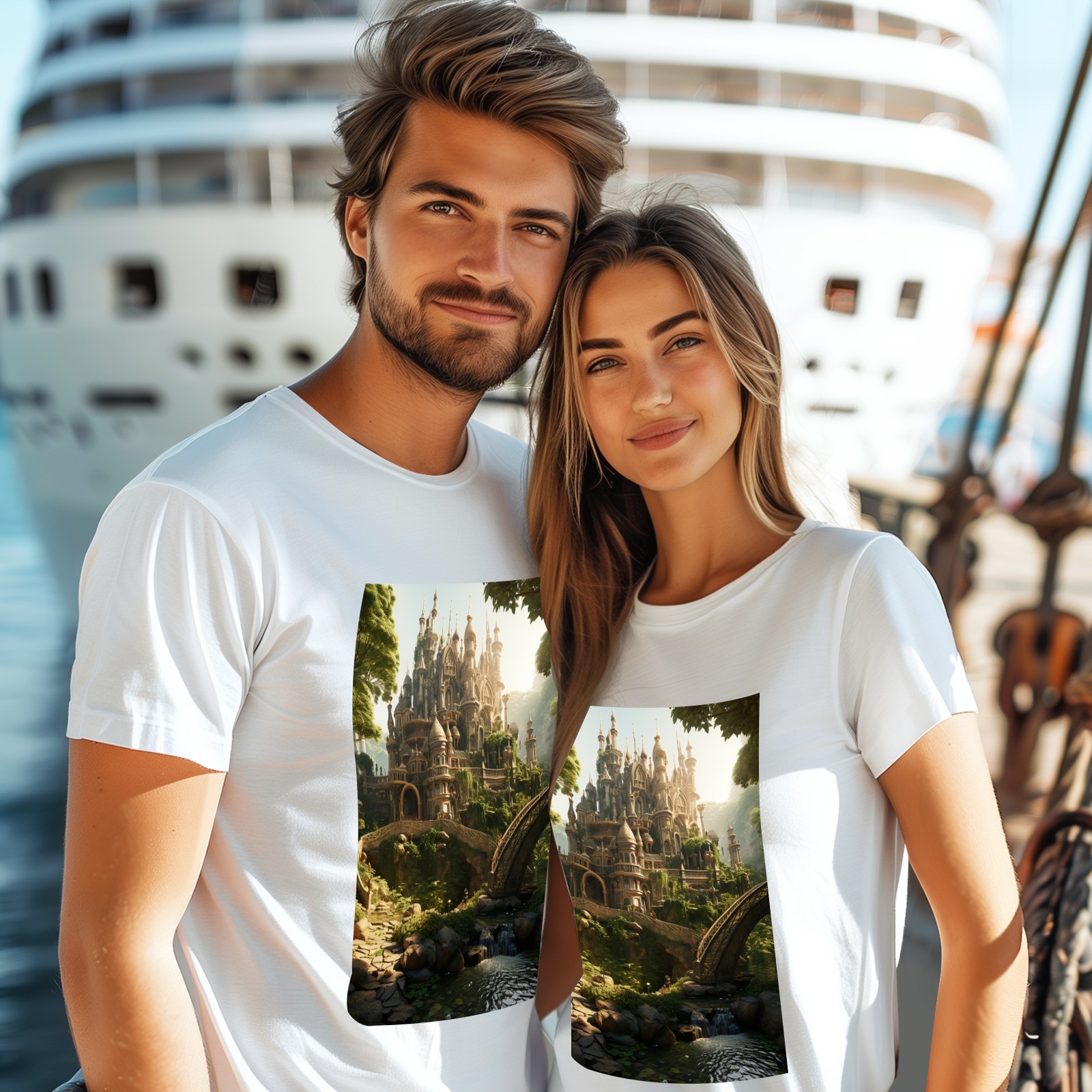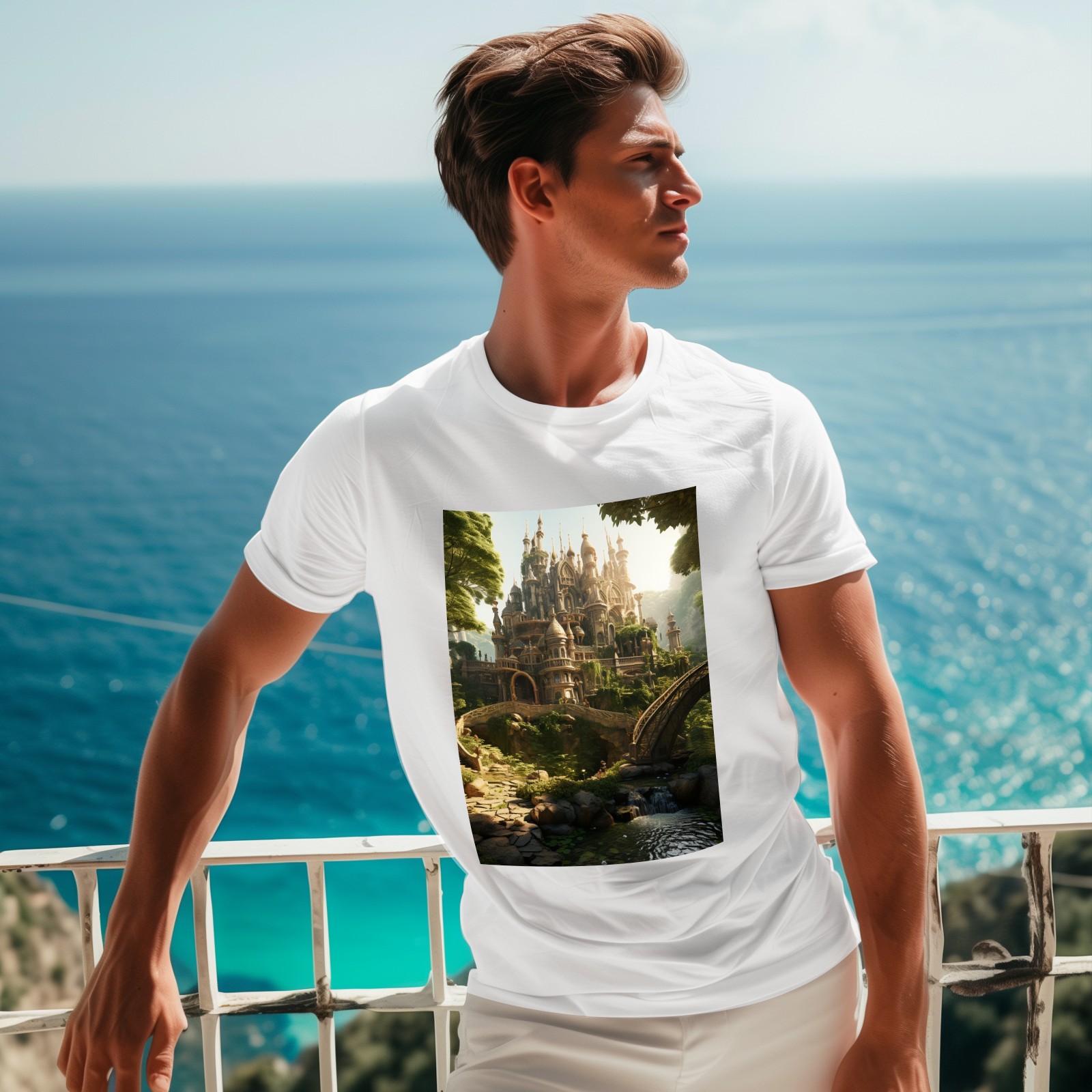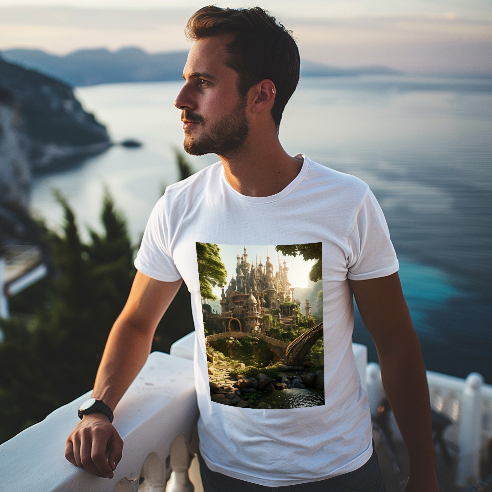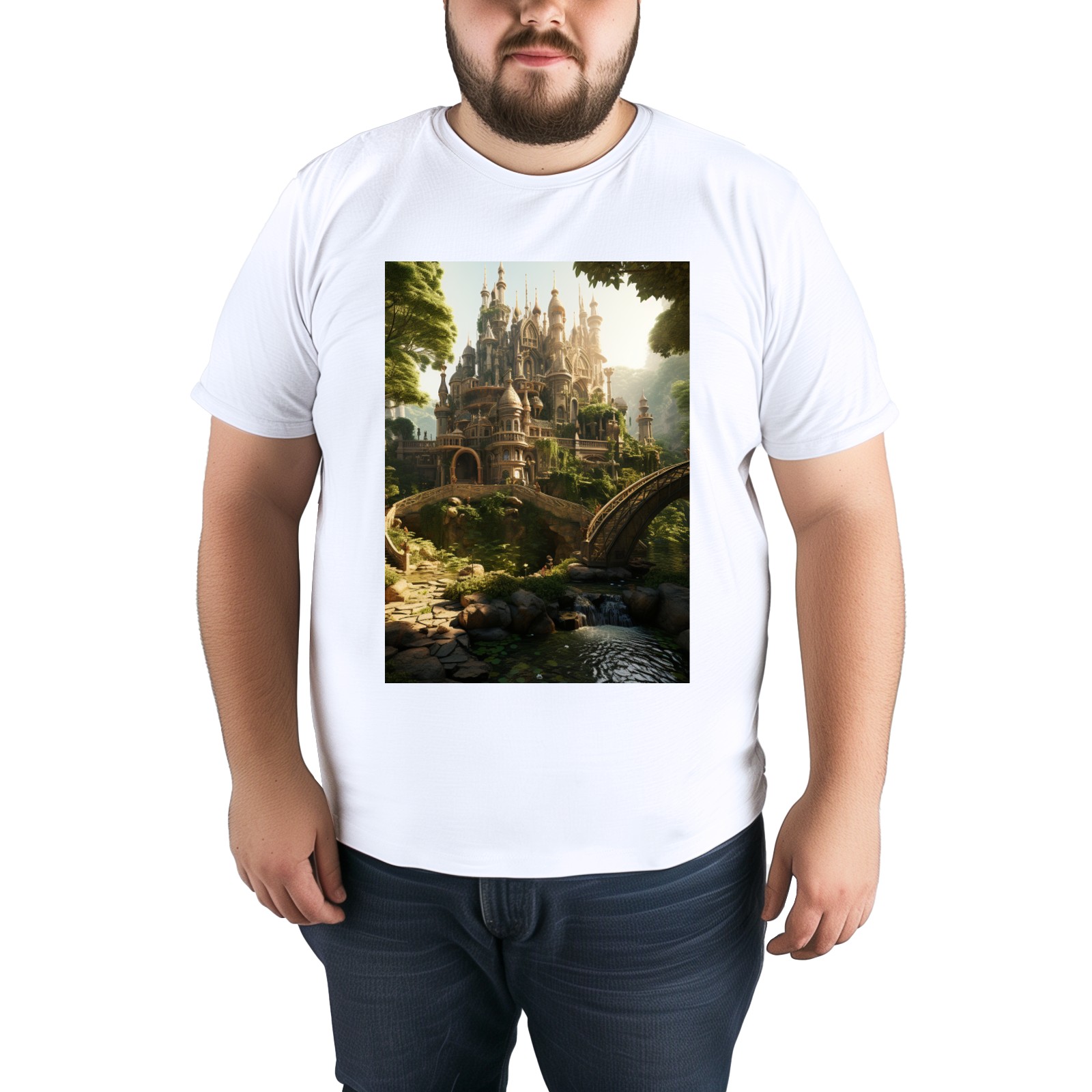Basic Oversize Tees For WomenBjkj_an_old_castle_in_the_middle_of_the_forest_in_the_style_of_f7973160-ee0c-4b31-a6f3-cf657d30c975 Loose Boyfriend Shirts Casual Blouse round neck