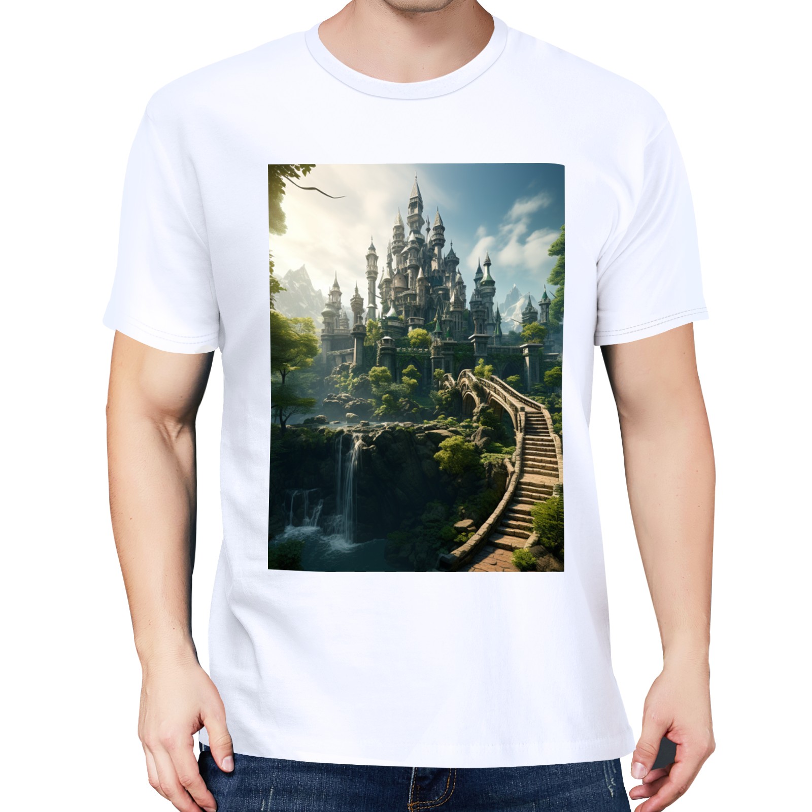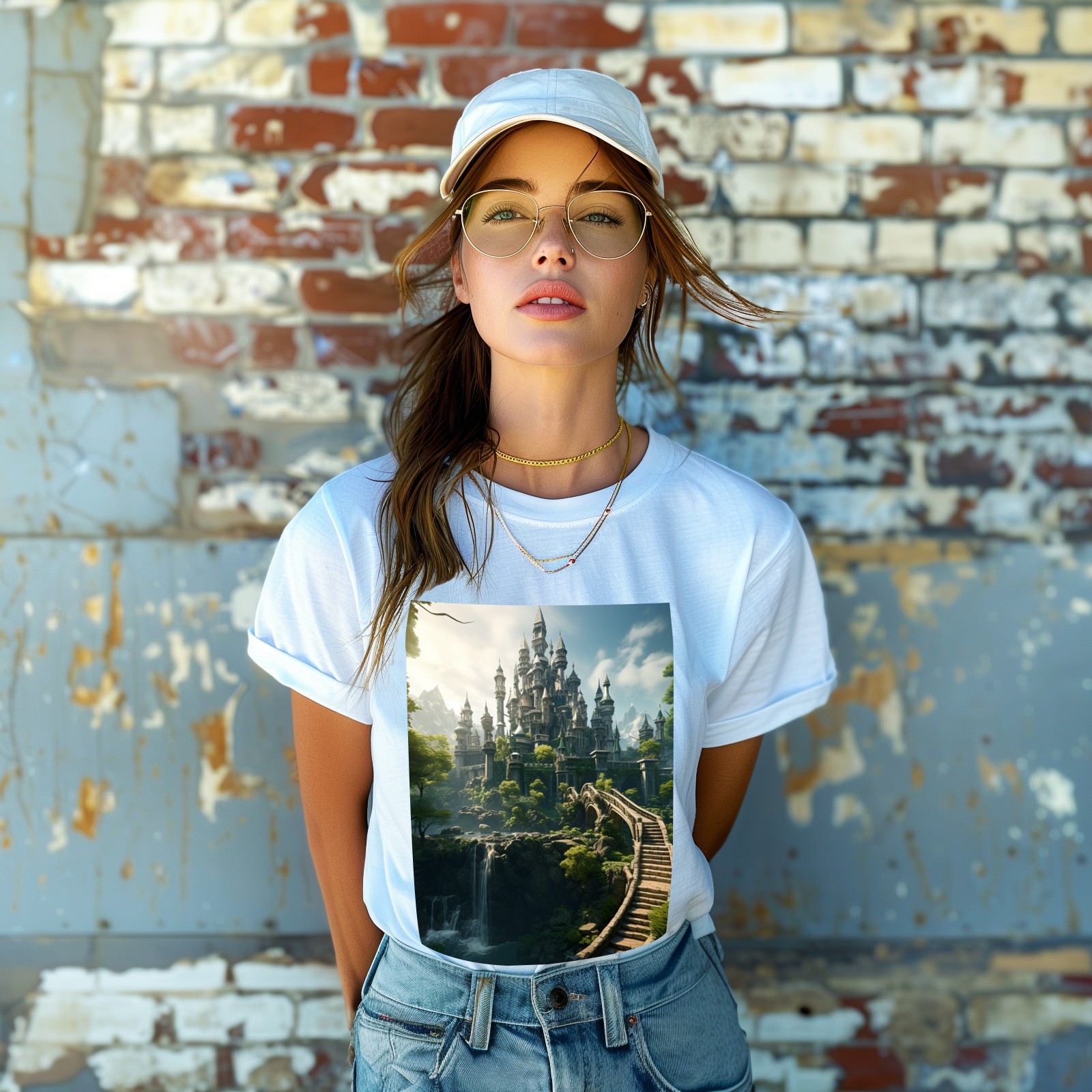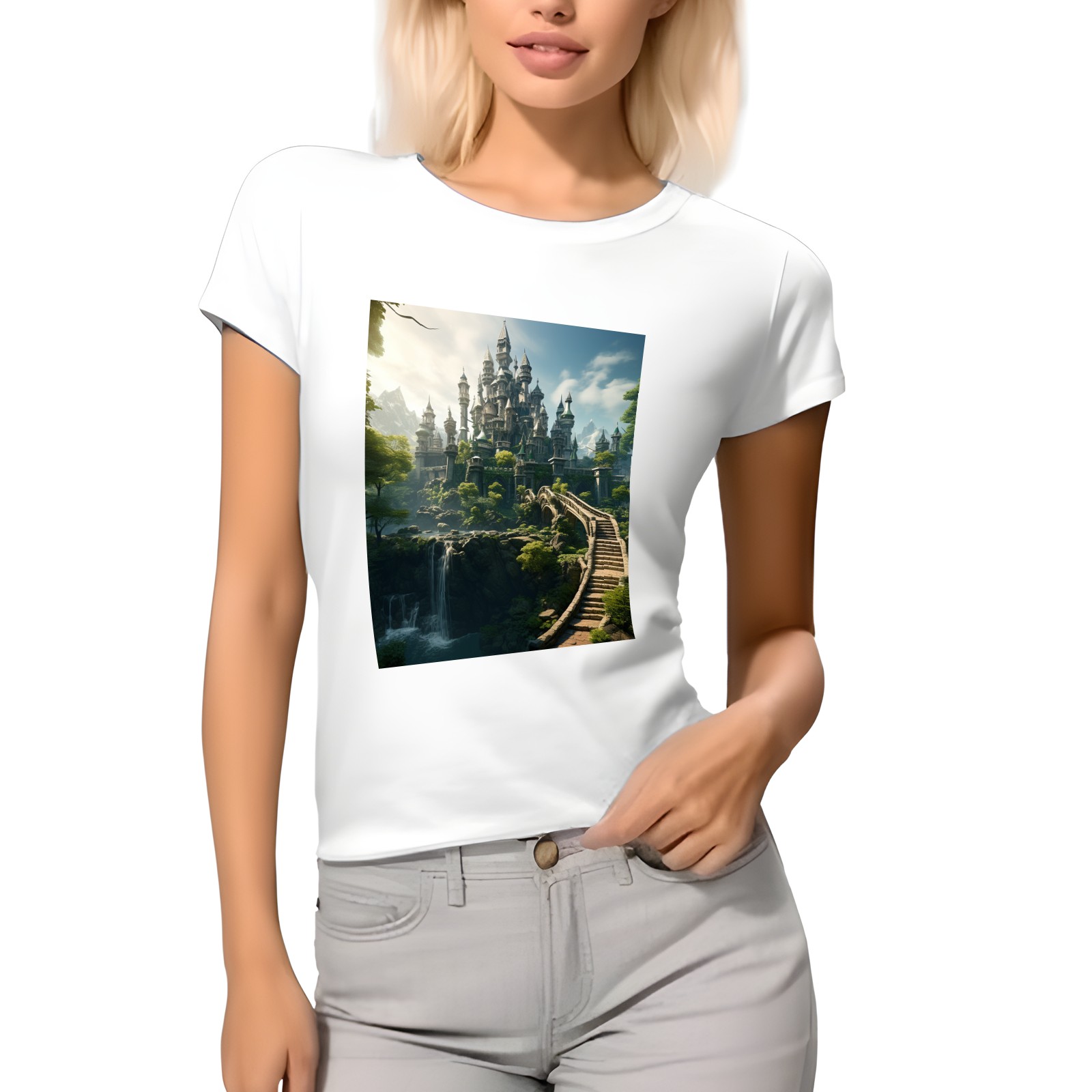 Basic Oversize Tees For WomenBjkj_an_old_castle_in_the_middle_of_the_forest_in_the_style_of_483b746a-9af6-4b76-be4c-ba33df28f647 Loose Boyfriend Shirts Casual Blouse round neck