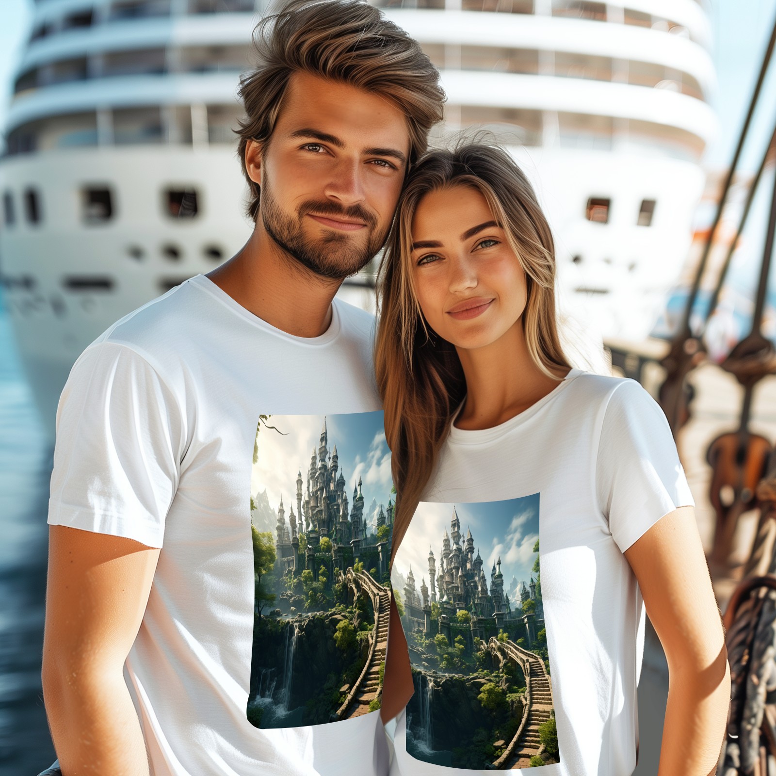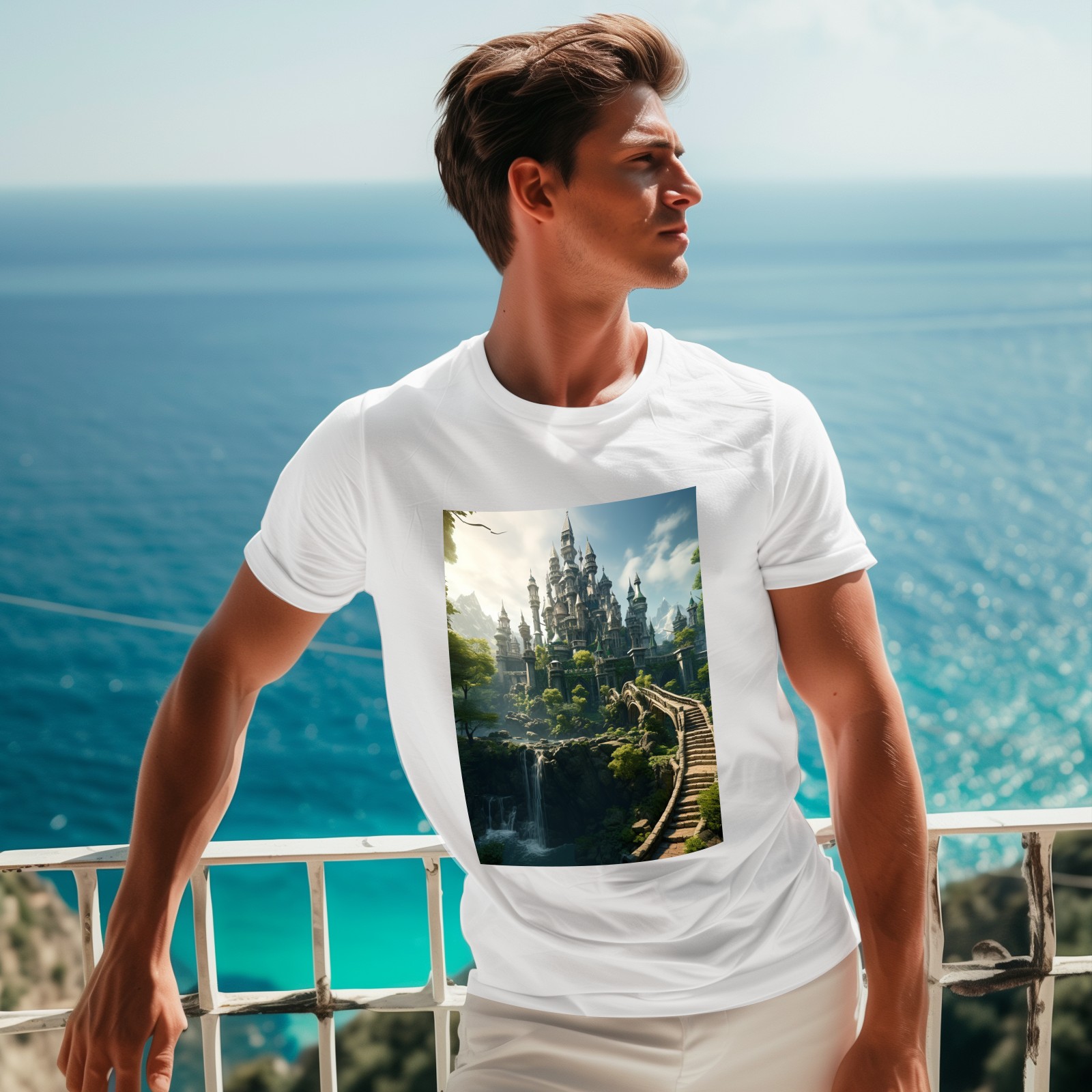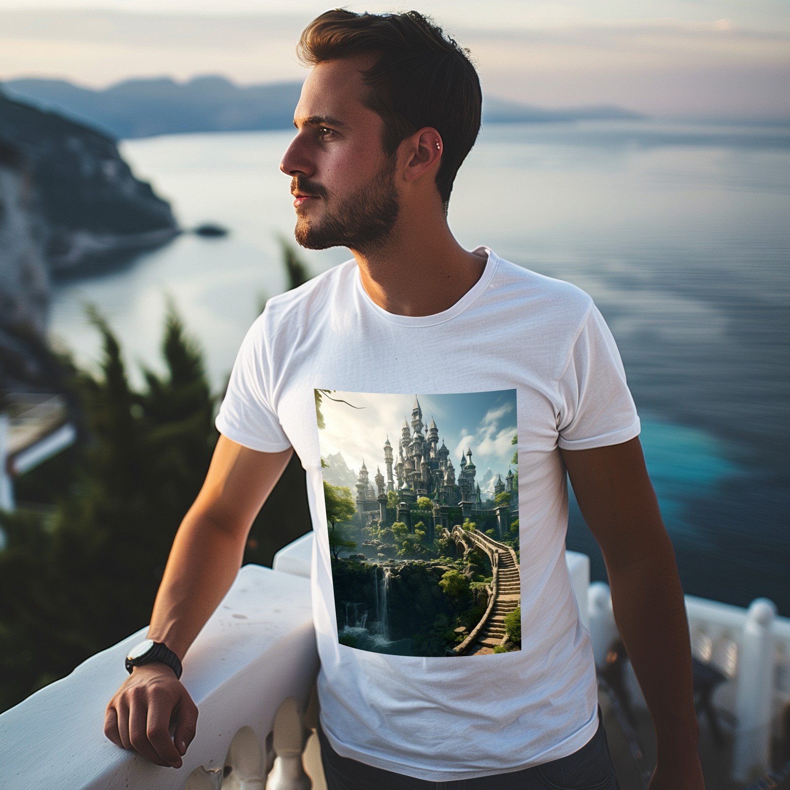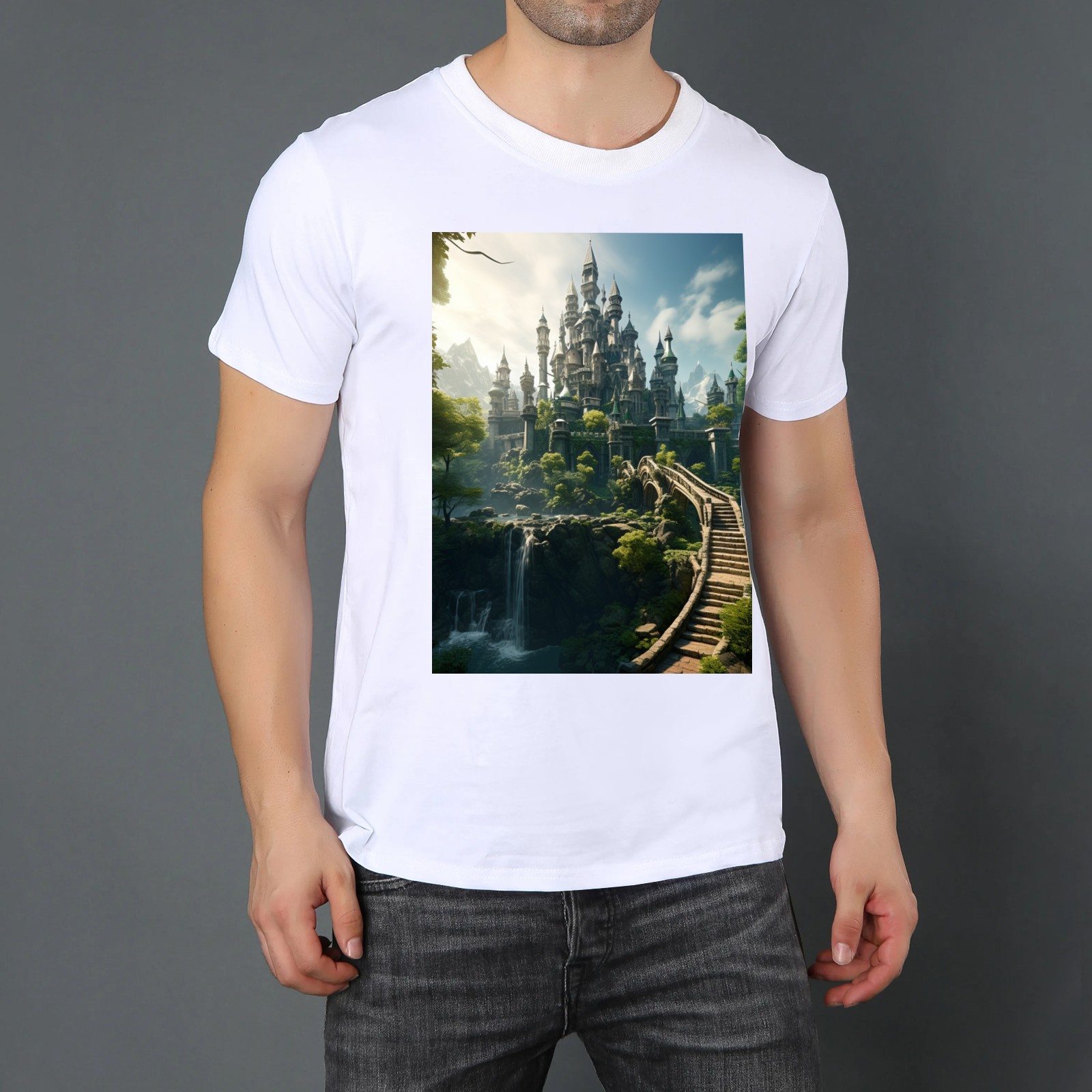 Basic Oversize Tees For WomenBjkj_an_old_castle_in_the_middle_of_the_forest_in_the_style_of_483b746a-9af6-4b76-be4c-ba33df28f647 Loose Boyfriend Shirts Casual Blouse round neck