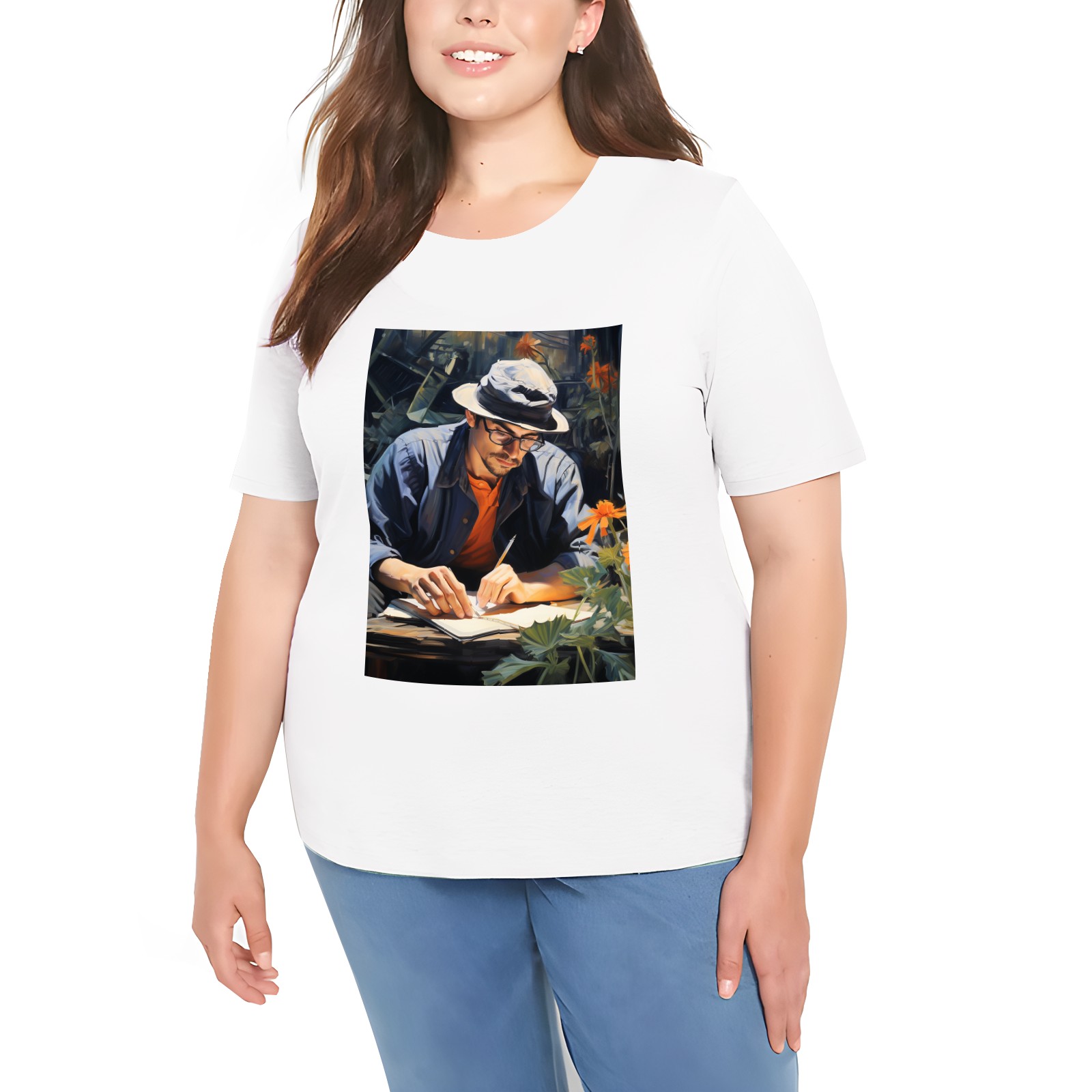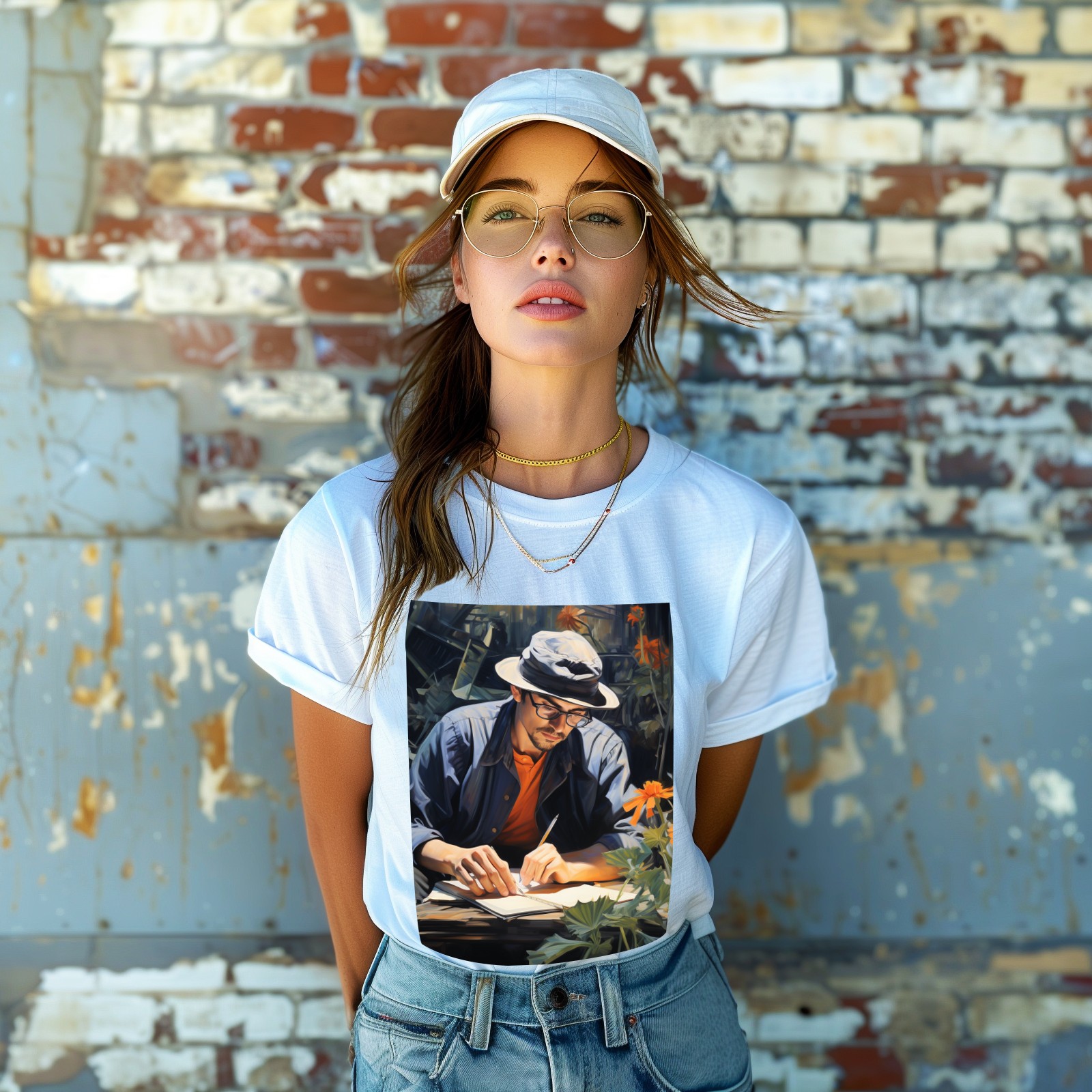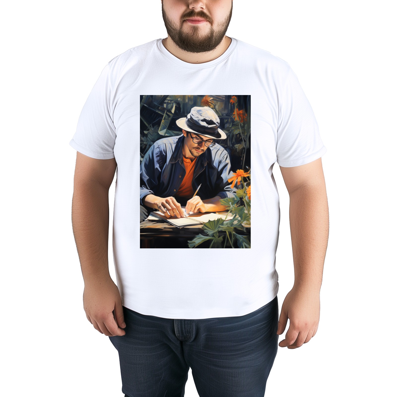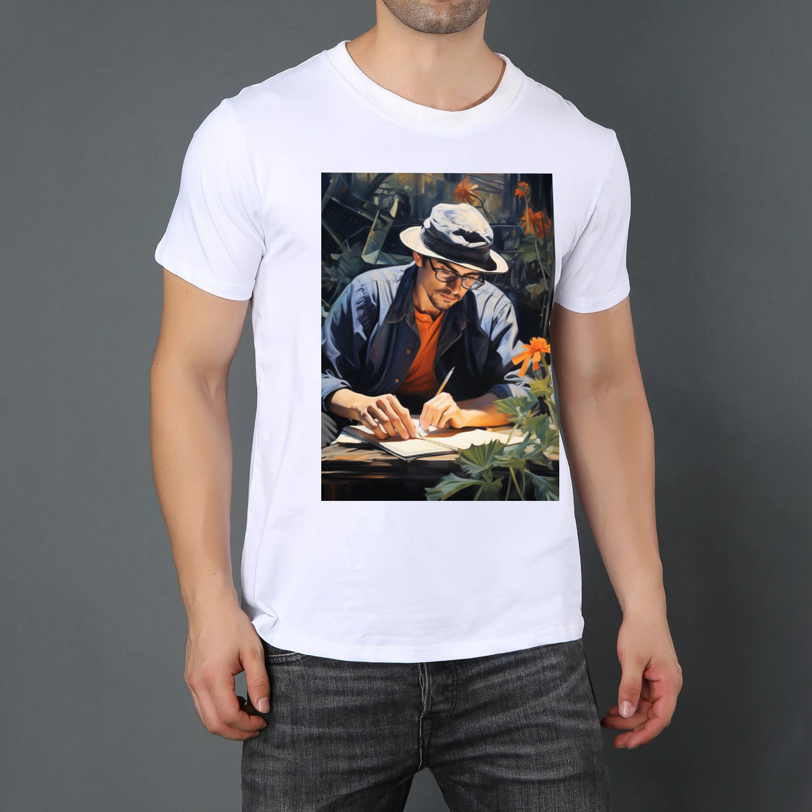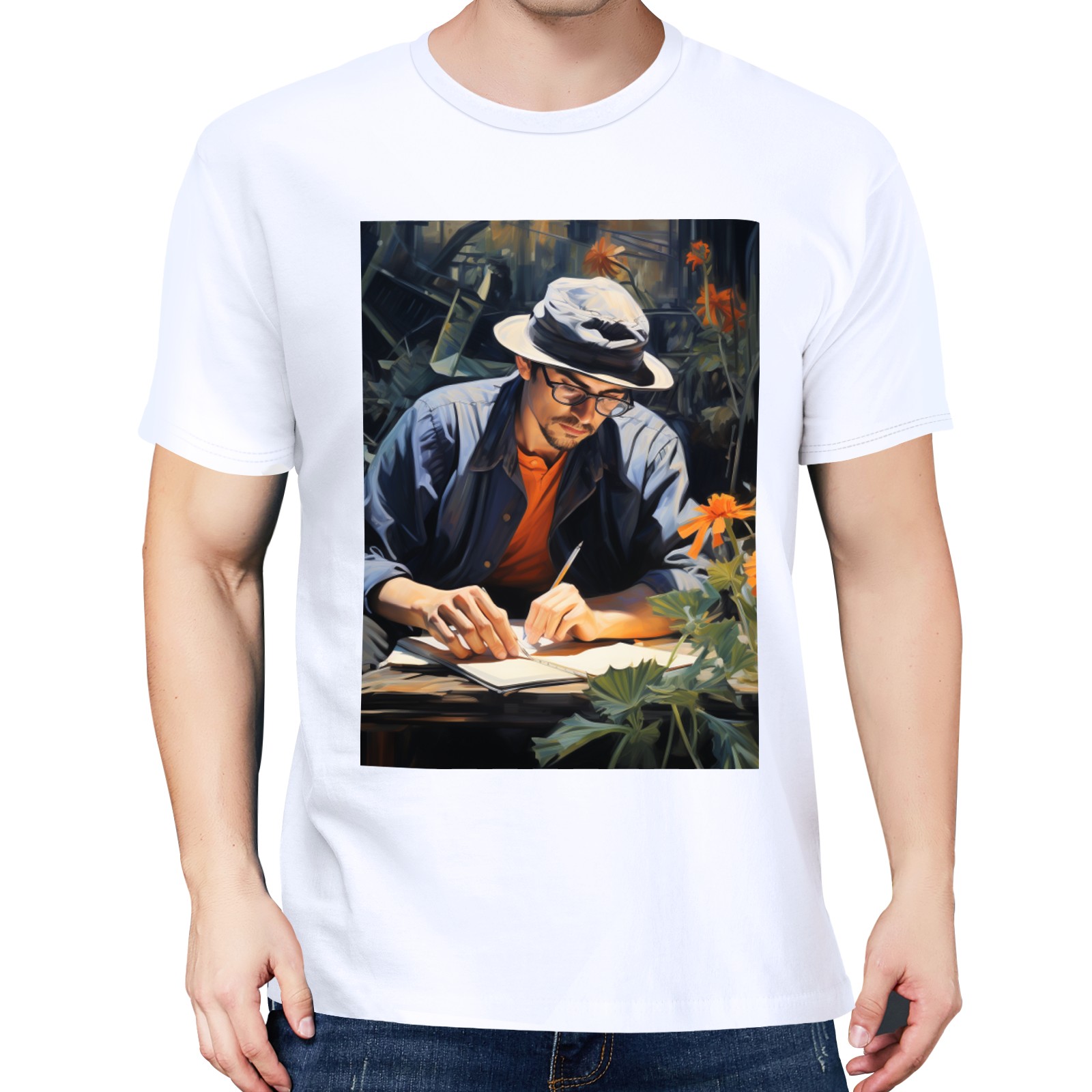Basic Oversize Tees For WomenBjkj_an_oil_painting_on_paper_of_a_man_working_by_an_orange_fl_be52e5e7-f8fb-4609-8b60-b096c514945b Loose Boyfriend Shirts Casual Blouse round neck