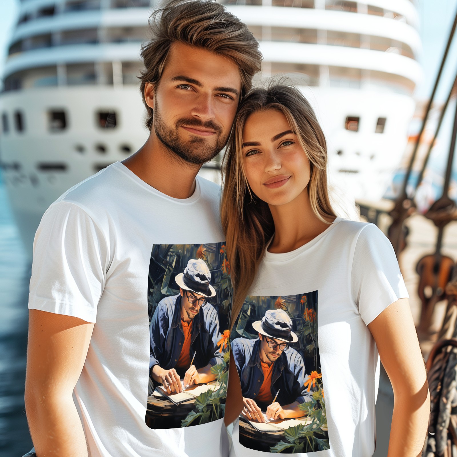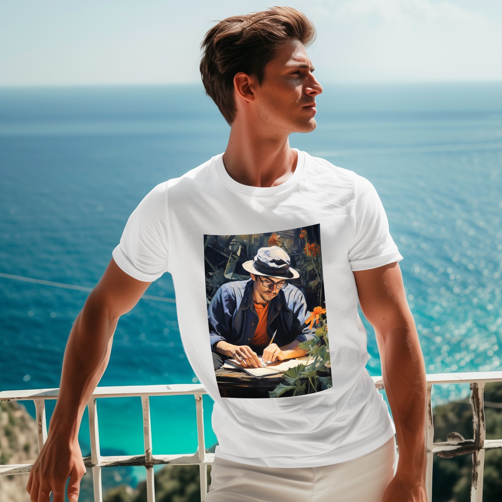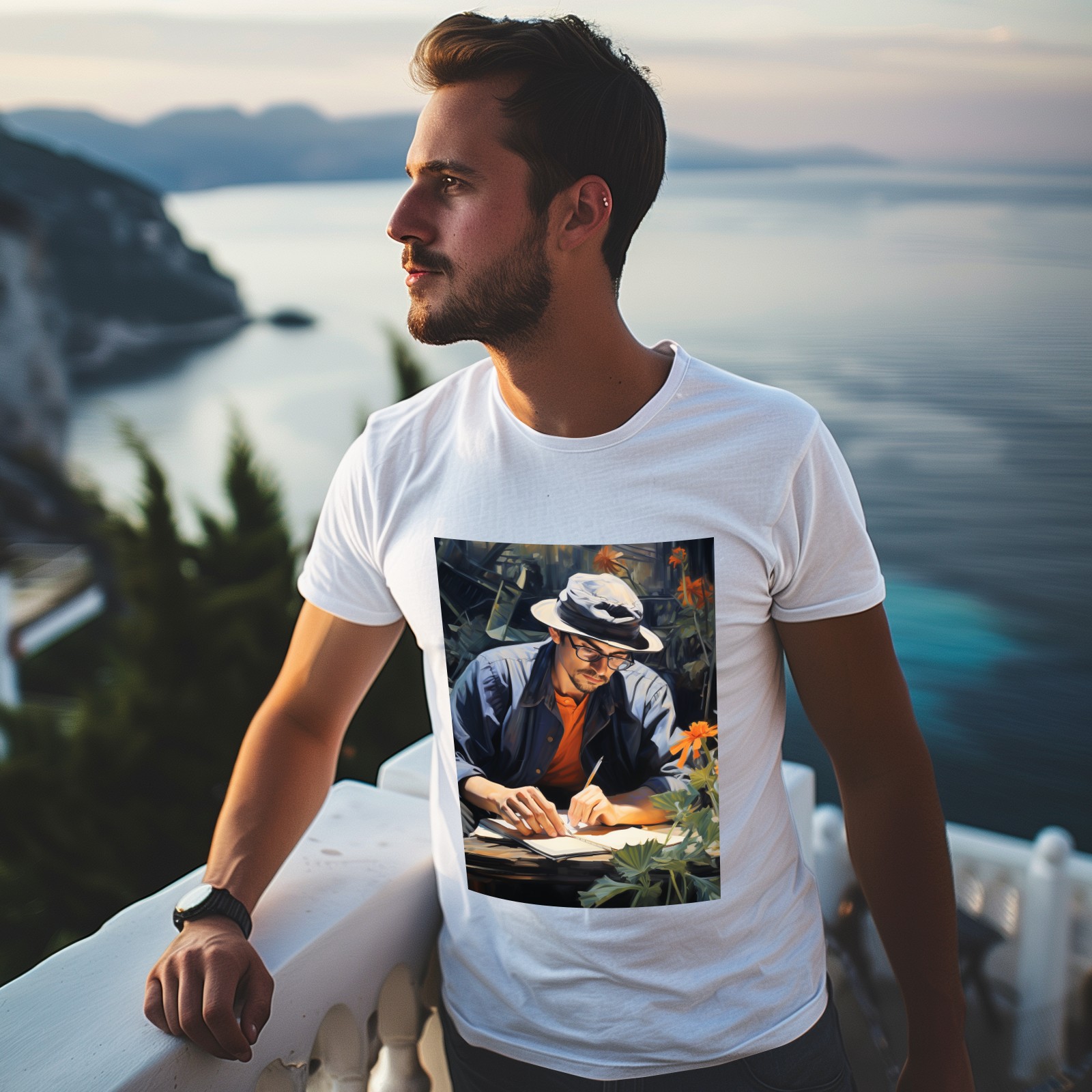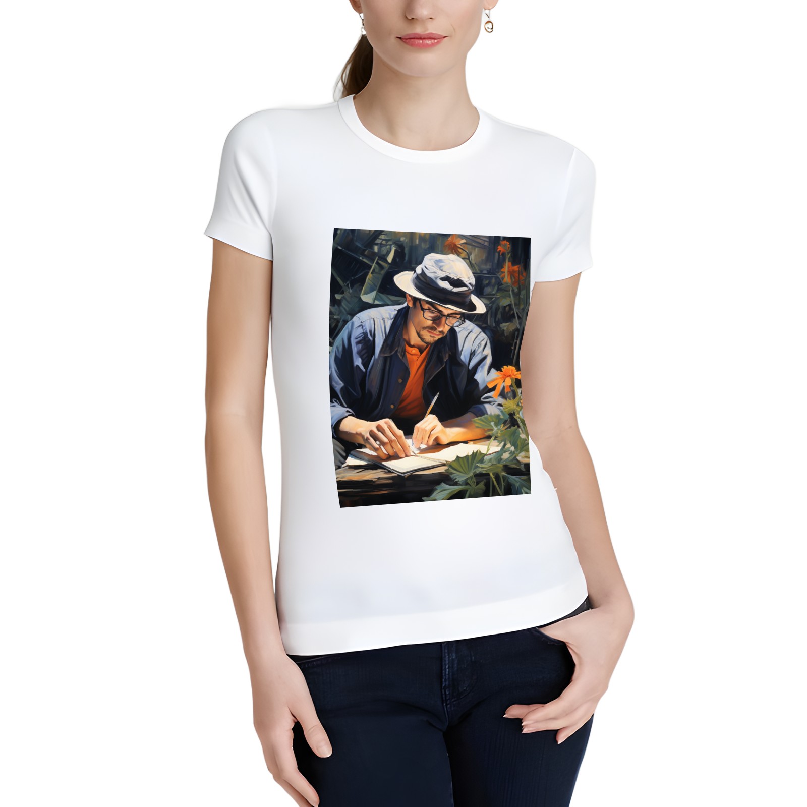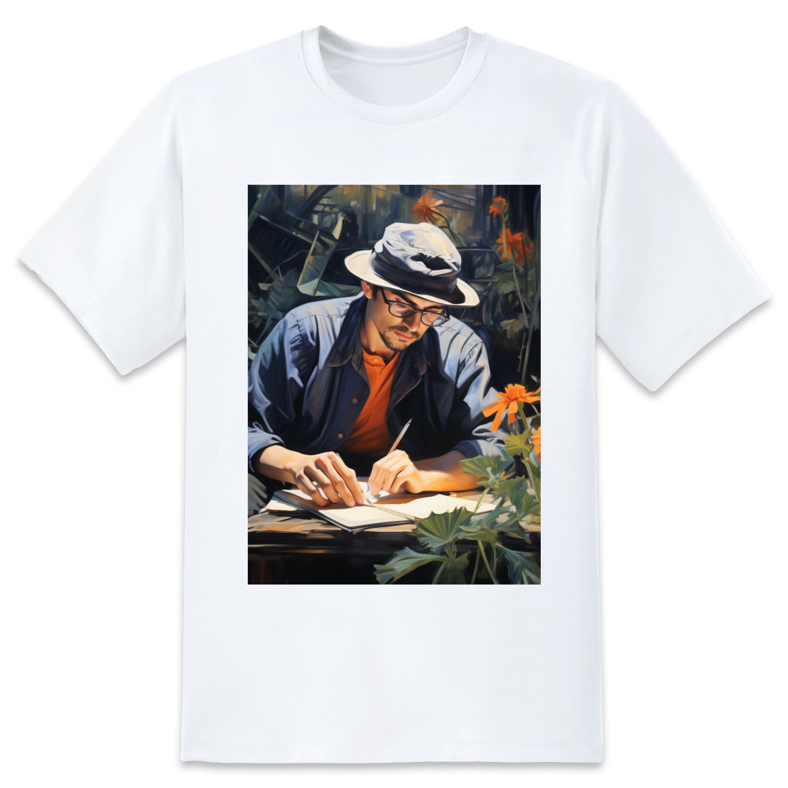 Basic Oversize Tees For WomenBjkj_an_oil_painting_on_paper_of_a_man_working_by_an_orange_fl_be52e5e7-f8fb-4609-8b60-b096c514945b Loose Boyfriend Shirts Casual Blouse round neck