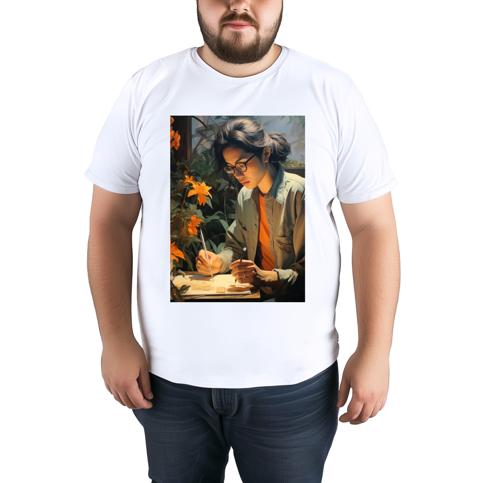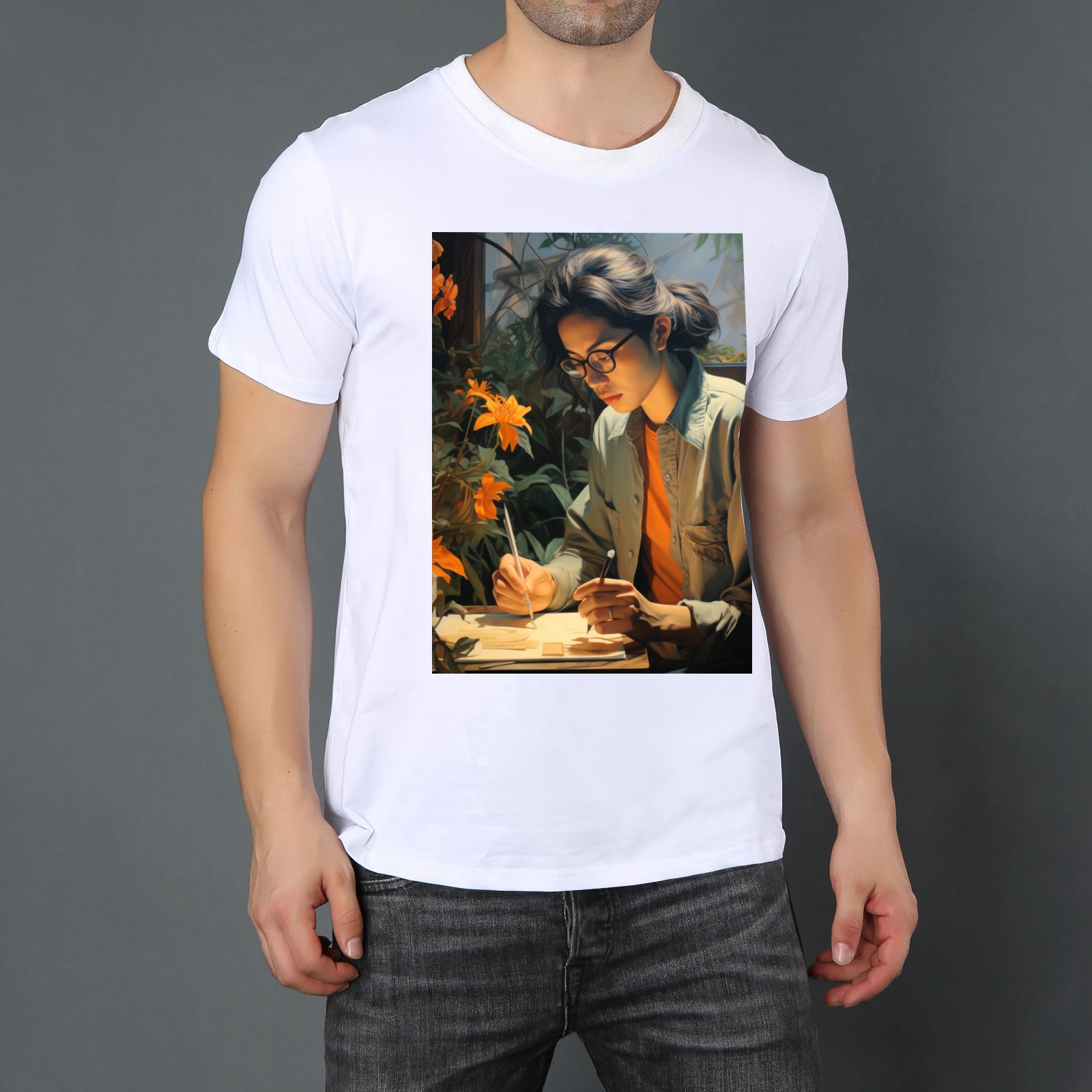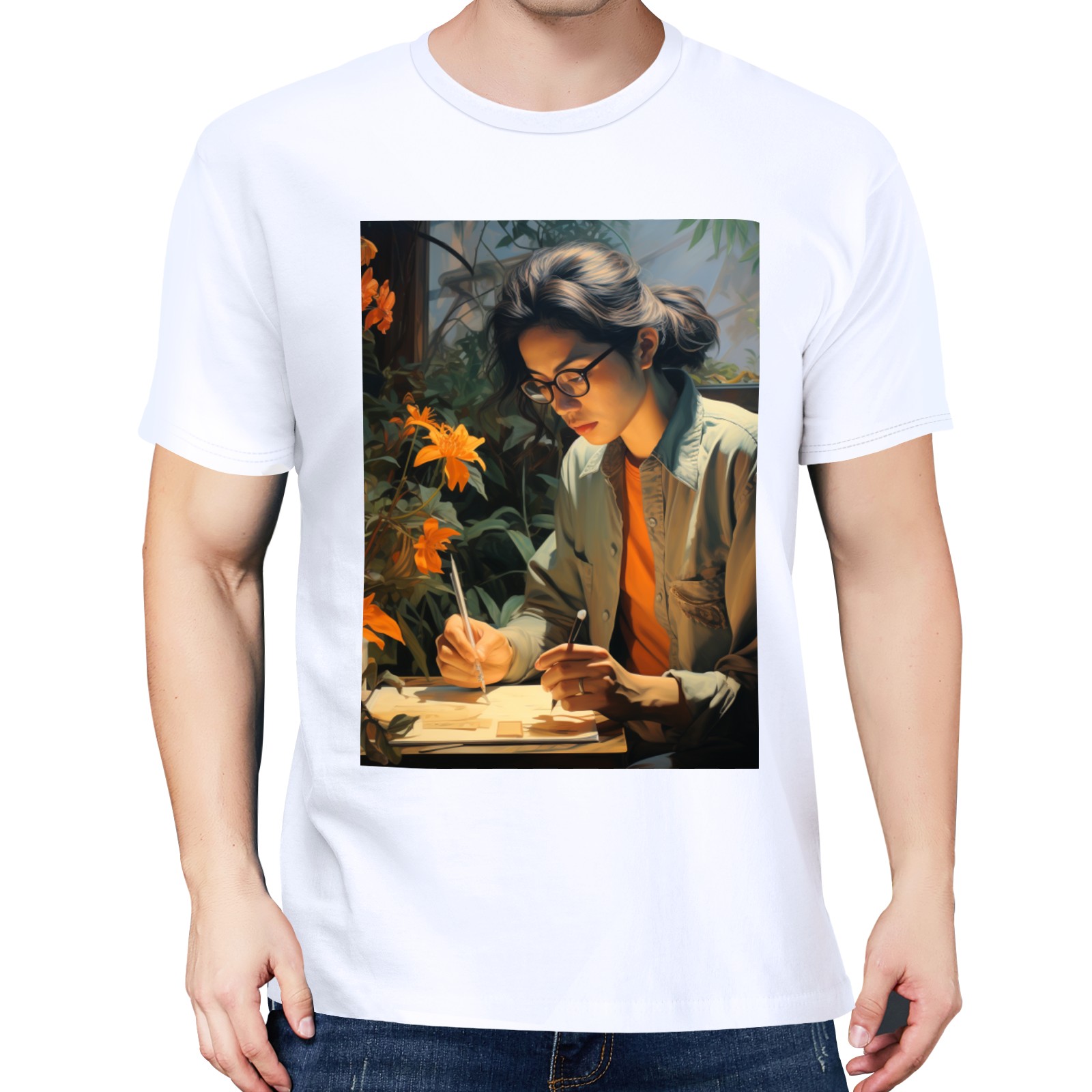Basic Oversize Tees For WomenBjkj_an_oil_painting_on_paper_of_a_man_working_by_an_orange_fl_e9bc6494-2d65-4bfd-8a80-cb92e104405a Loose Boyfriend Shirts Casual Blouse round neck