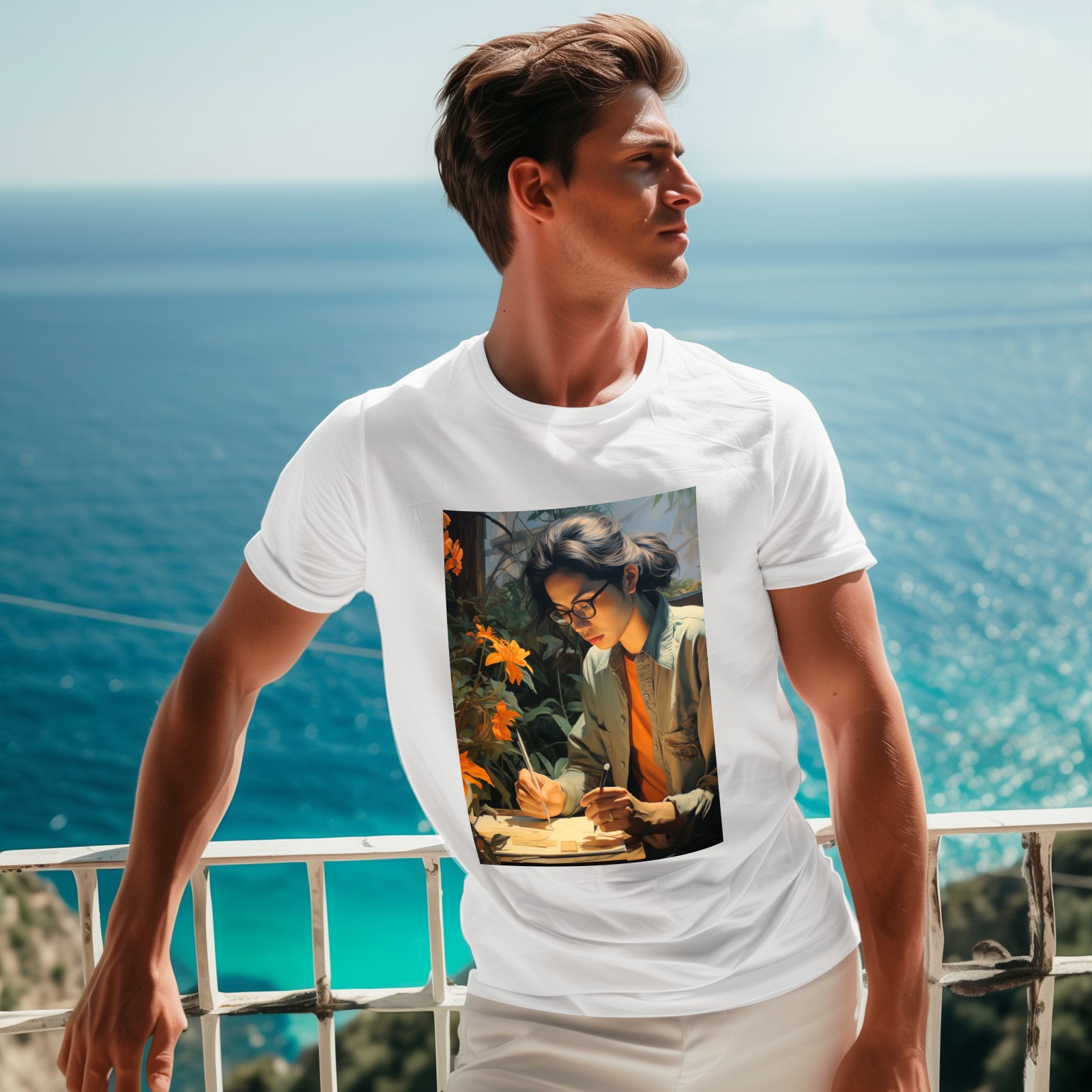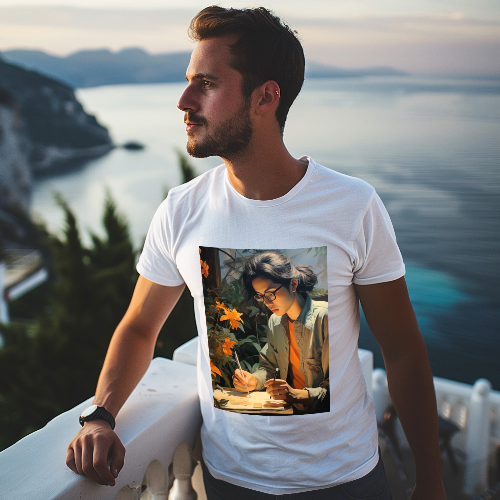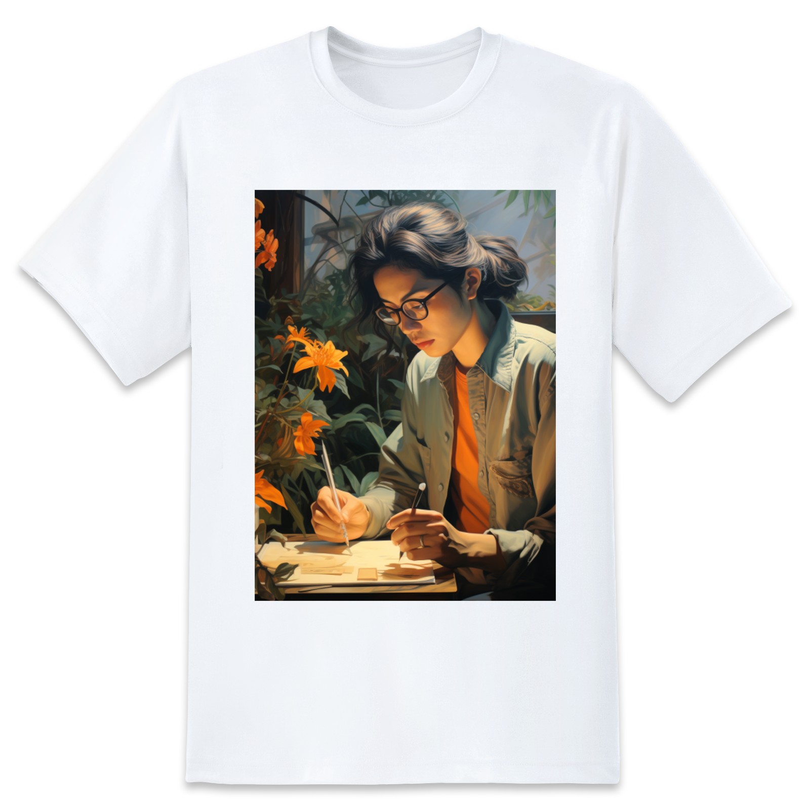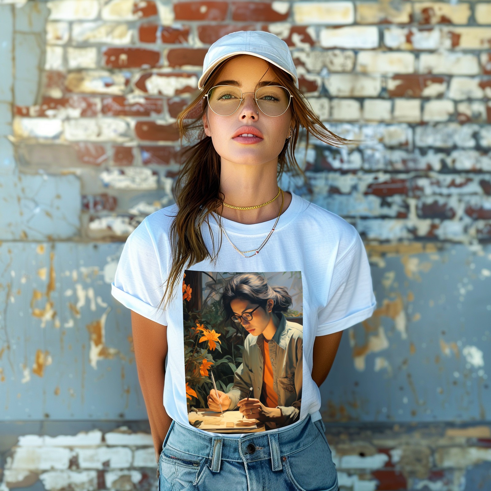 Basic Oversize Tees For WomenBjkj_an_oil_painting_on_paper_of_a_man_working_by_an_orange_fl_e9bc6494-2d65-4bfd-8a80-cb92e104405a Loose Boyfriend Shirts Casual Blouse round neck