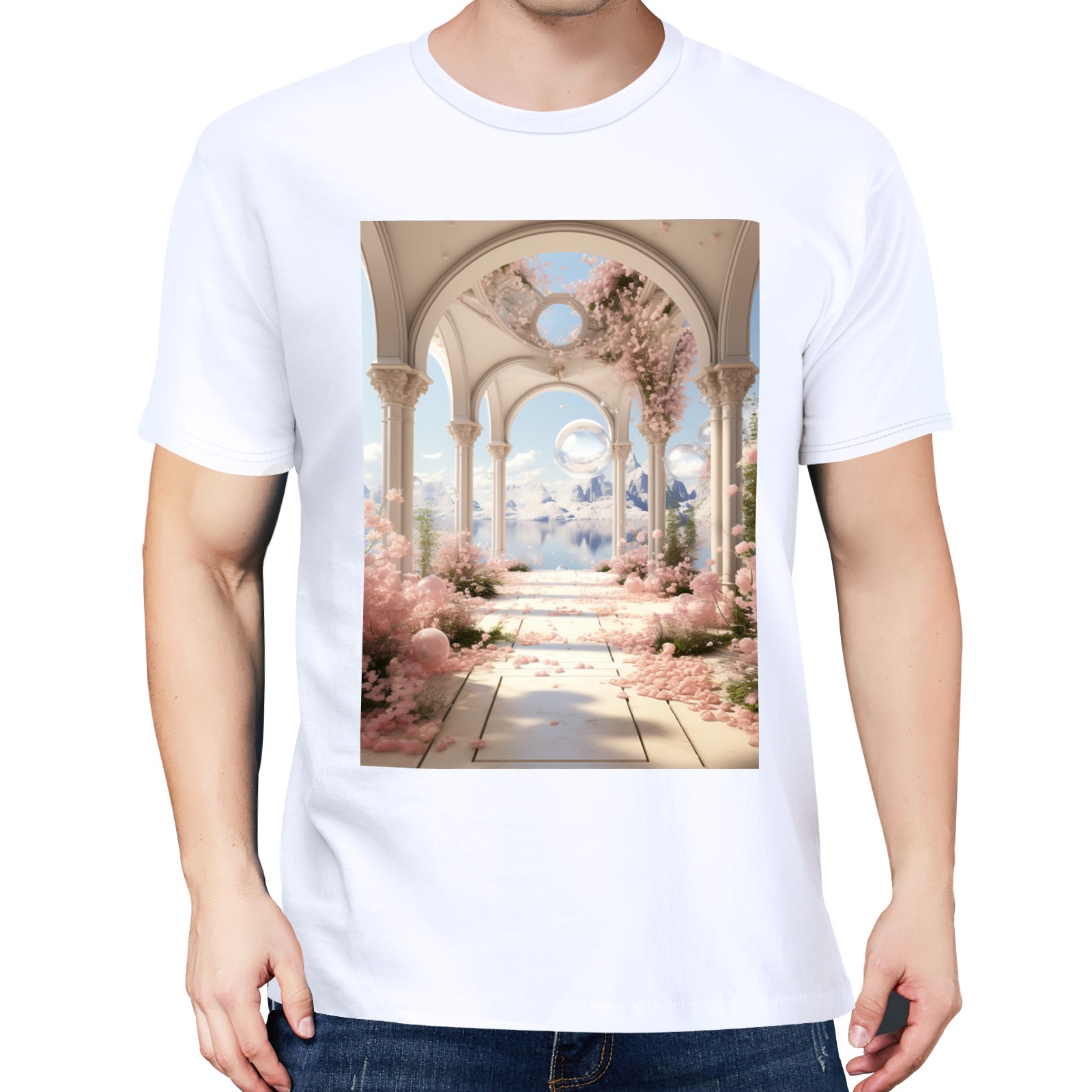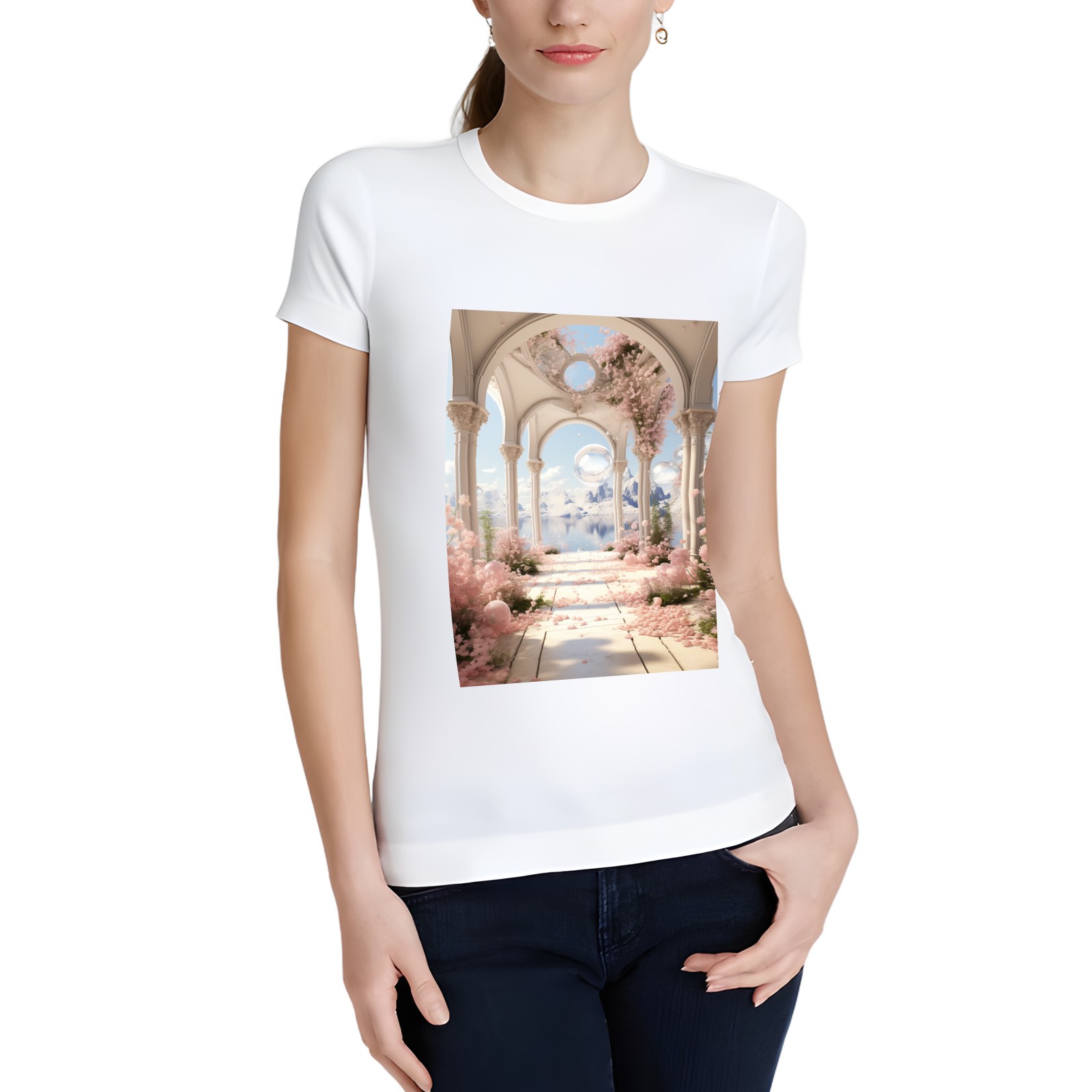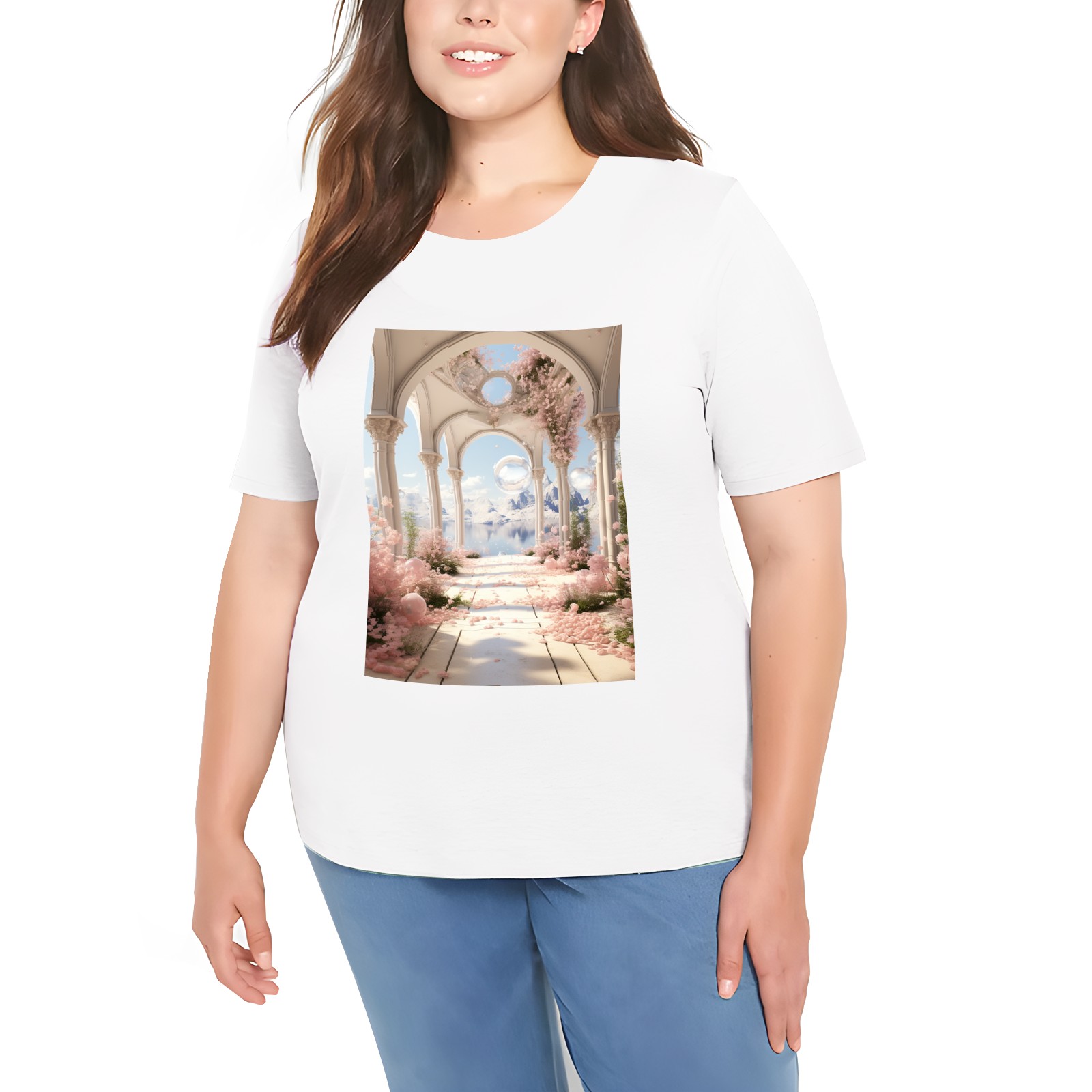 Basic Oversize Tees For WomenBjkj_an_archway_with_flowers_soap_bubbles_and_bubbles_in_the_s_9f133f04-6eeb-41f9-a1a4-1afbc7fb6998 Loose Boyfriend Shirts Casual Blouse round neck